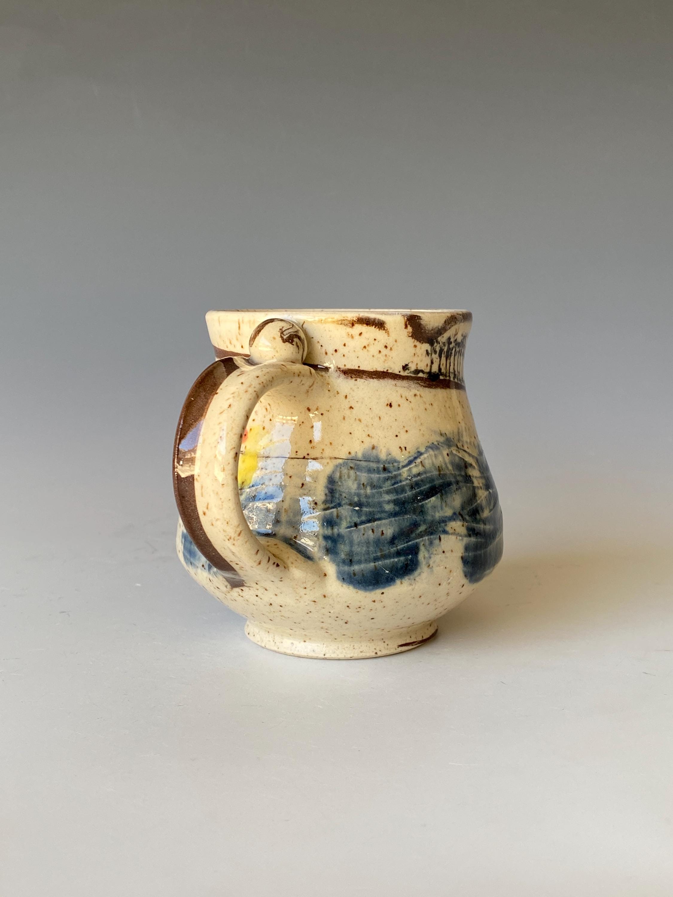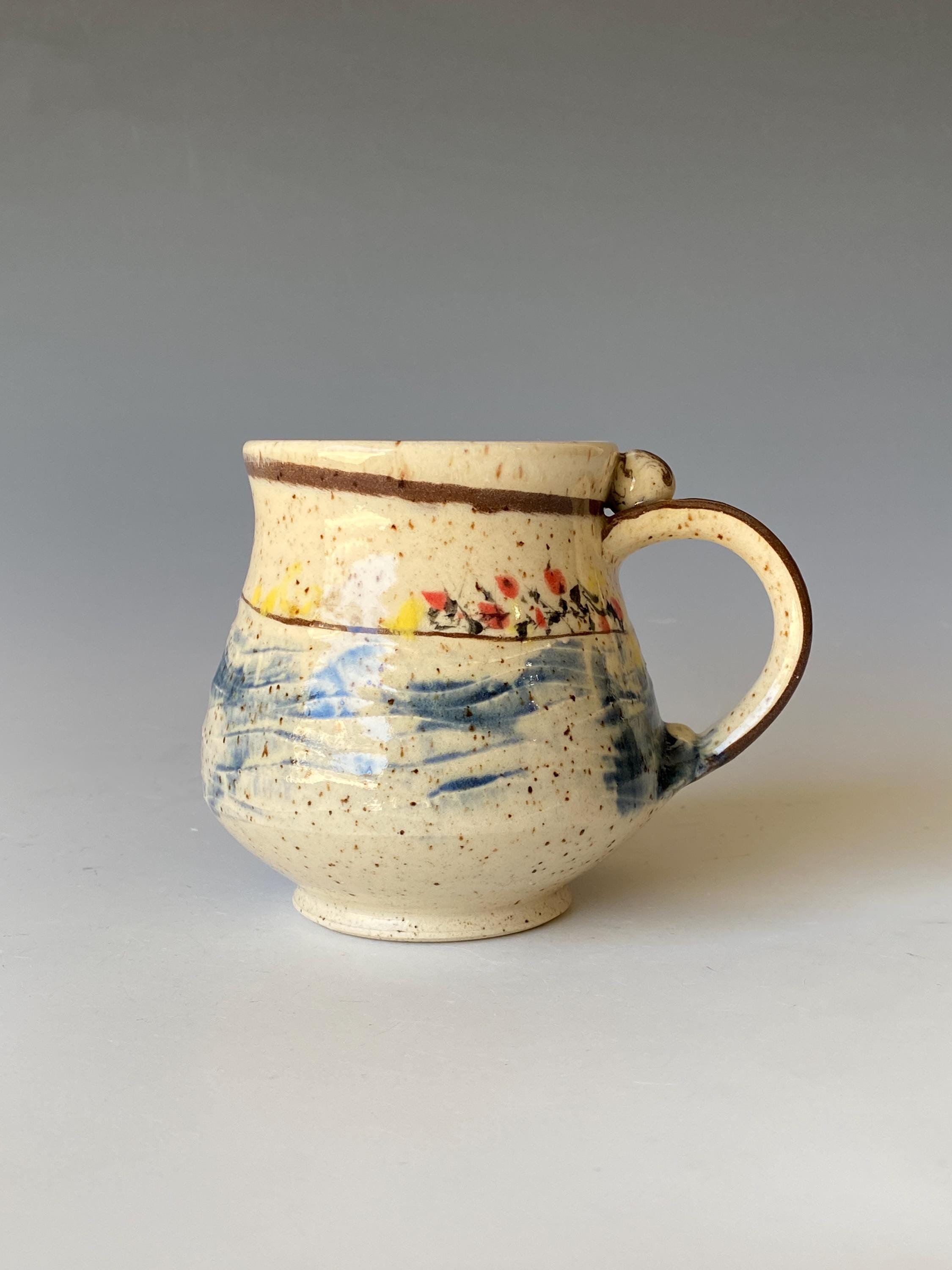 Handmade and hand painted coffee mug, height 3.8" * rim 2.8", holds 12 OZ.