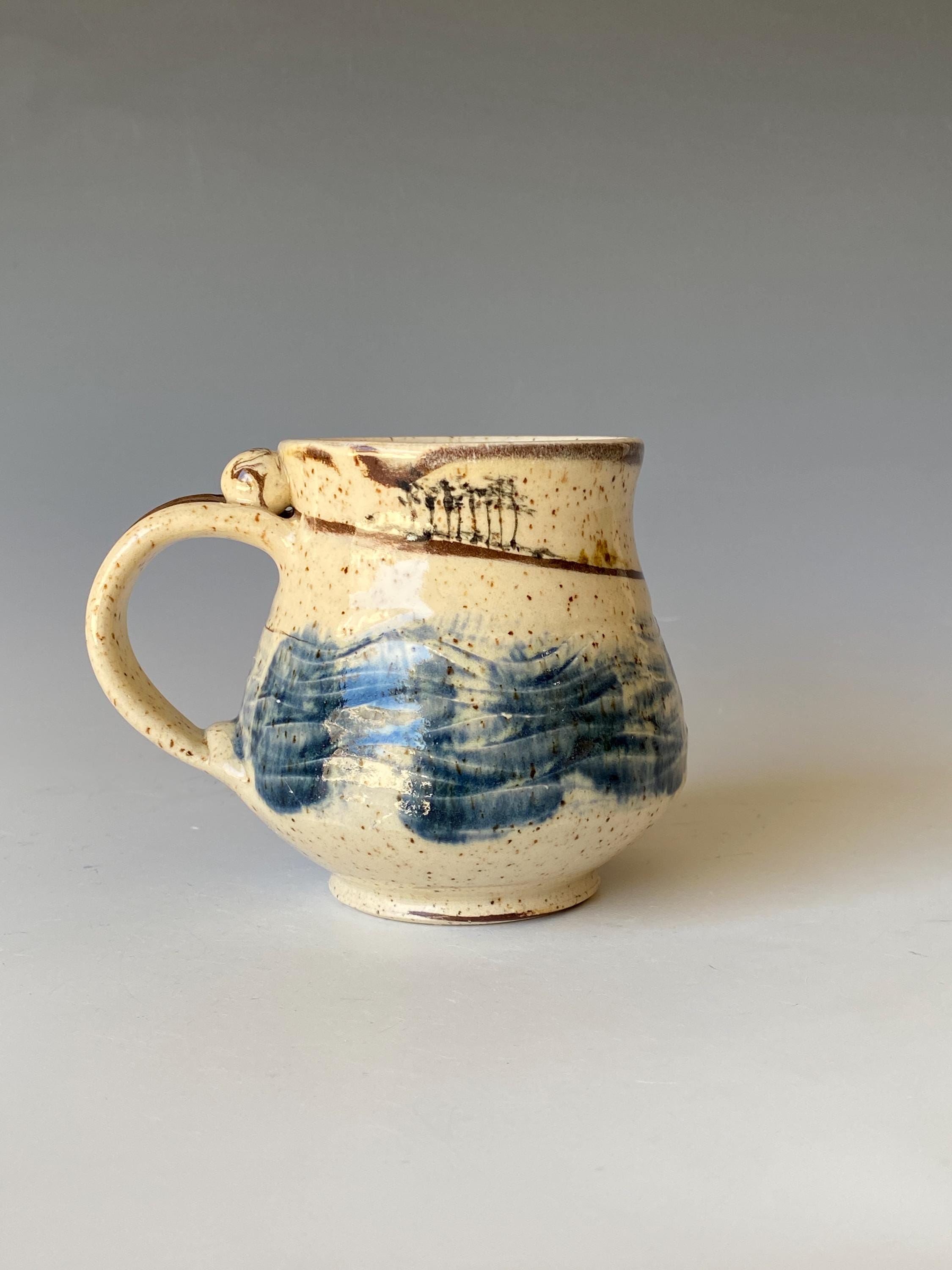 ATTENTION: This Mug is throw from a type of clay with good amount of sand in it, which creates a rough surface on areas that left un-glazed.