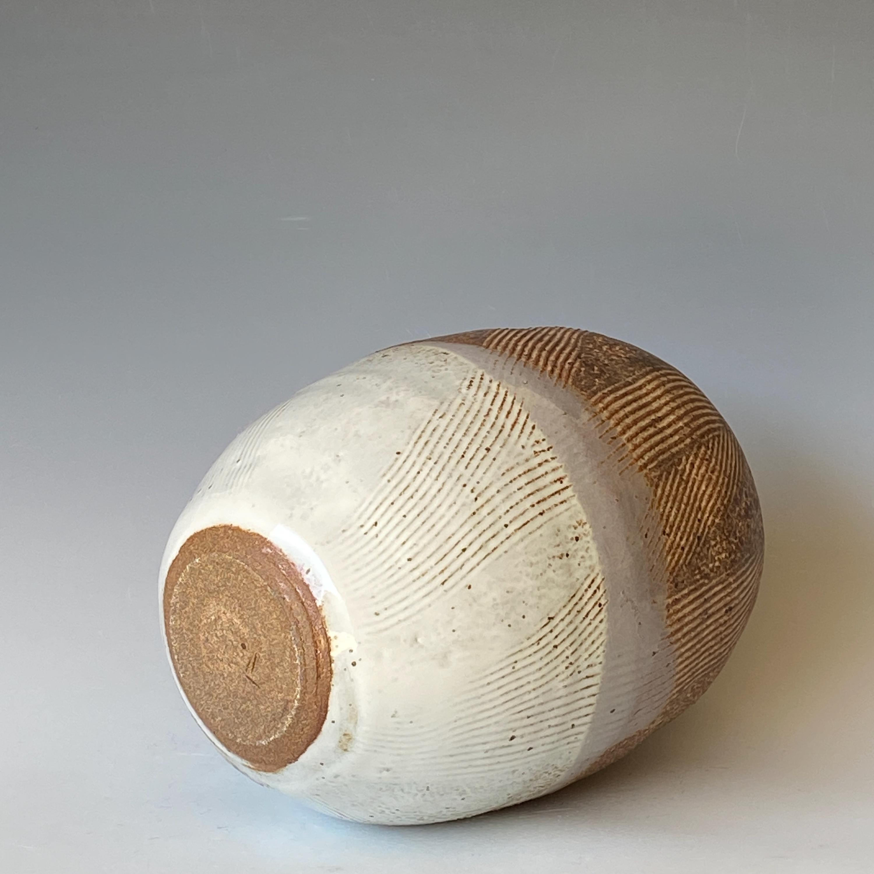 ATTENTION: This piece is throw from a type of clay with good amount of sand in it, which creates a rough surface on areas that left un-glazed.