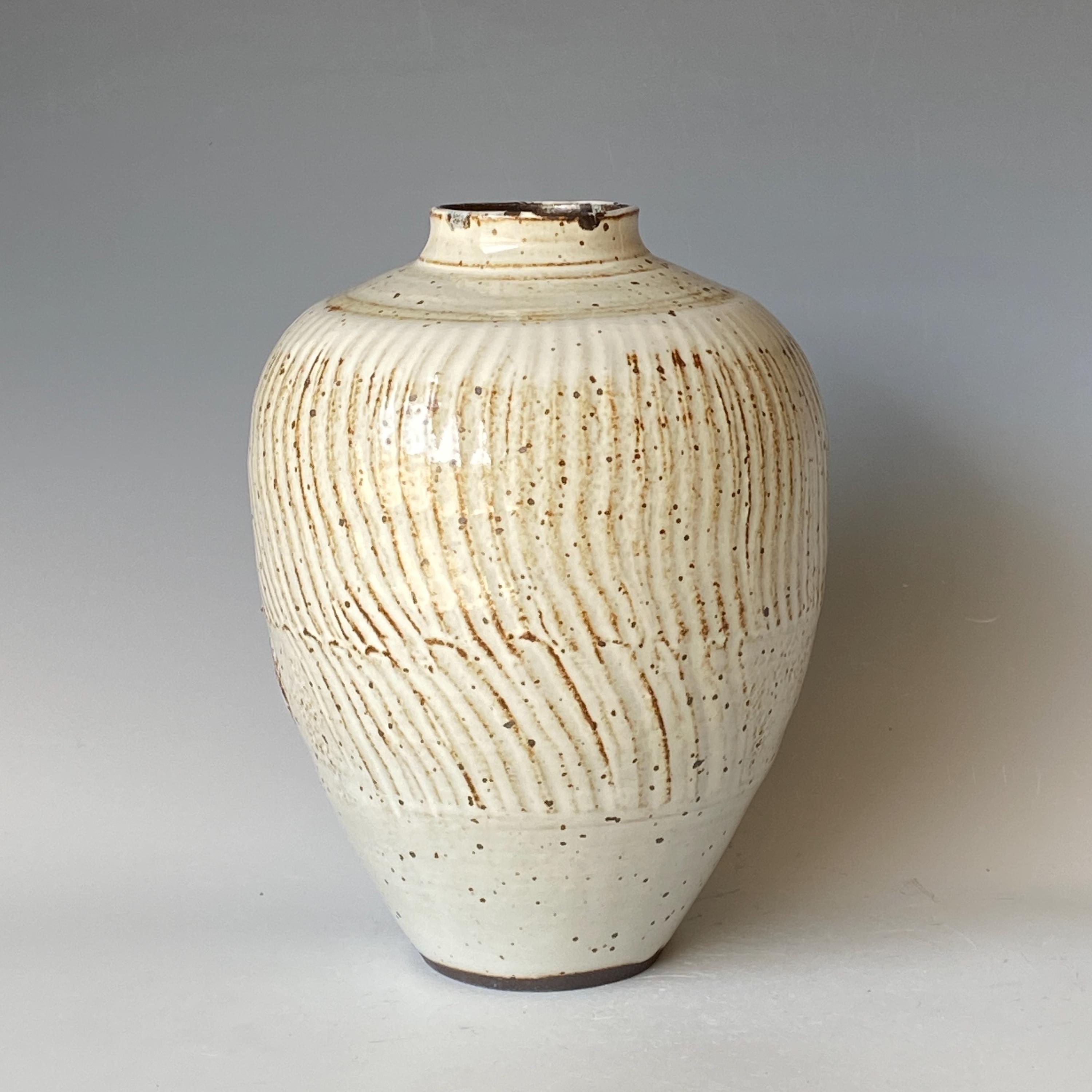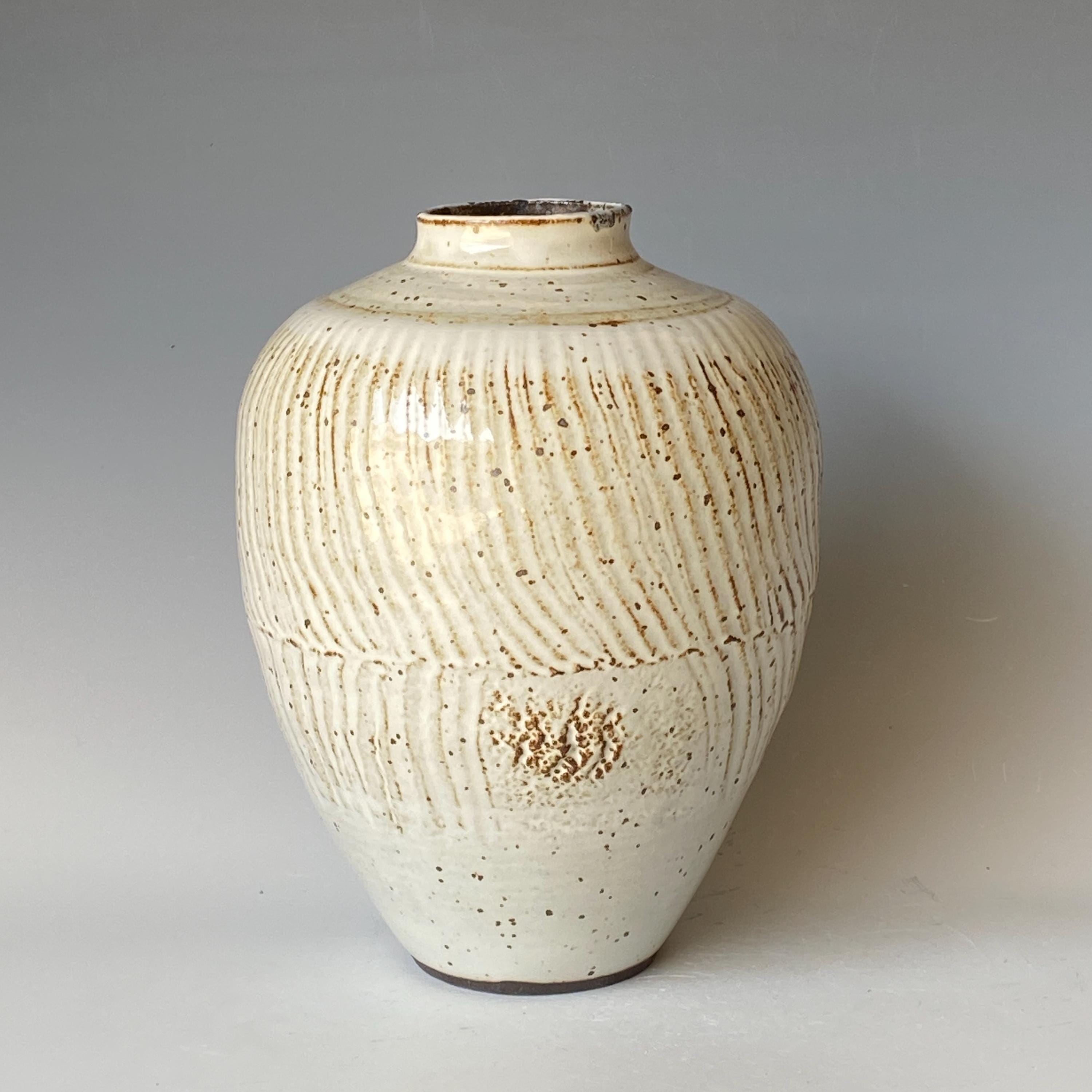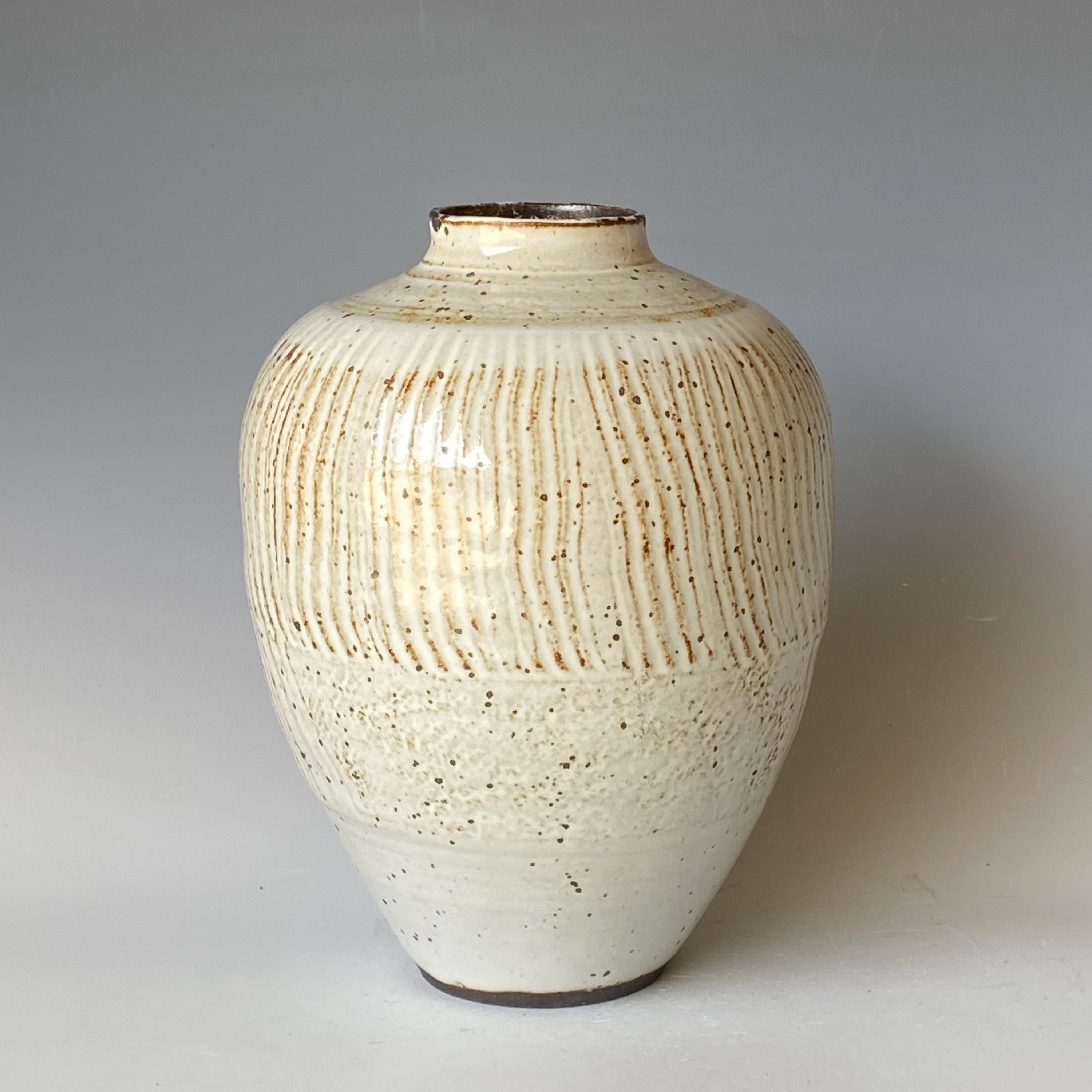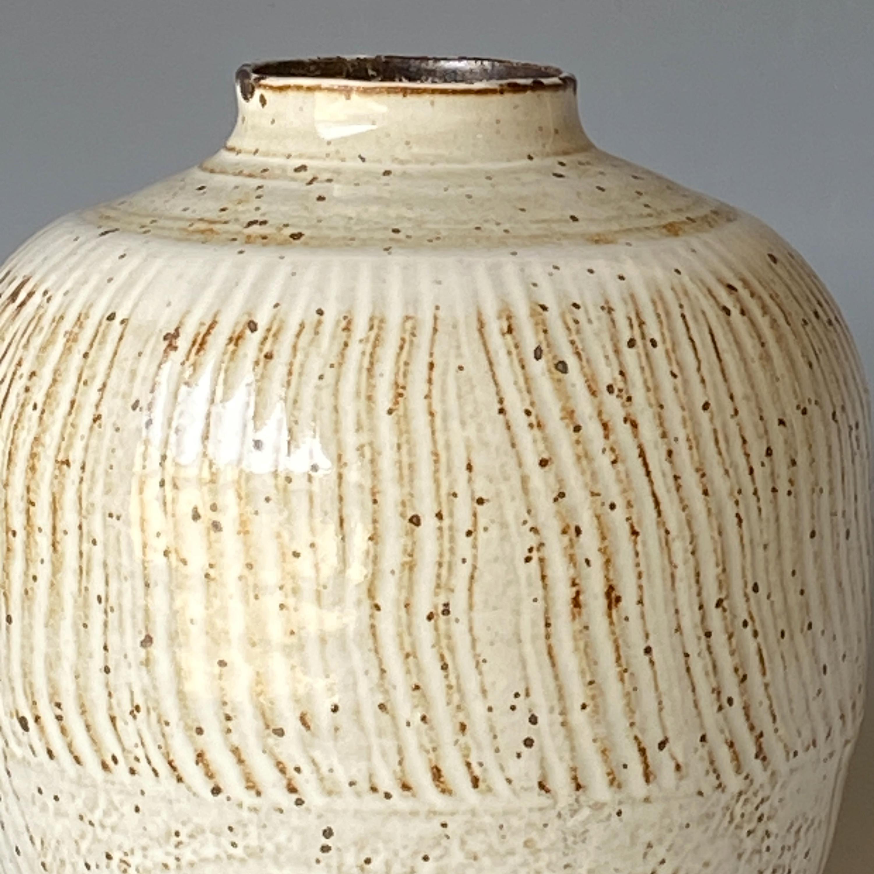 Wheel thrown ceramic vase. It measures height 7.8" * width 5.7" * rim 1.8".