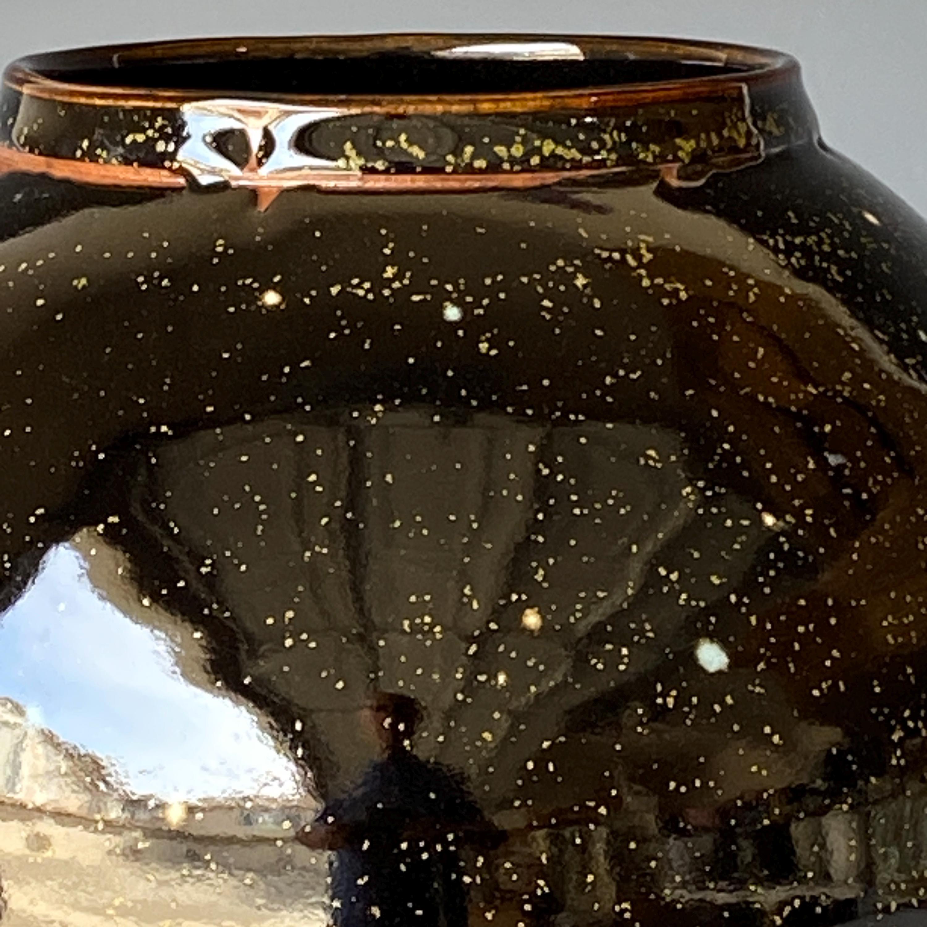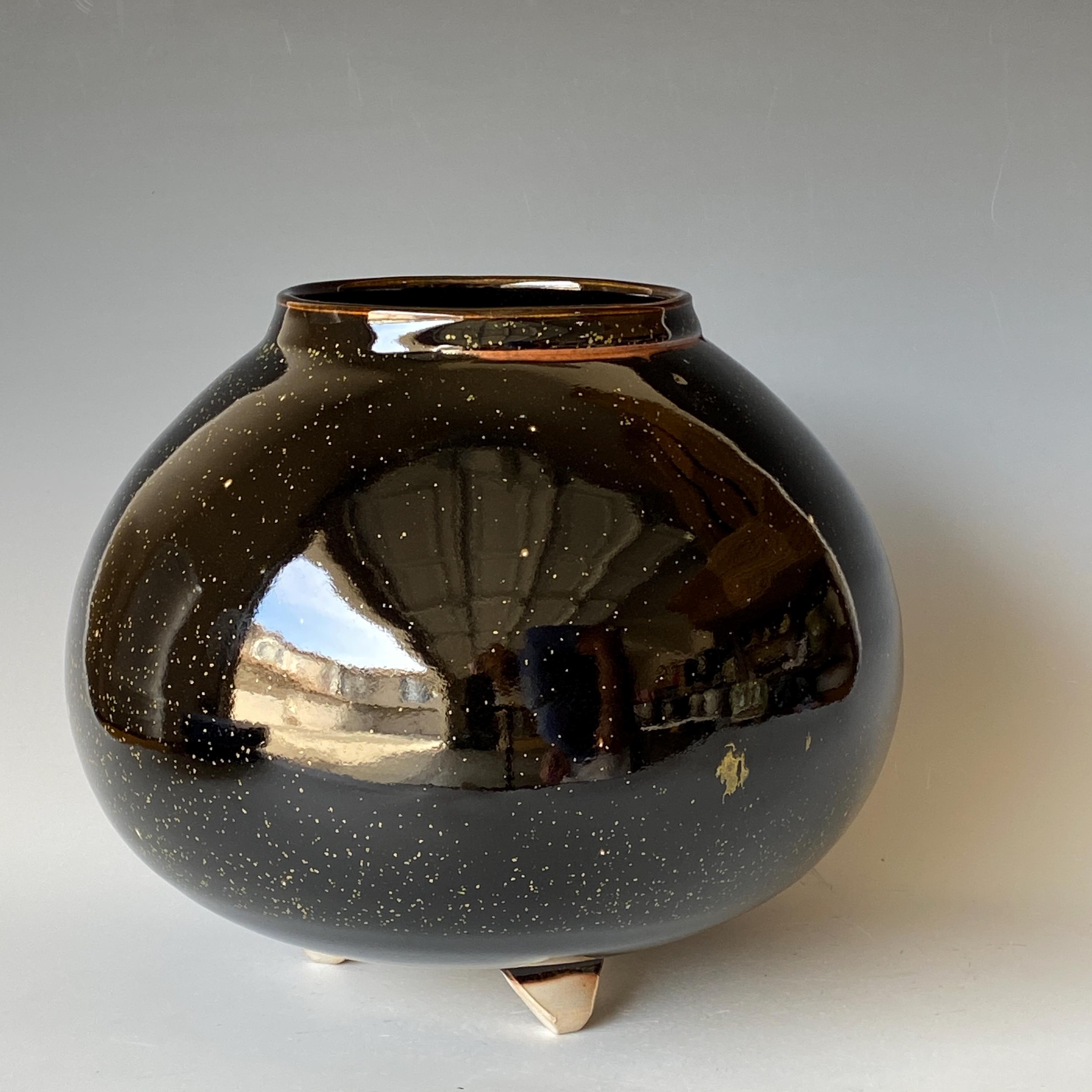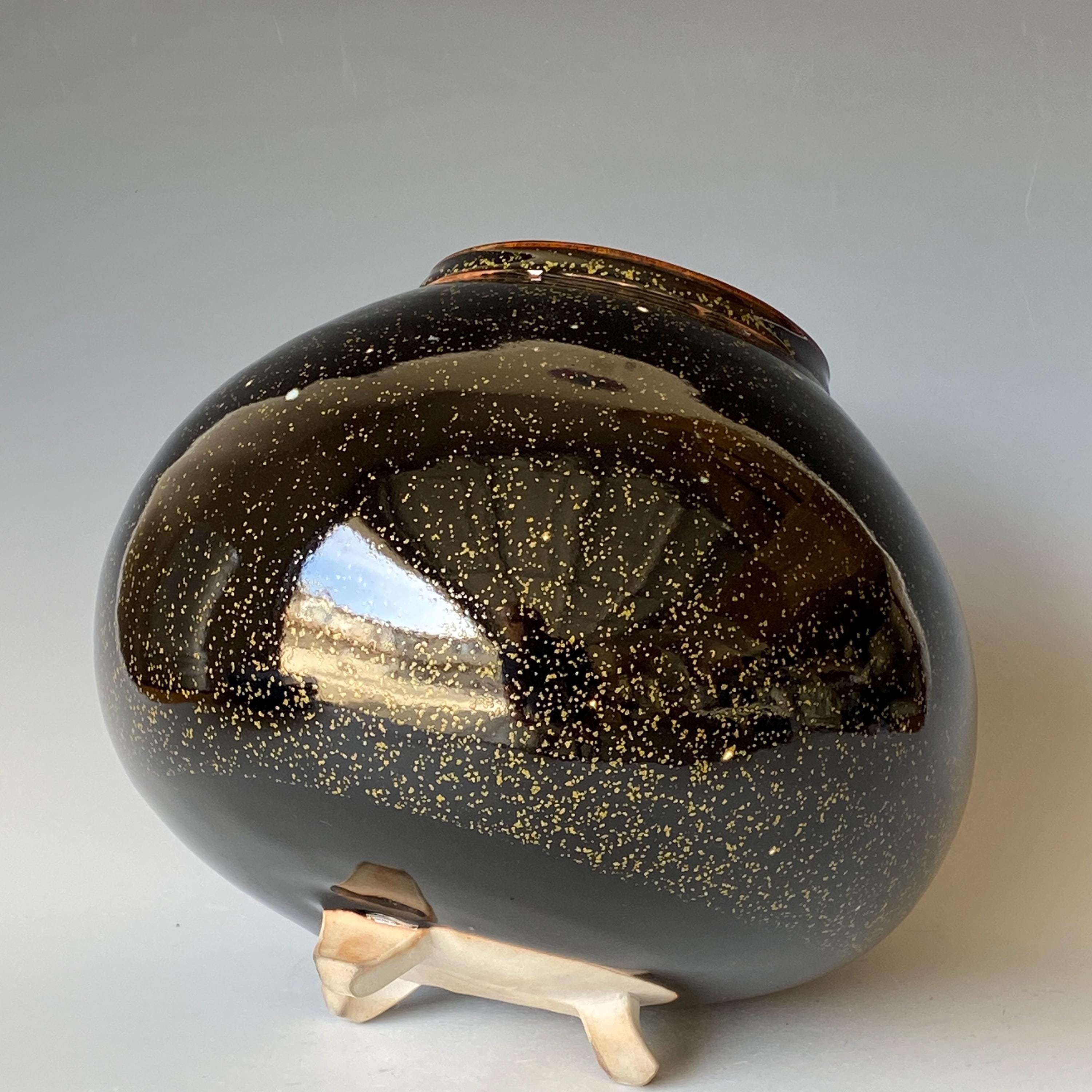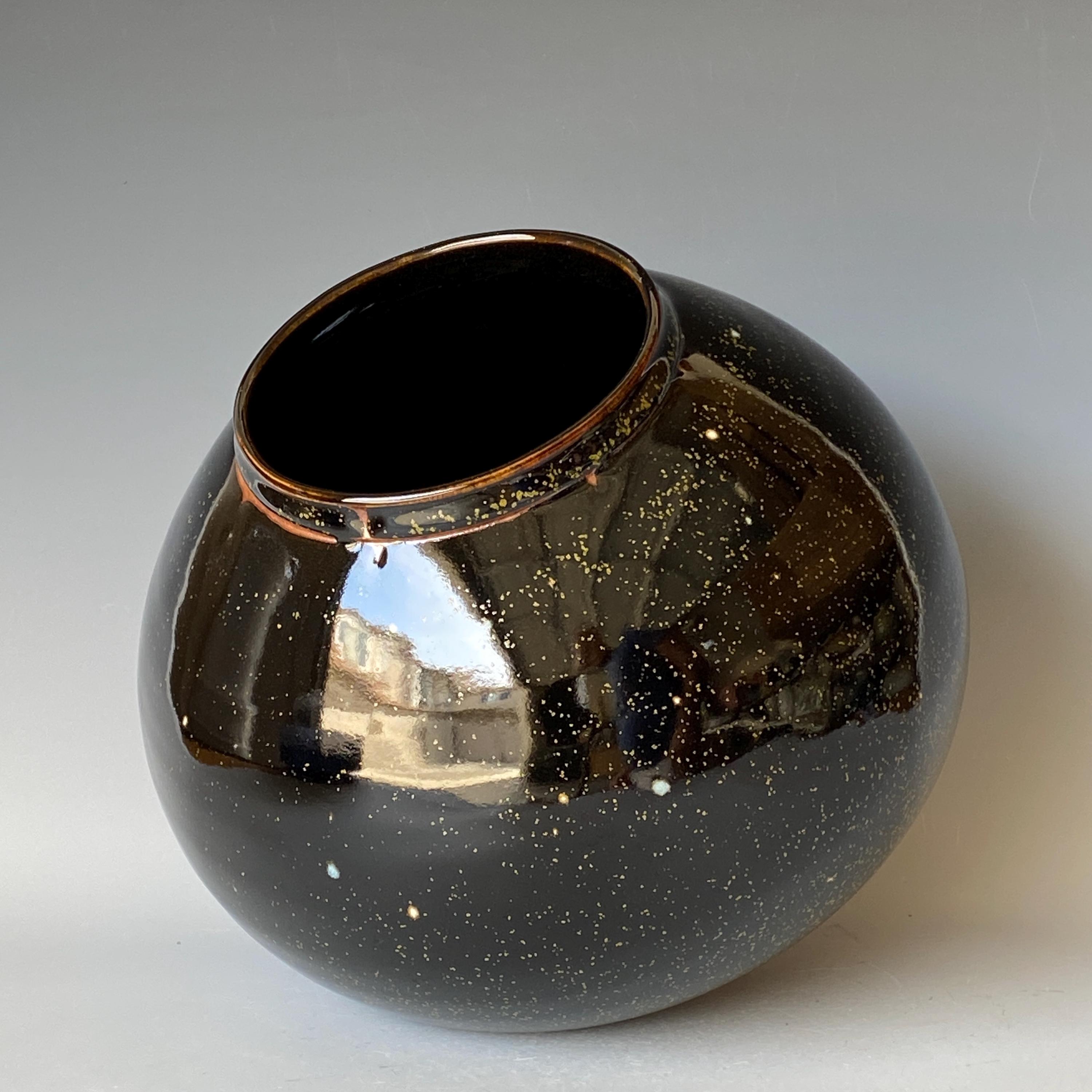 Wheel thrown ceramic vase. It measures height 7.3" * width 8.5" * rim 4".
