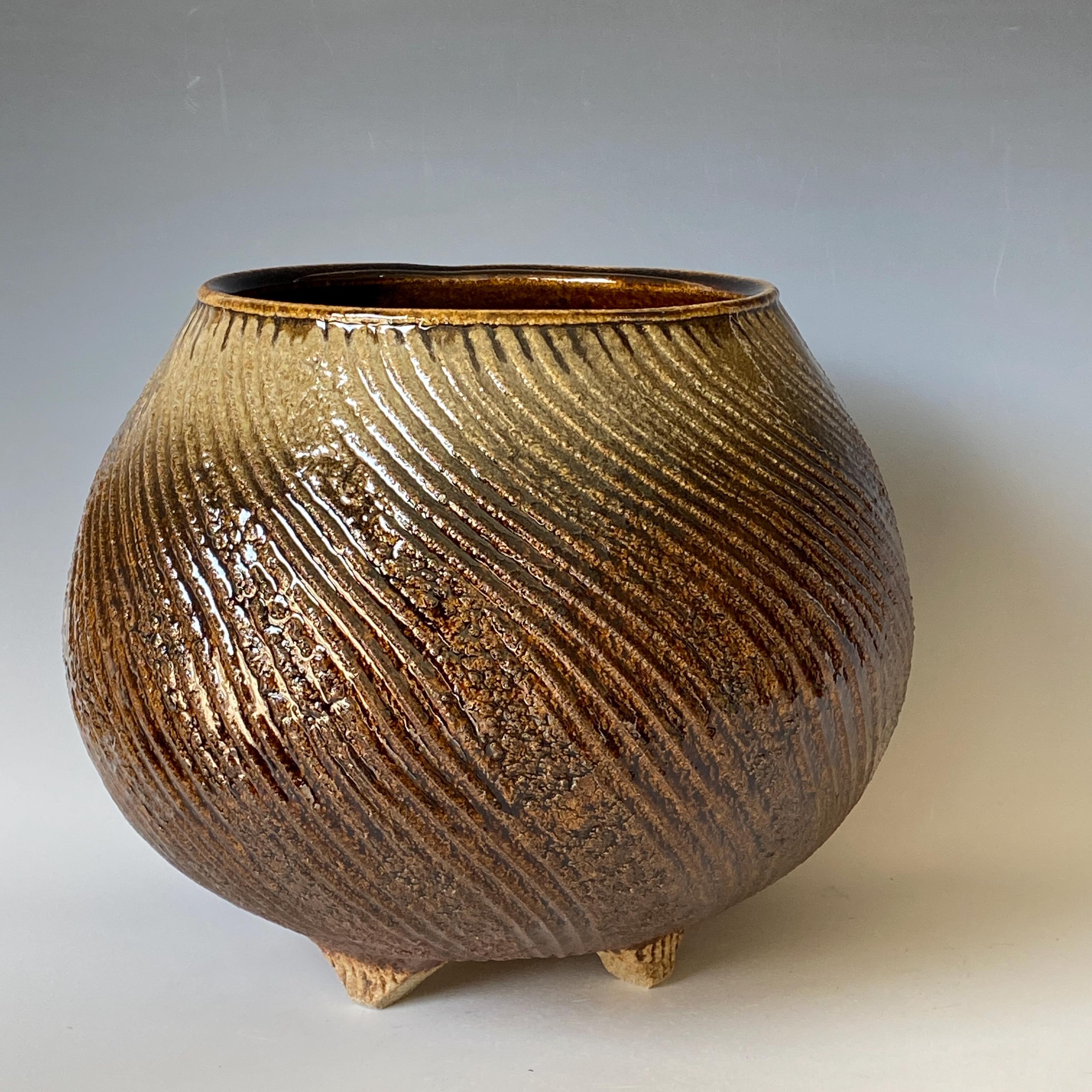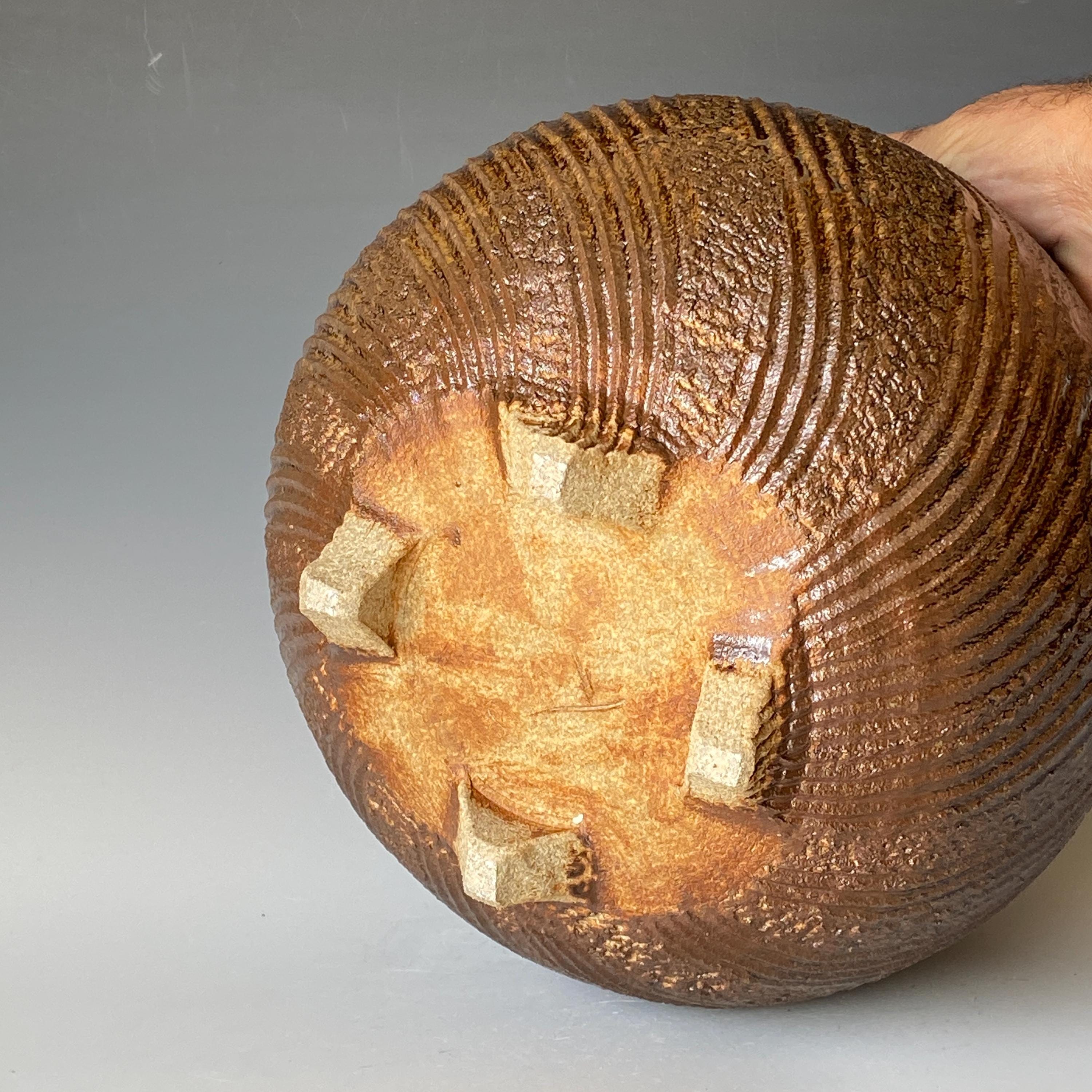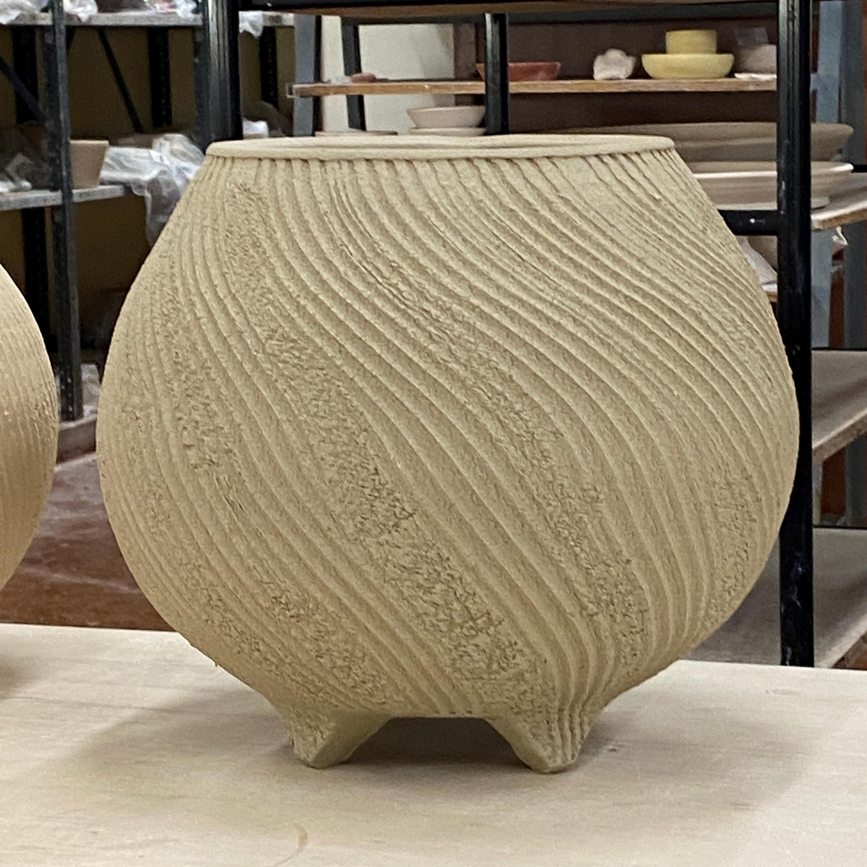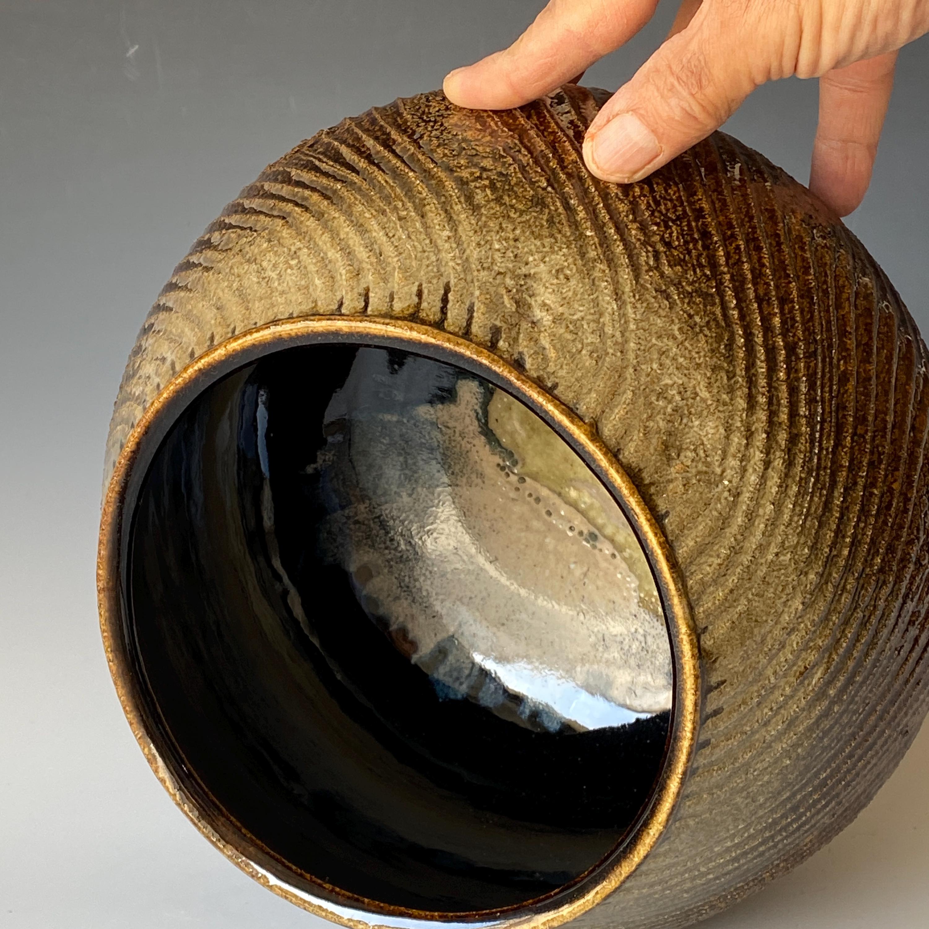 ATTENTION: This pot is throw from a type of clay with good amount of sand in it, which creates a rough surface on areas that left un-glazed.
