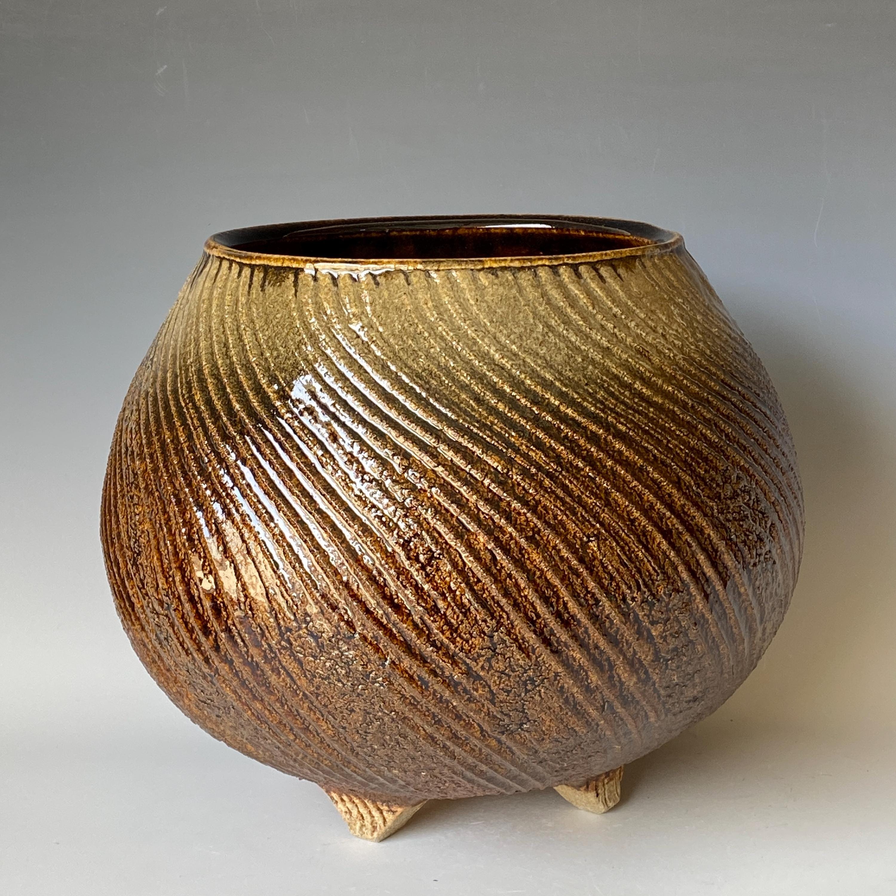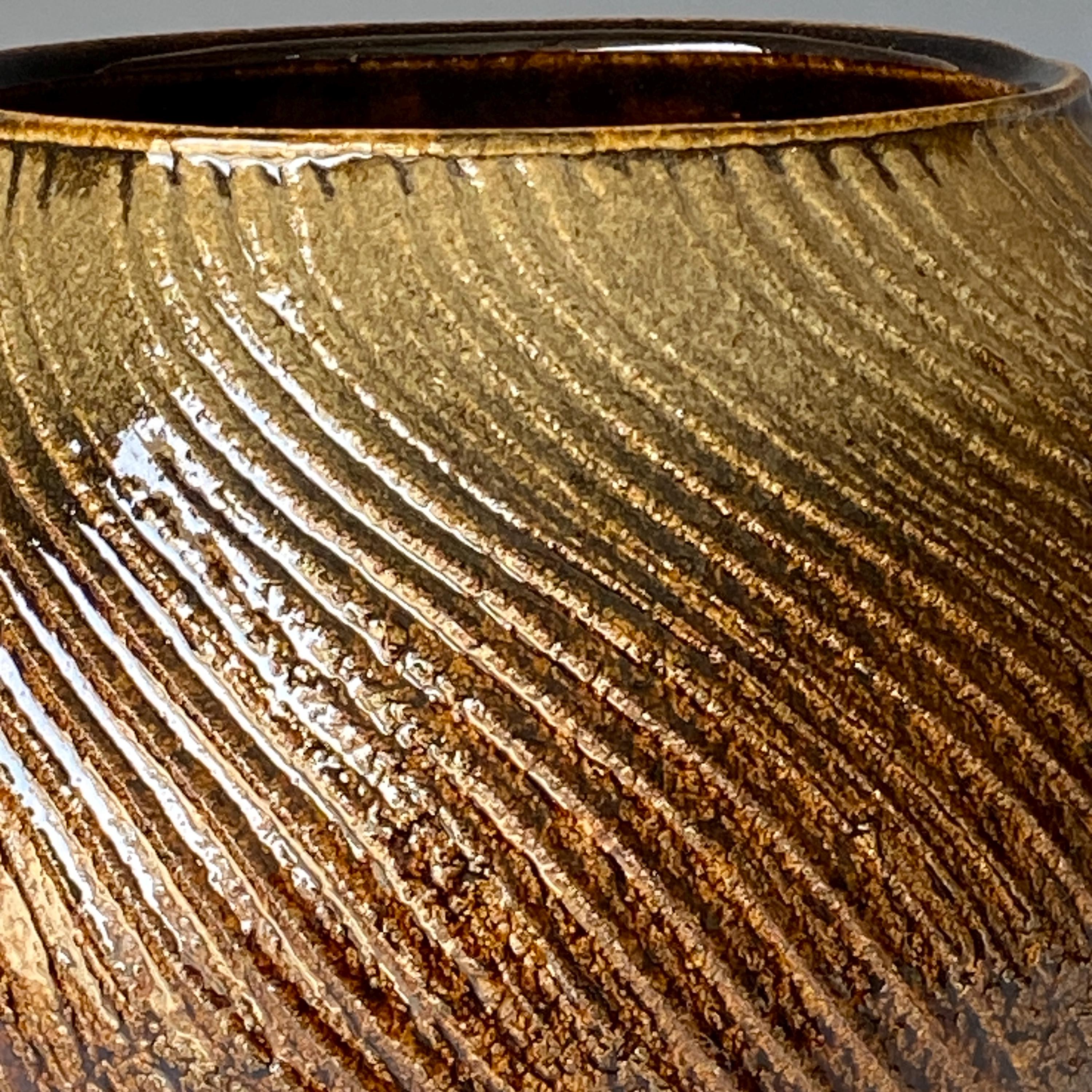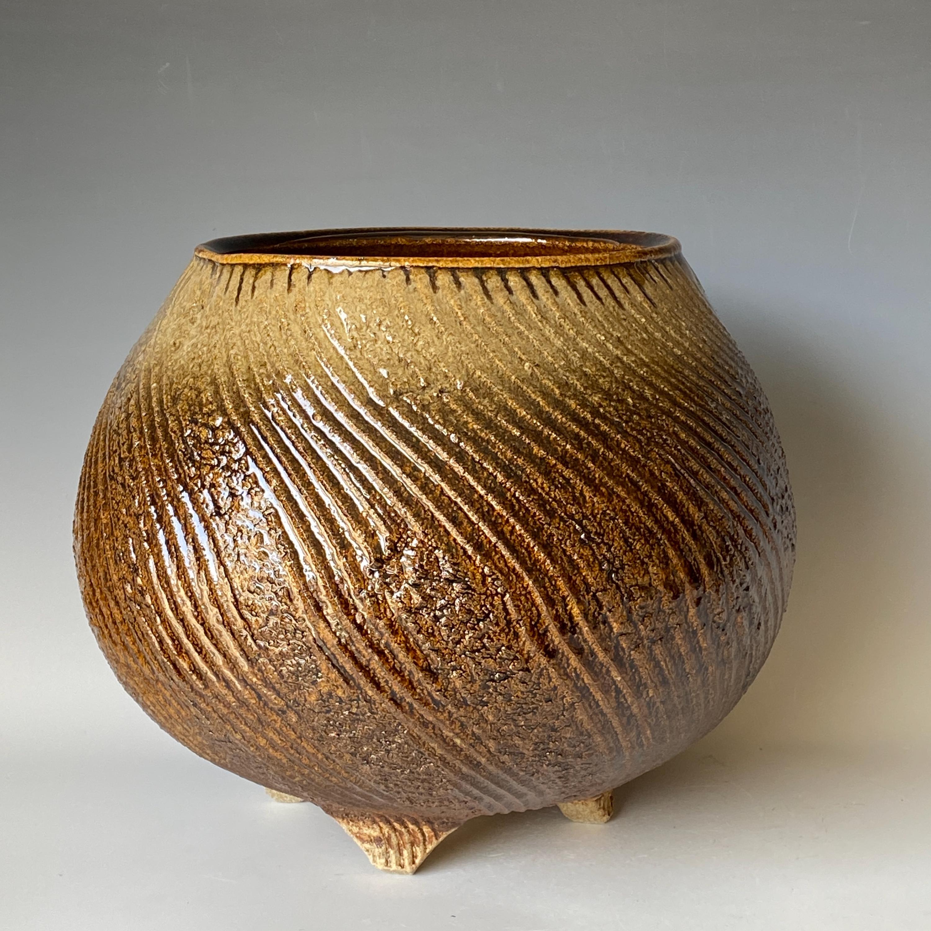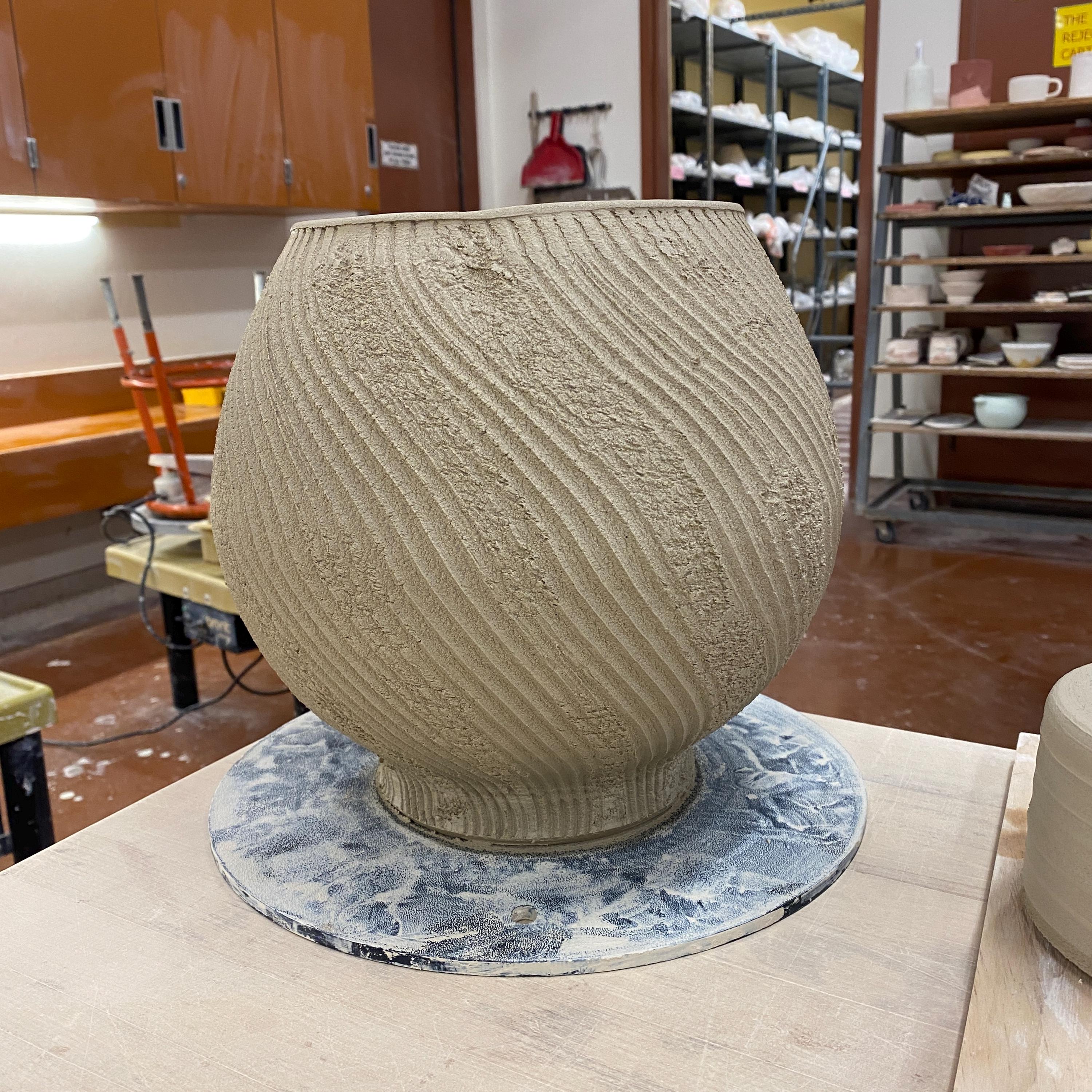 ATTENTION: This pot is throw from a type of clay with good amount of sand in it, which creates a rough surface on areas that left un-glazed.