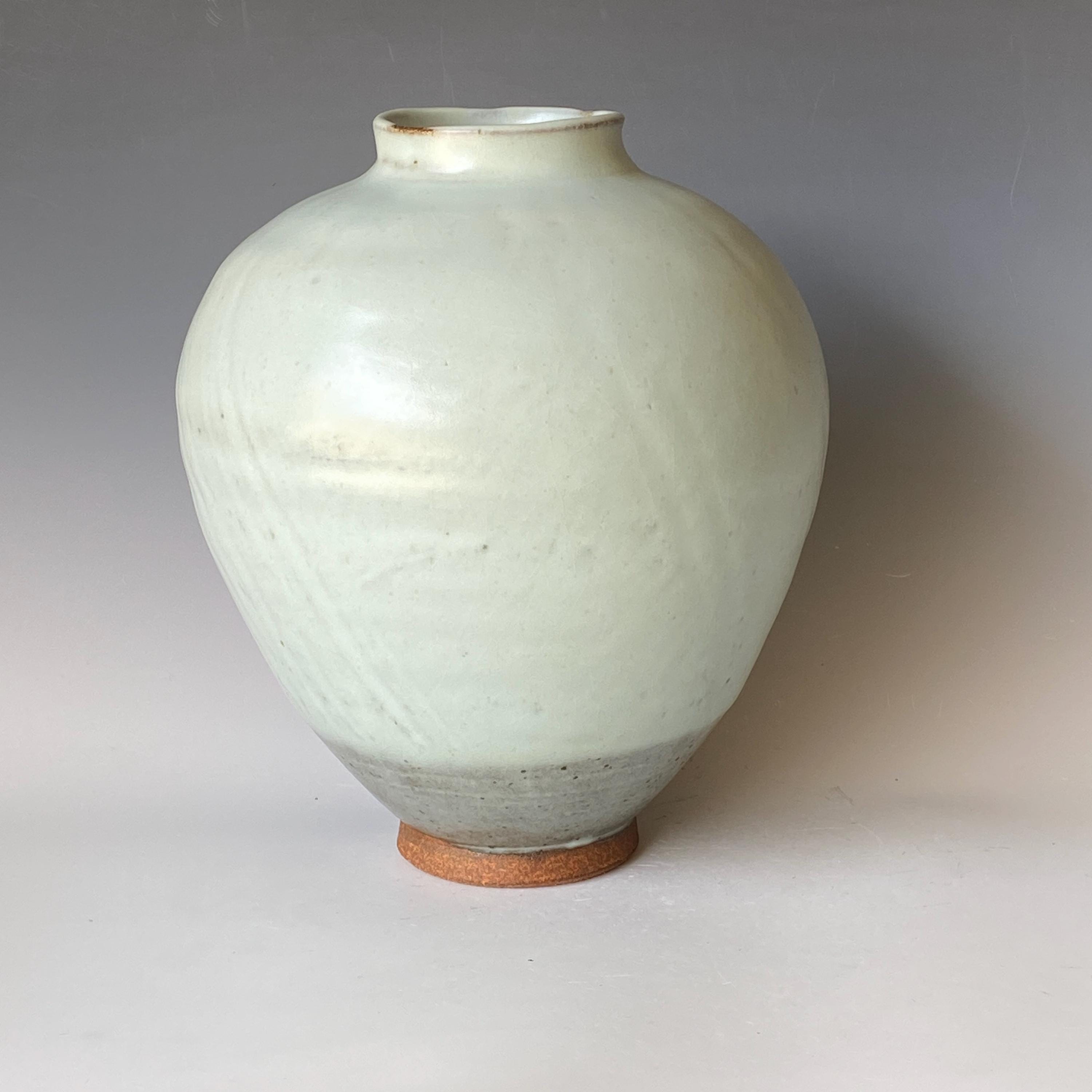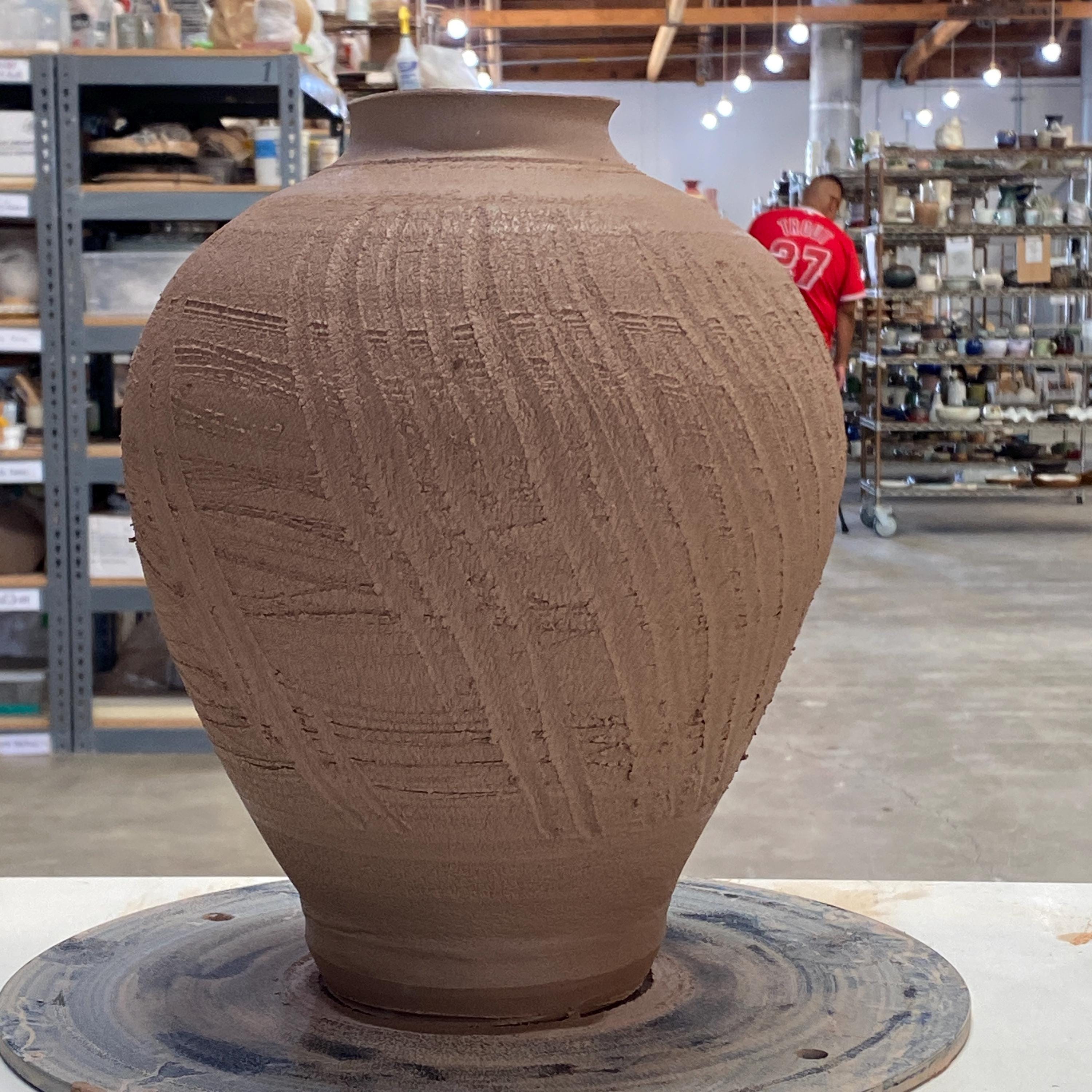 Wheel thrown ceramic vase. It measures height 9.5" * width 8" * rim 3".