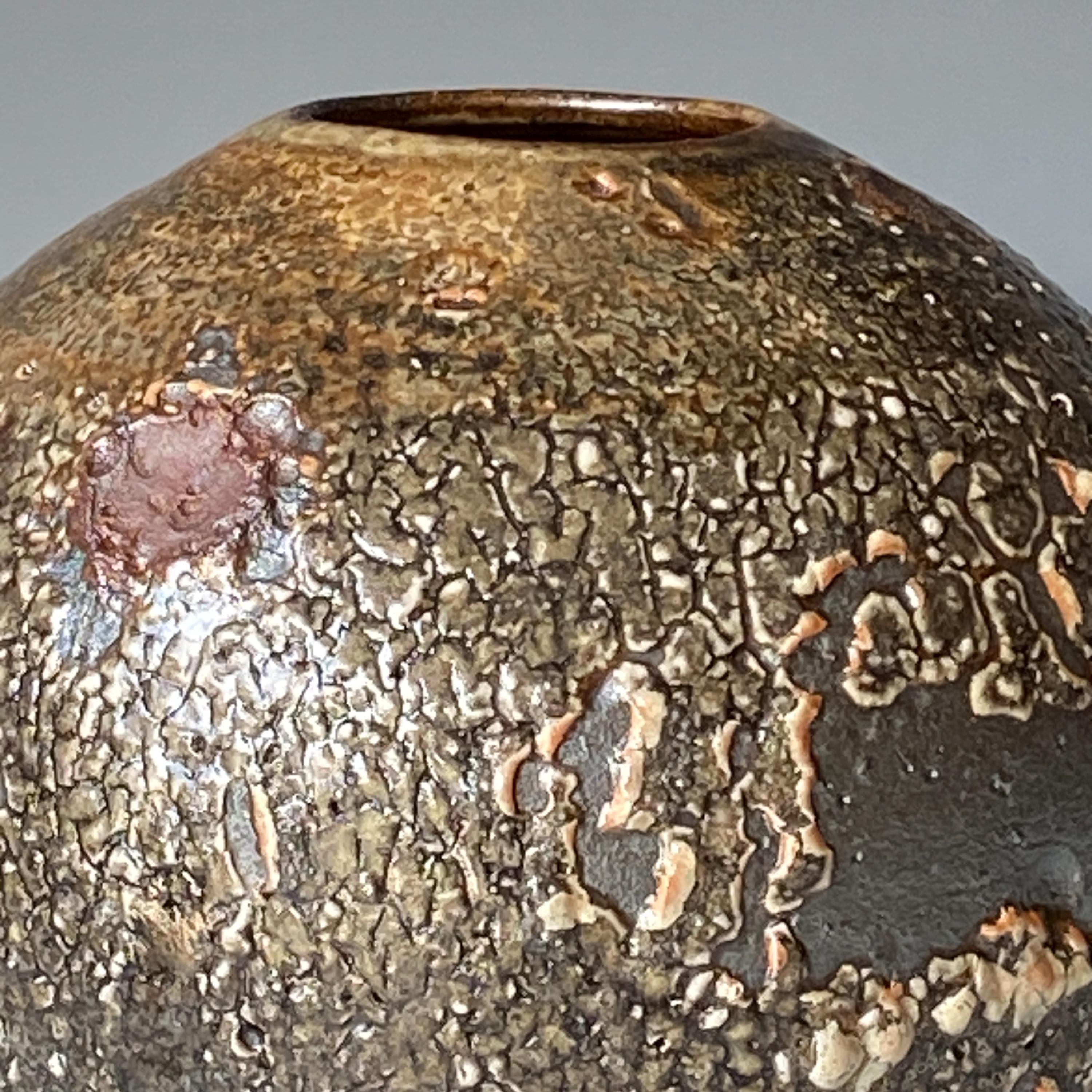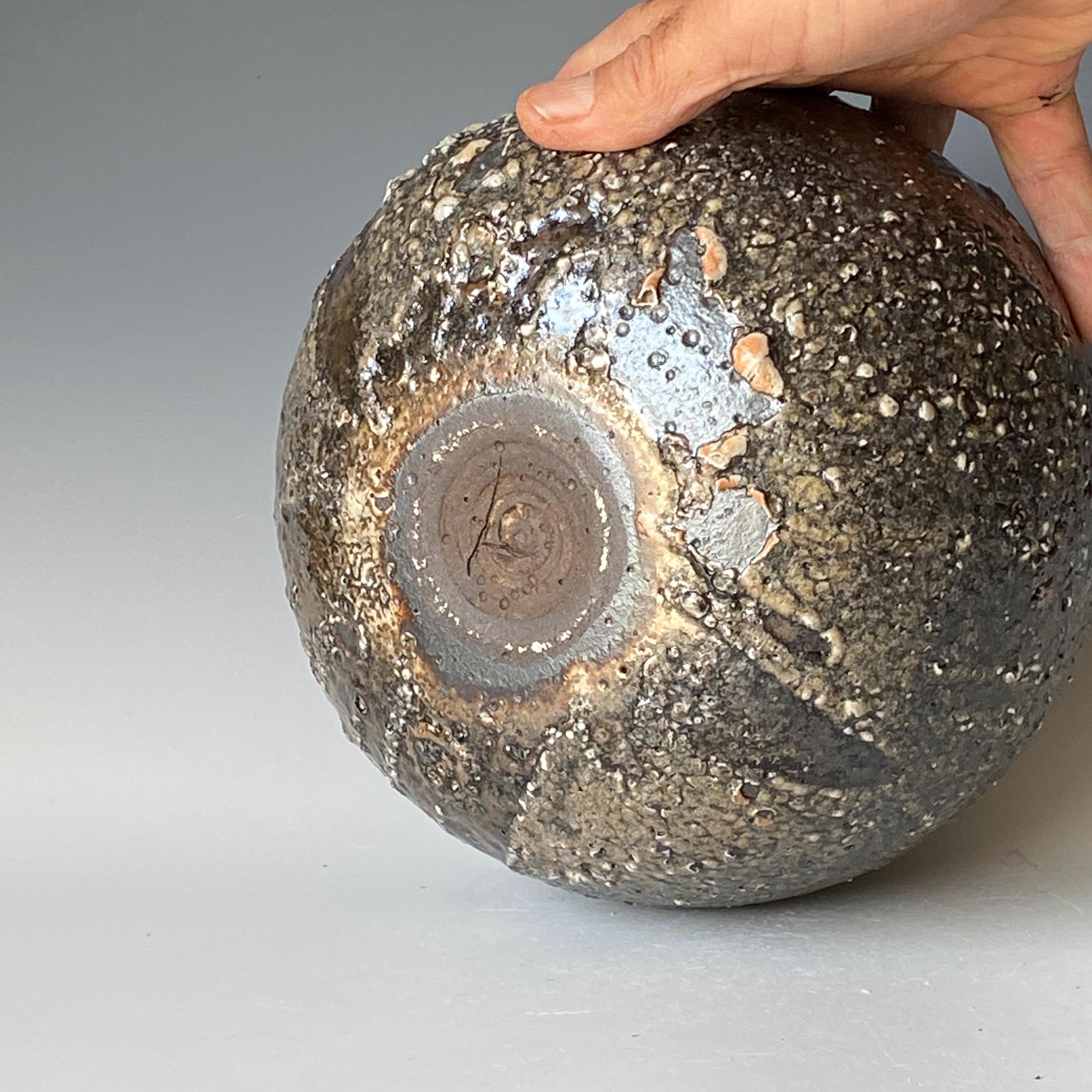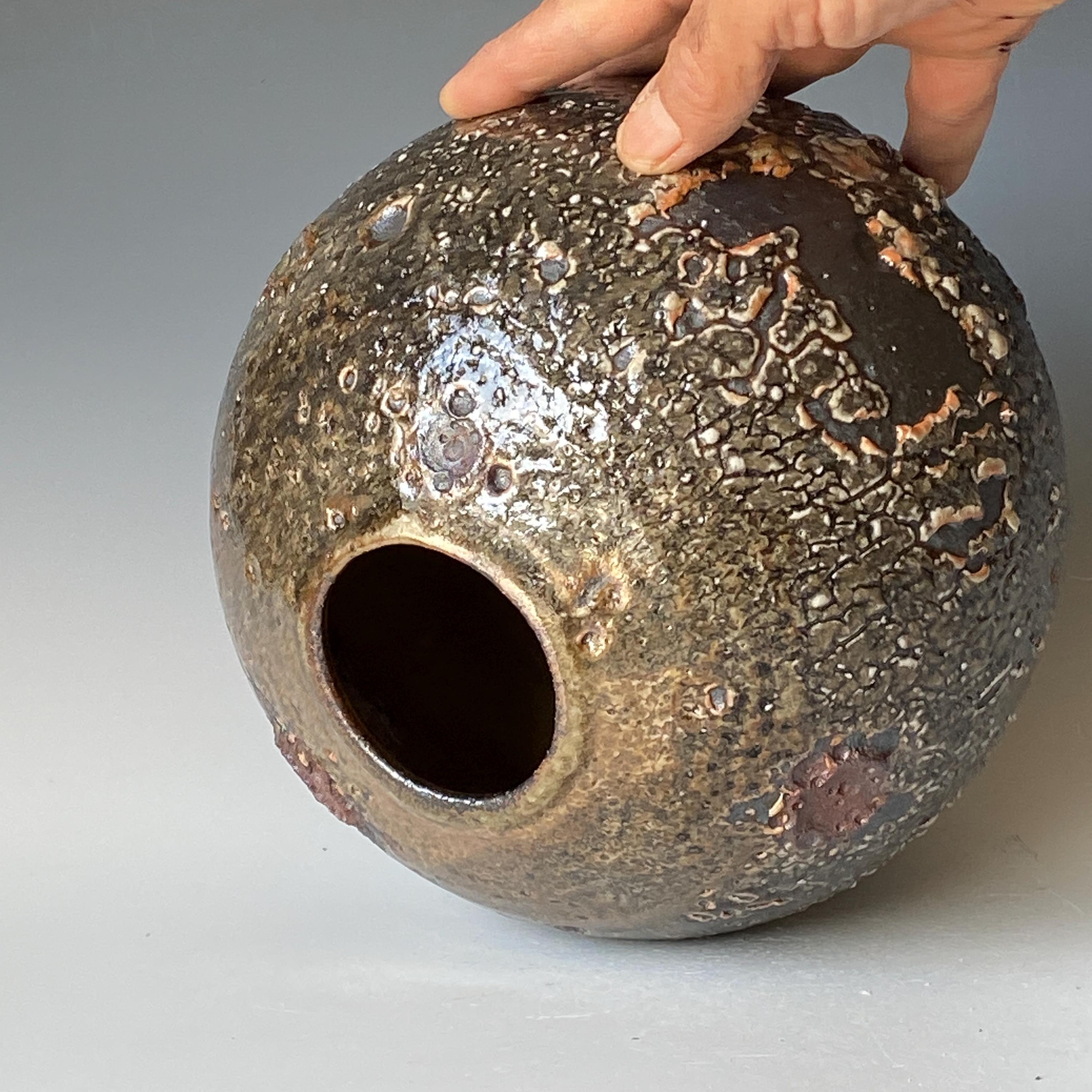 Wheel thrown ceramic Sphere. It measures height 7" * width 8" * rim 2.5".