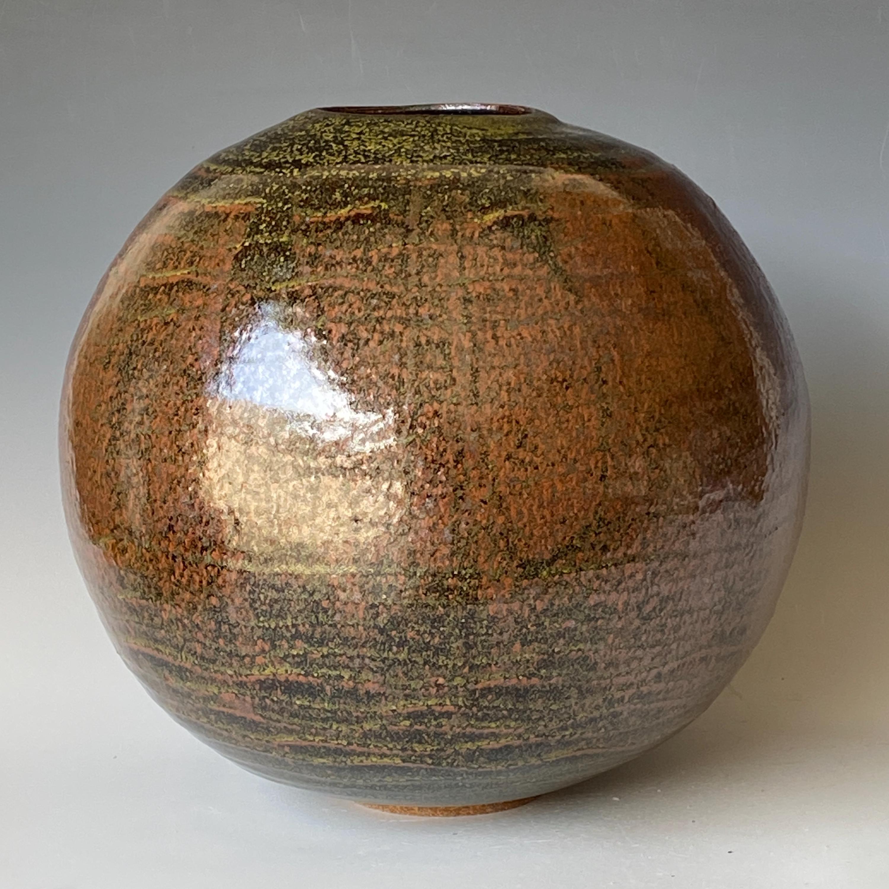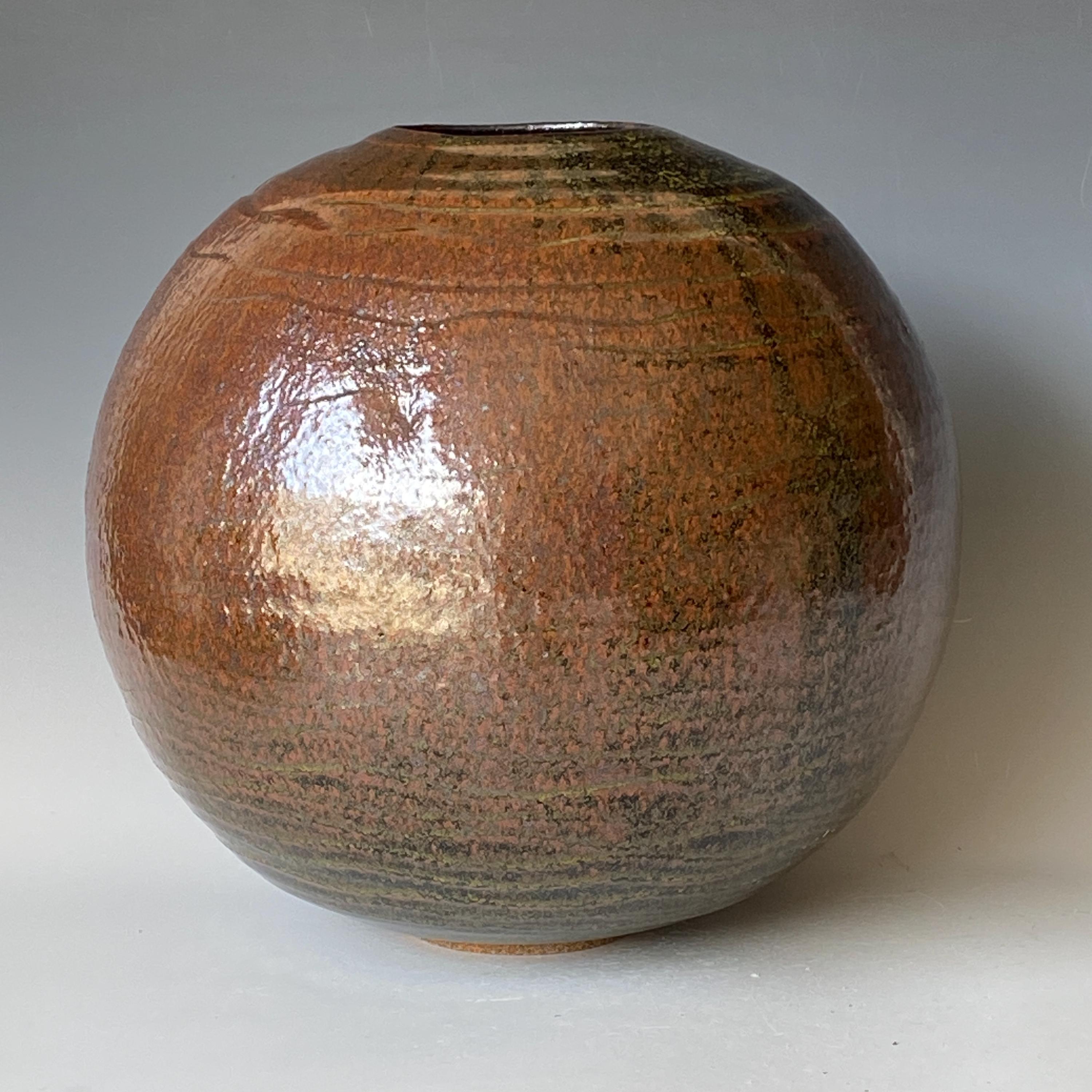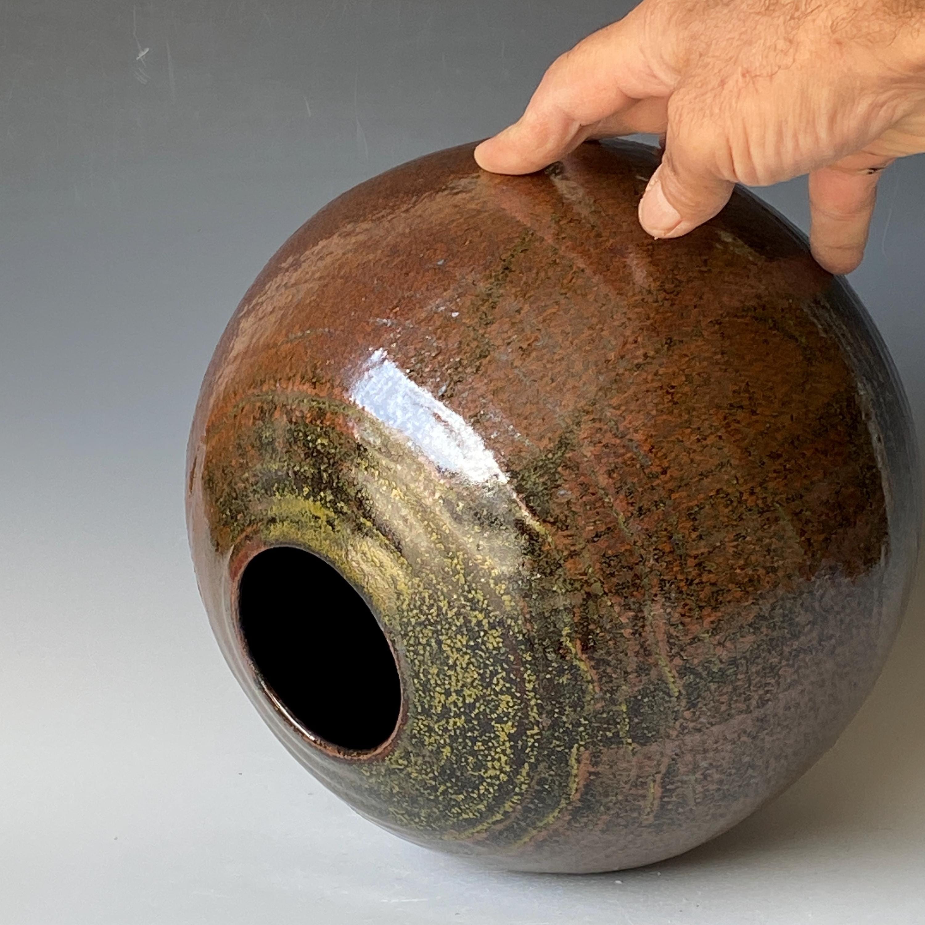 Wheel thrown ceramic vase. It measures height 9" * width 9.7" * rim 2.8".