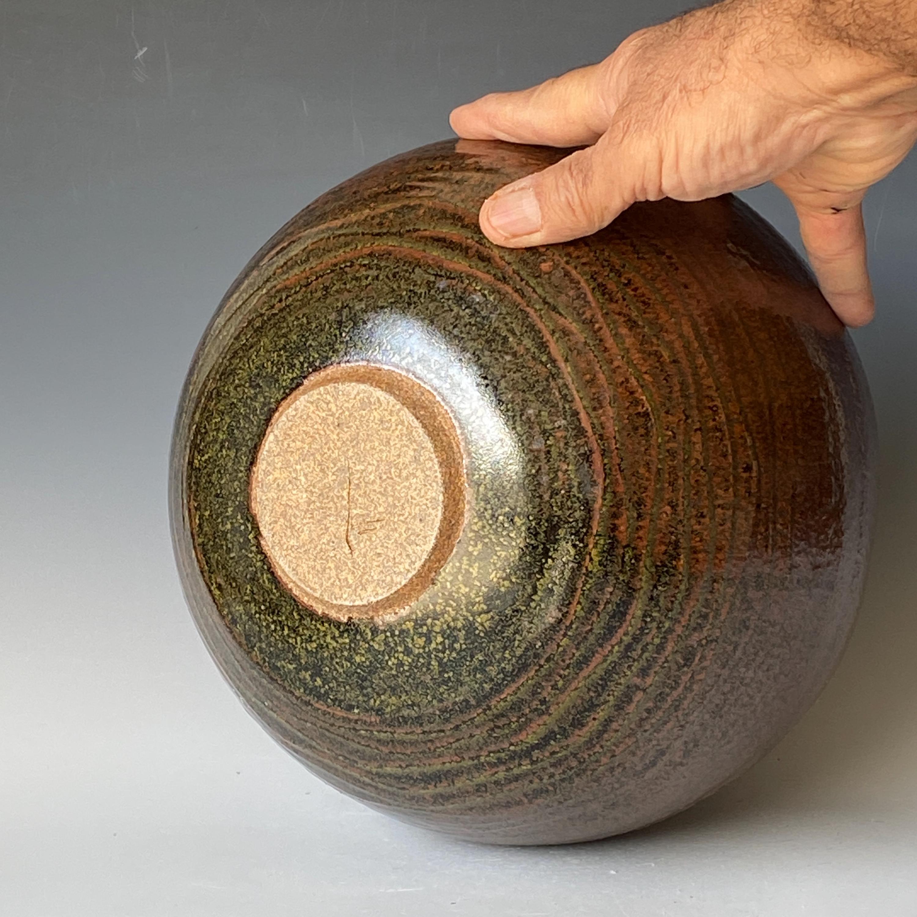 ATTENTION: This piece is throw from a type of clay with good amount of sand in it, which creates a rough surface on areas that left un-glazed.