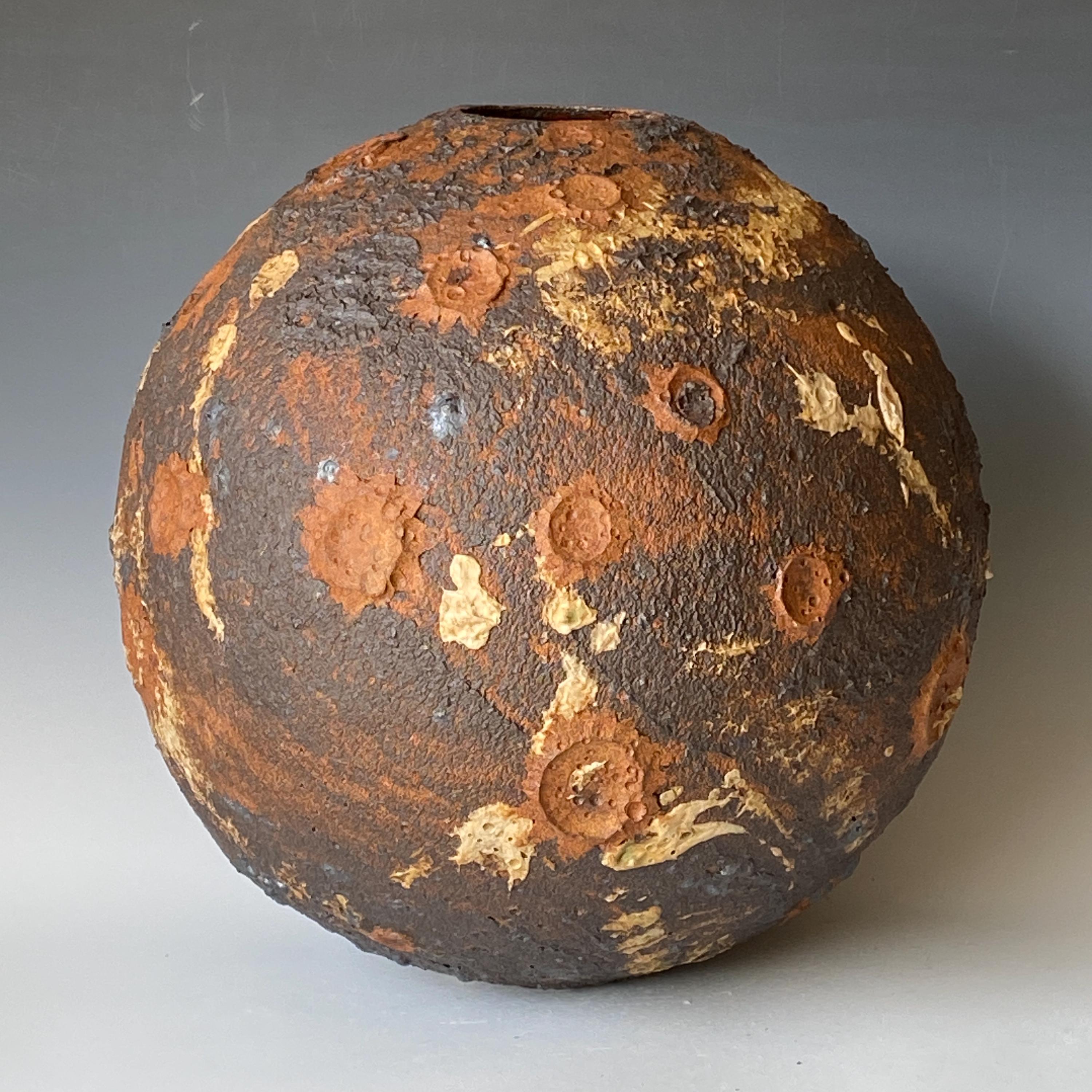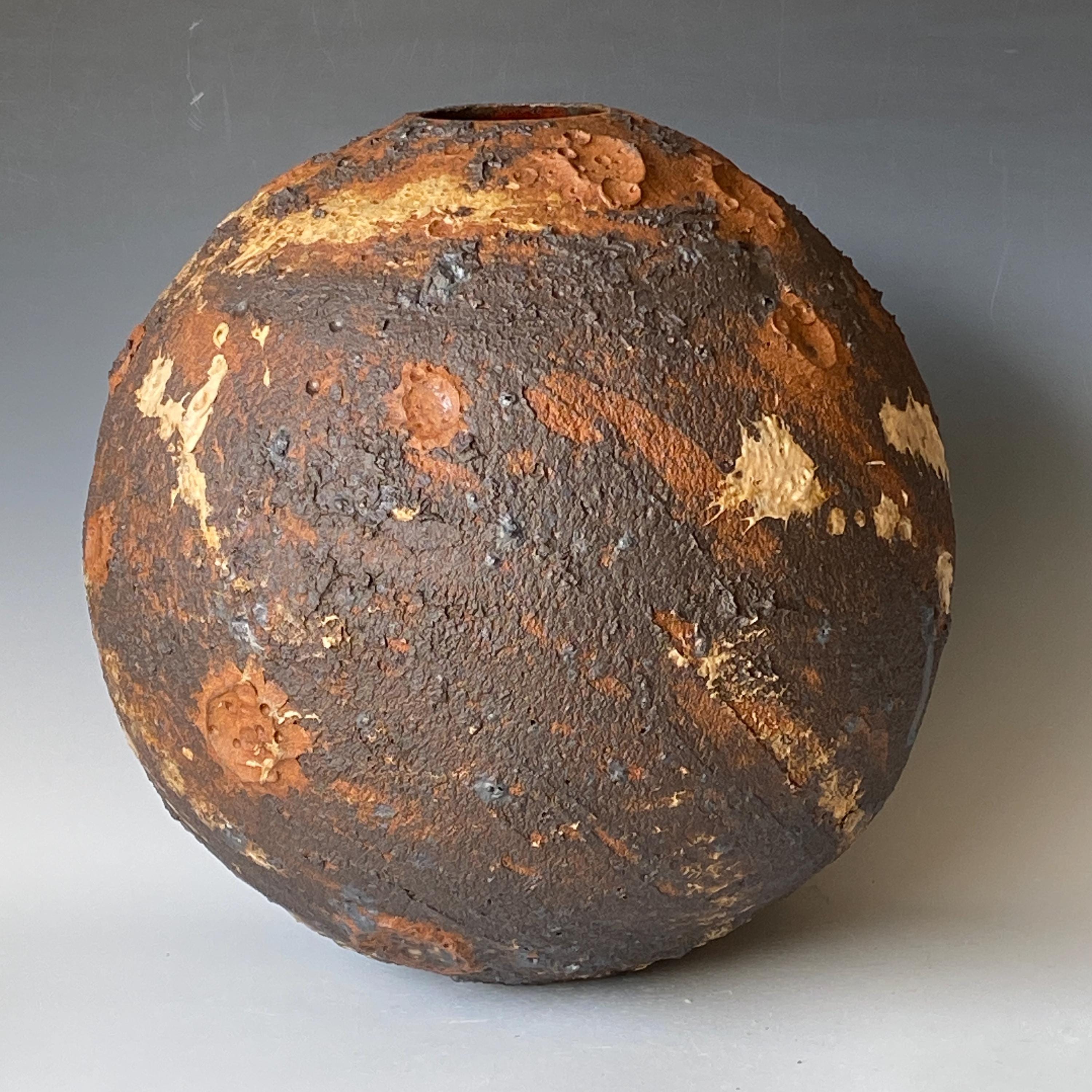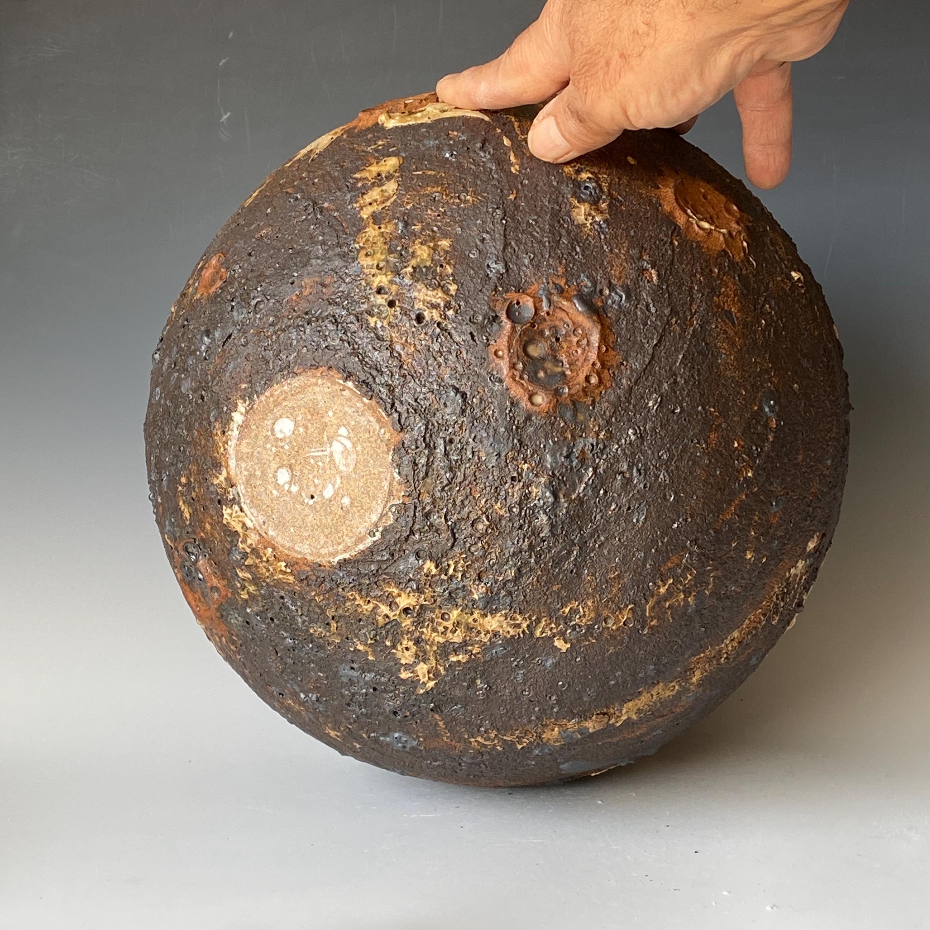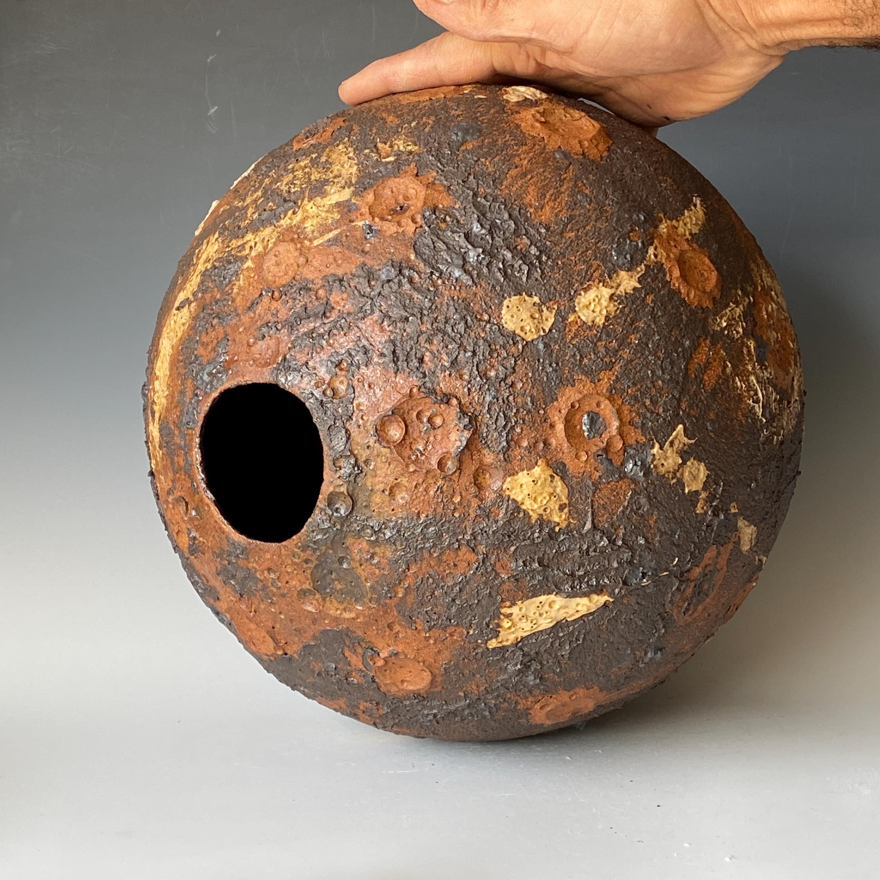 Wheel thrown ceramic Sphere. It measures height 11" * width 11" * rim 2.5".