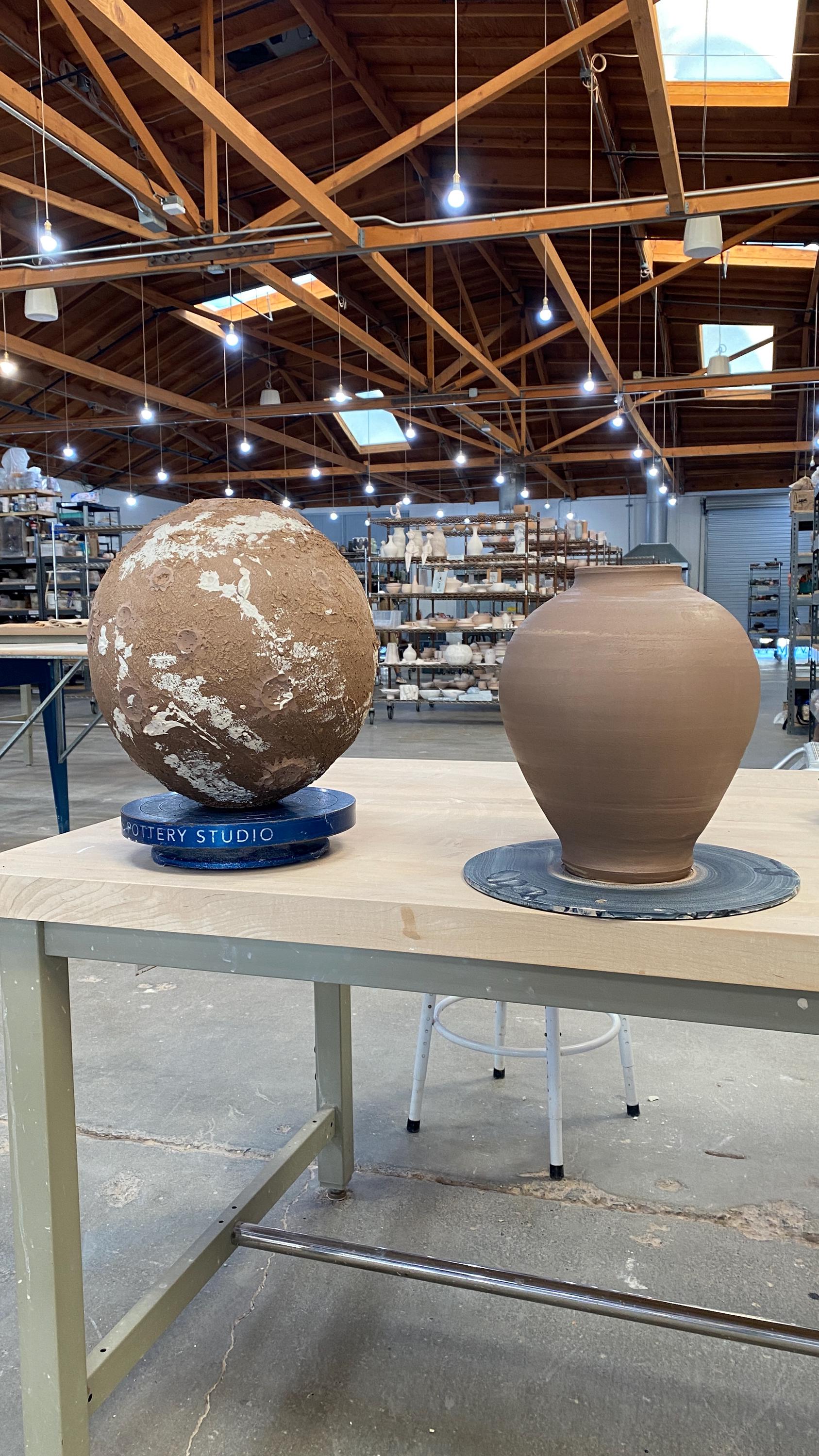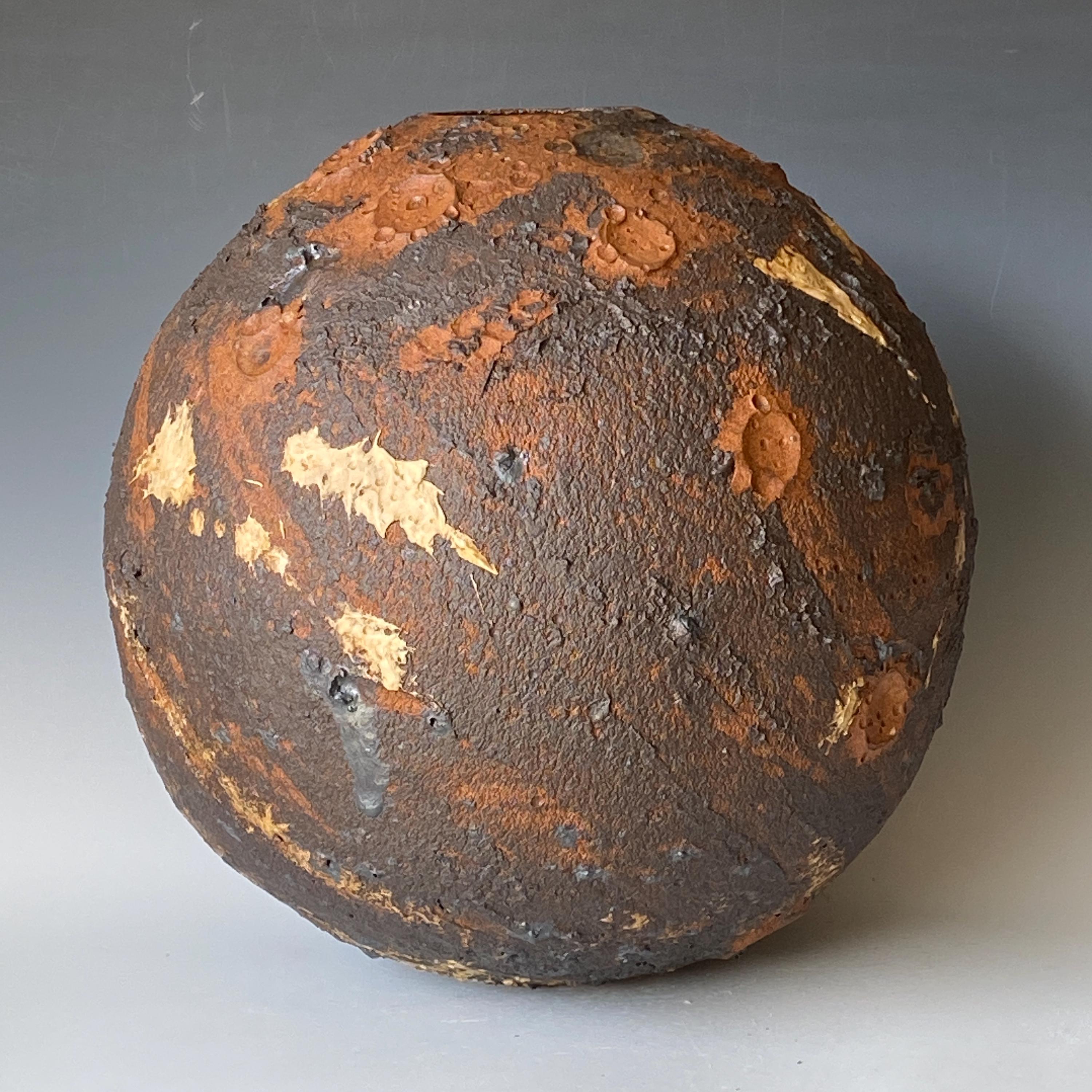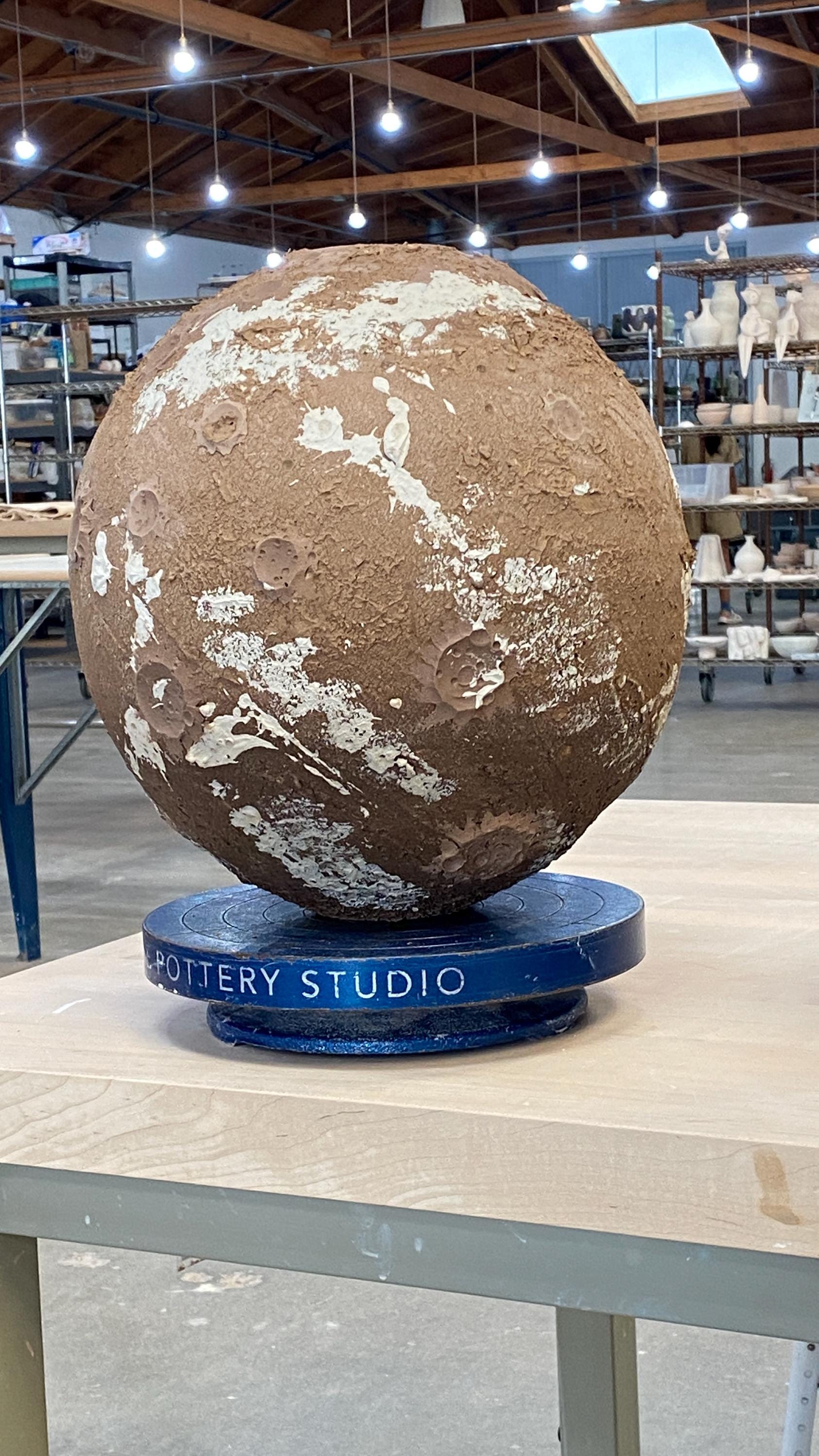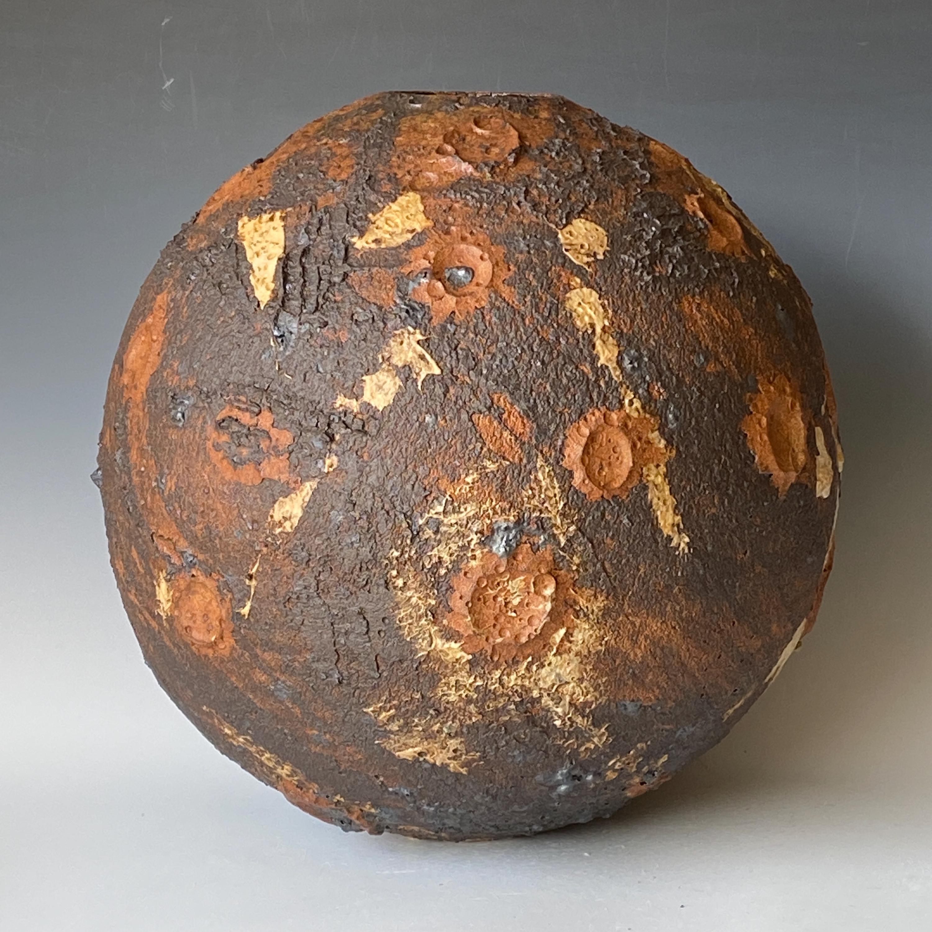 Wheel thrown ceramic Sphere. It measures height 11" * width 11" * rim 2.5".