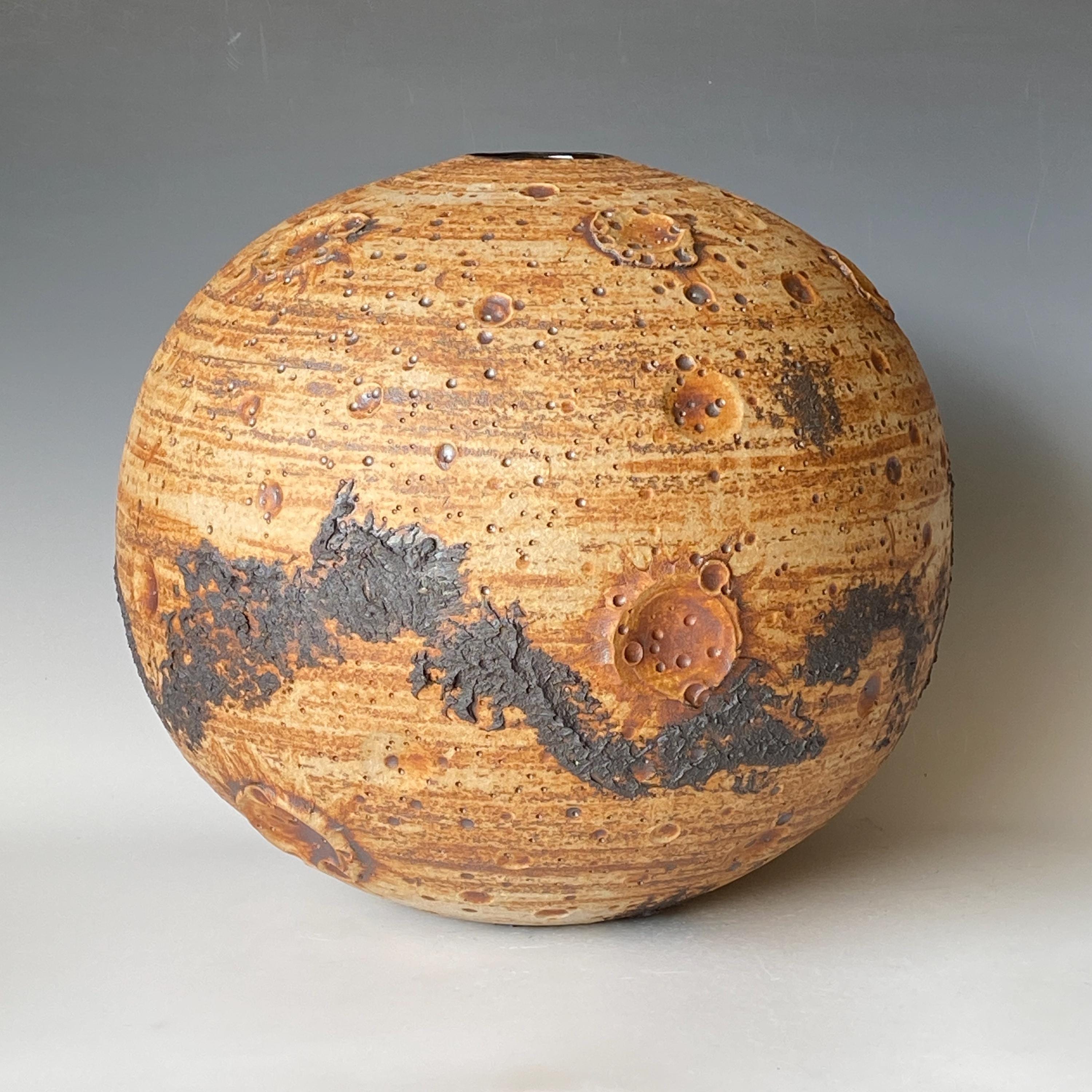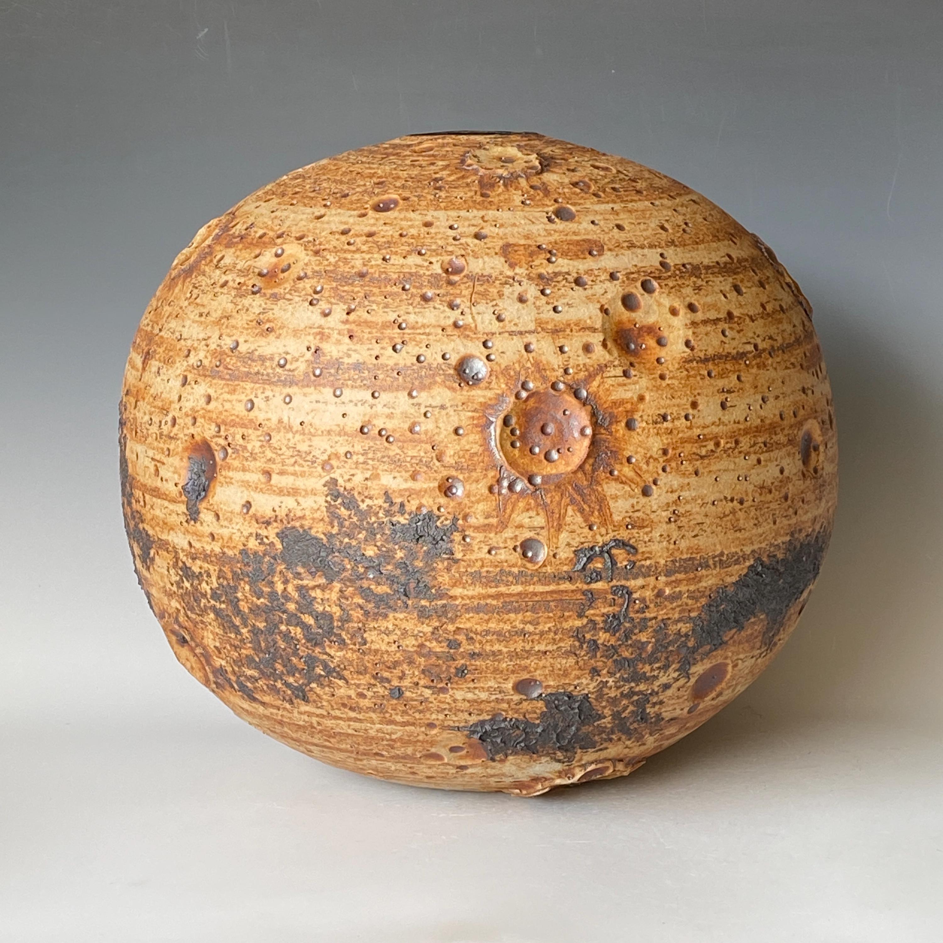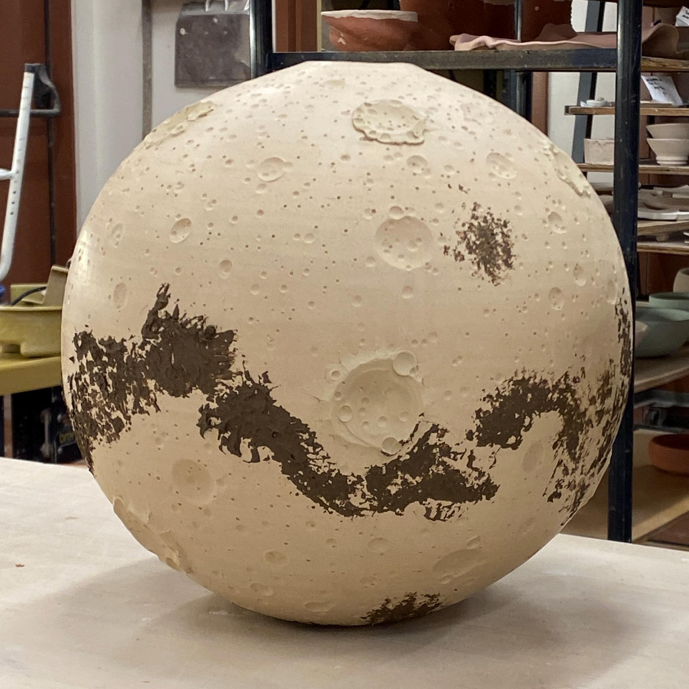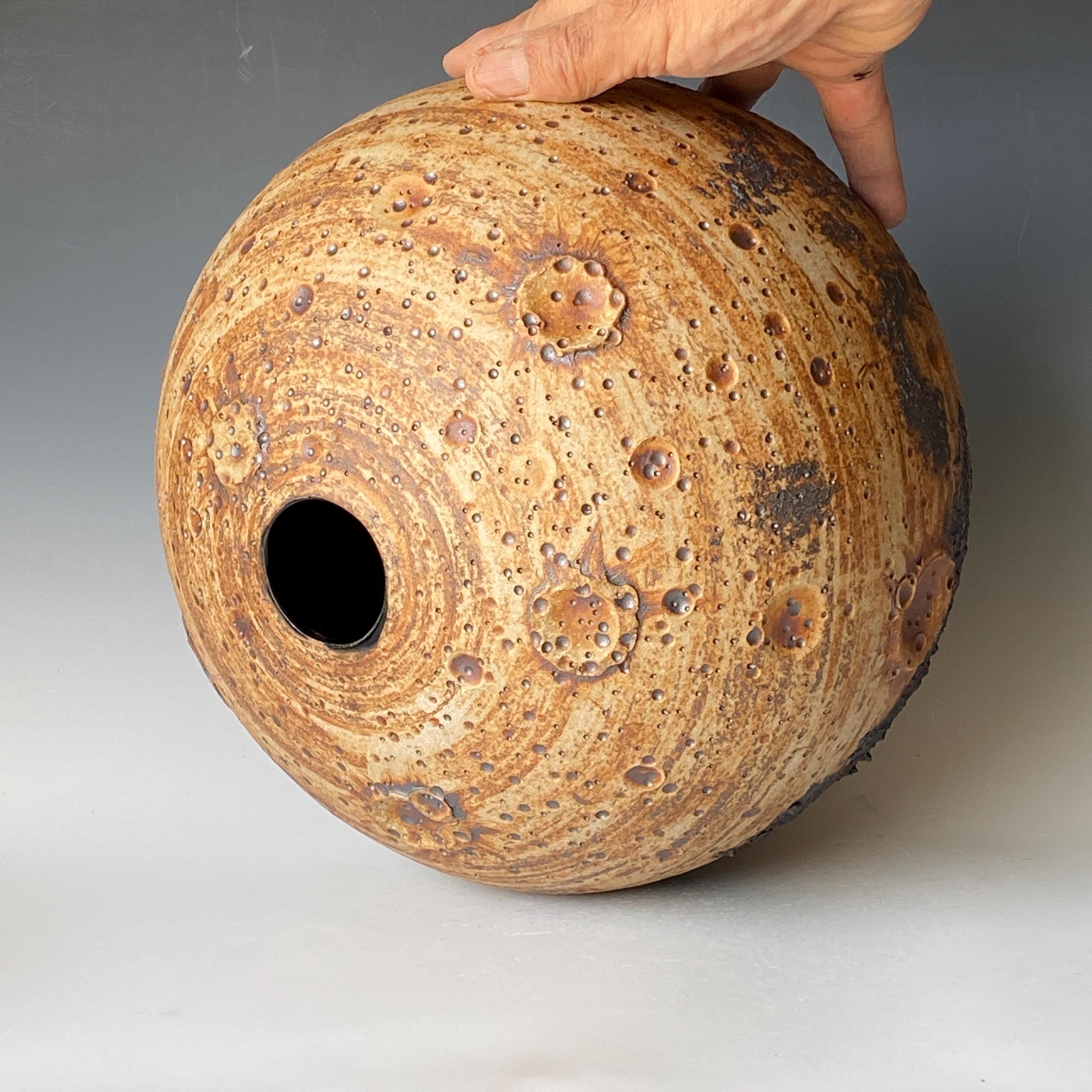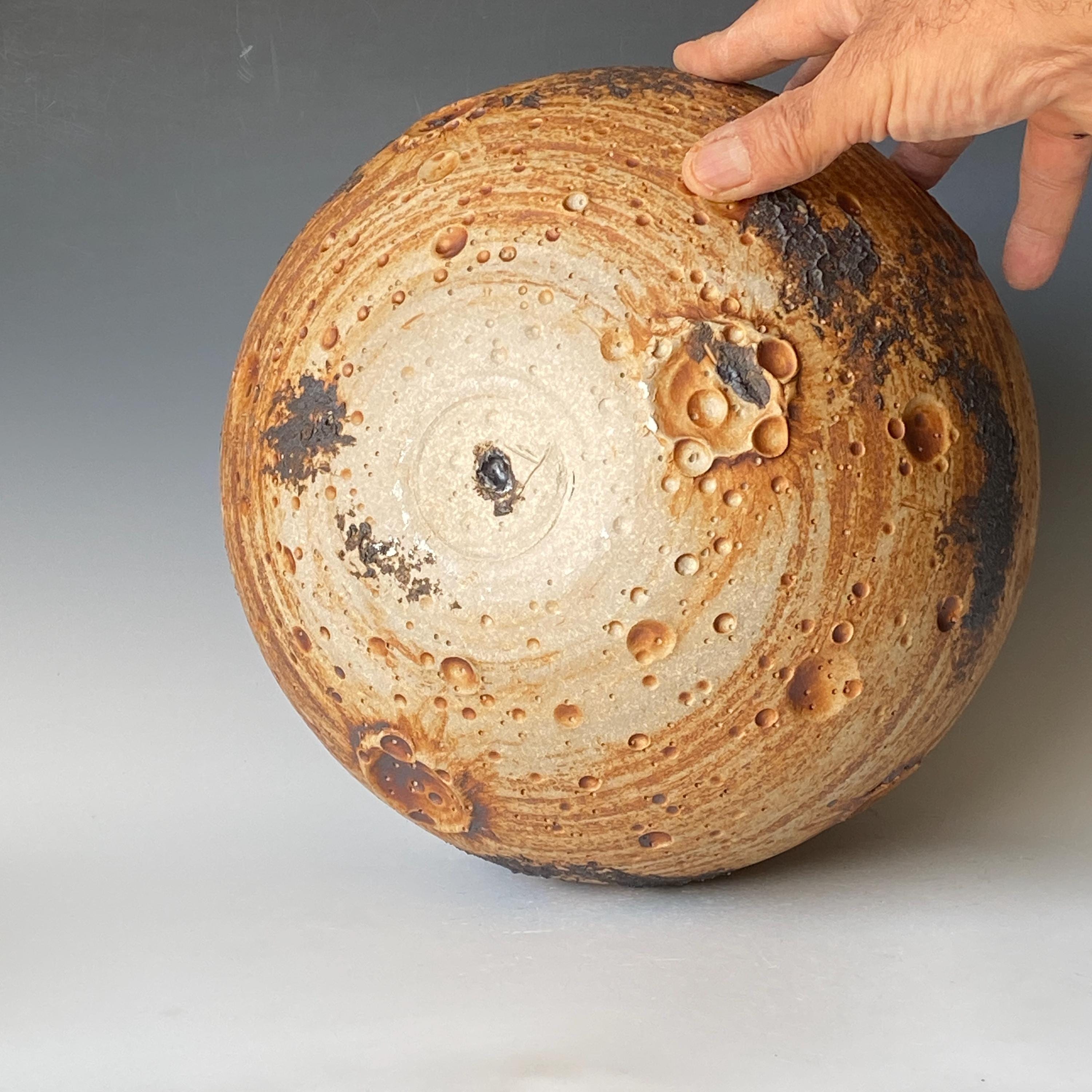 Wheel thrown ceramic Sphere. It measures height 9.5" * width 10.7" * rim 1.8 ".