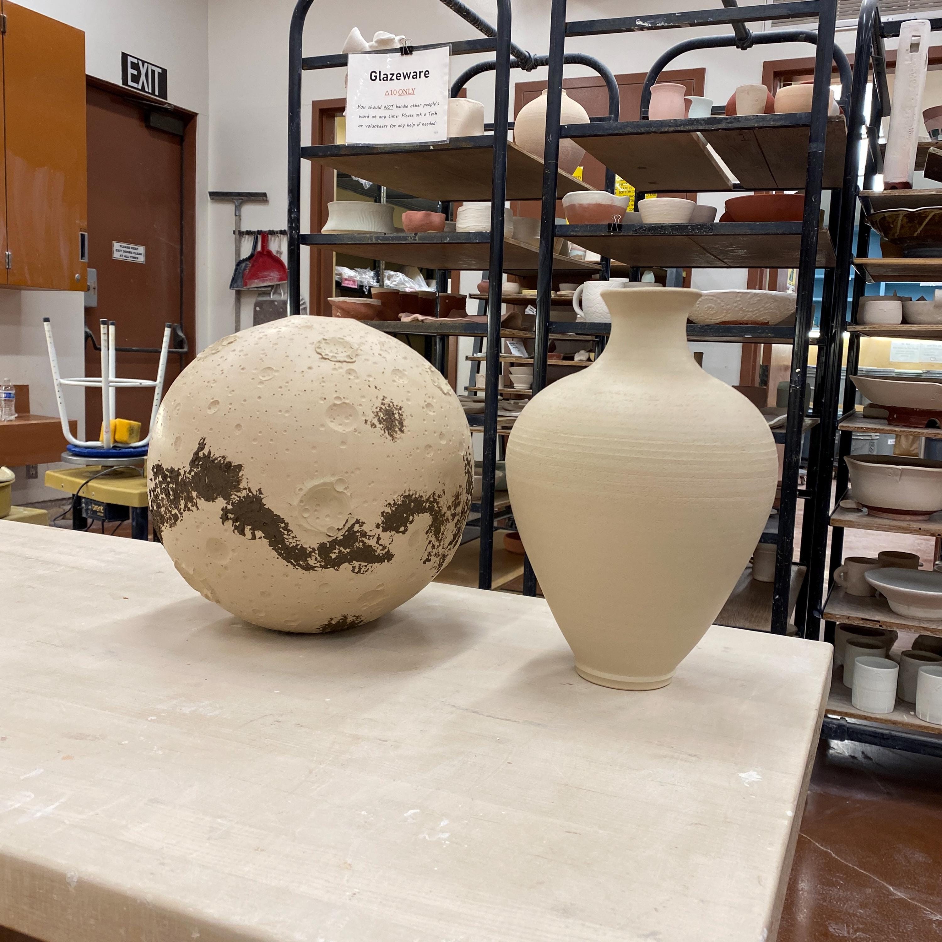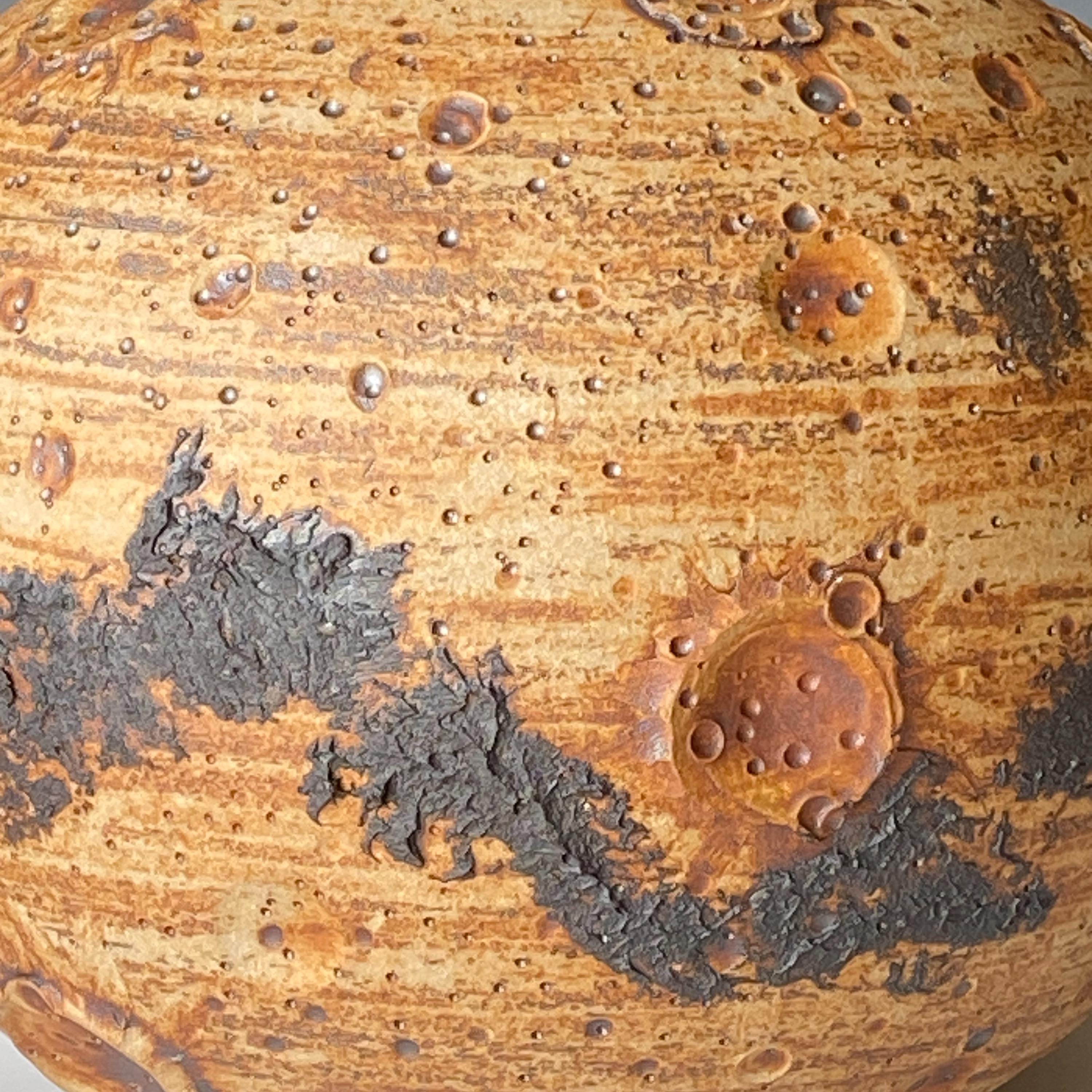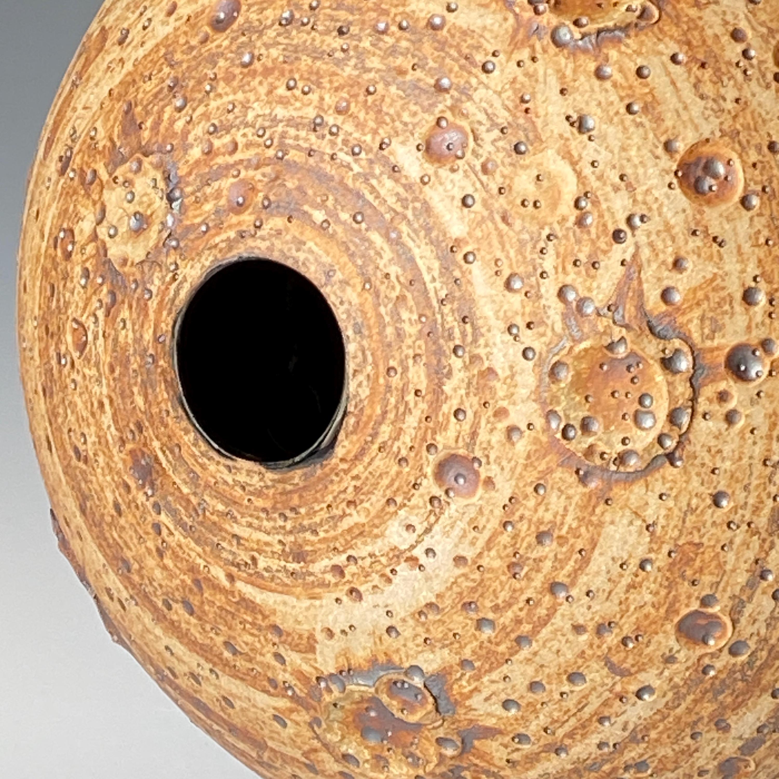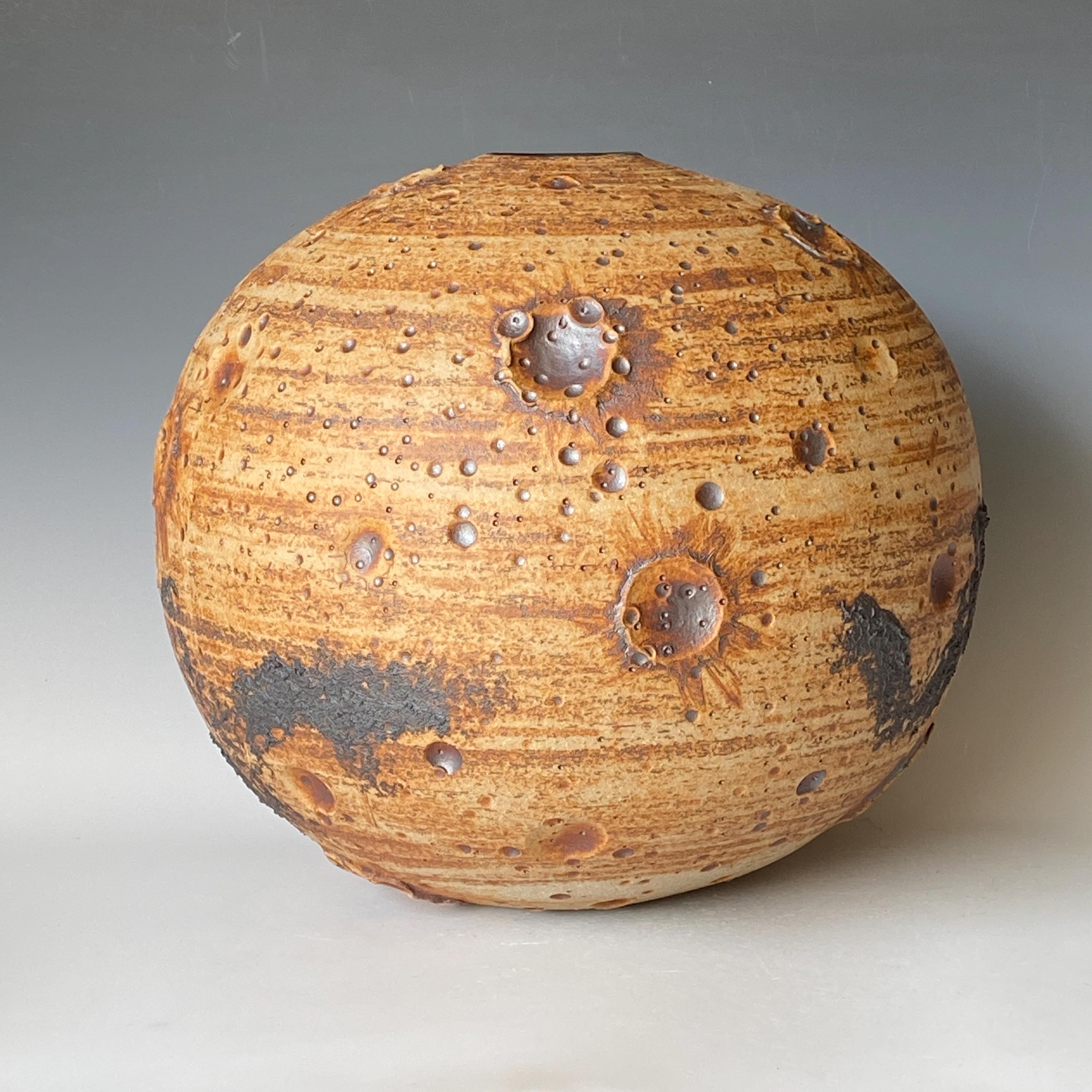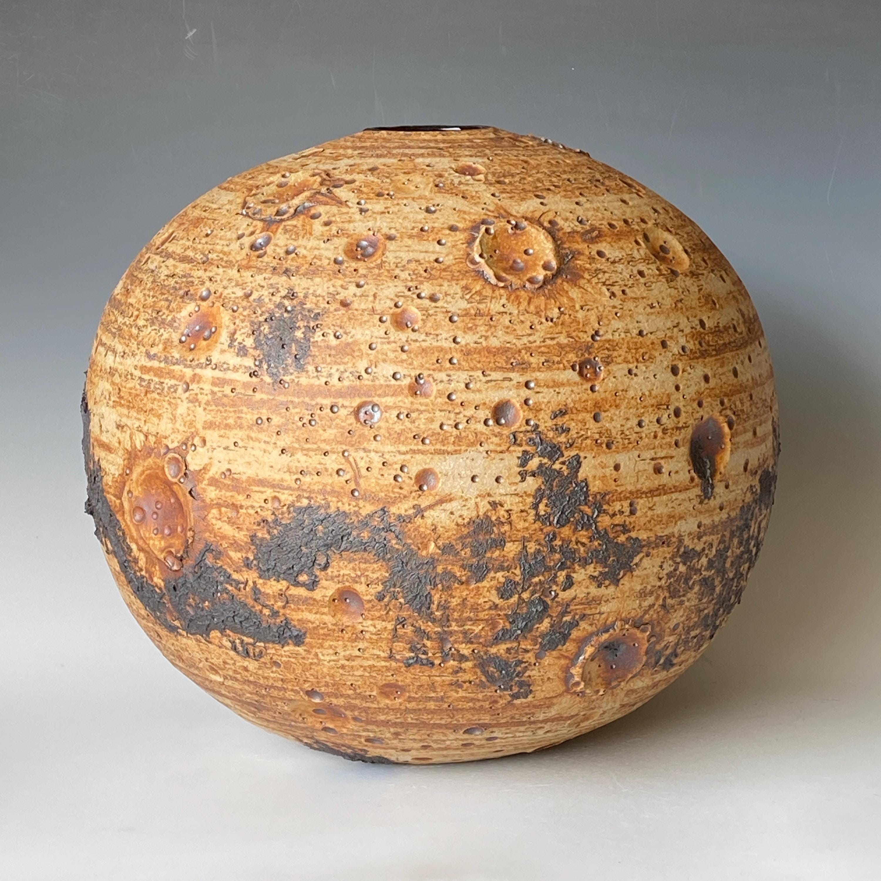 Wheel thrown ceramic Sphere. It measures height 9.5" * width 10.7" * rim 1.8 ".
