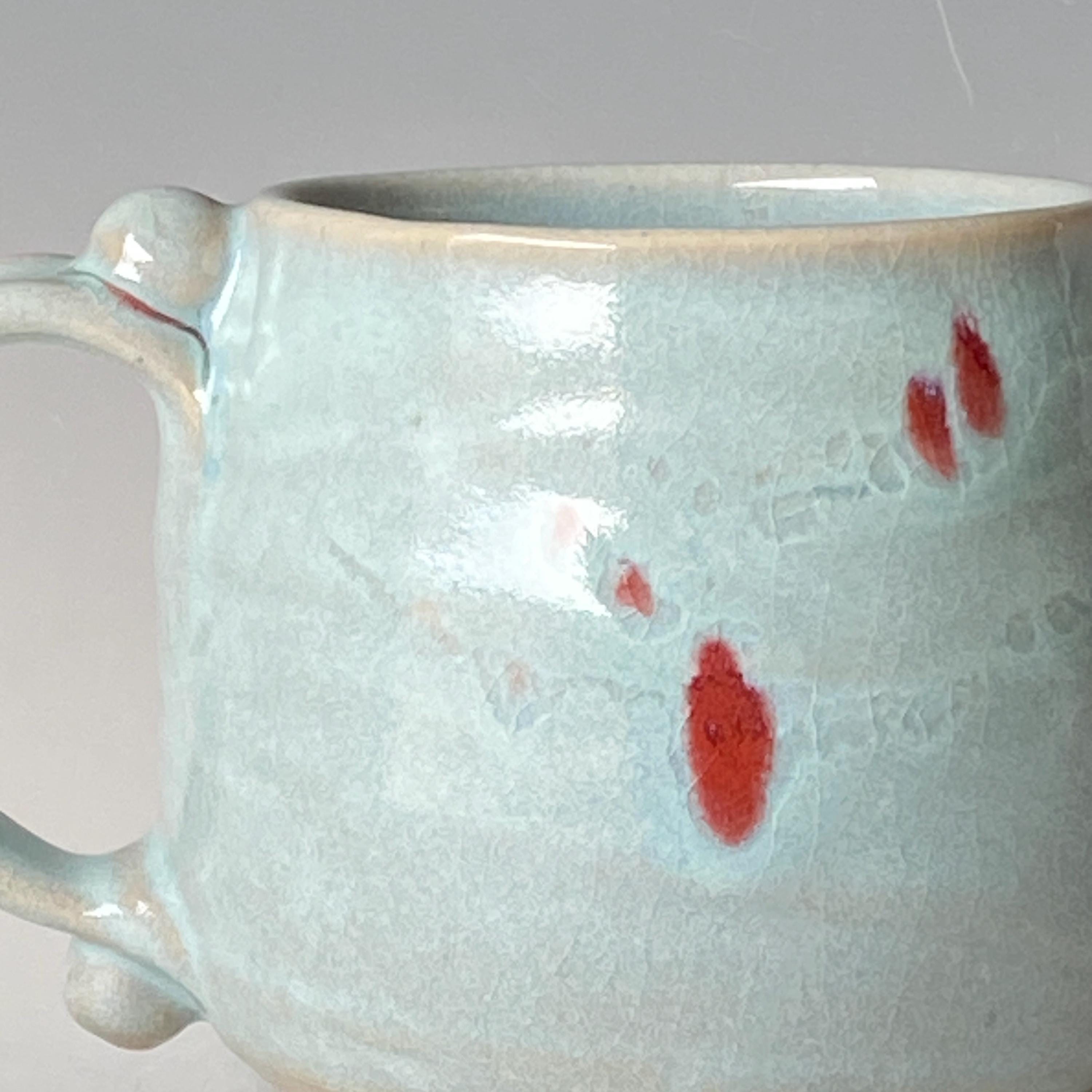 ATTENTION: This Mug is throw from a type of clay with good amount of sand in it, which creates a rough surface on areas that left un-glazed.