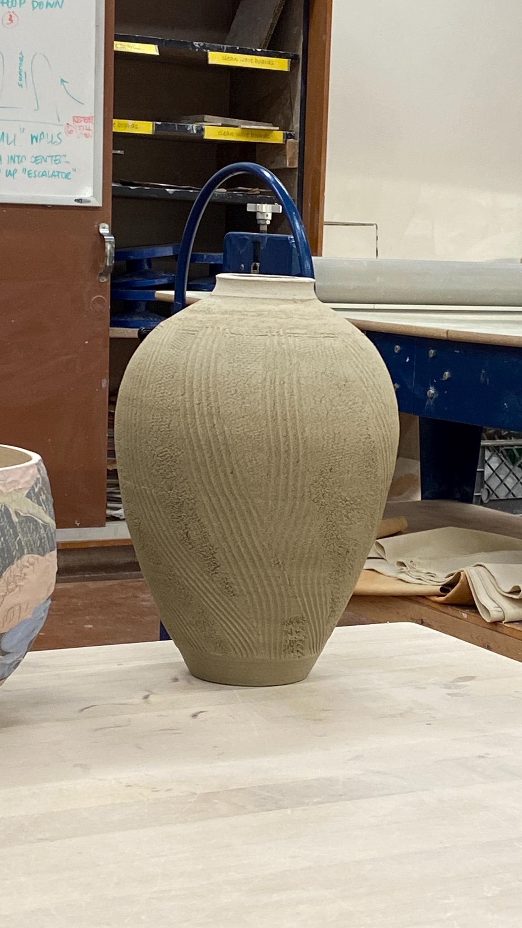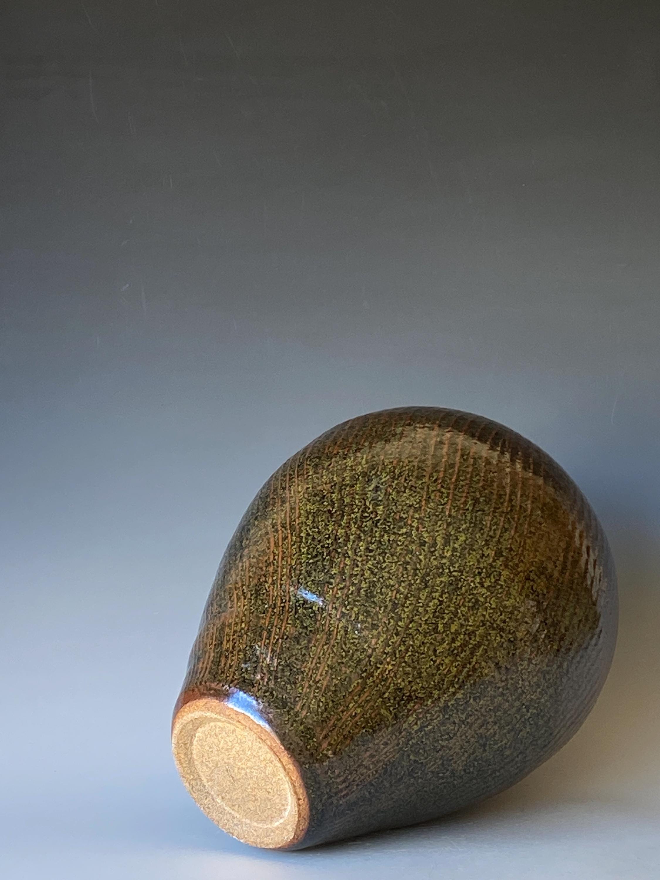 ATTENTION: This piece is throw from a type of clay with good amount of sand in it, which creates a rough surface on areas that left un-glazed.