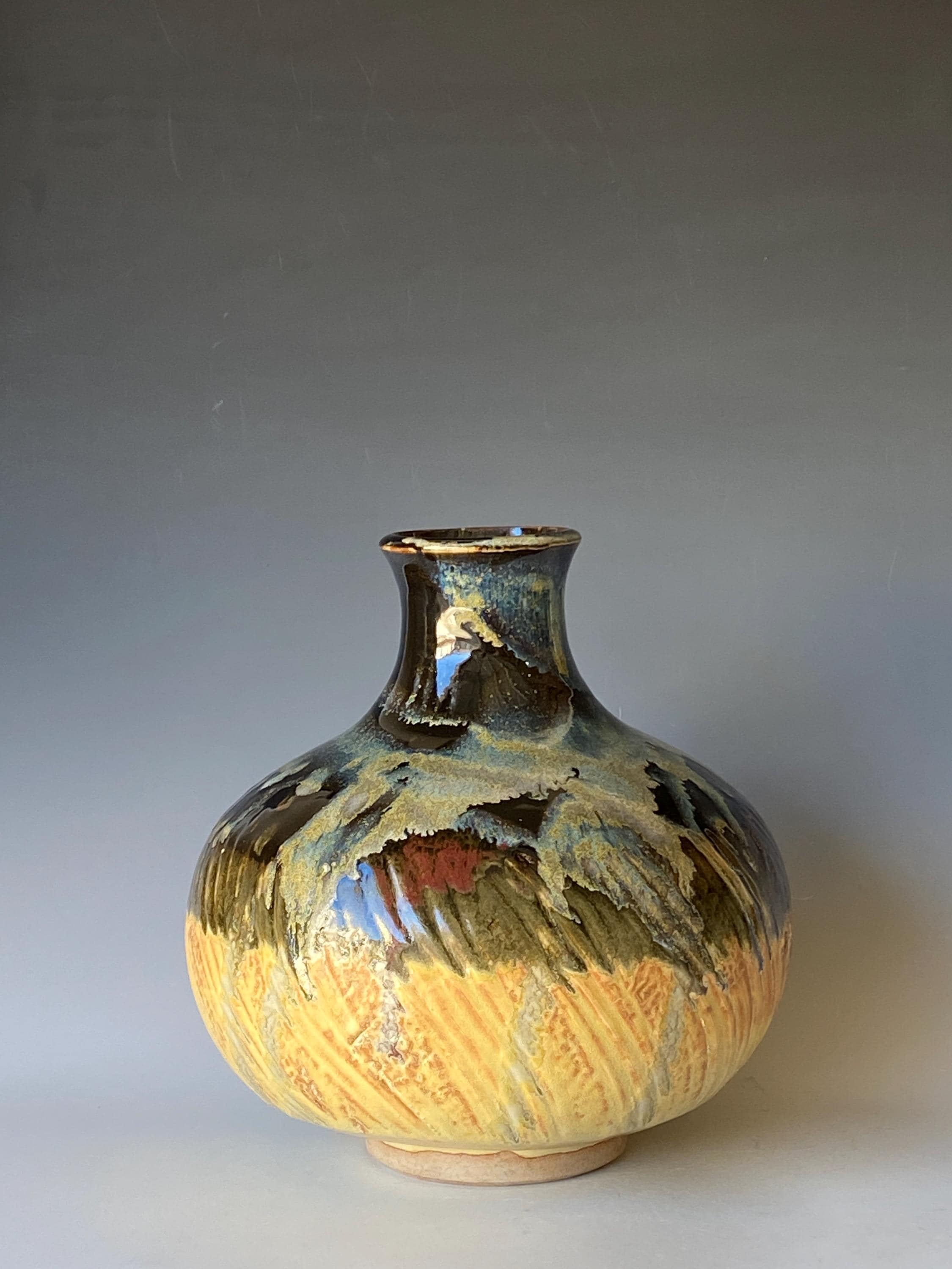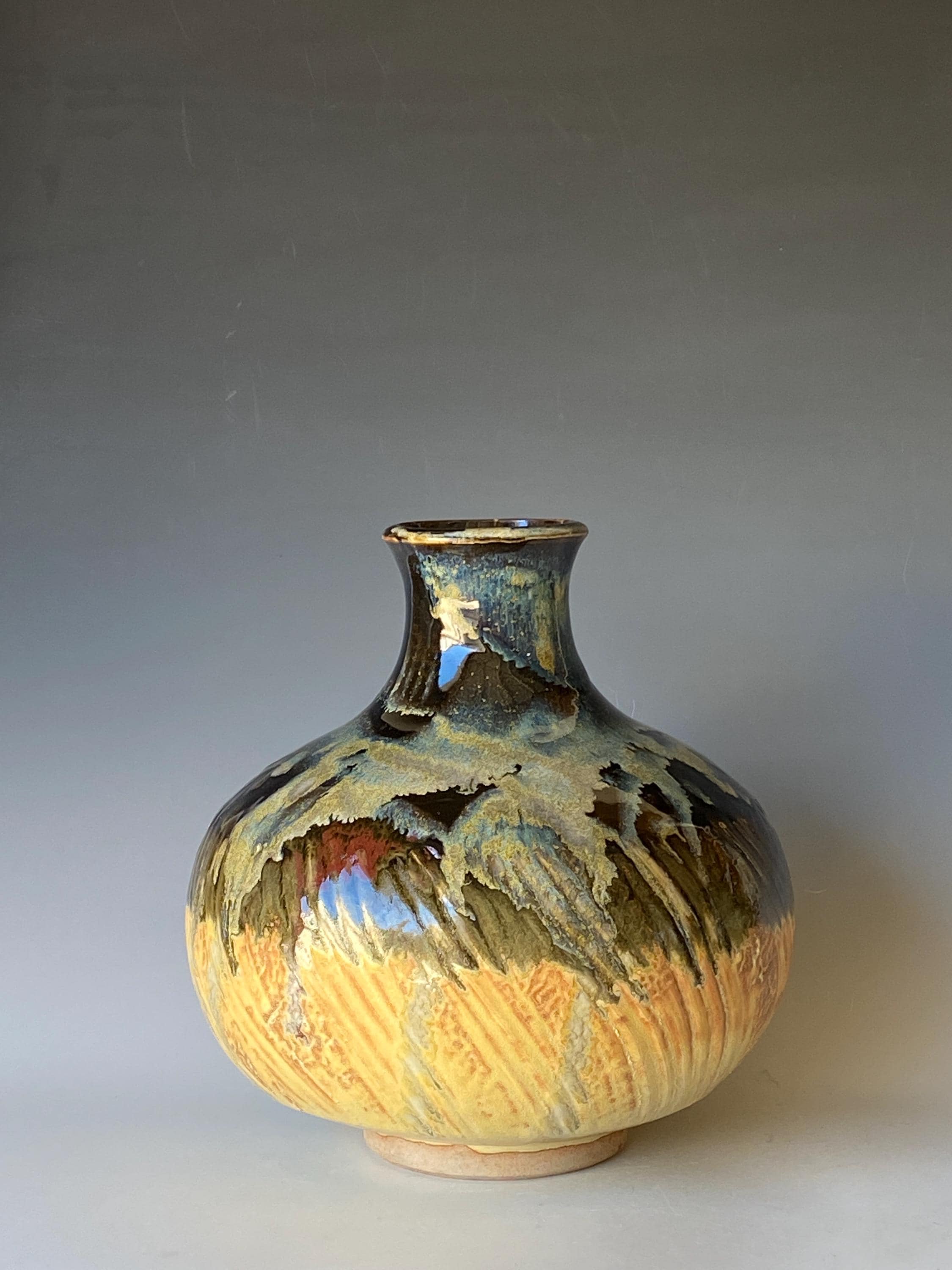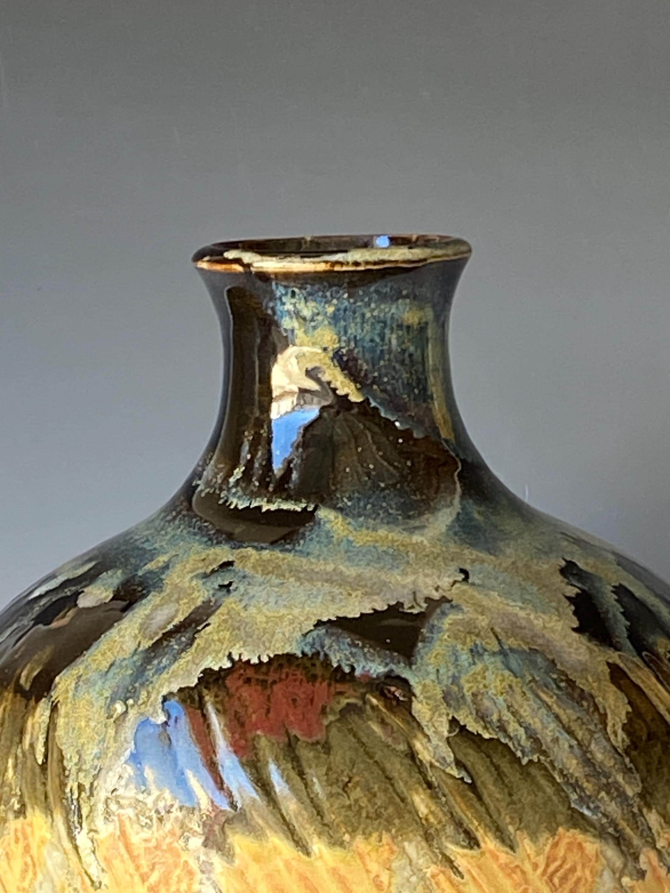 Handmade pottery vase. Height 9.8" * width 9", rim 2.8 ".