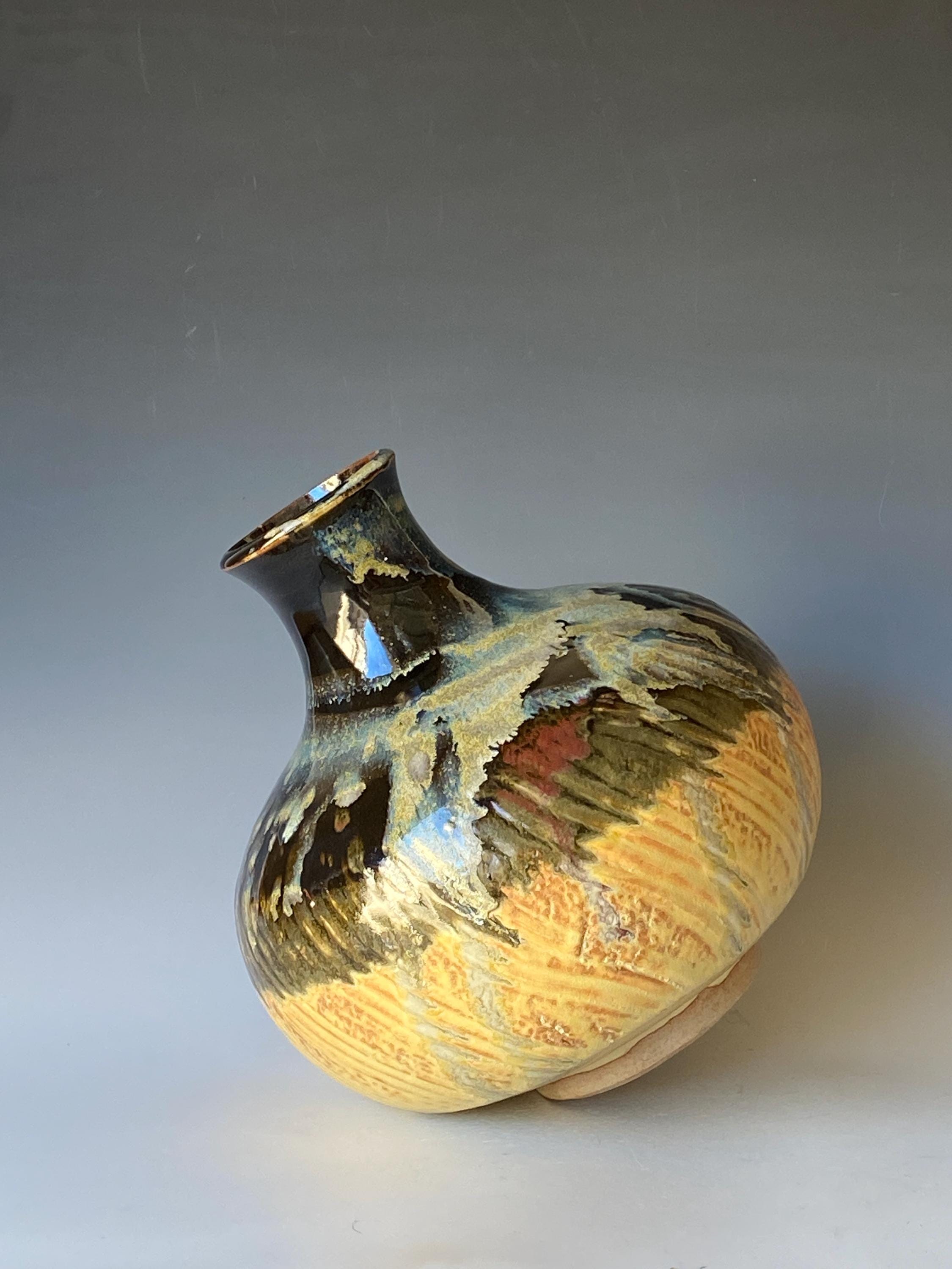 ATTENTION: This piece is throw from a type of clay with good amount of sand in it, which creates a rough surface on areas that left un-glazed.