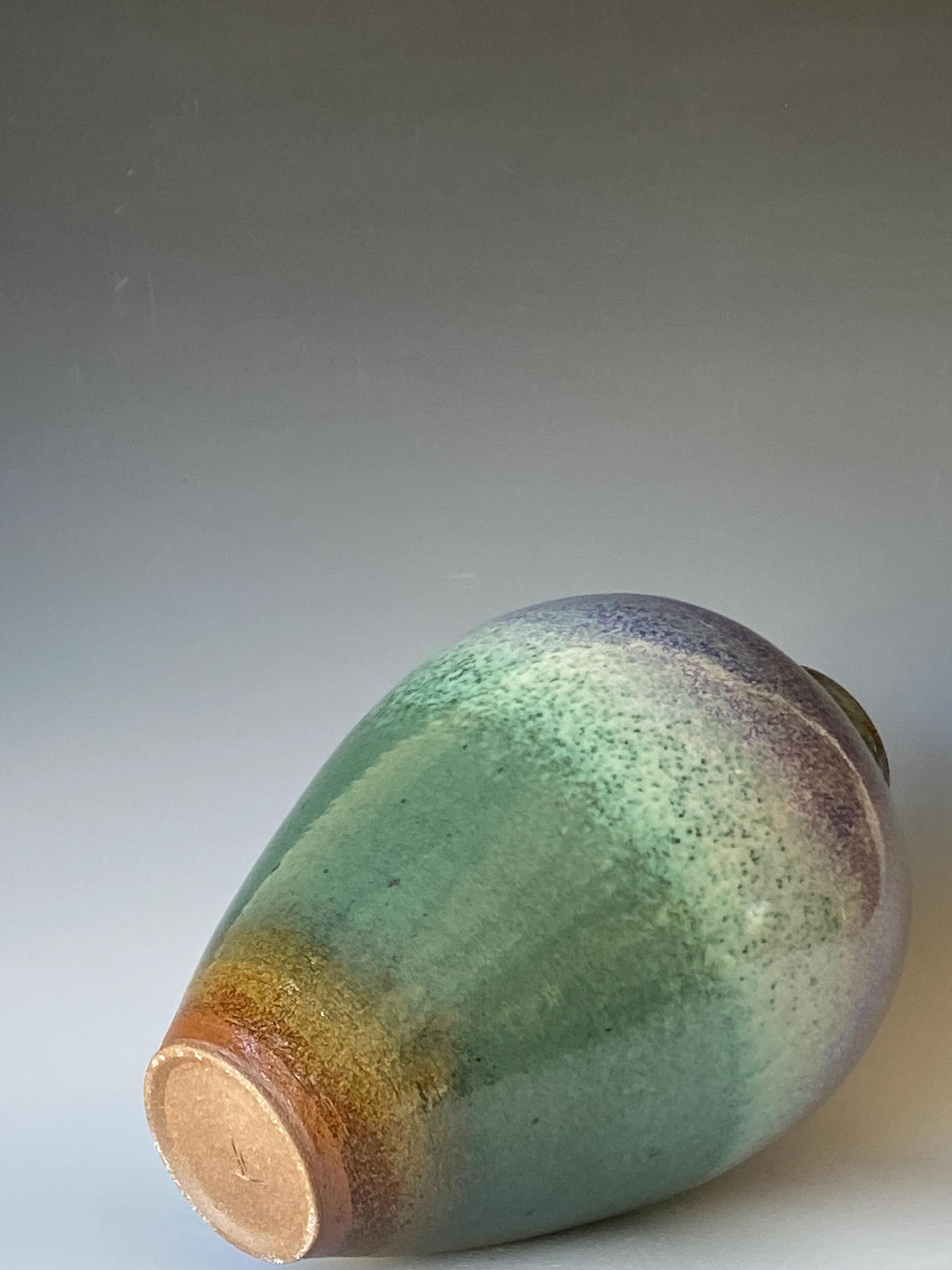 ATTENTION: This piece is throw from a type of clay with good amount of sand in it, which creates a rough surface on areas that left un-glazed.