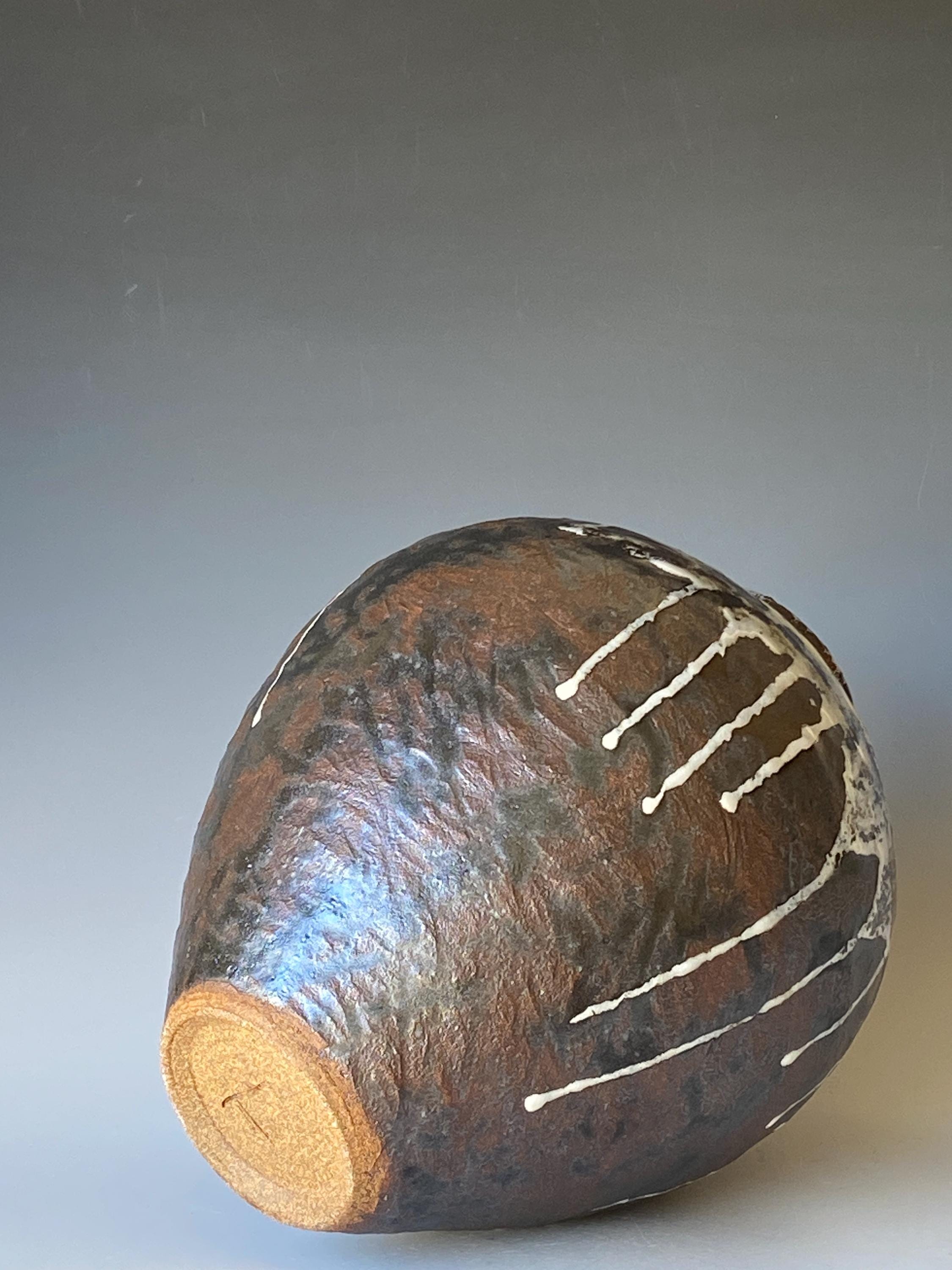 ATTENTION: This piece is throw from a type of clay with good amount of sand in it, which creates a rough surface on areas that left un-glazed.