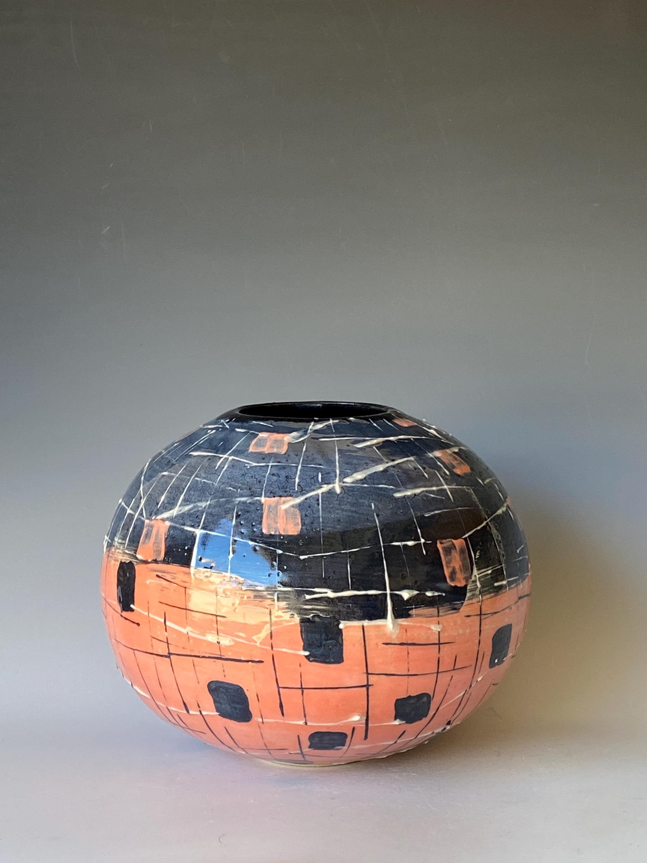 Handmade pottery vase. Height 7.5" * width 8.7", rim 3.2".
