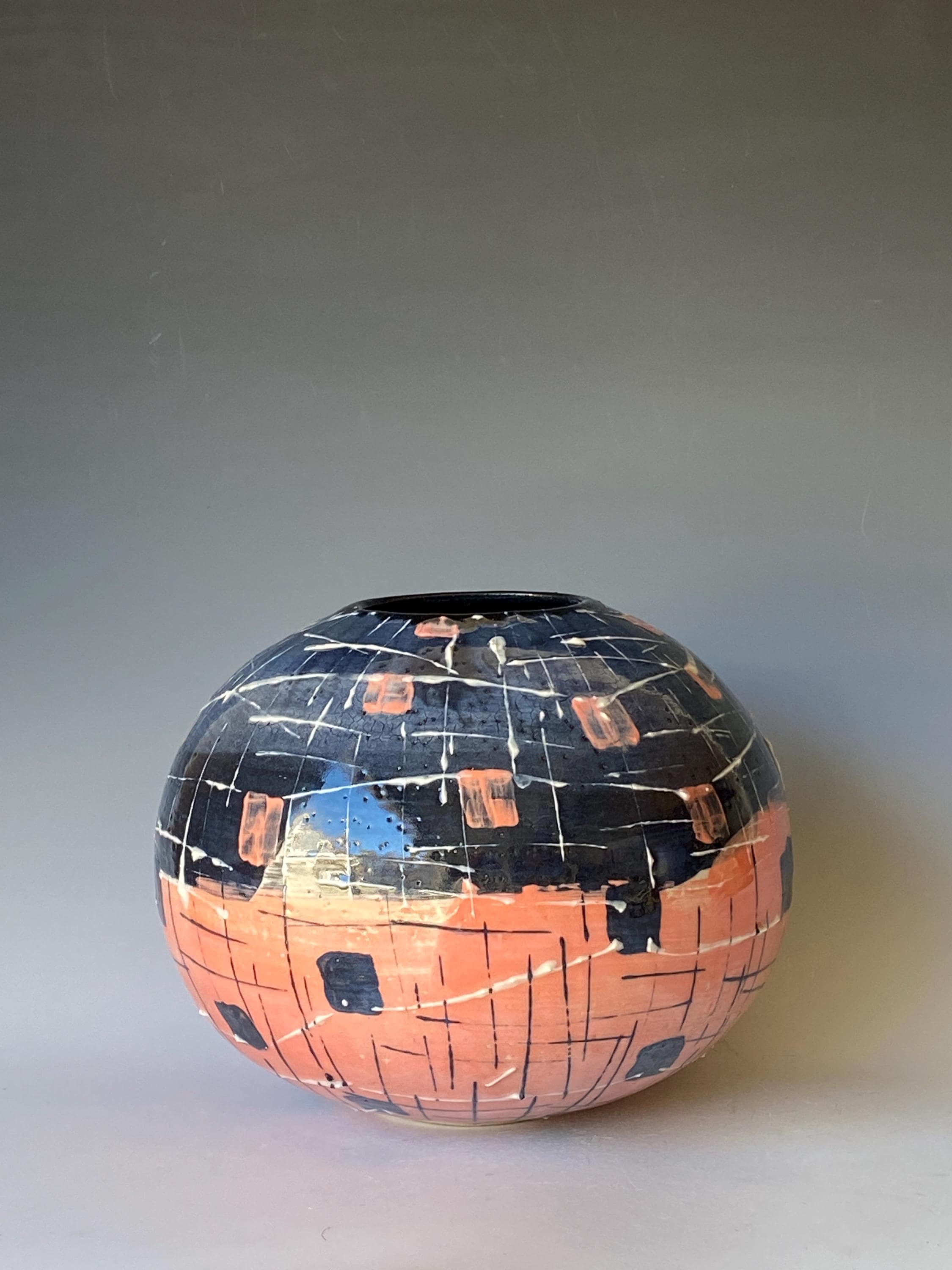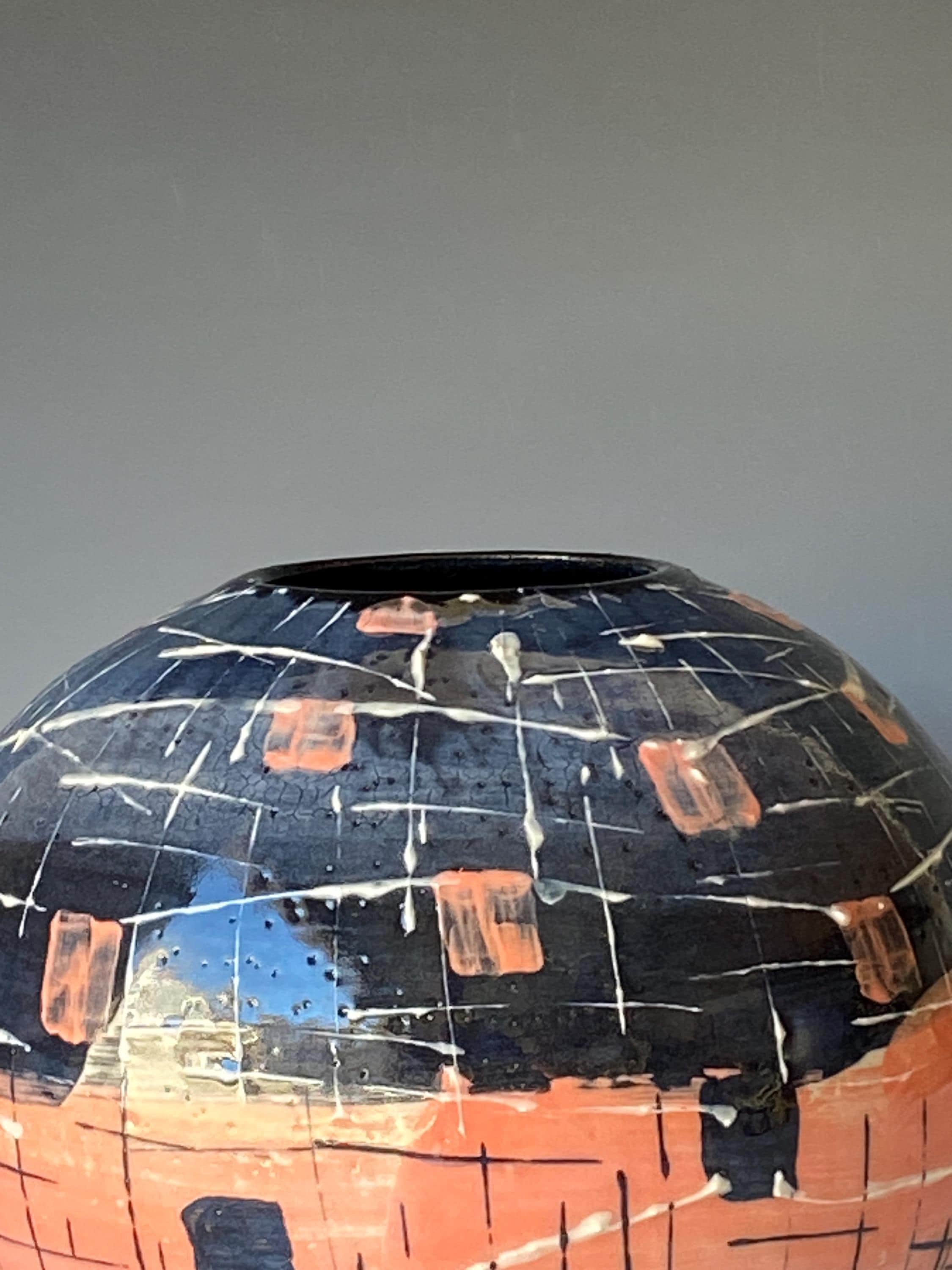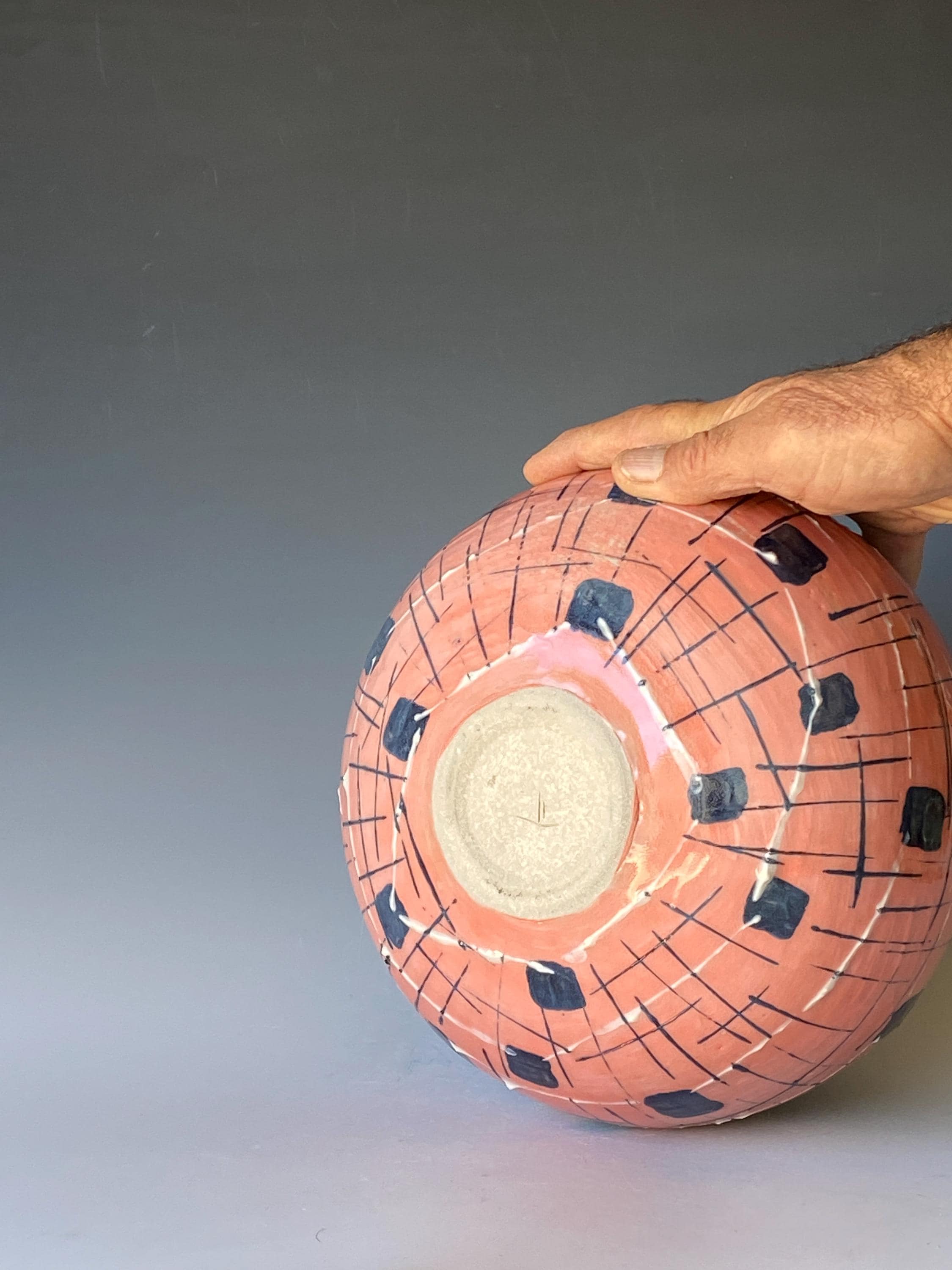 ATTENTION: This piece is throw from a type of clay with good amount of sand in it, which creates a rough surface on areas that left un-glazed.