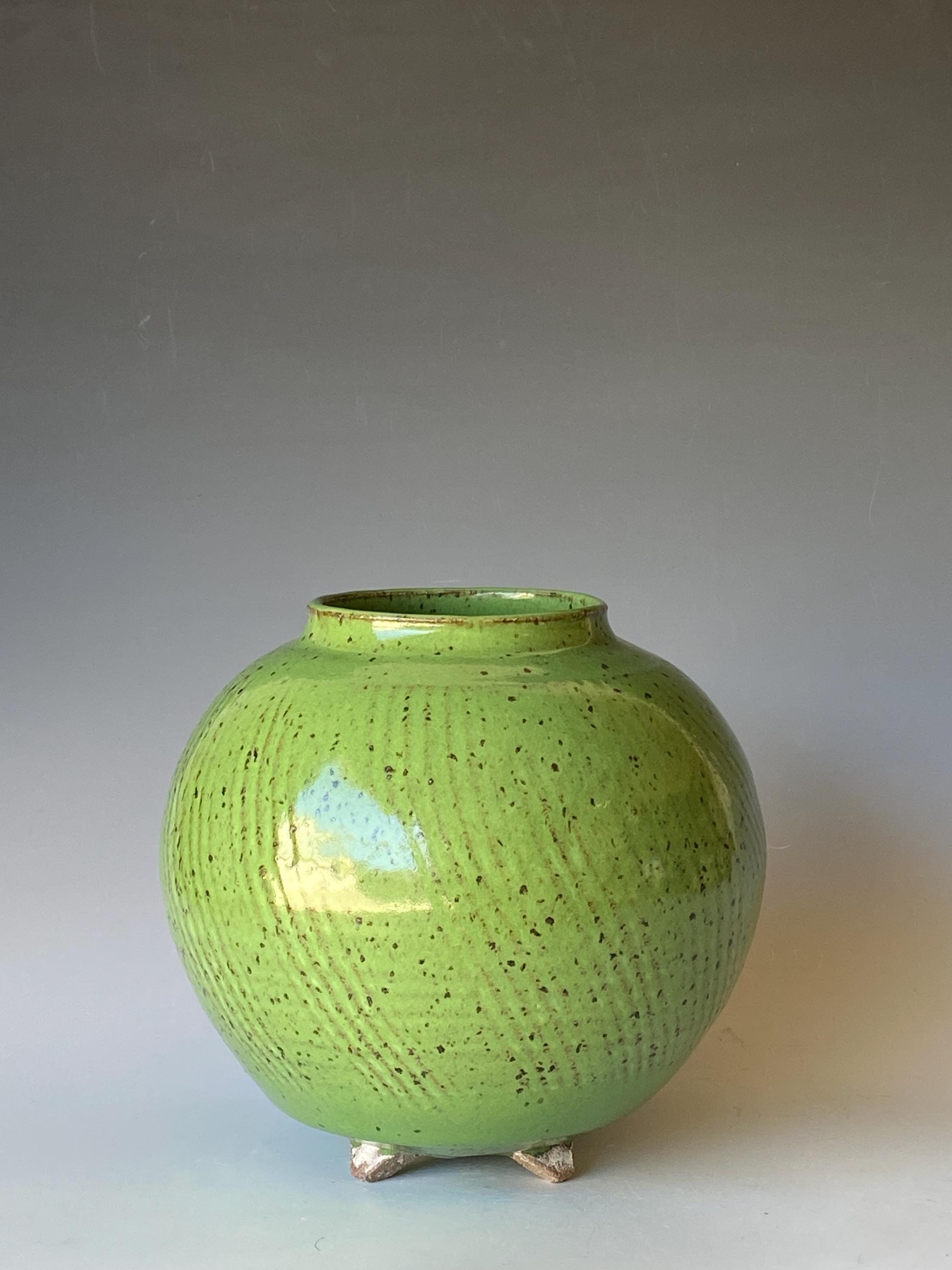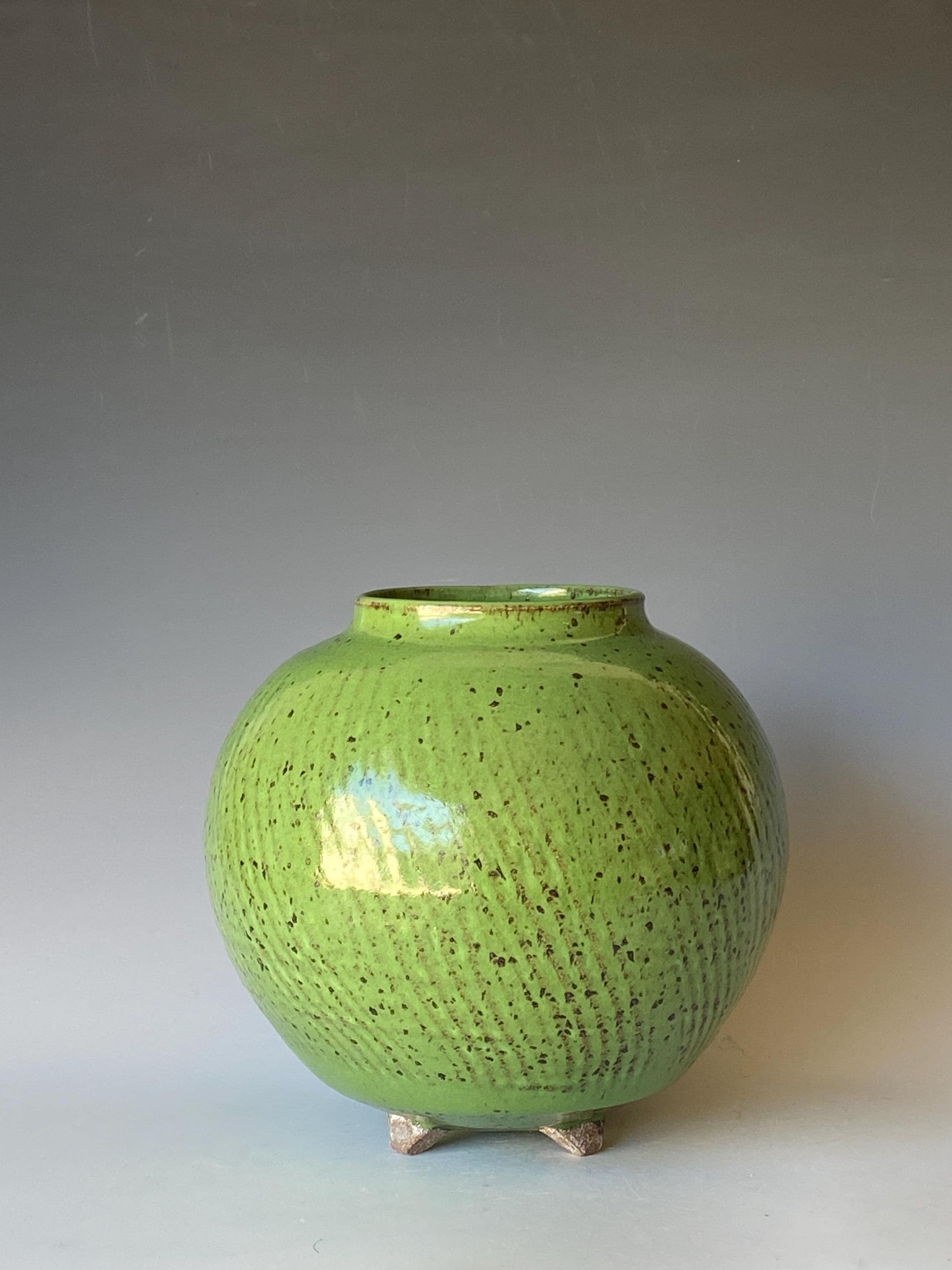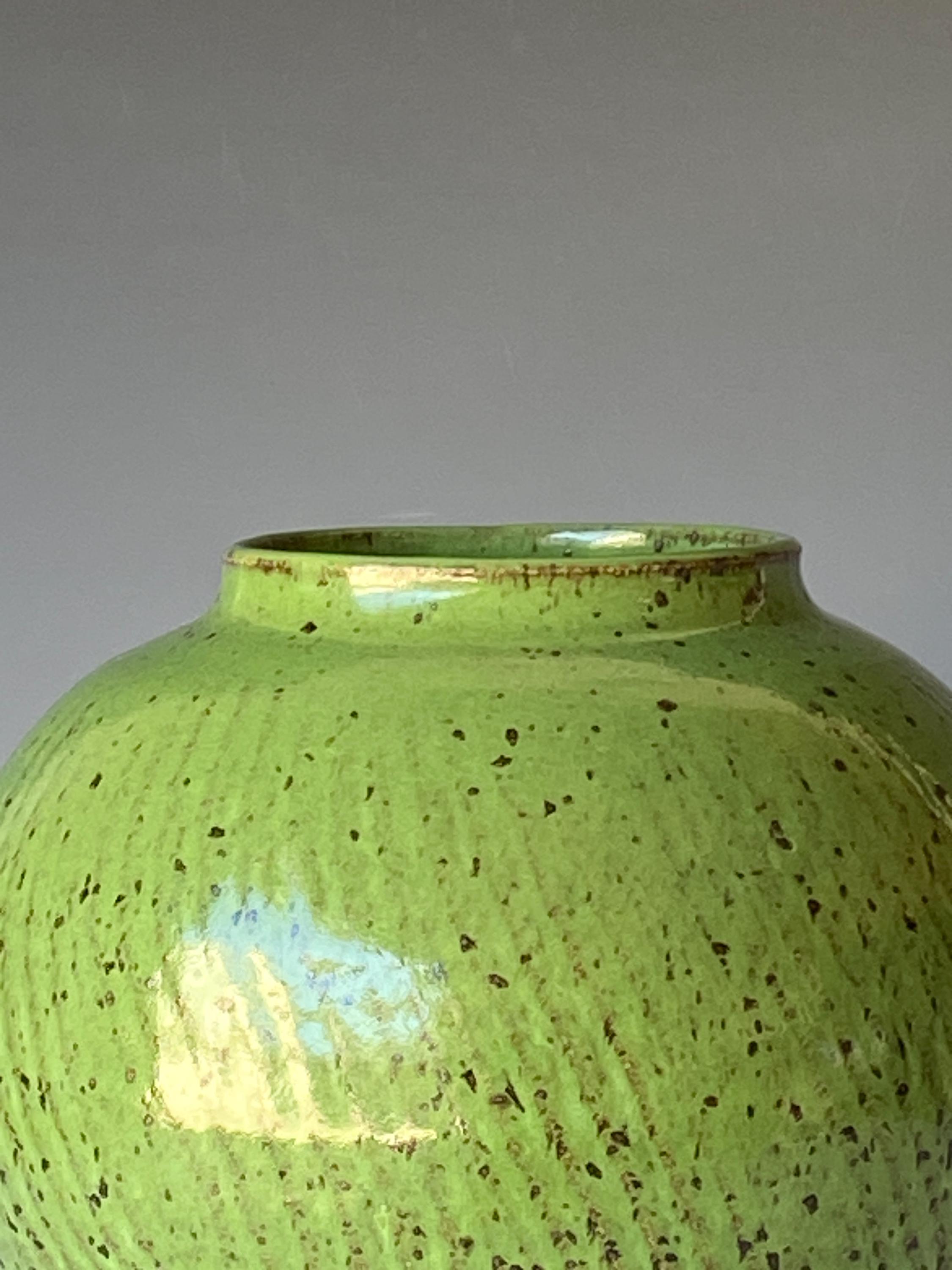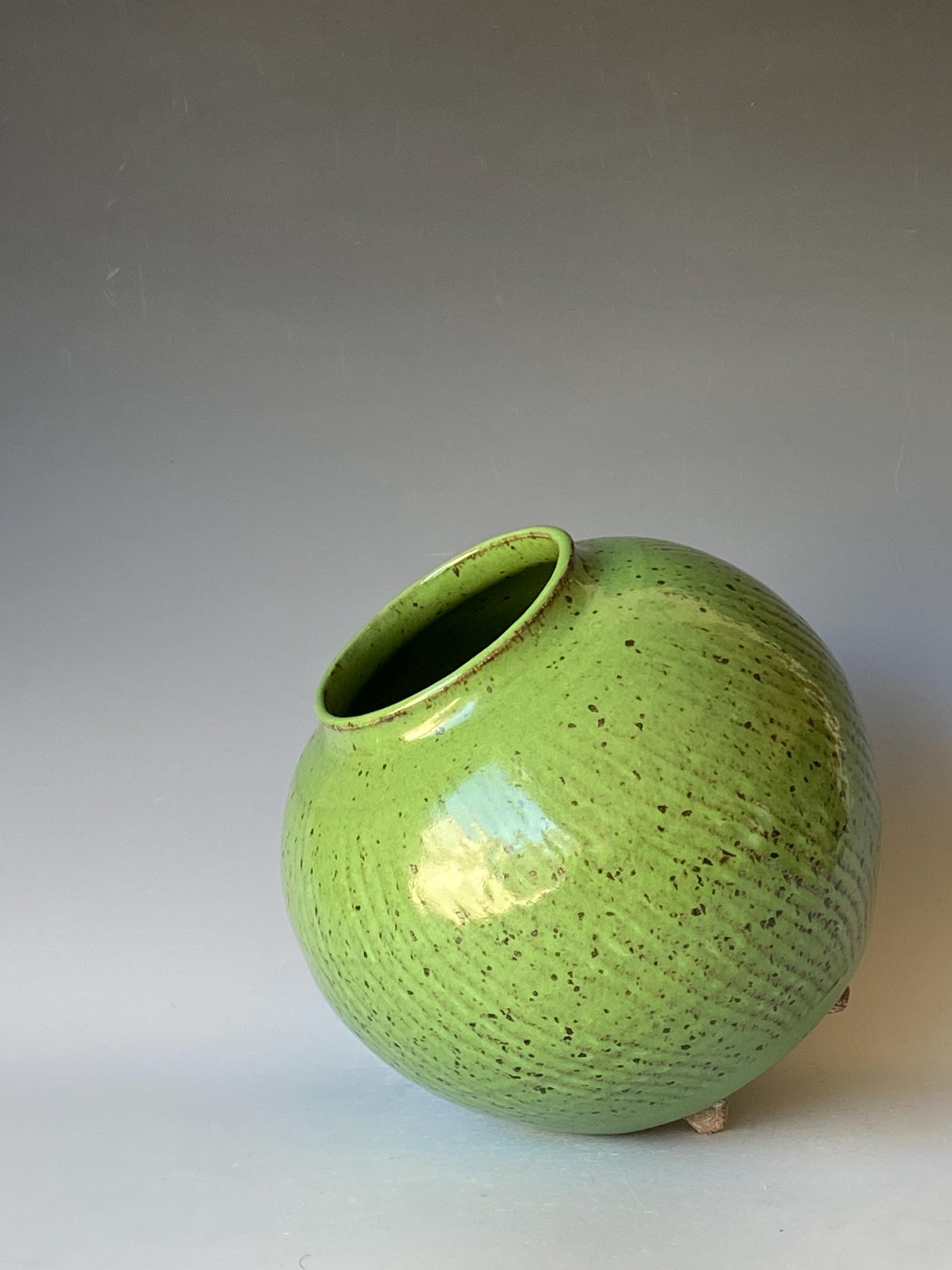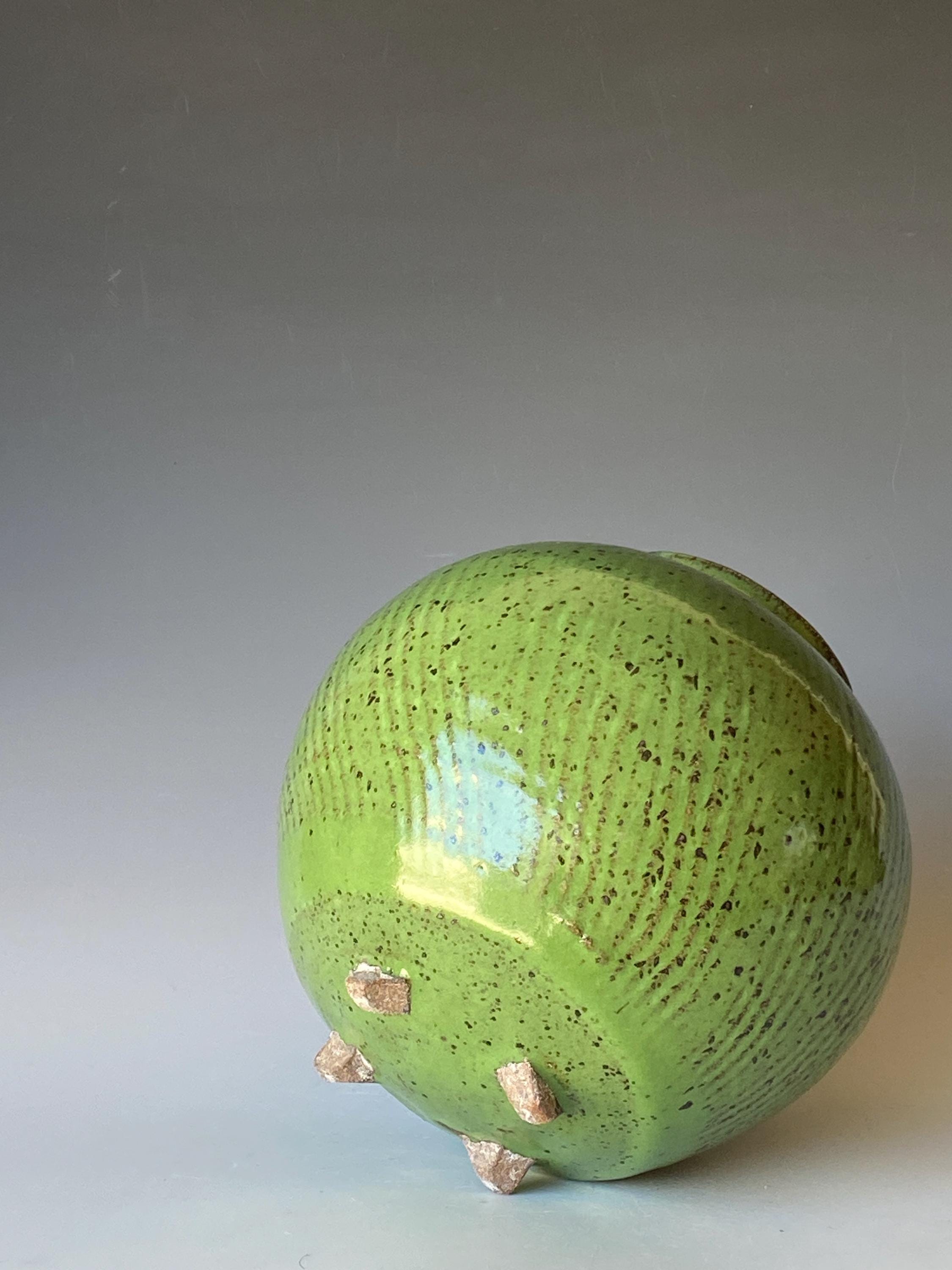 Textured Green Handmade ceramic vase, height 7.5" * width 8", rim 3.8".