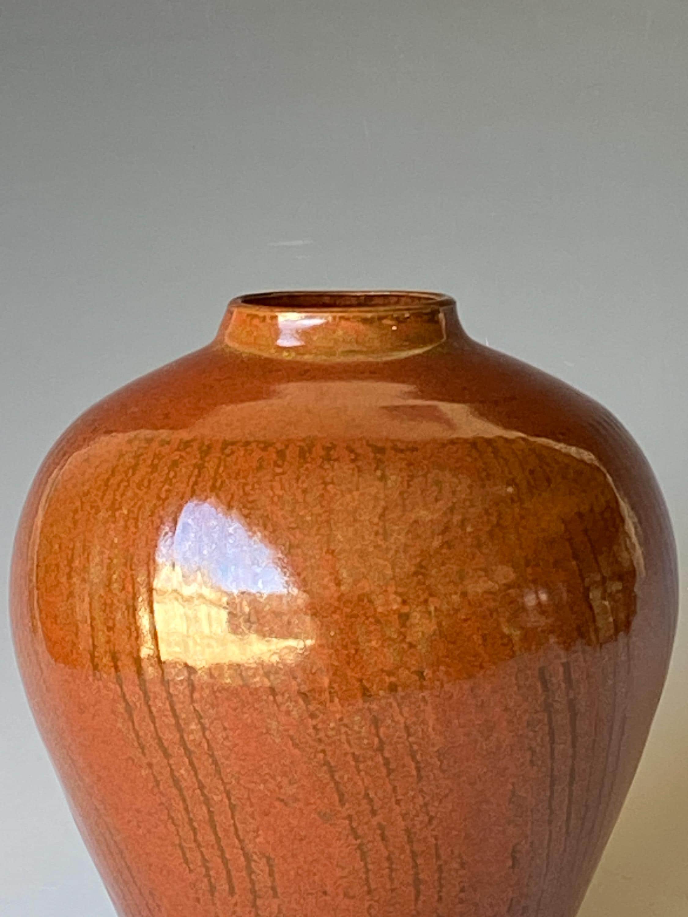 Tomato red handmade ceramic vase, home decor. Height 7" * width 6.2" * rim 1.8".
