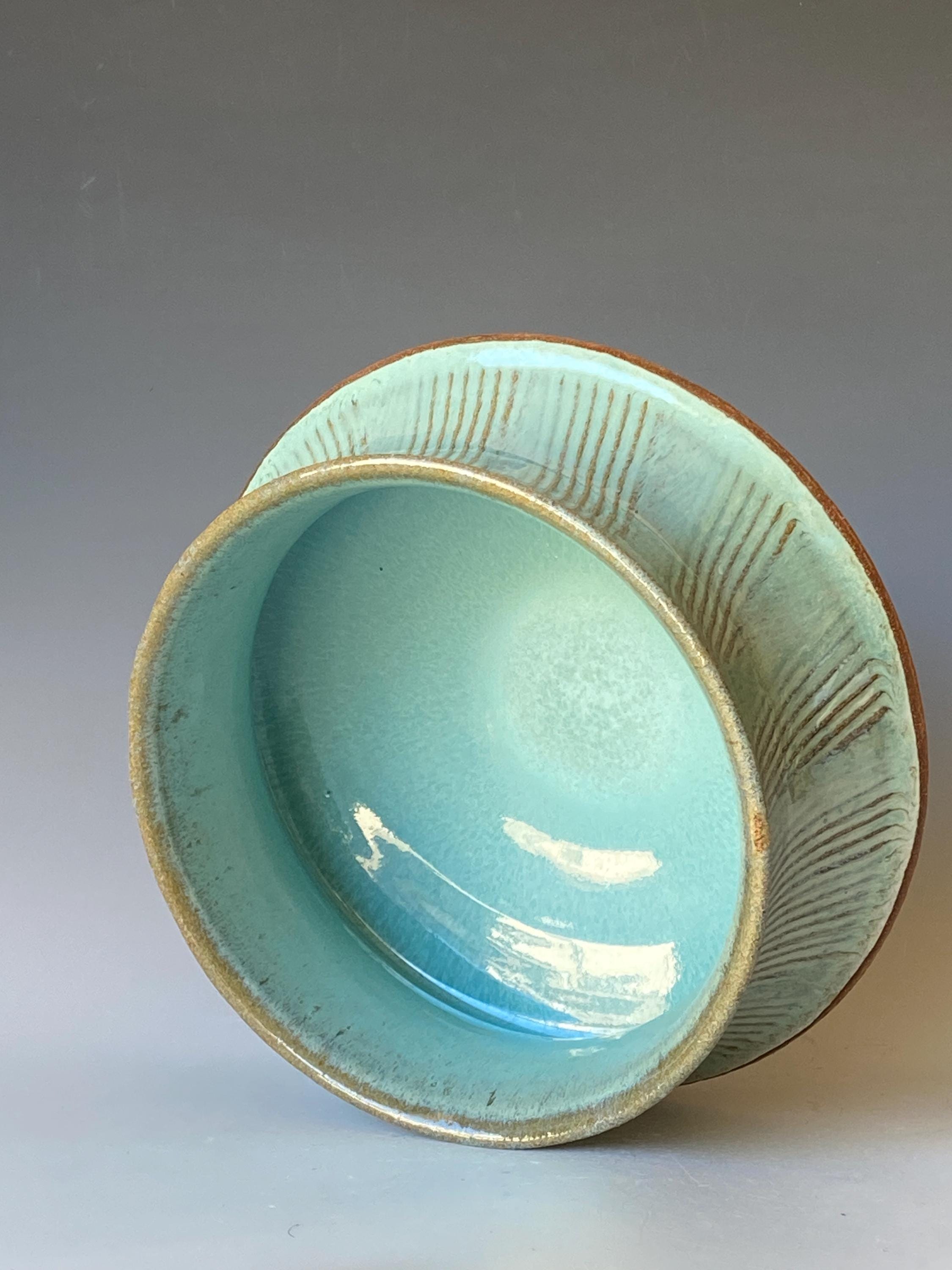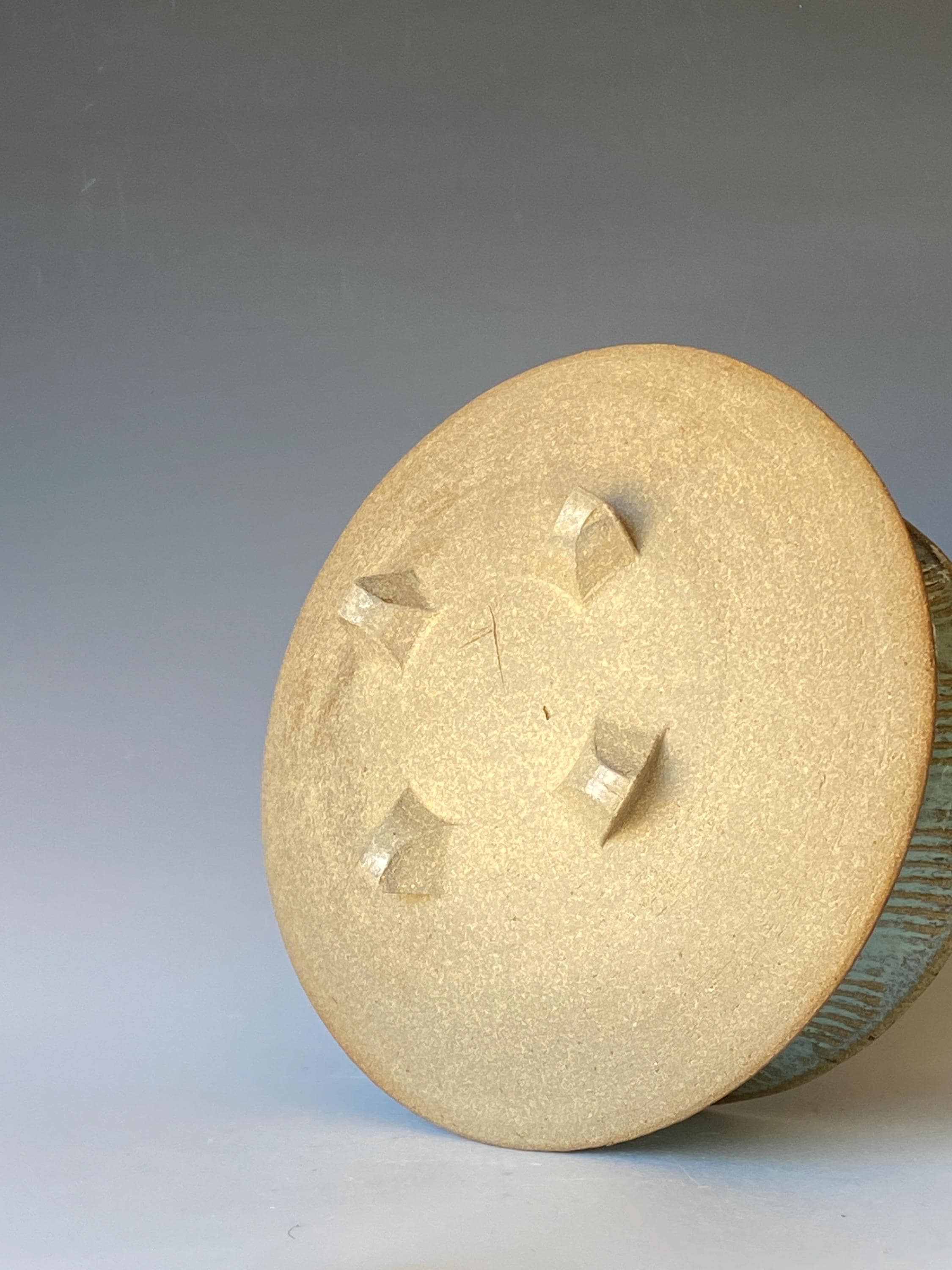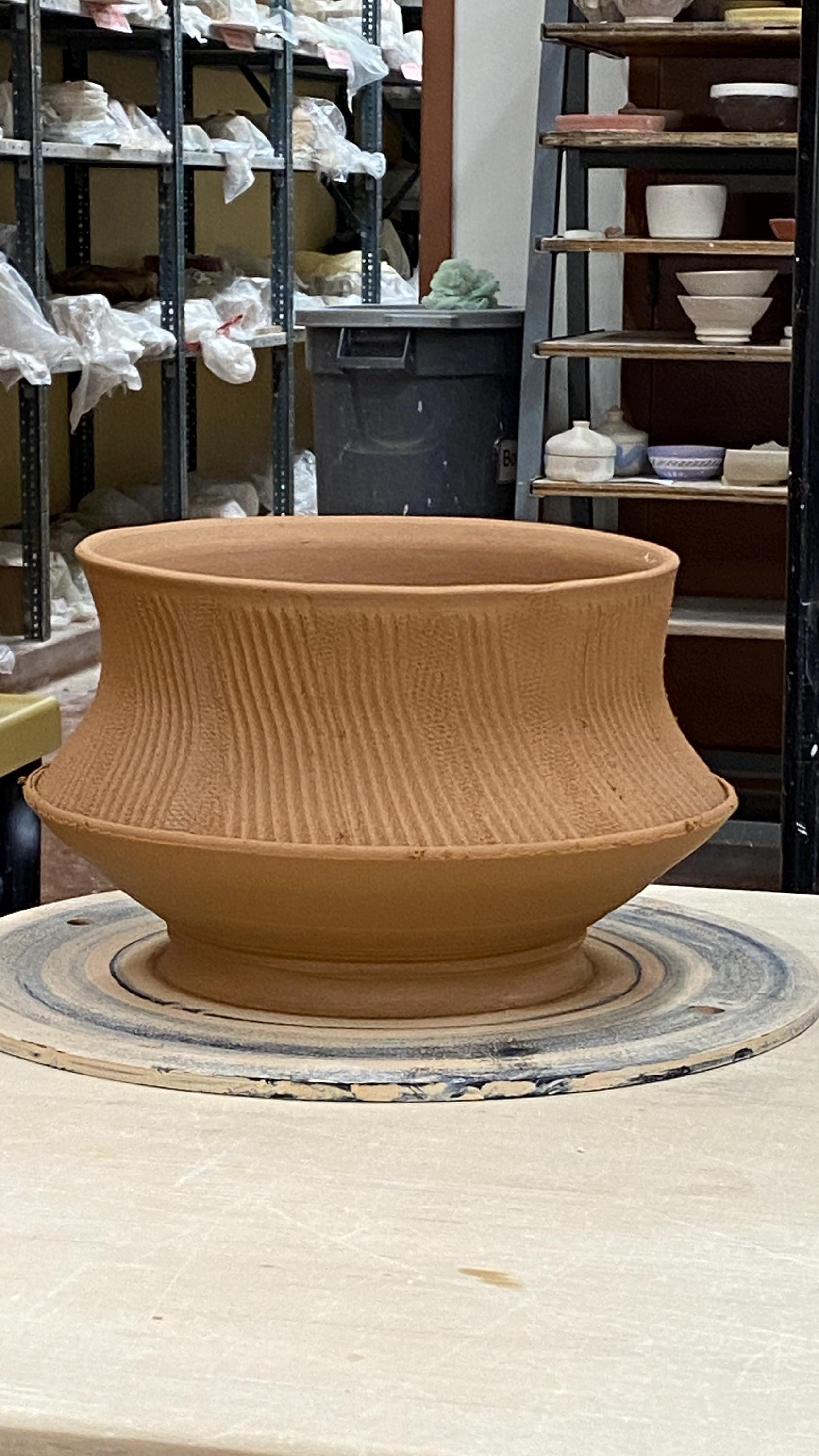 ATTENTION: This pot is throw from a type of clay with good amount of sand in it, which creates a rough surface on areas that left un-glazed.