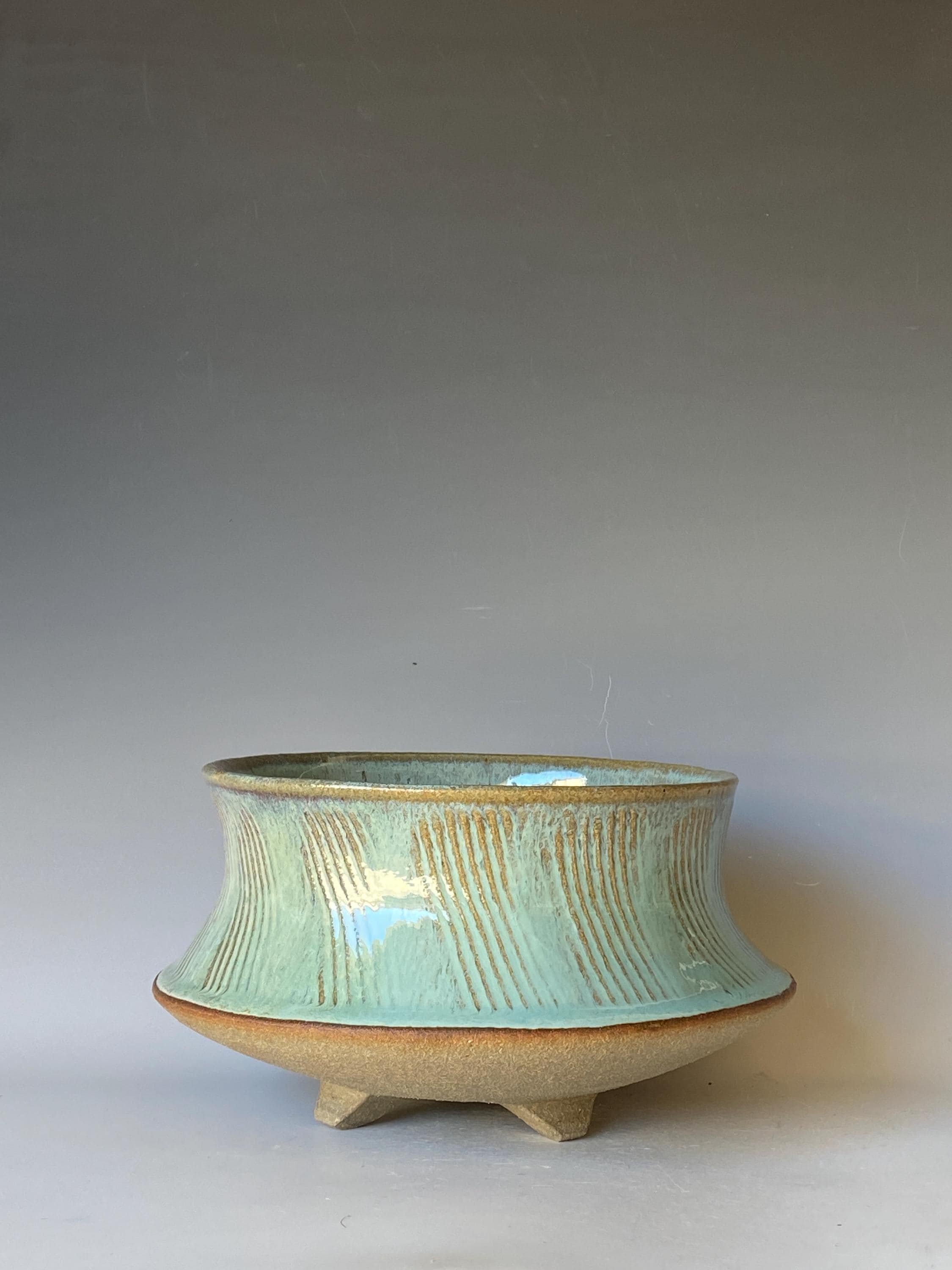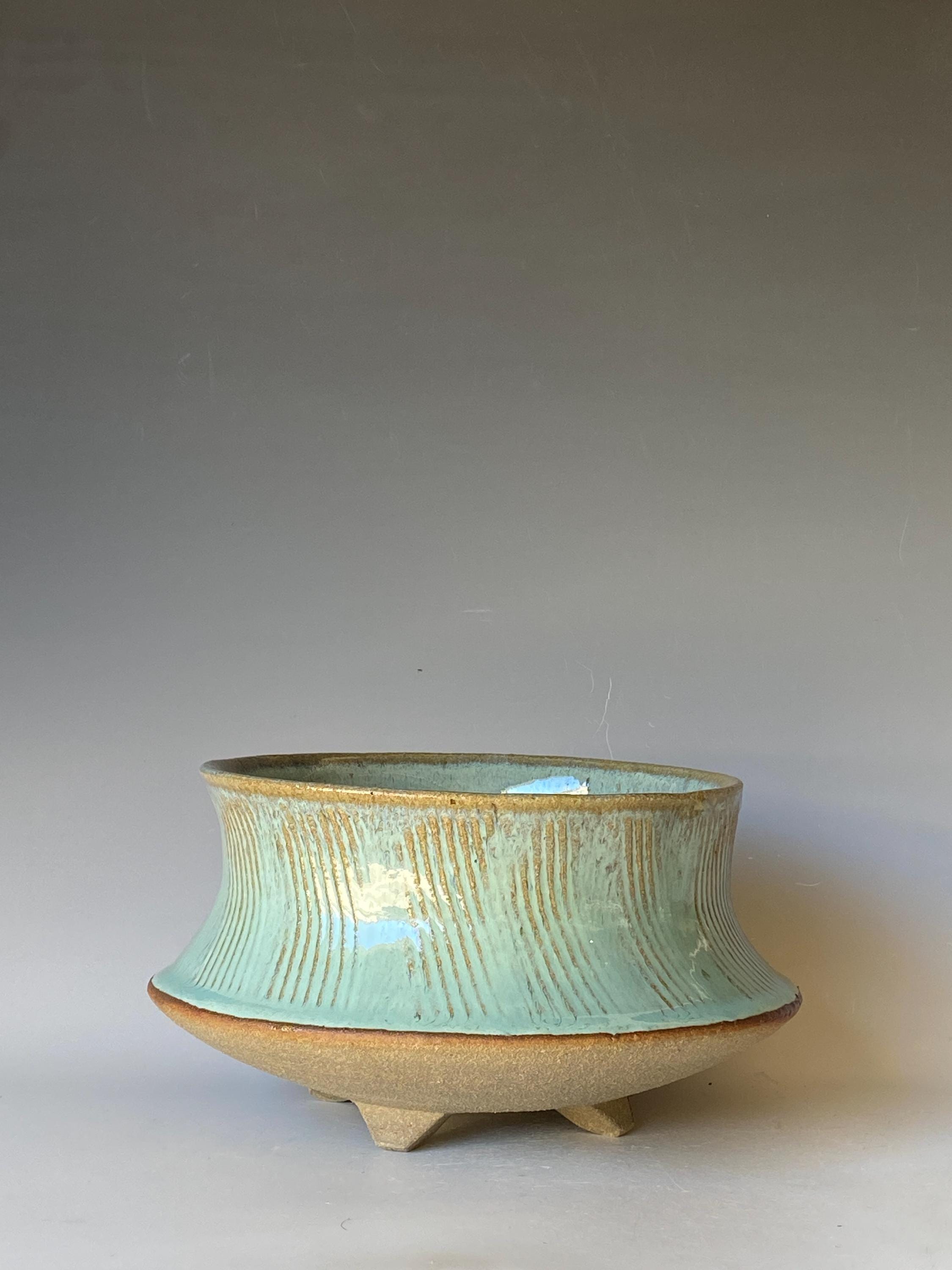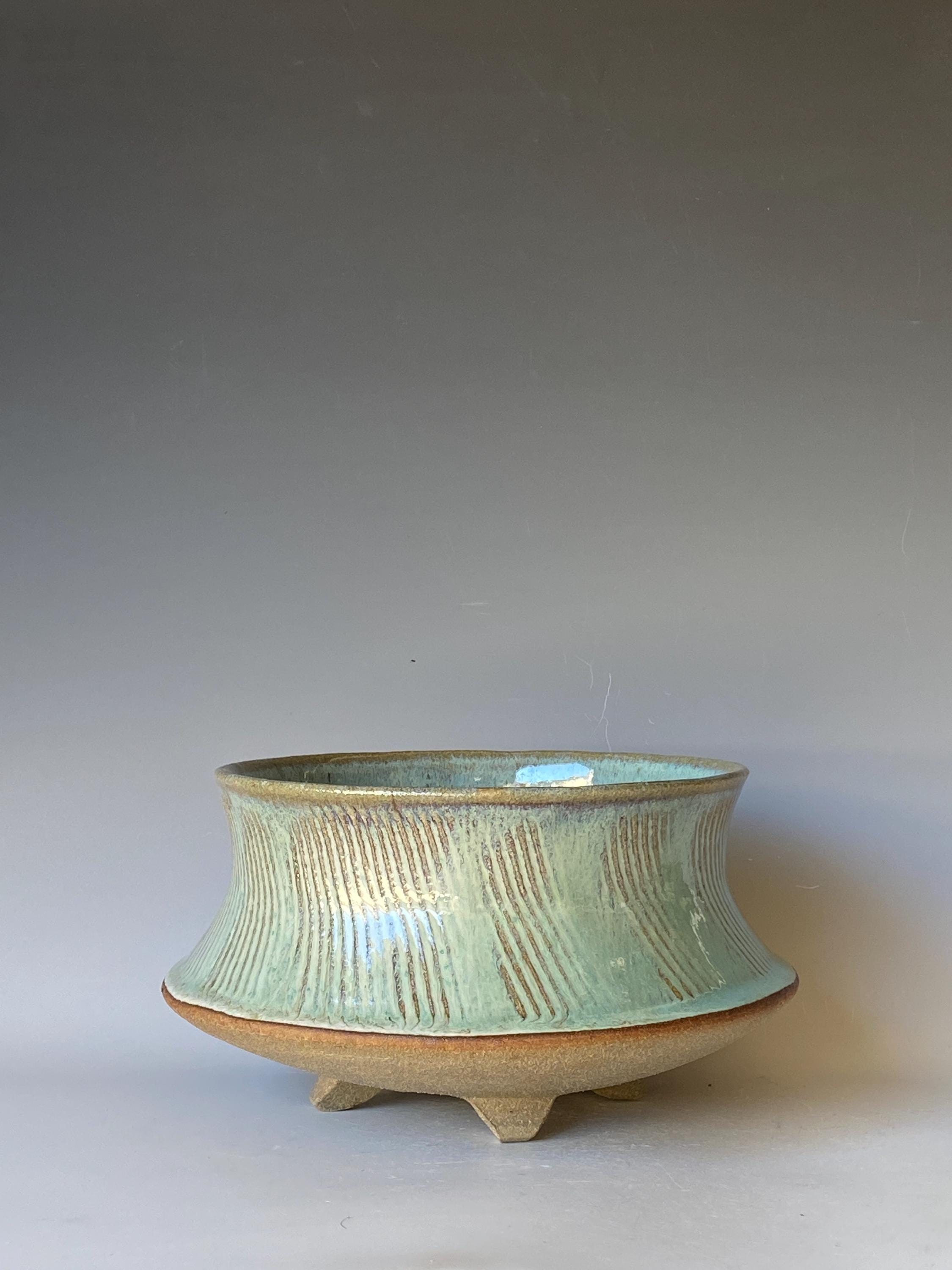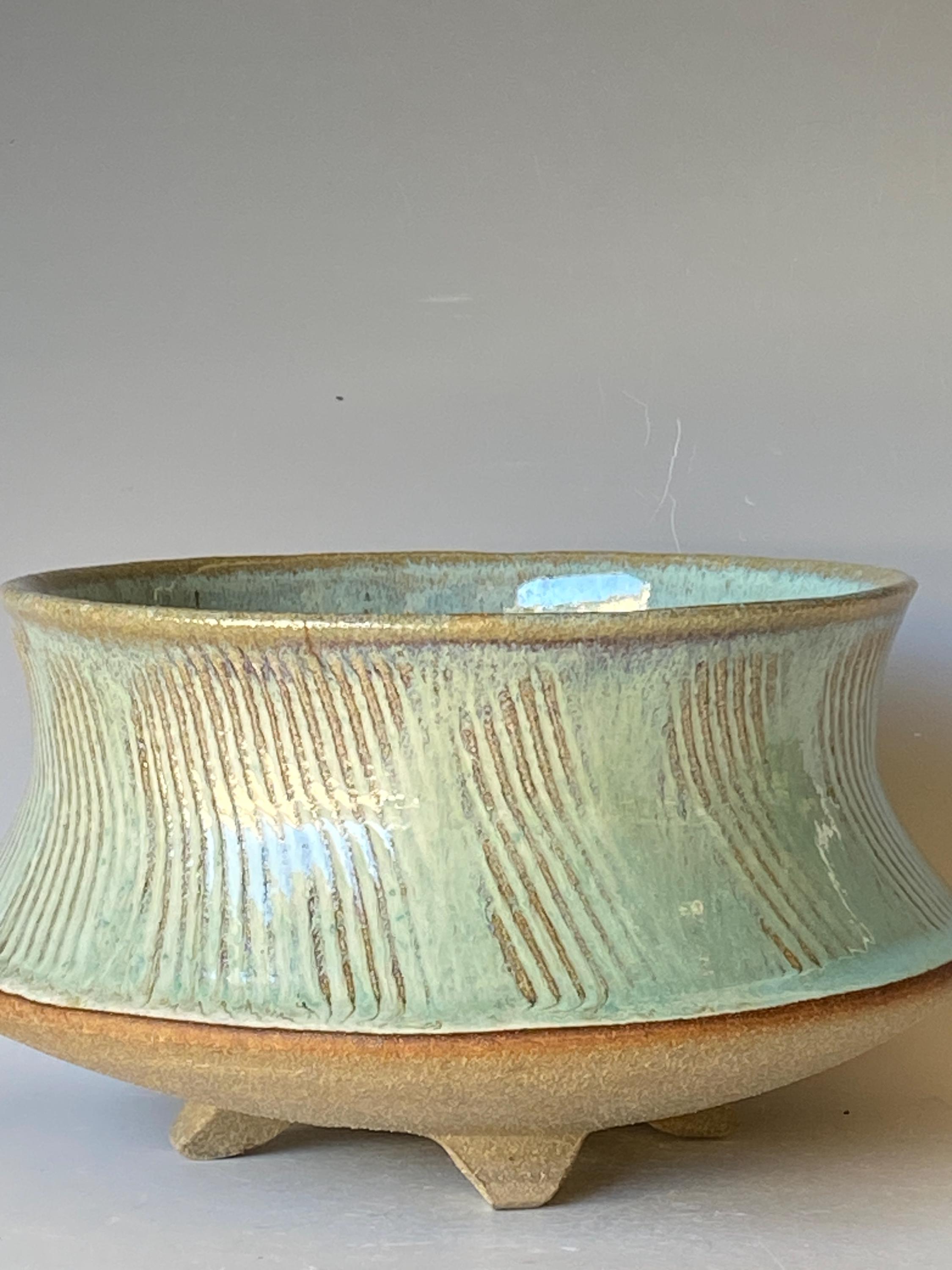 Handmade textured tripod ceramic Vase,Vessel, height 4.7" * width 7.2".