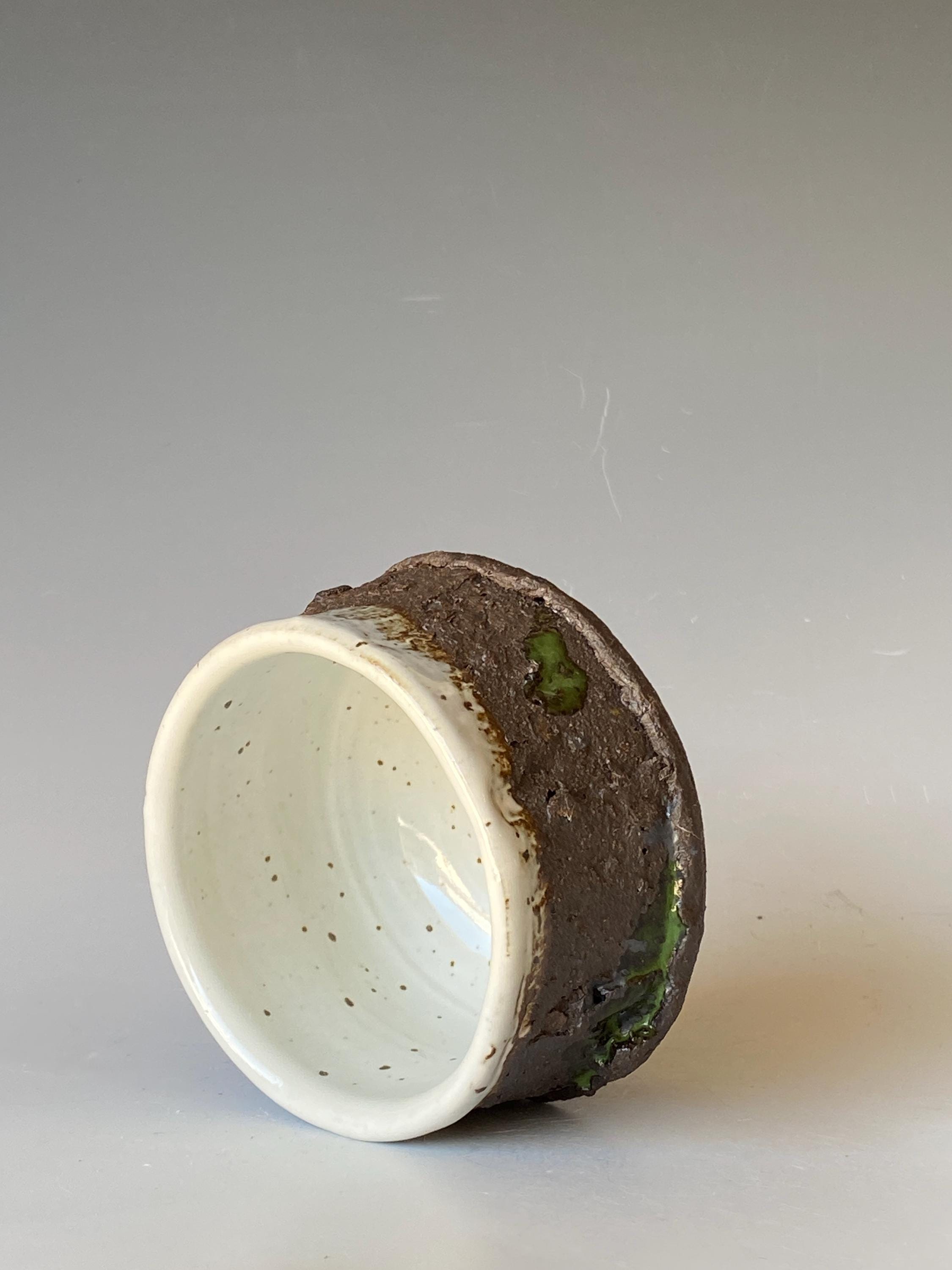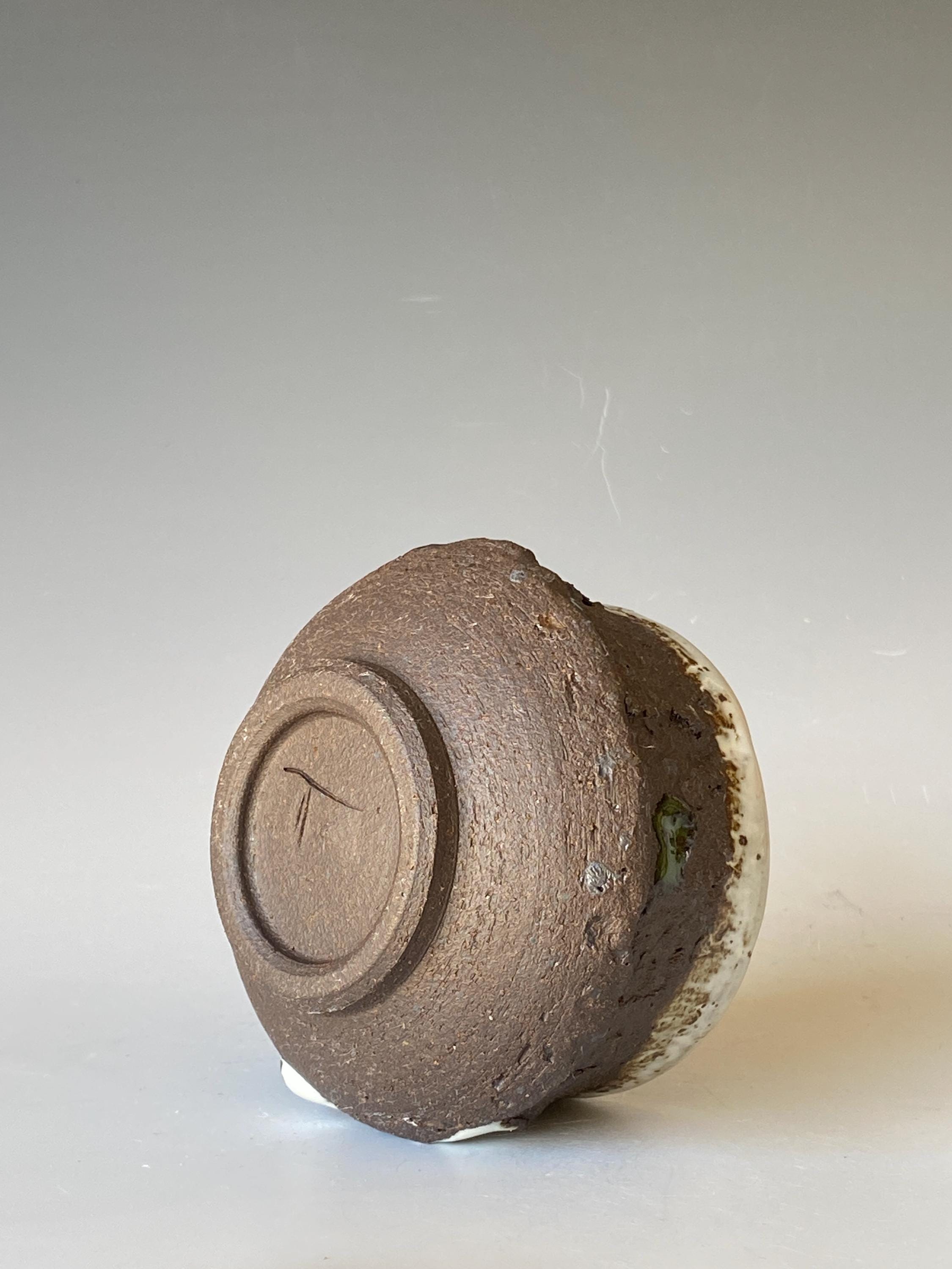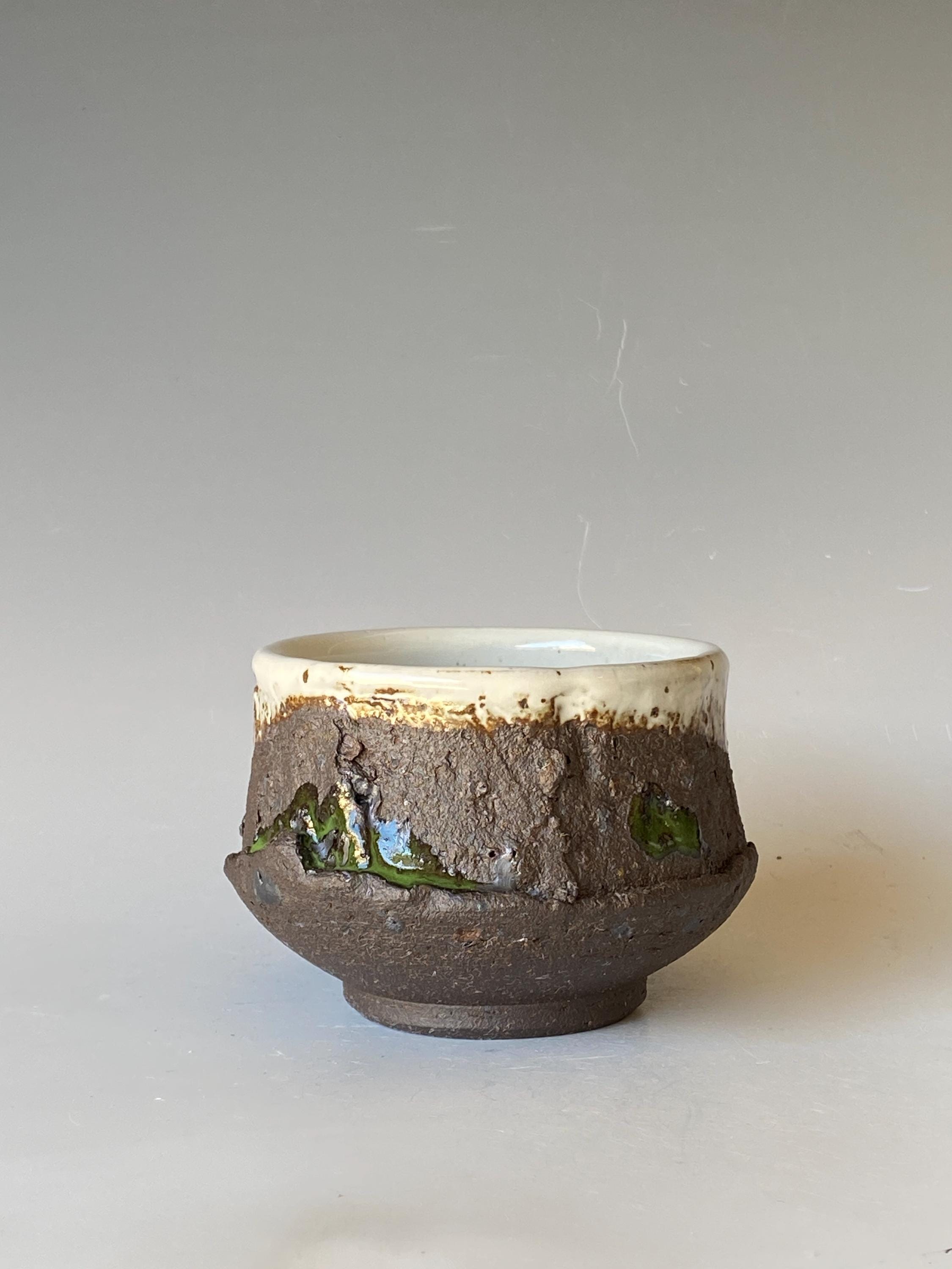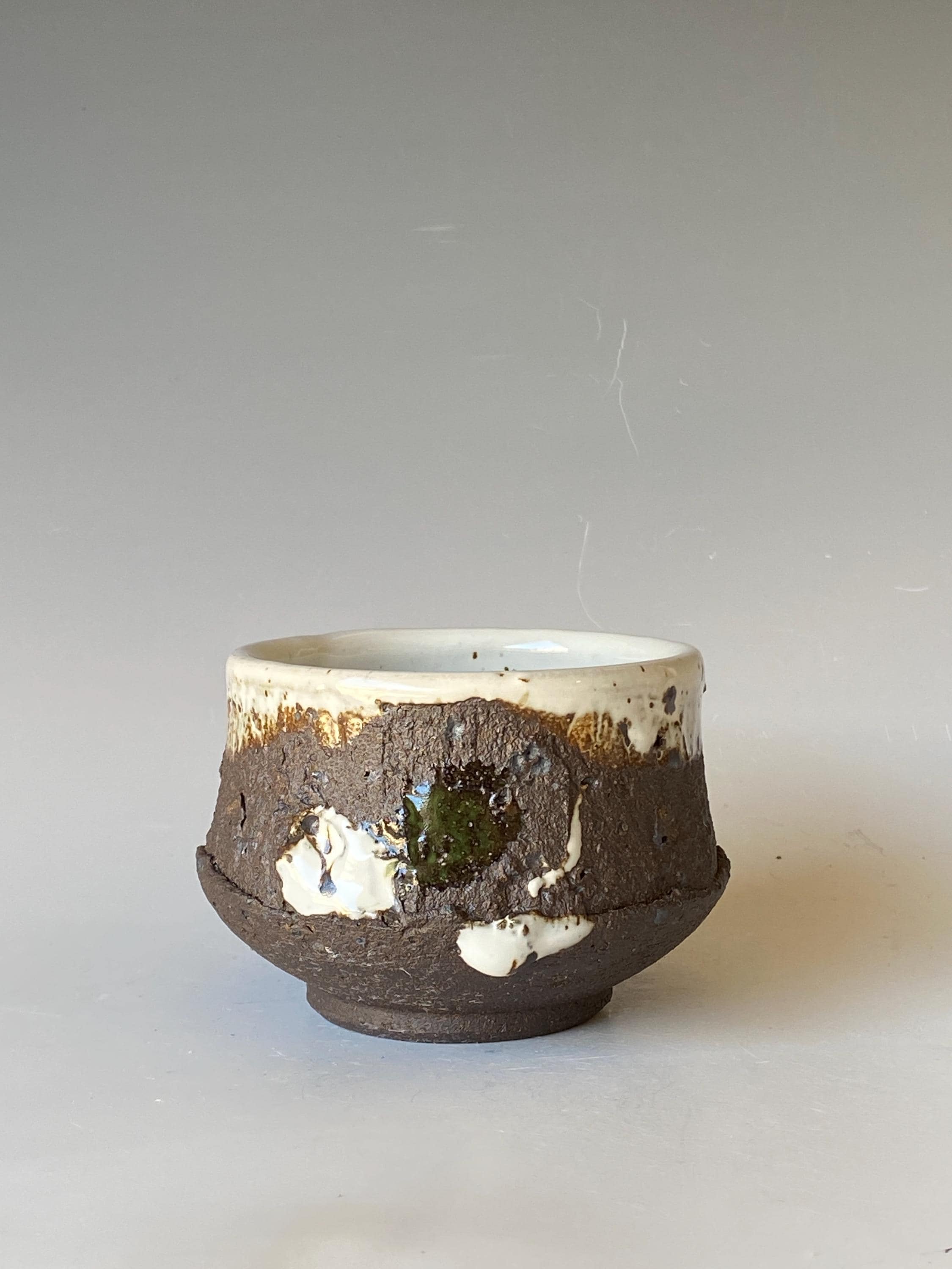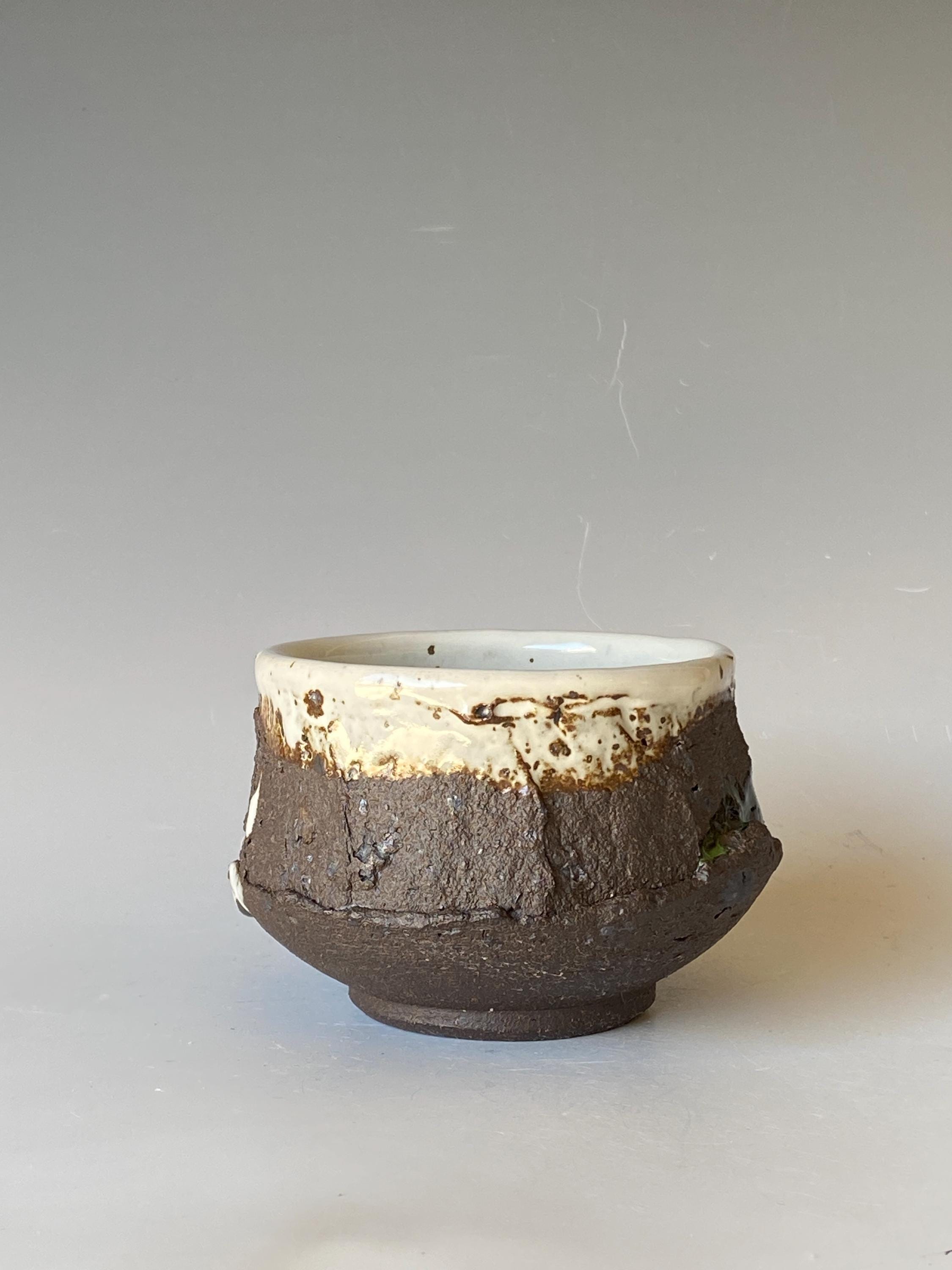 In these series of tea bowls and cups I used a dark clay that called black mountain. Part of outer surface of these bowls left un-glazed to show the color and texture of fired clay without any glaze.