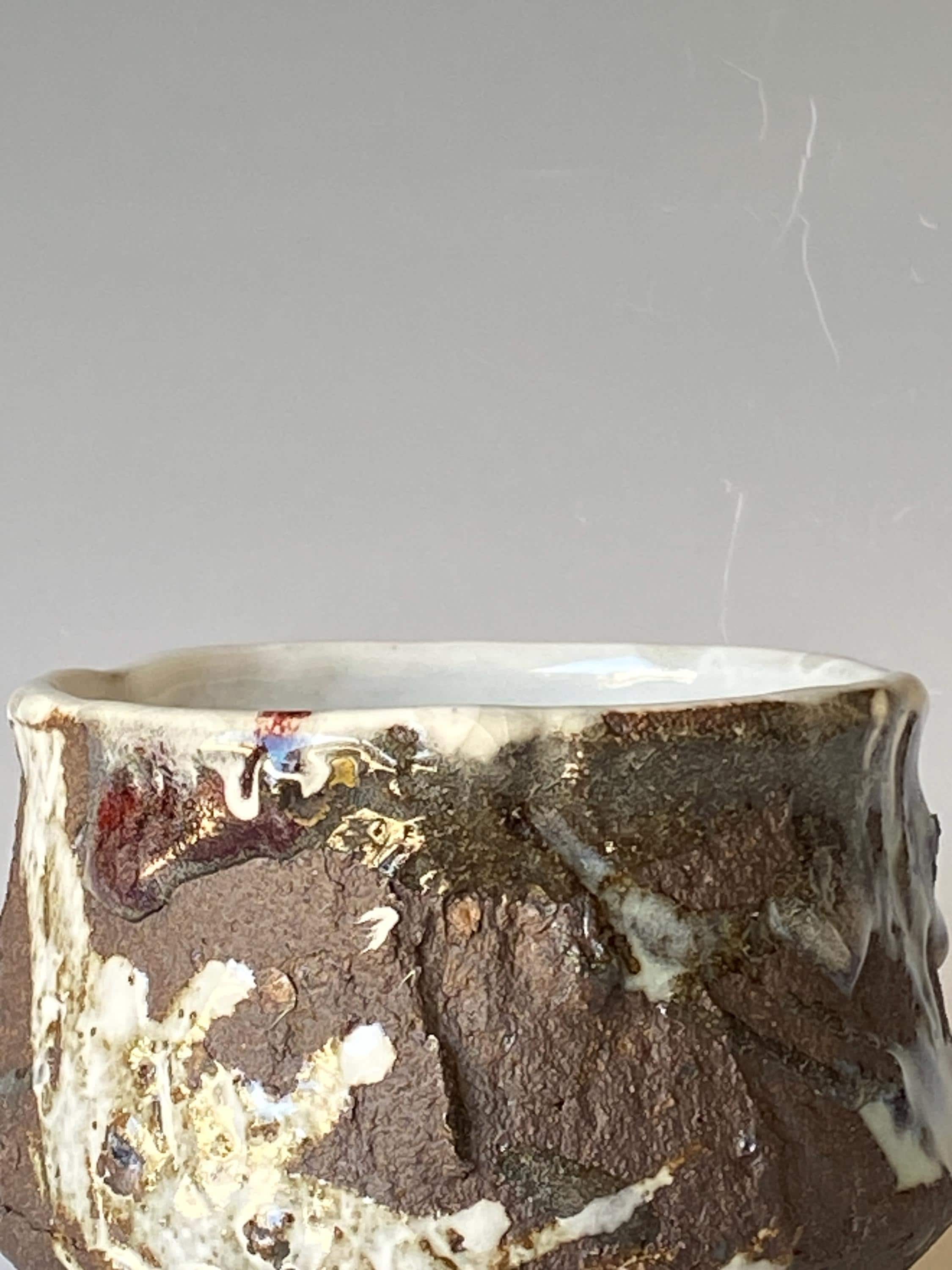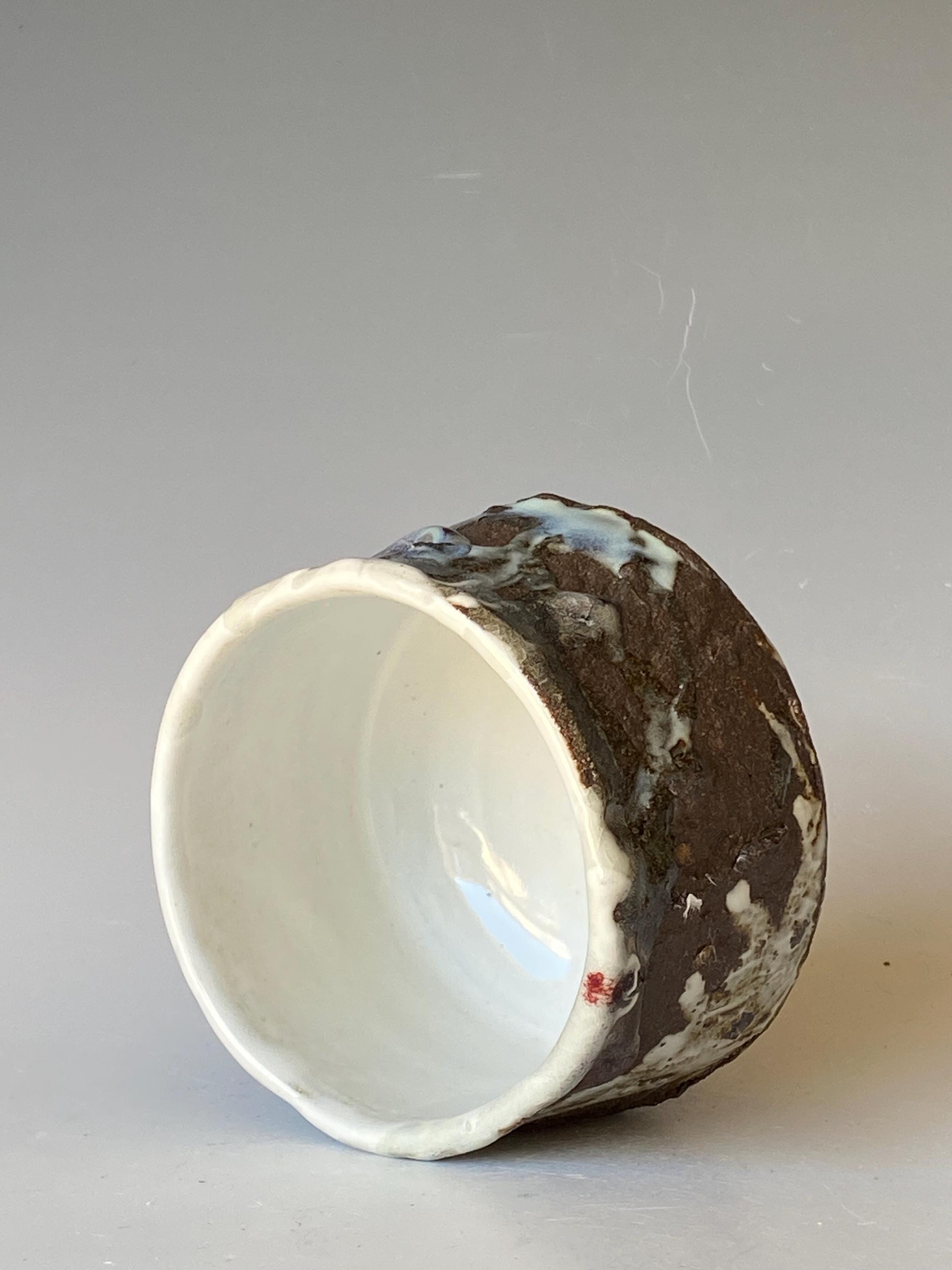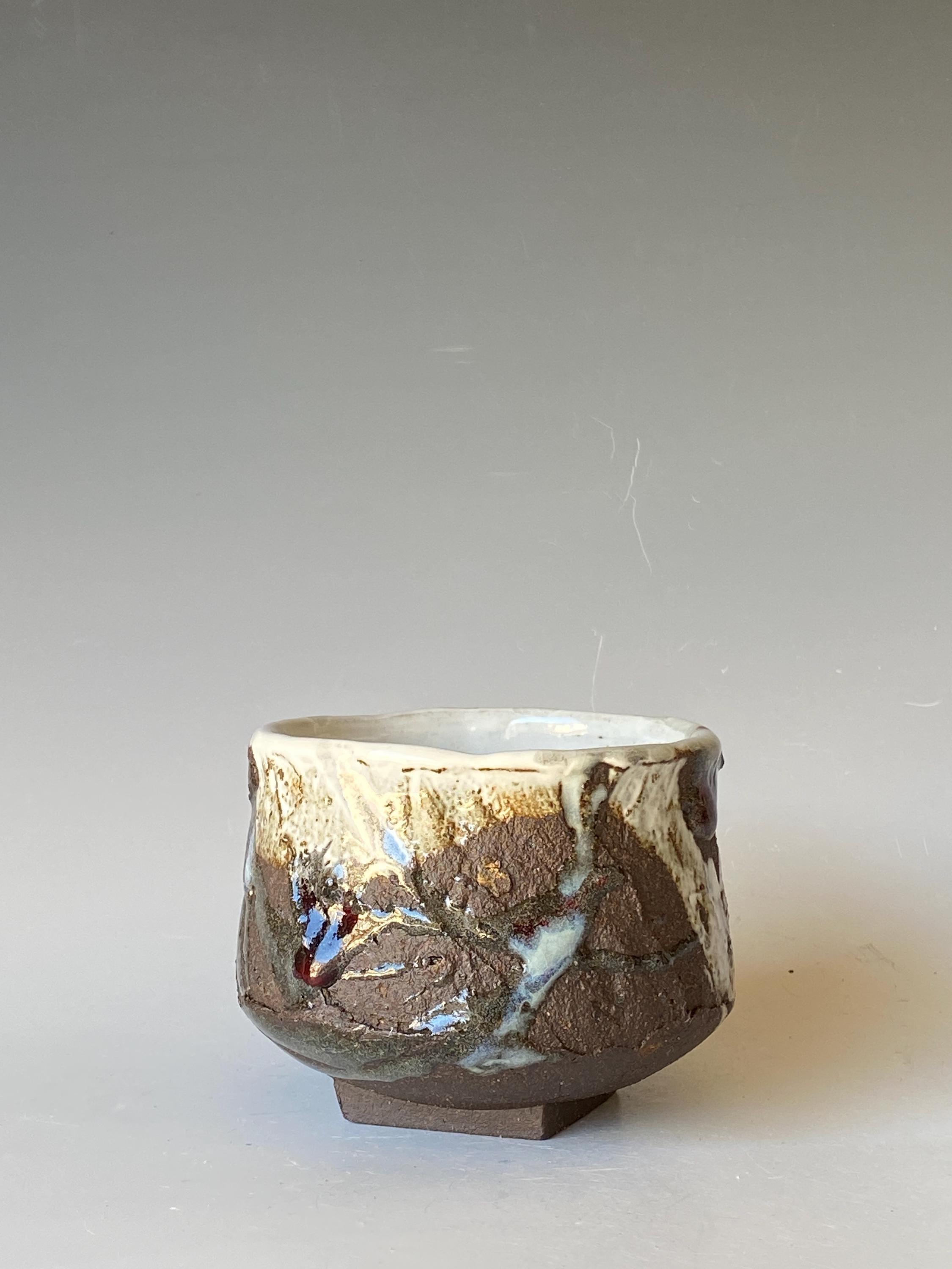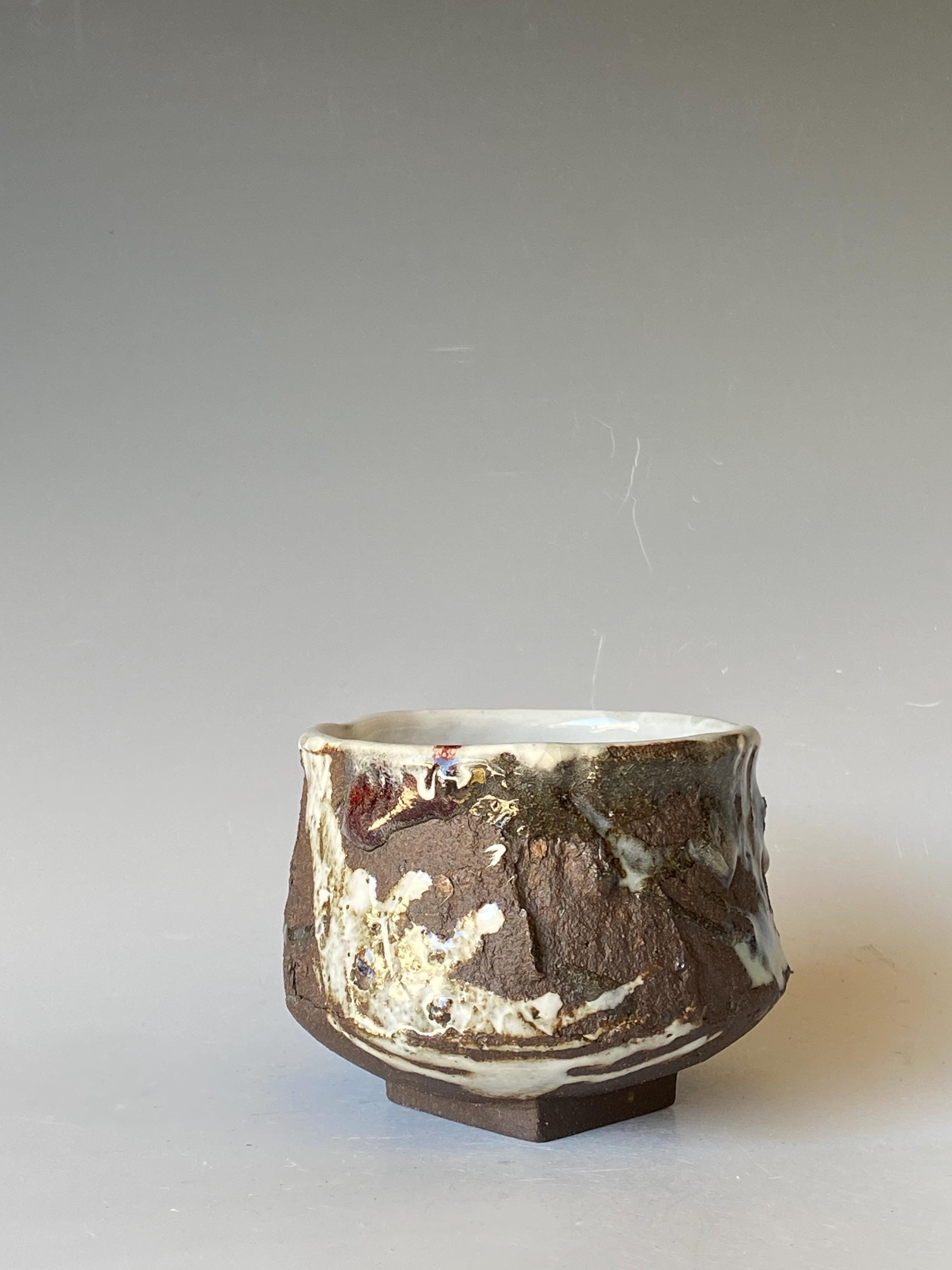 In these series of tea bowls and cups I used a dark clay that called black mountain. Part of outer surface of these bowls left un-glazed to show the color and texture of fired clay without any glaze.