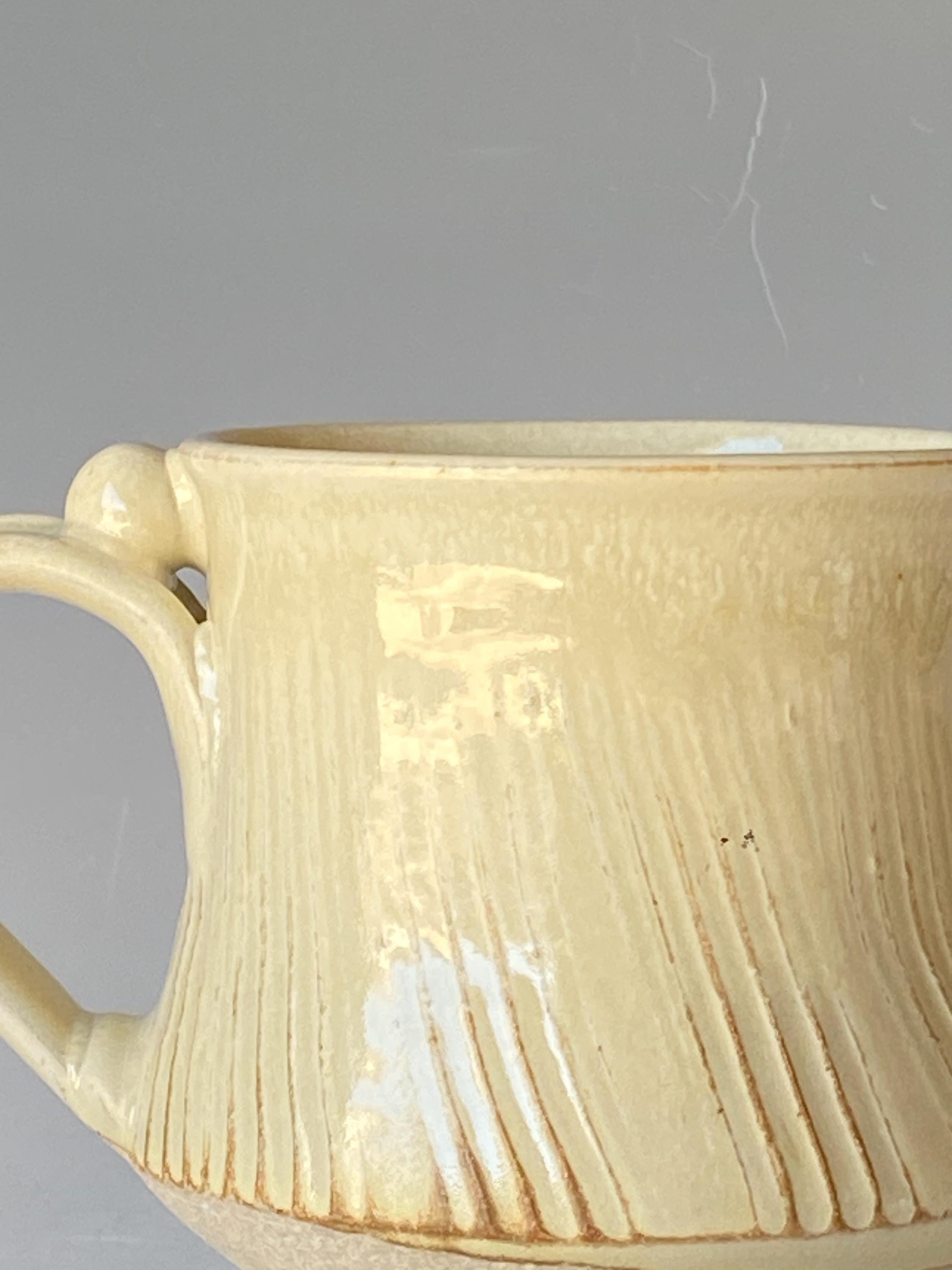 ATTENTION: This Mug is throw from a type of clay with good amount of sand in it, which creates a rough surface on areas that left un-glazed.