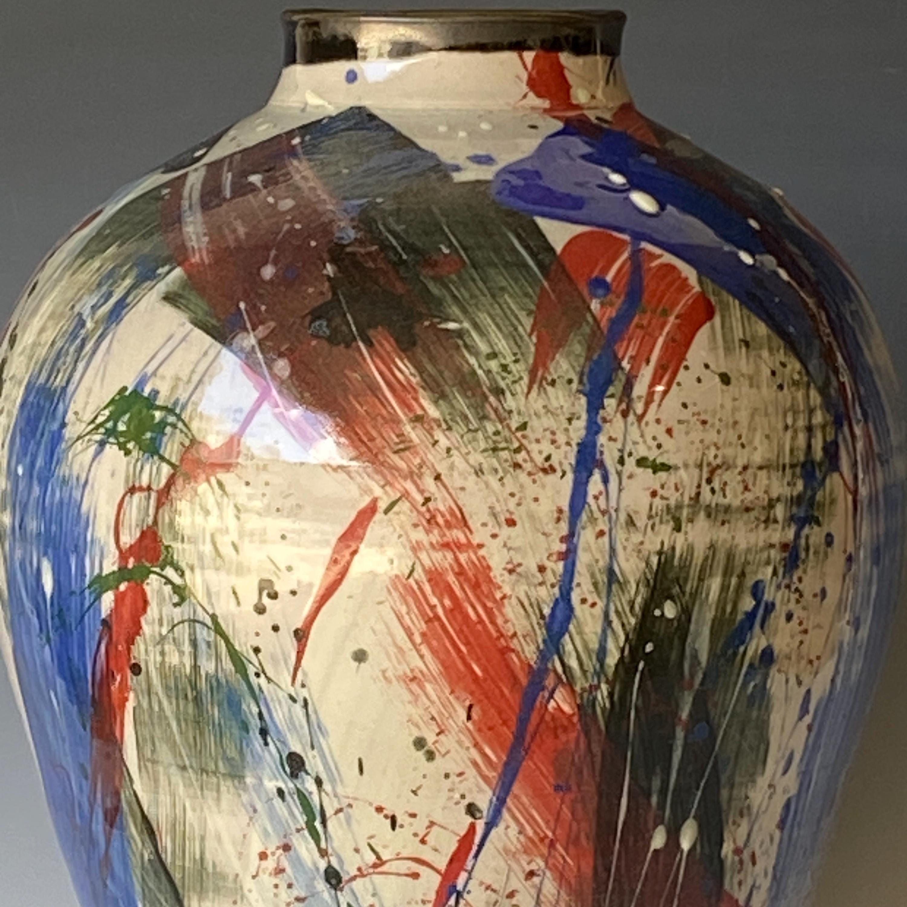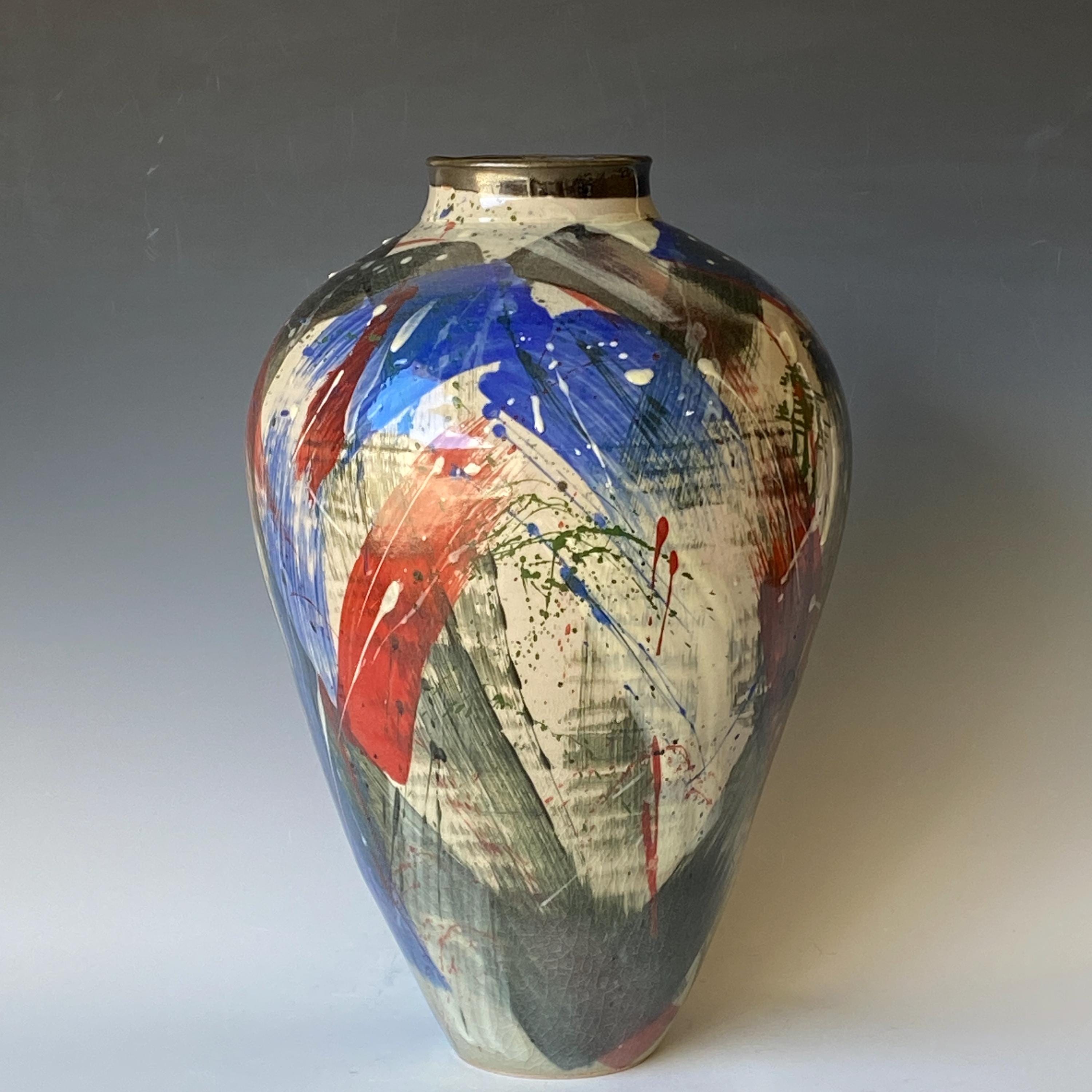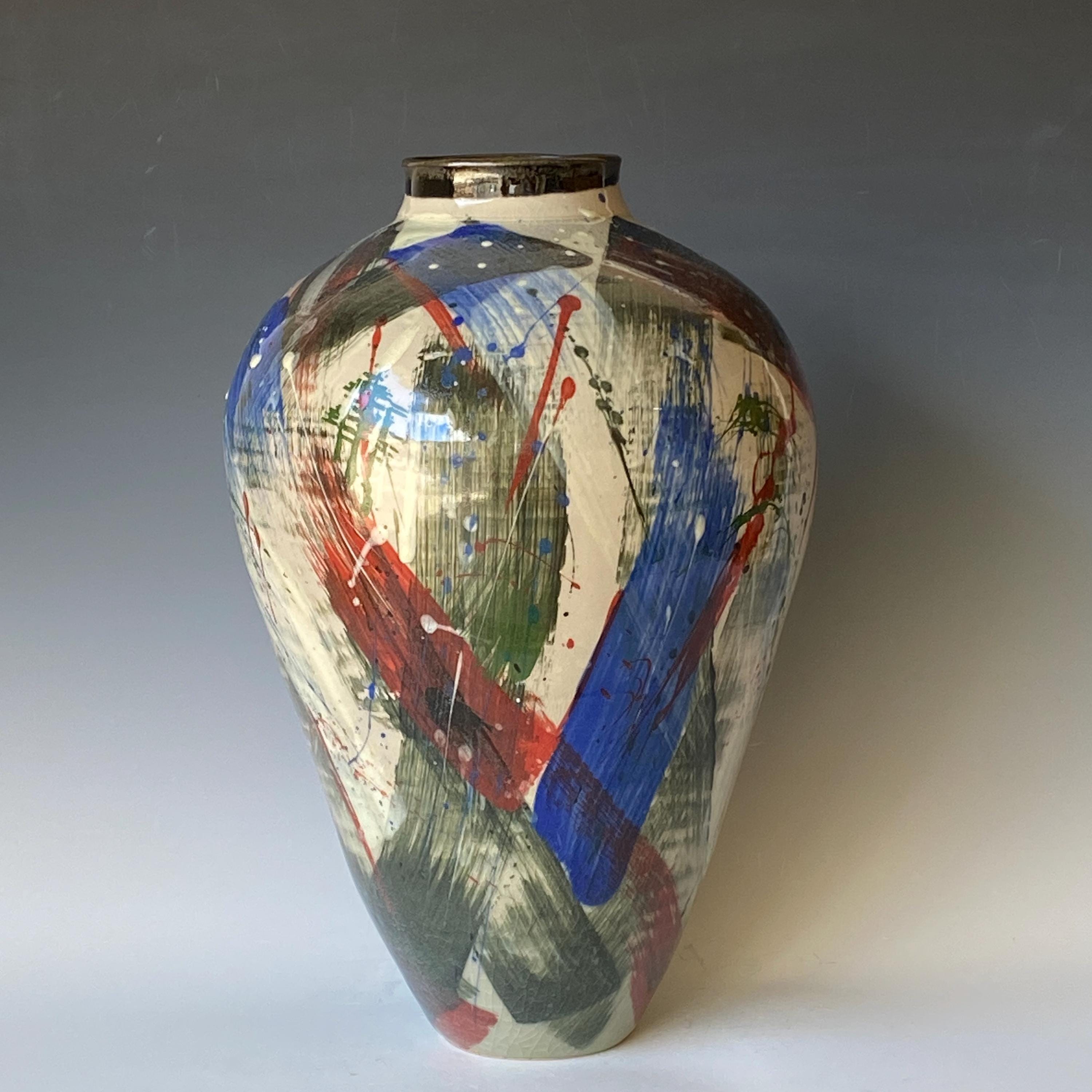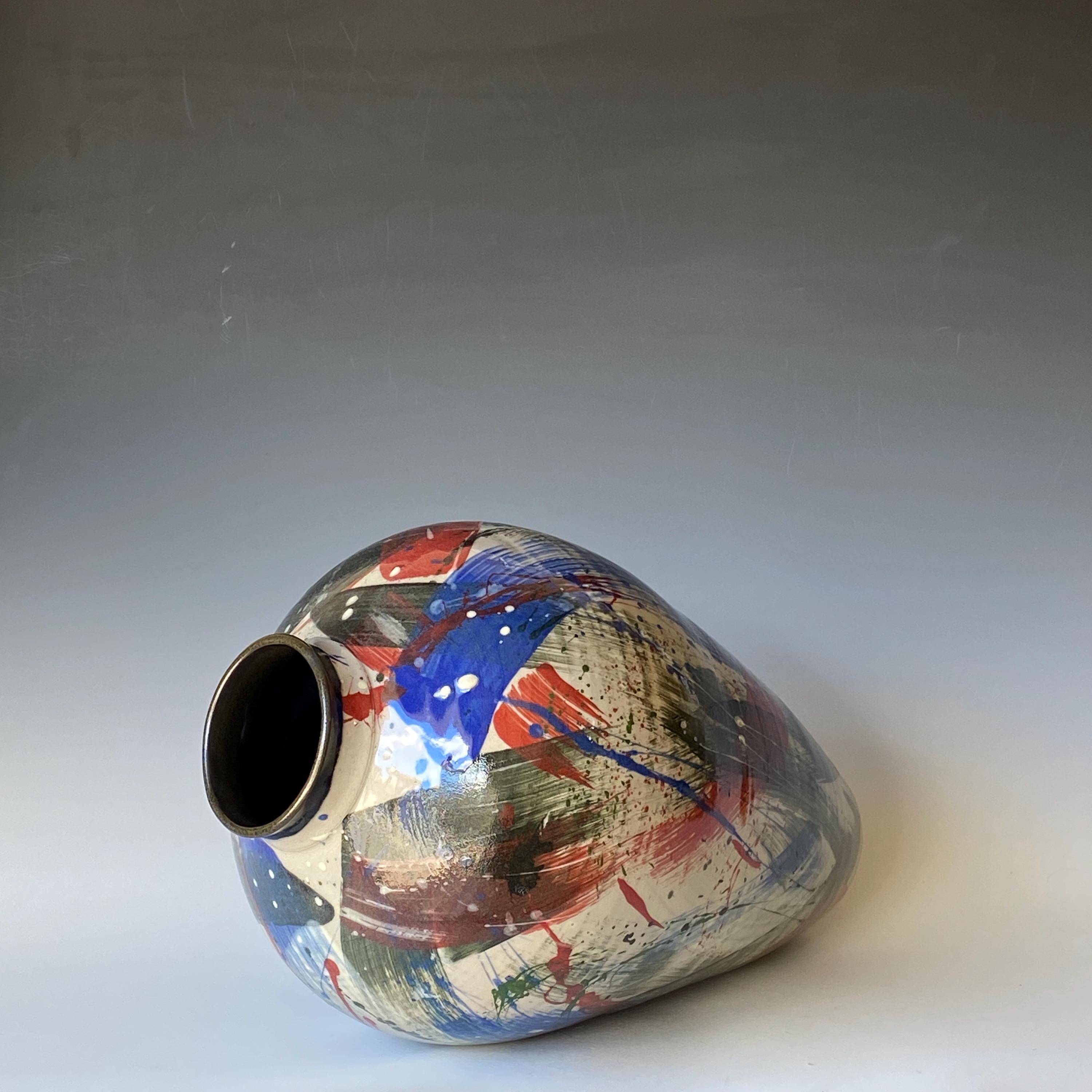Handmade ceramic vase. Spontaneous brush stroke on this tall Vase. Home decor. Height 13" * width 8.5" * rim 3".