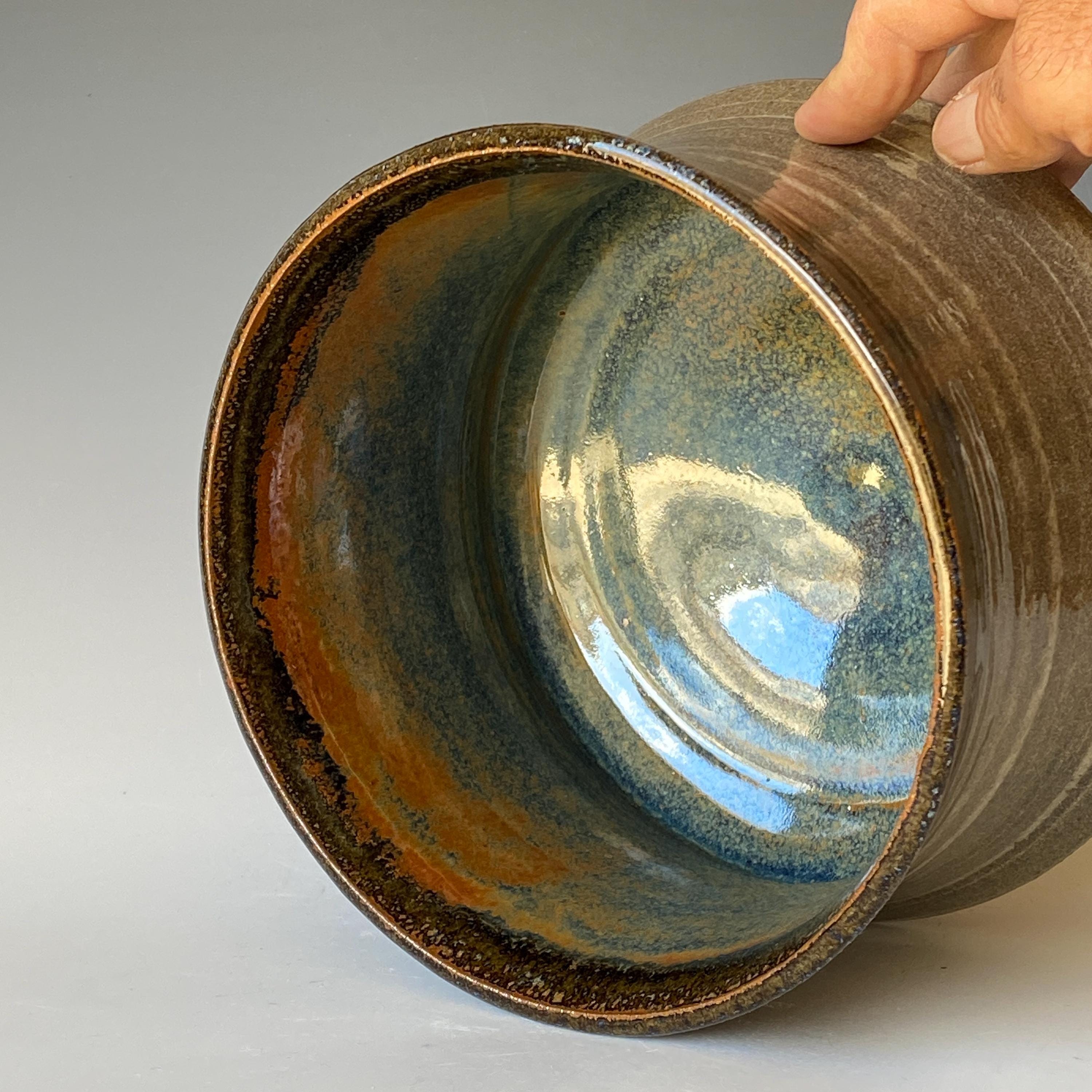ATTENTION: This pot is throw from a type of clay with good amount of sand in it, which creates a rough surface on areas that left un-glazed.
