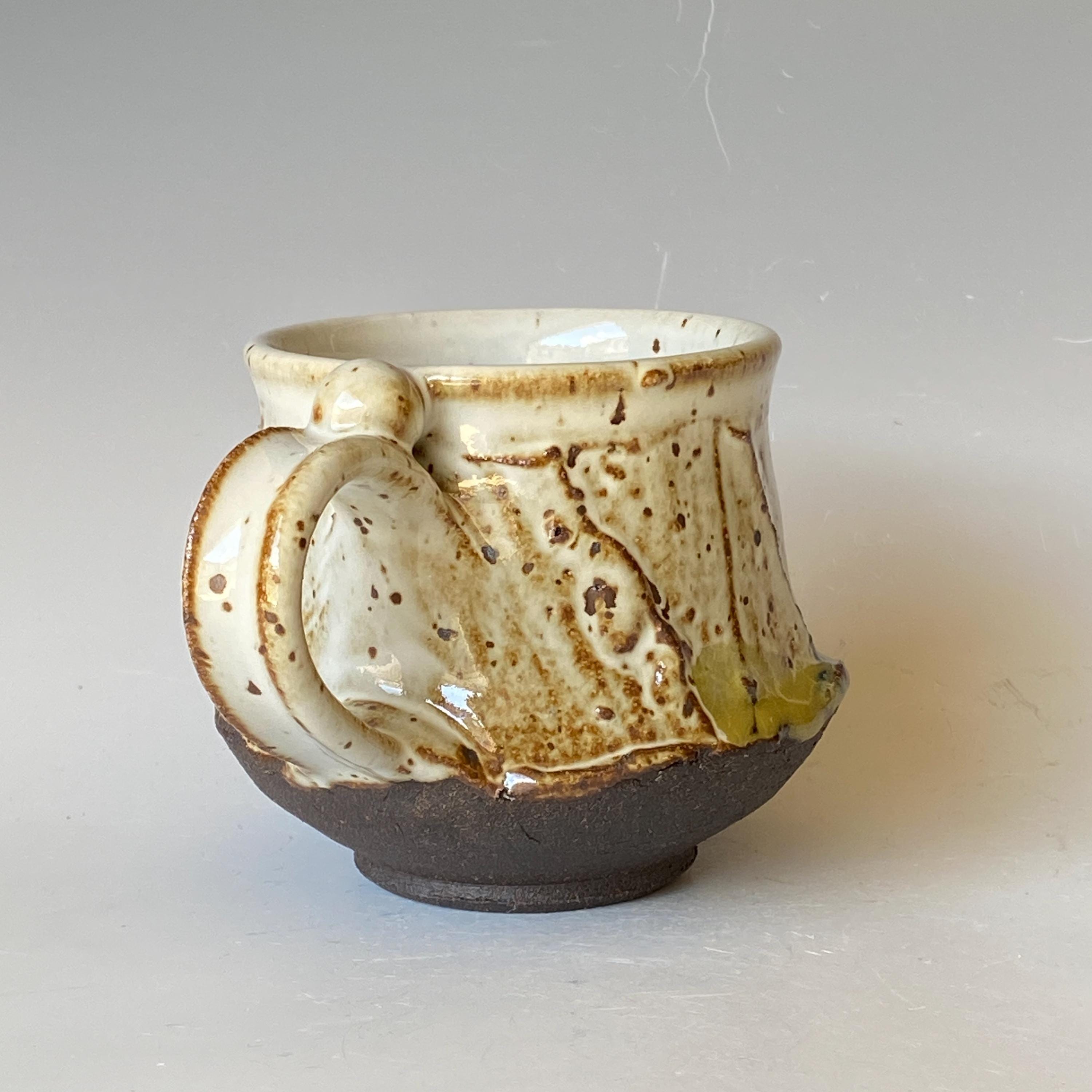 ATTENTION: This Mug is throw from a type of clay with good amount of sand in it, which creates a rough surface on areas that left un-glazed.