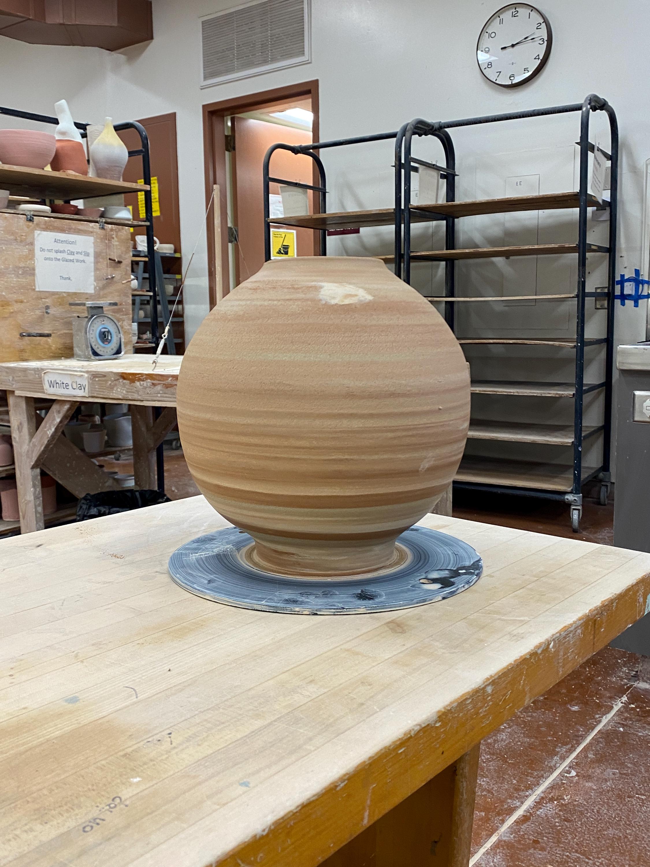 ATTENTION: This piece is throw from a type of clay with good amount of sand in it, which creates a rough surface on areas that left un-glazed.