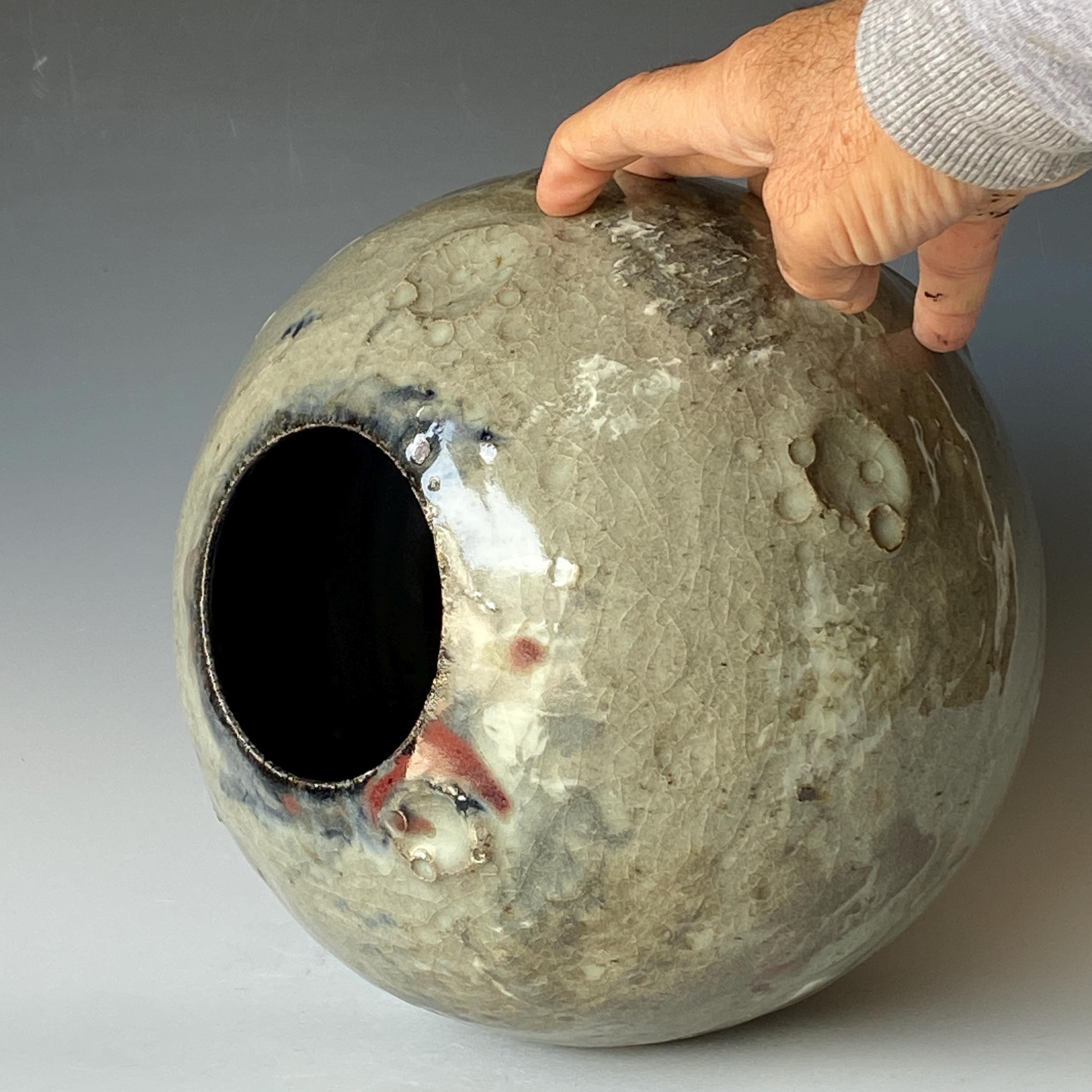 Handmade ceramic sphere, home decor. Height 9.5" * width 10" Rim 3.7".