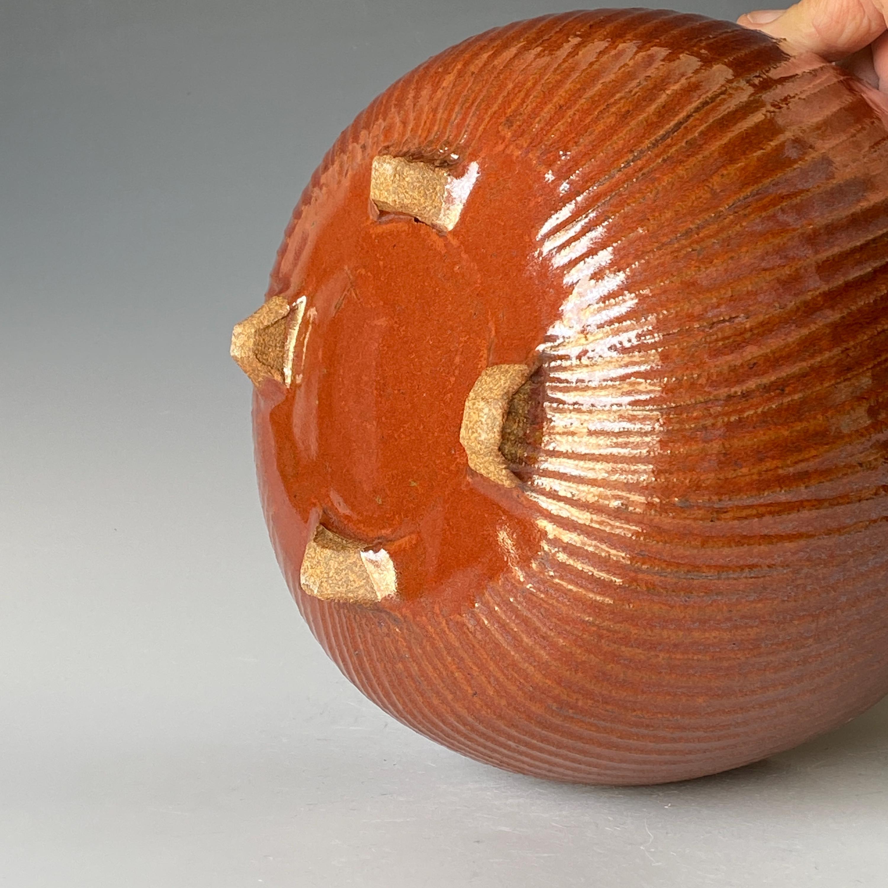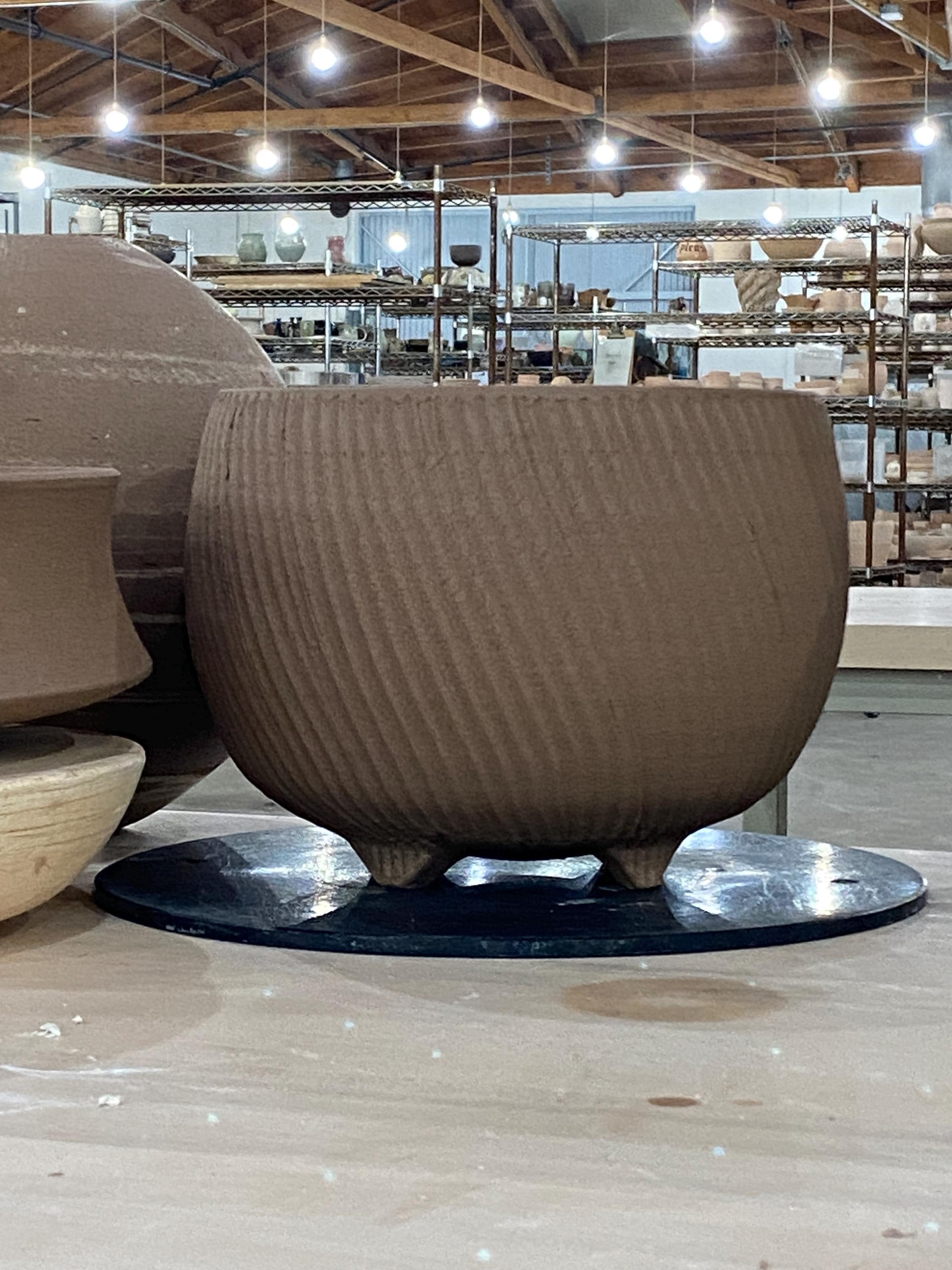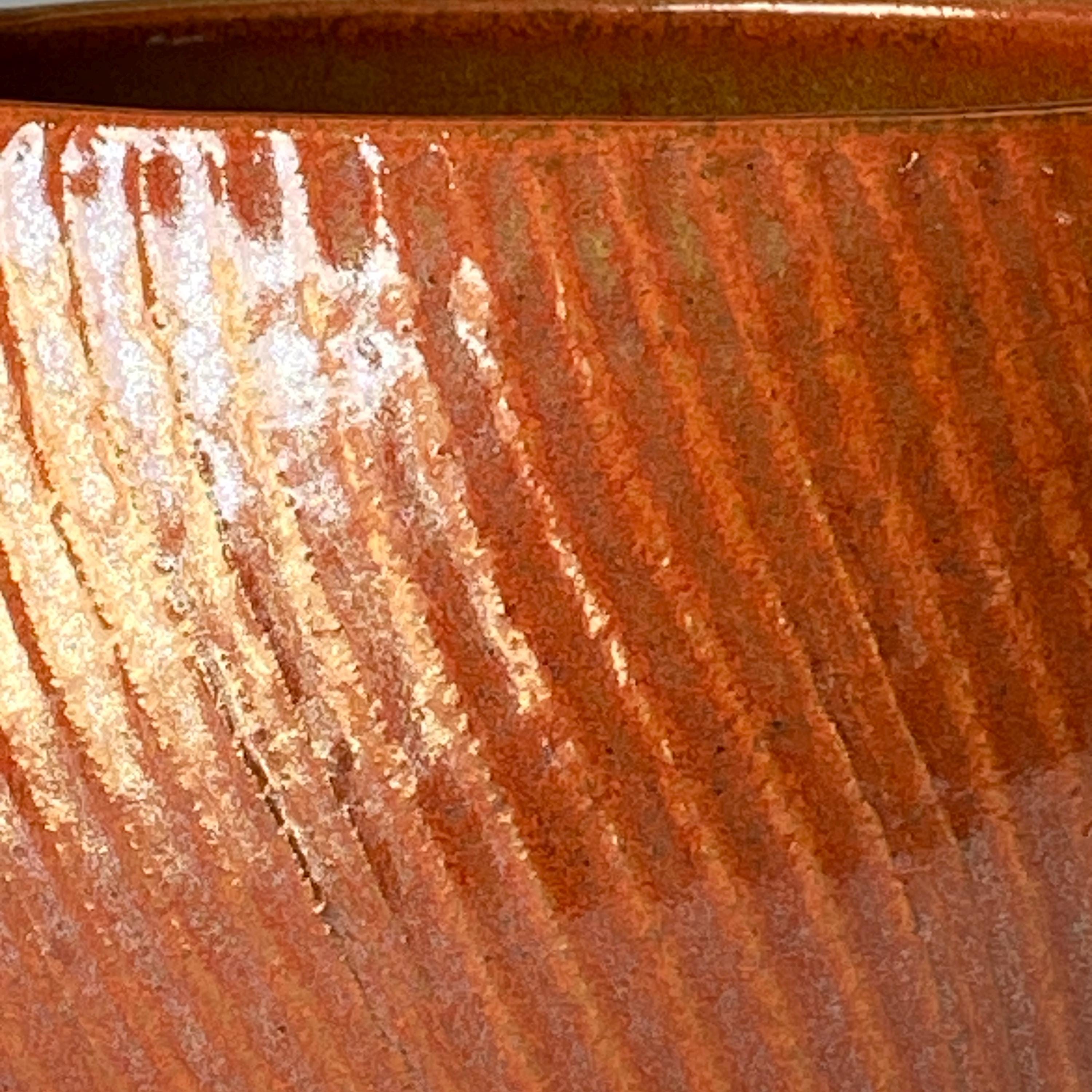 ATTENTION: This pot is throw from a type of clay with good amount of sand in it, which creates a rough surface on areas that left un-glazed.