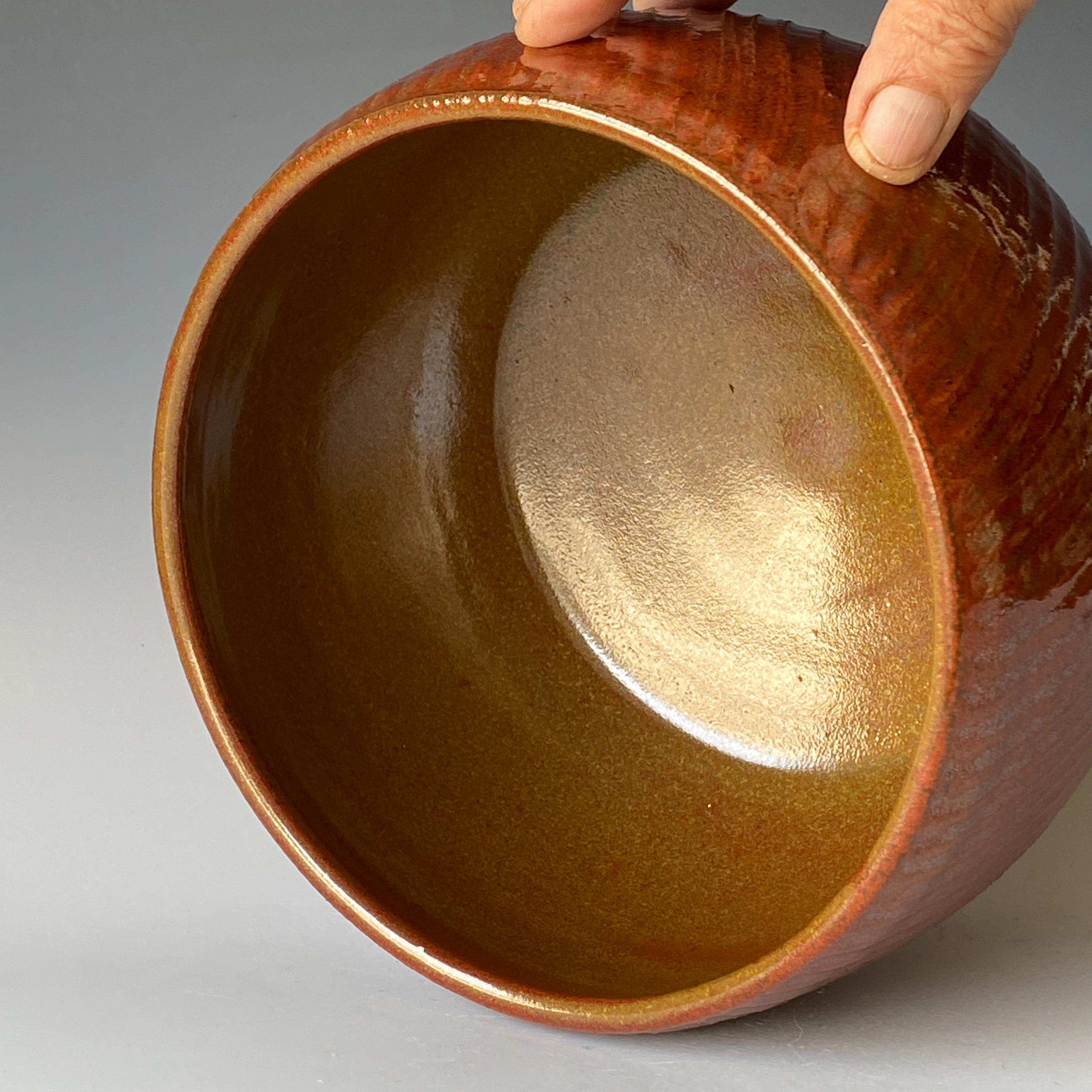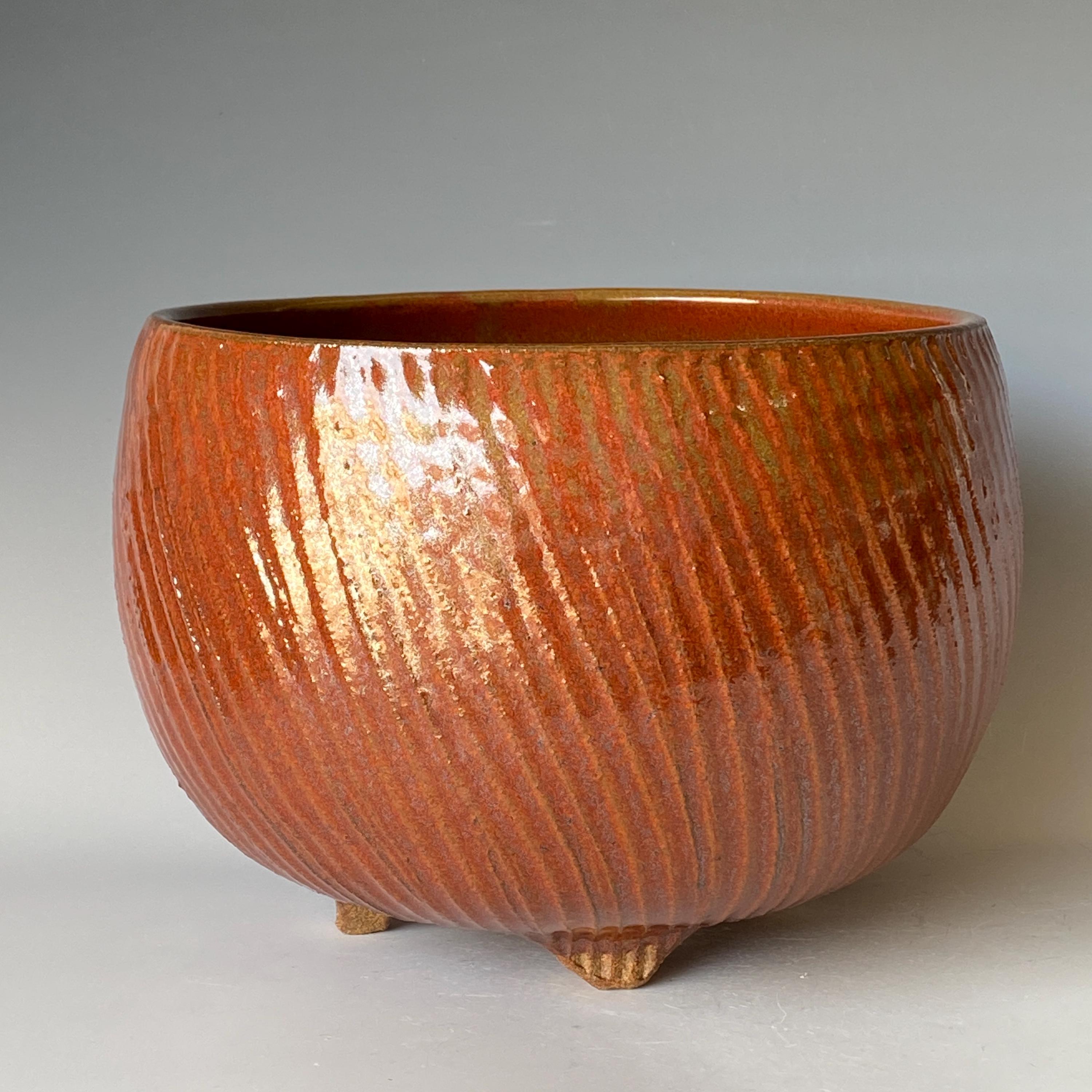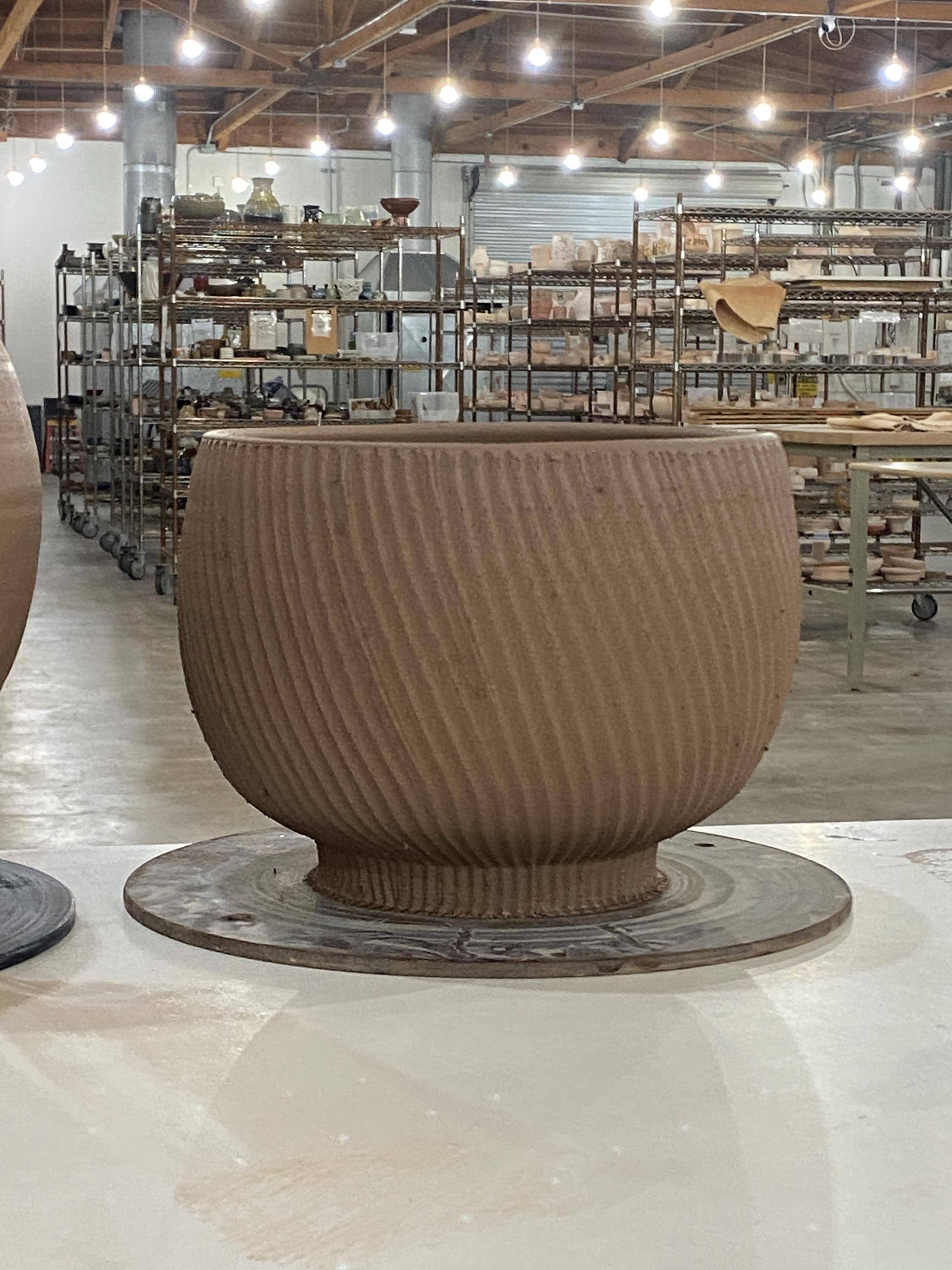 ATTENTION: This pot is throw from a type of clay with good amount of sand in it, which creates a rough surface on areas that left un-glazed.