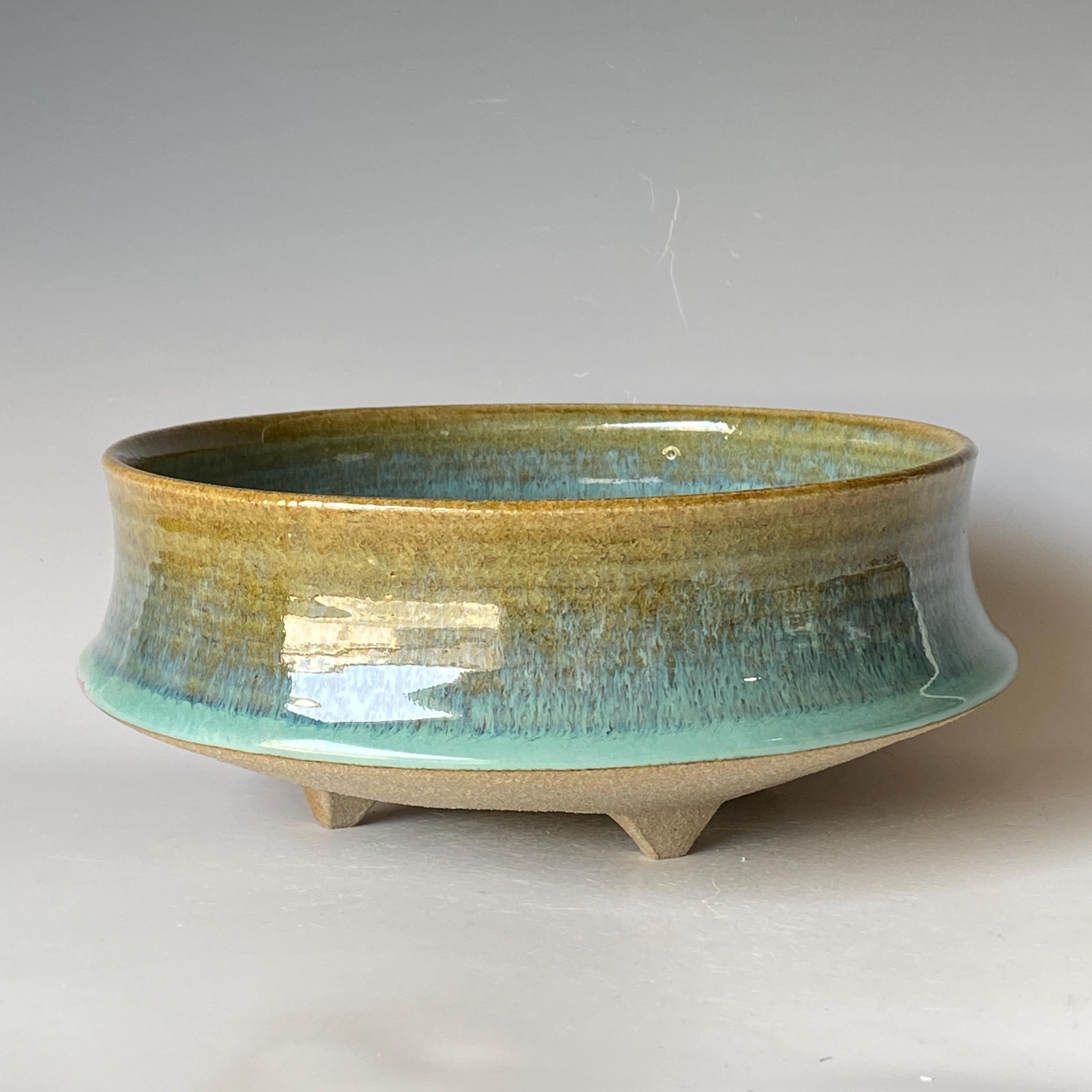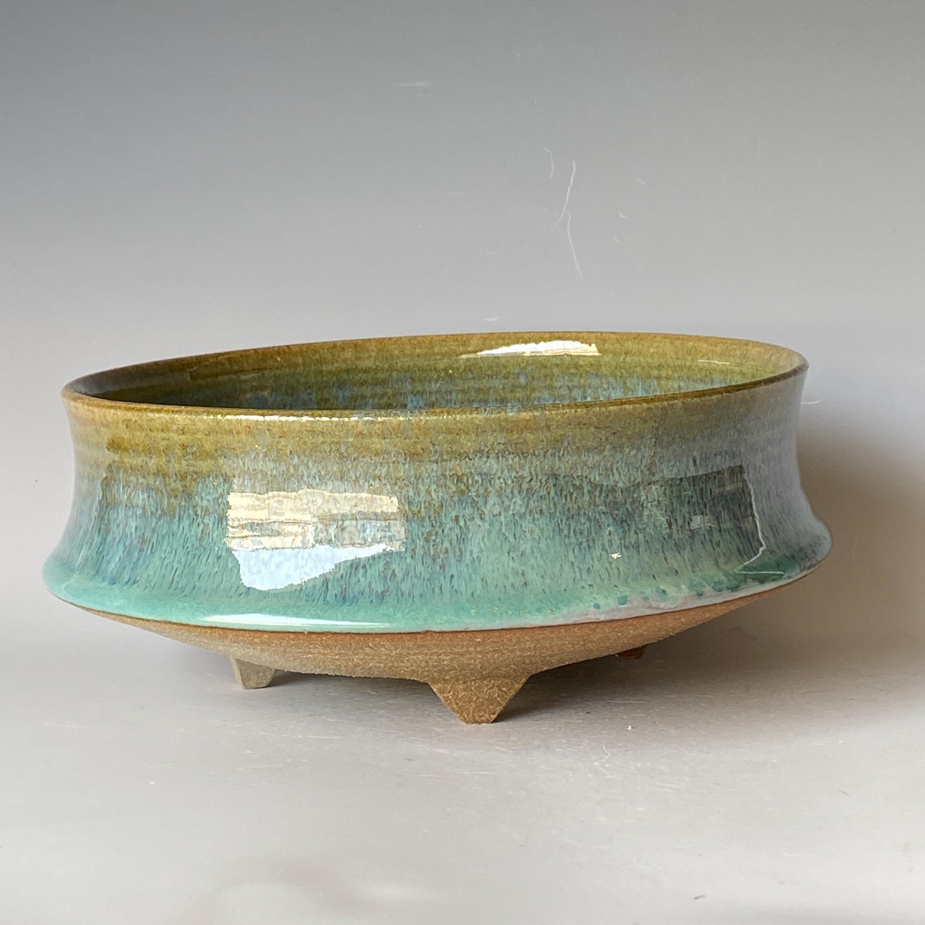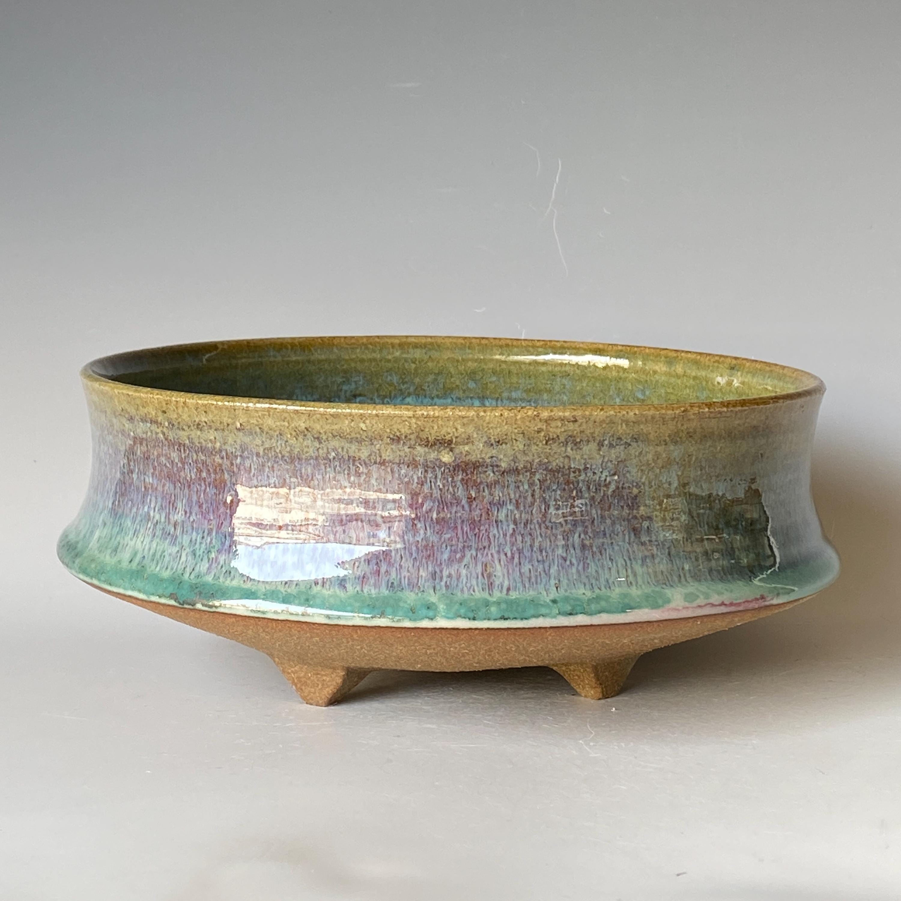 ATTENTION: This pot is throw from a type of clay with good amount of sand in it, which creates a rough surface on areas that left un-glazed.