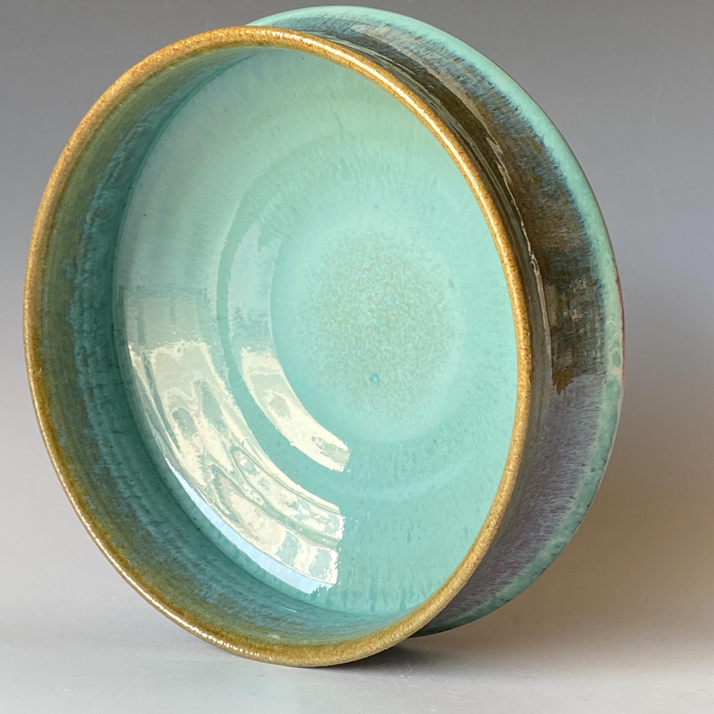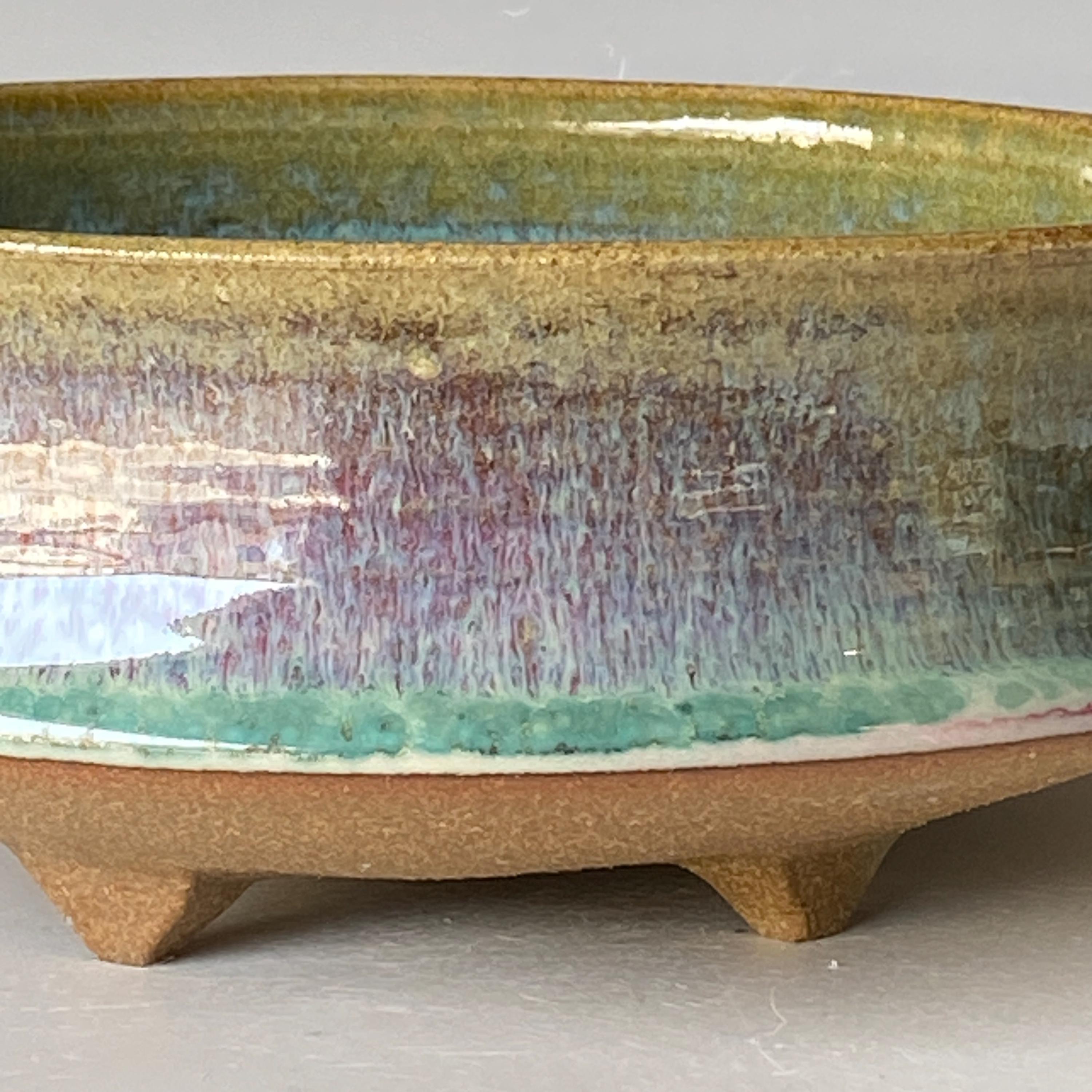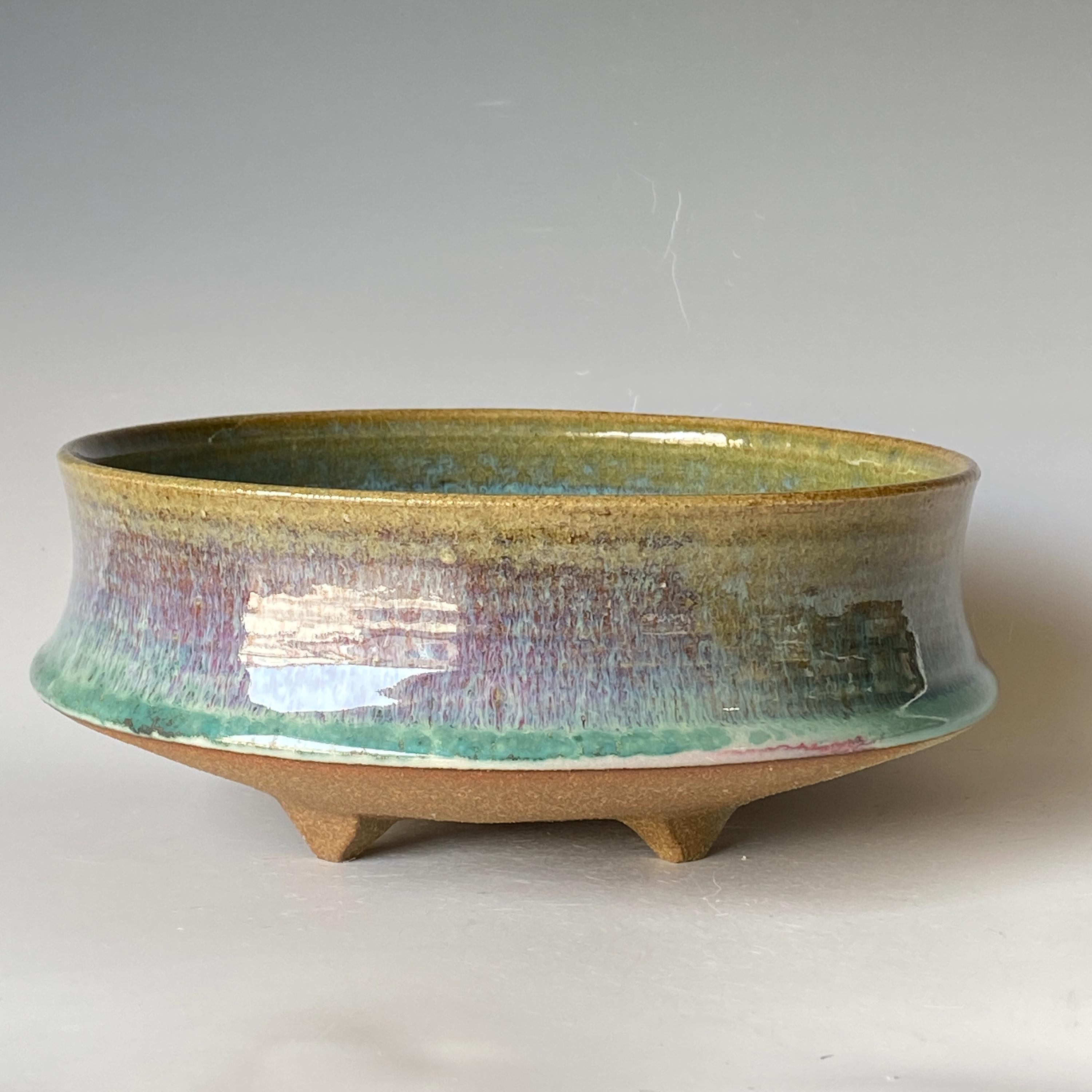 ATTENTION: This pot is throw from a type of clay with good amount of sand in it, which creates a rough surface on areas that left un-glazed.