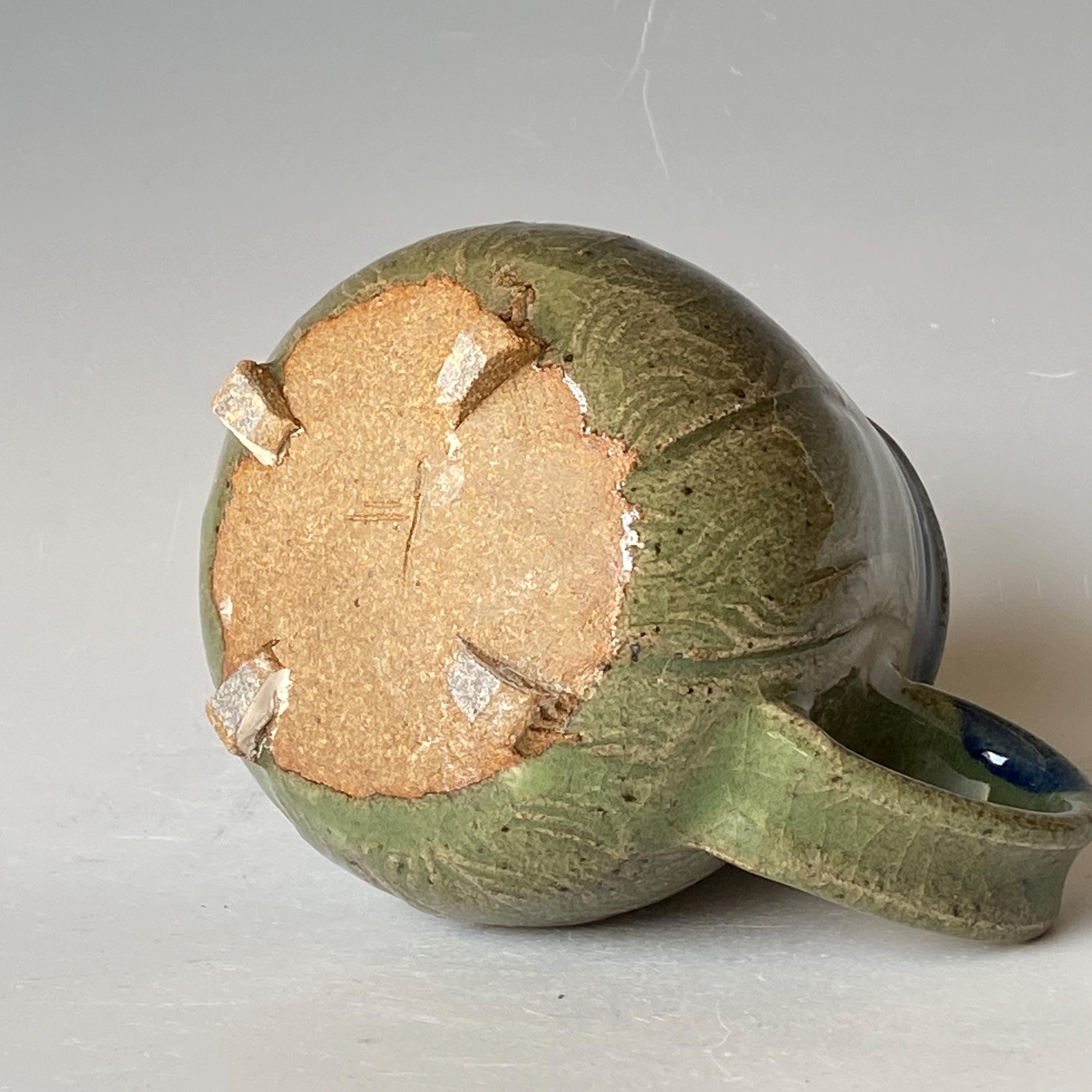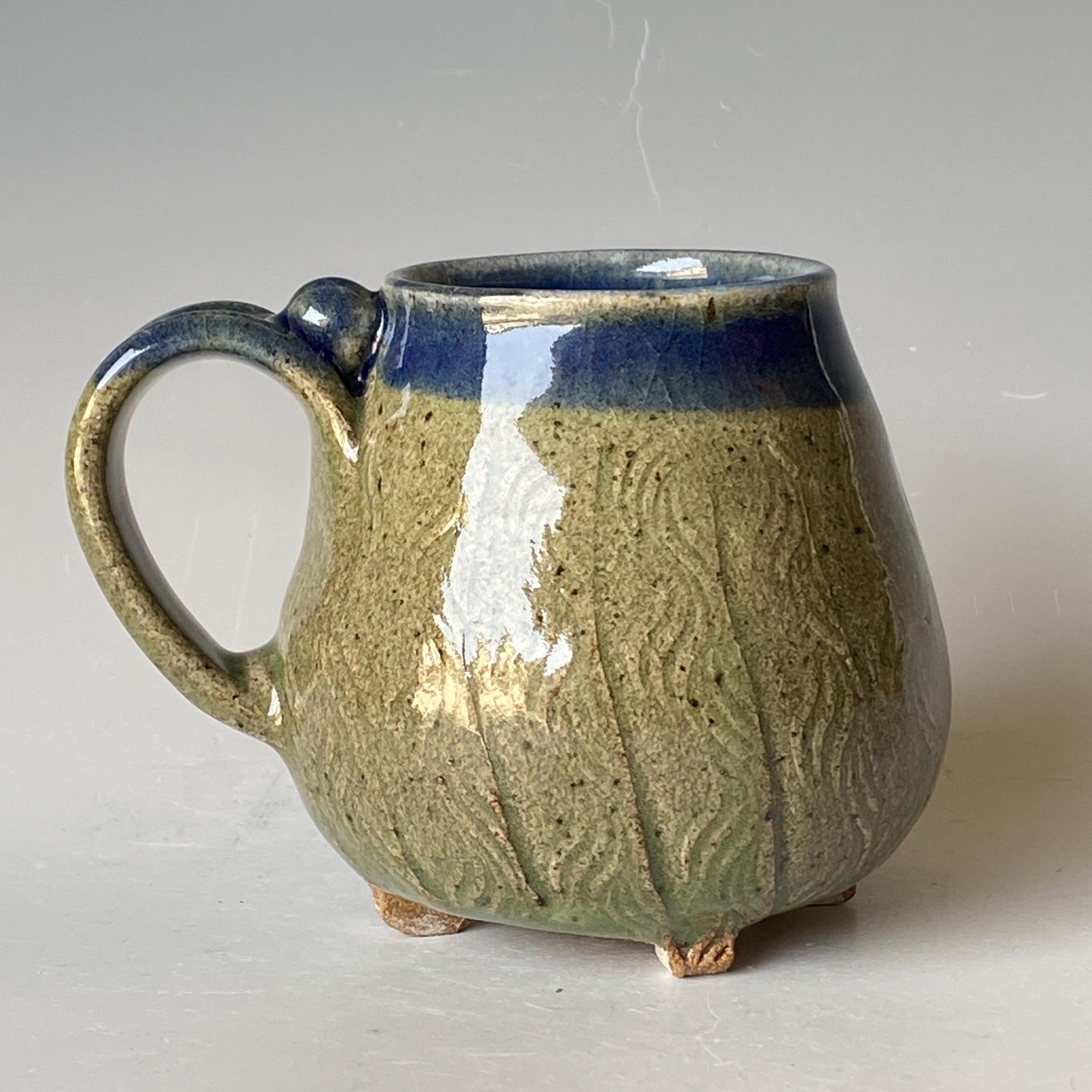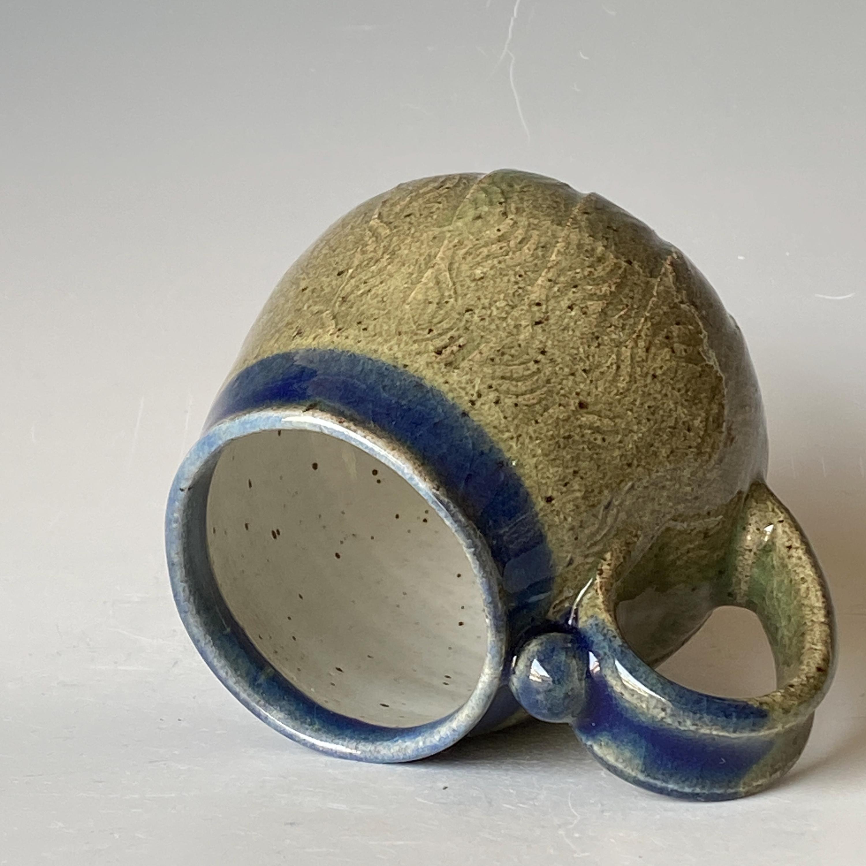 ATTENTION: This Mug is throw from a type of clay with good amount of sand in it, which creates a rough surface on areas that left un-glazed.