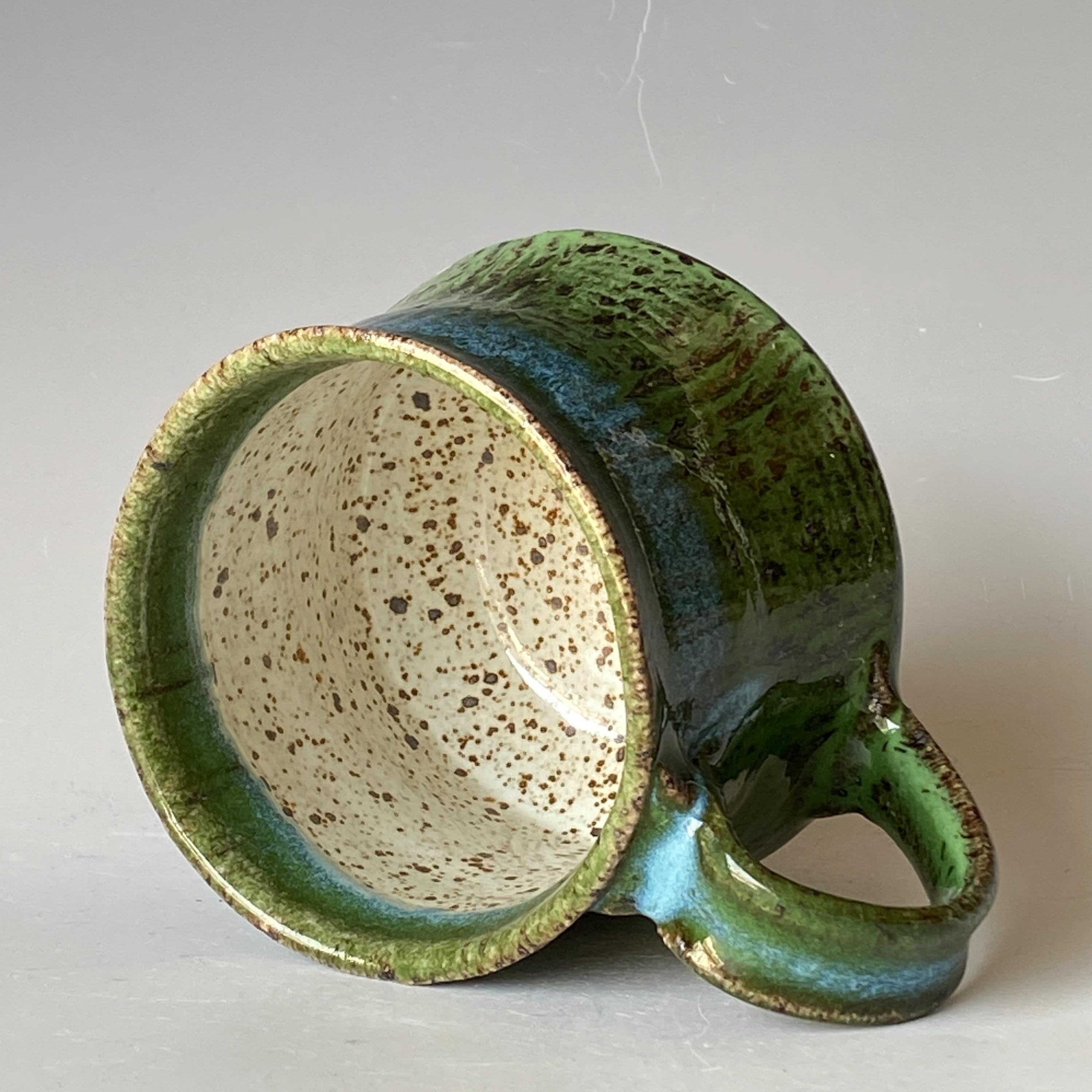 ATTENTION: This Mug is throw from a type of clay with good amount of sand in it, which creates a rough surface on areas that left un-glazed.