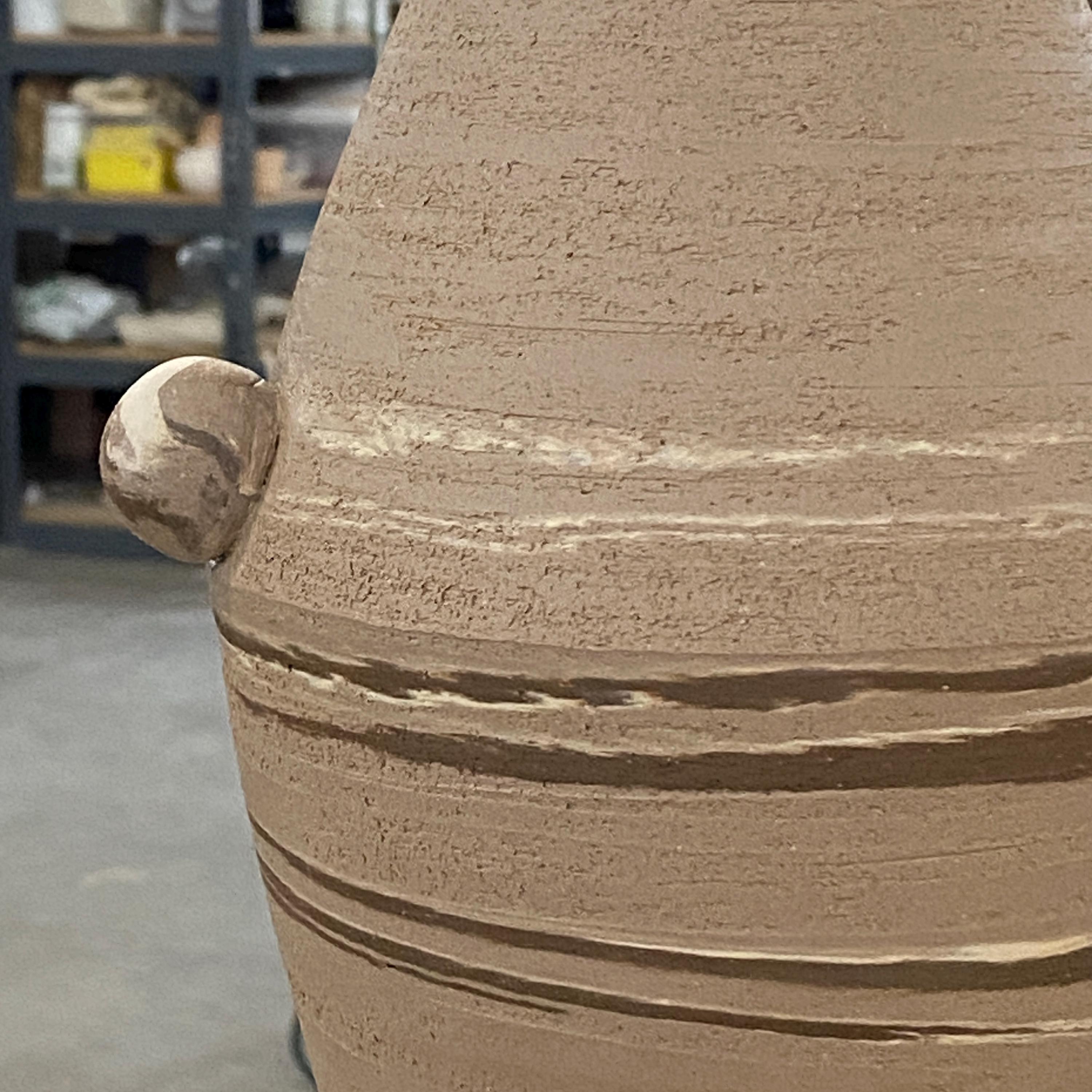 ATTENTION: This piece is throw from a type of clay with good amount of sand in it, which creates a rough surface on areas that left un-glazed.