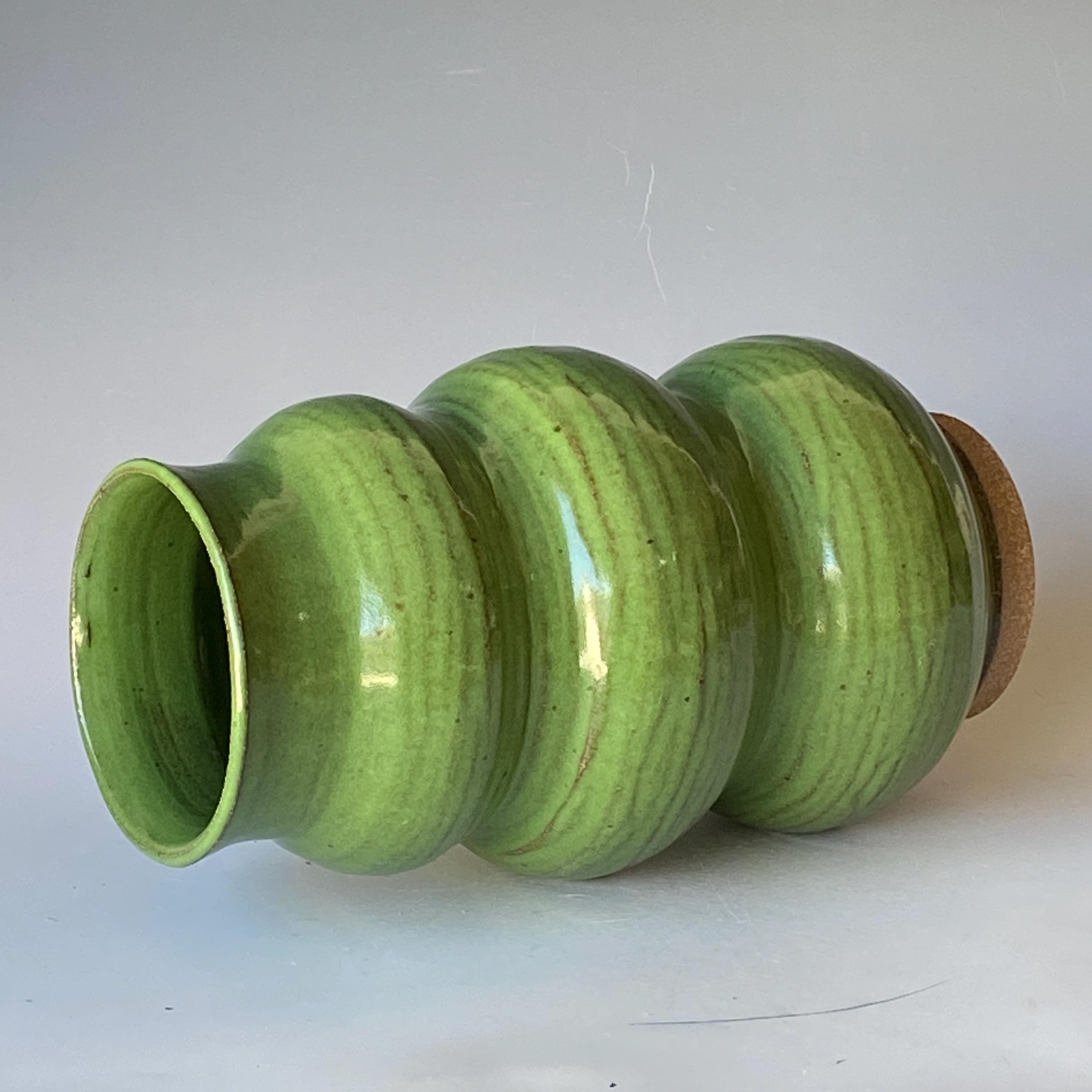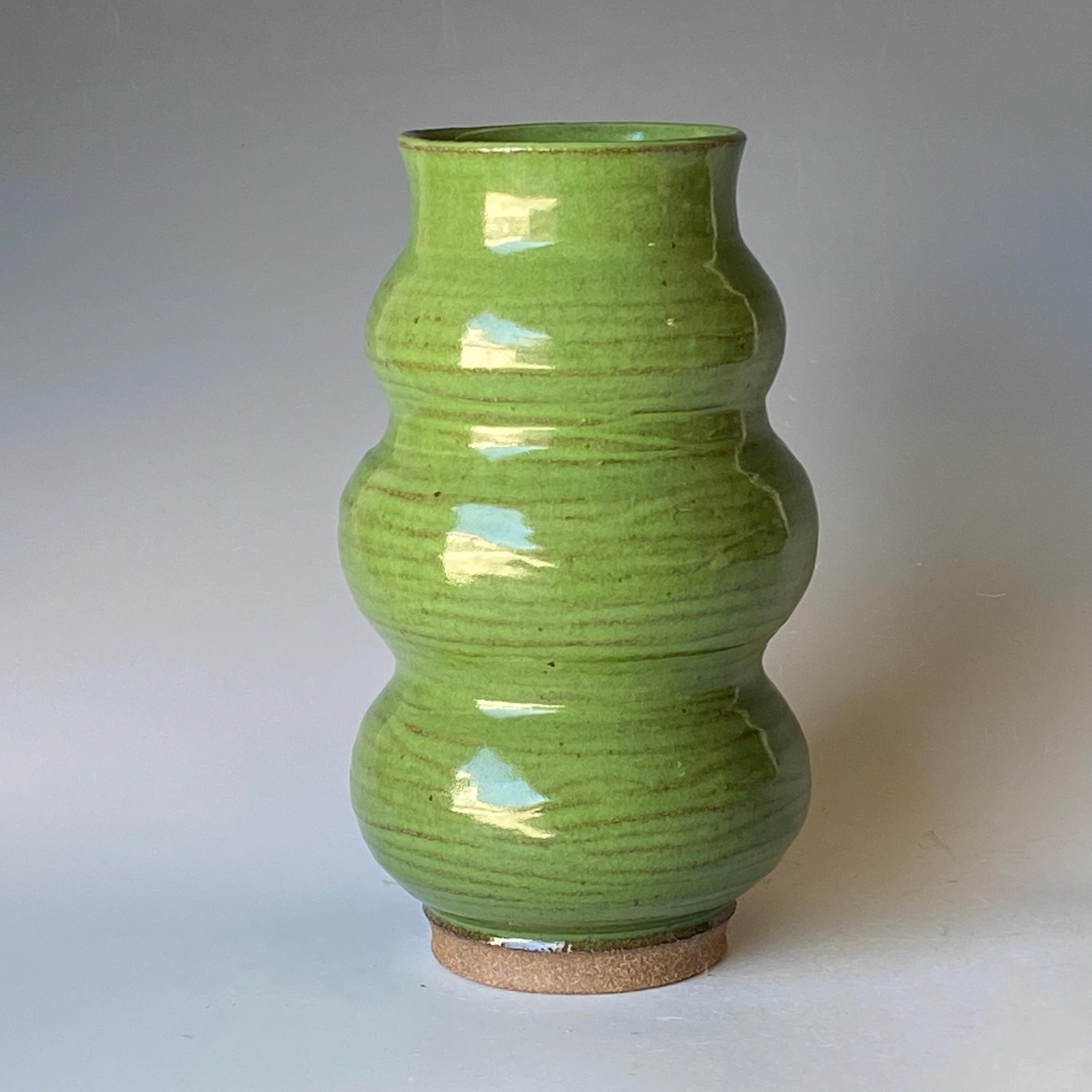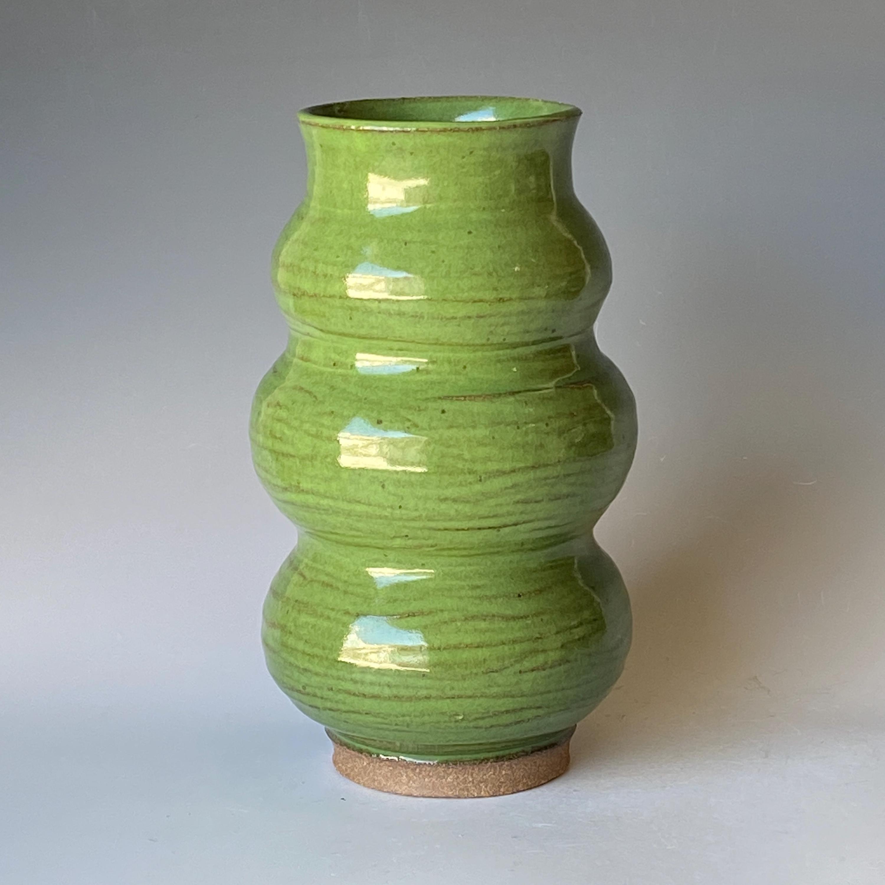 Lush green, wheel thrown ceramic vase. It measures height 9" * rim 3.5".