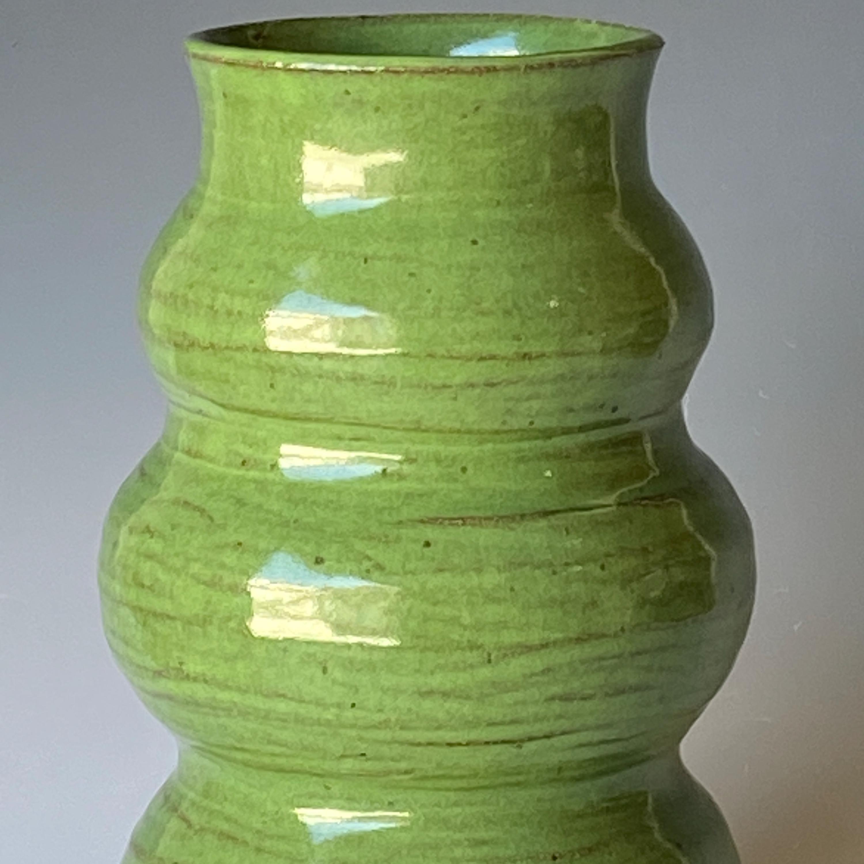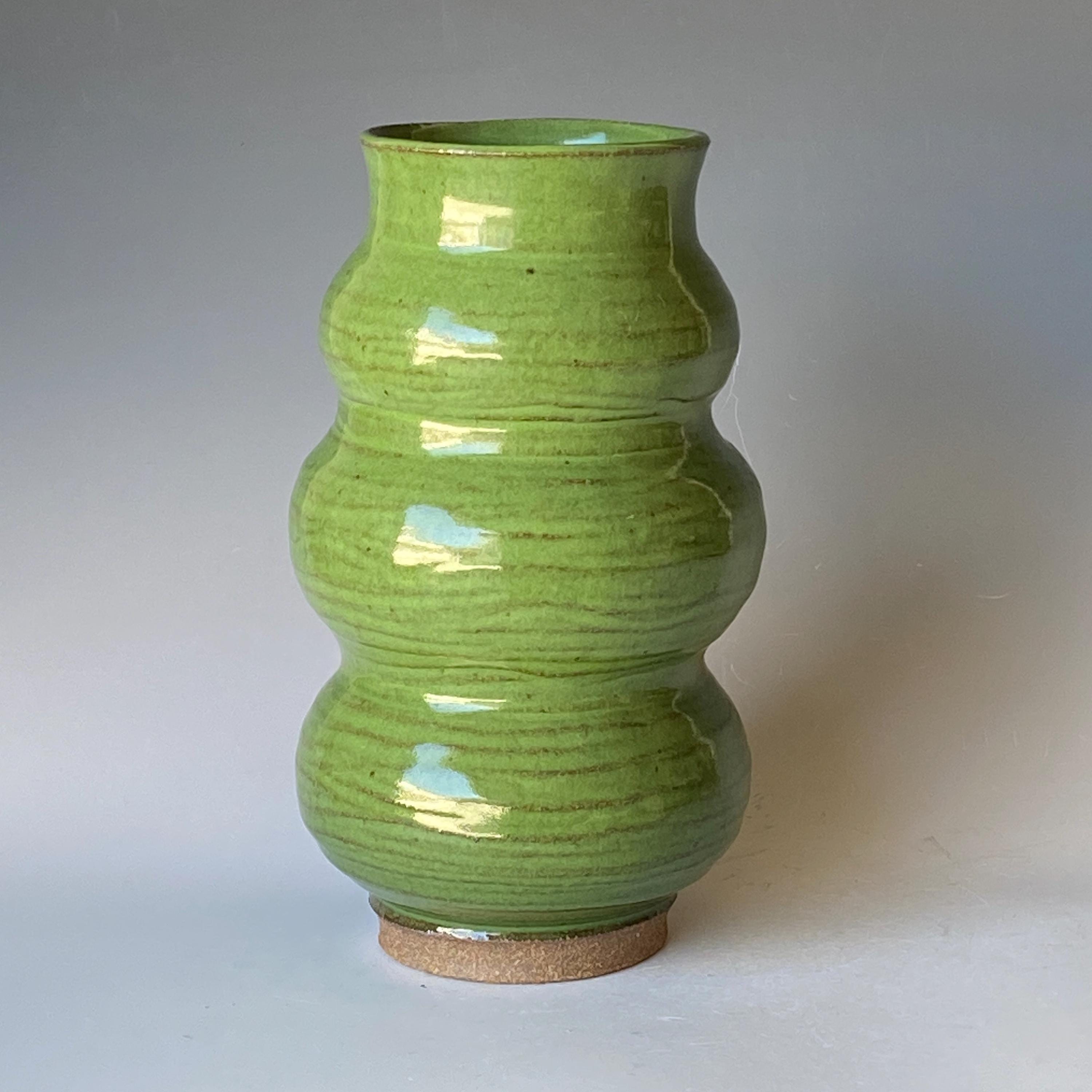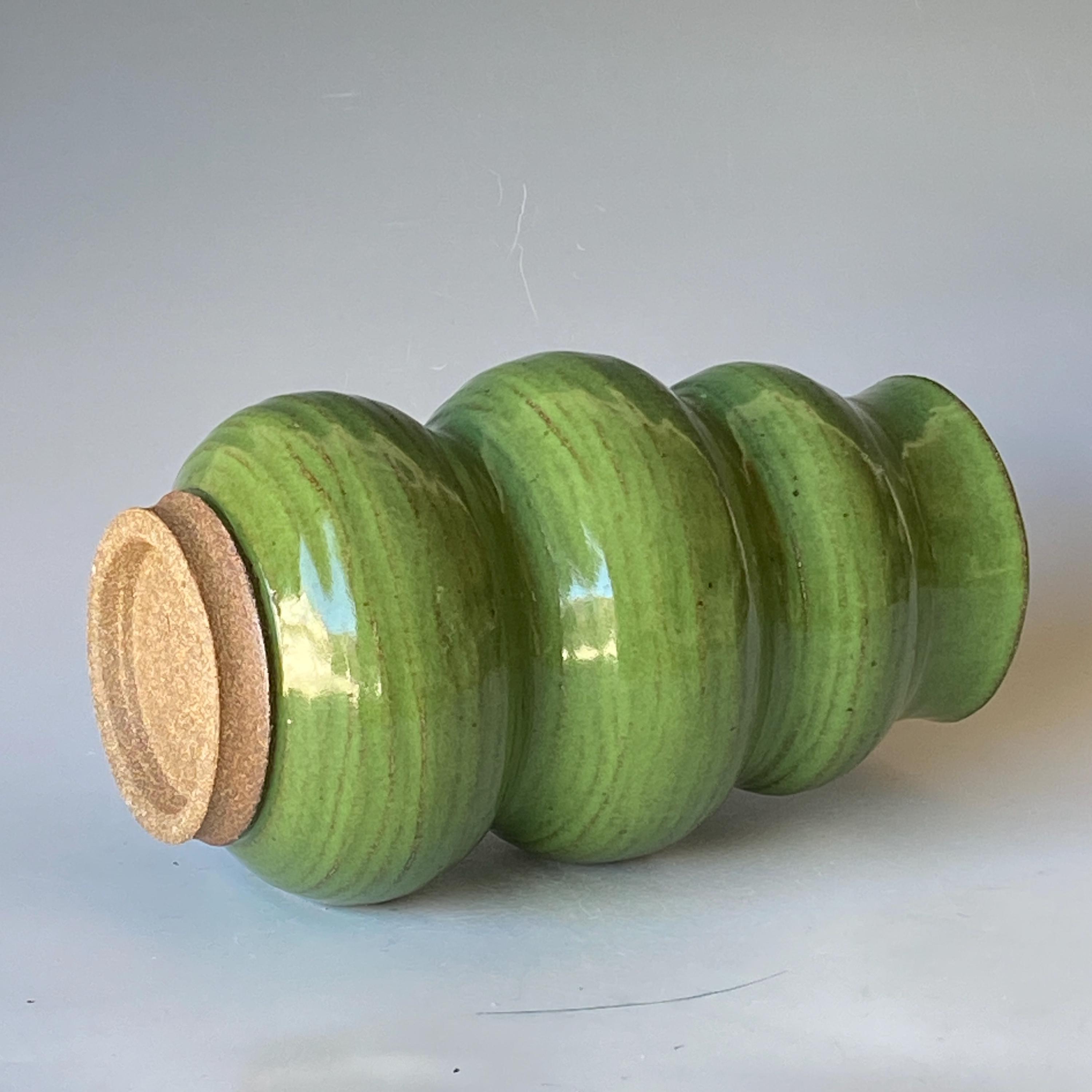 Lush green, wheel thrown ceramic vase. It measures height 9" * rim 3.5".
