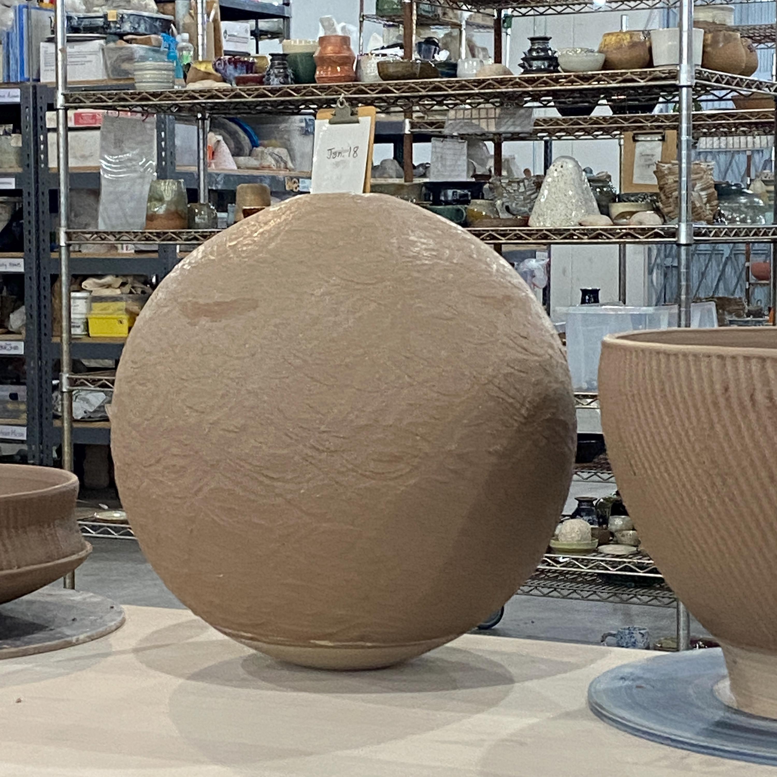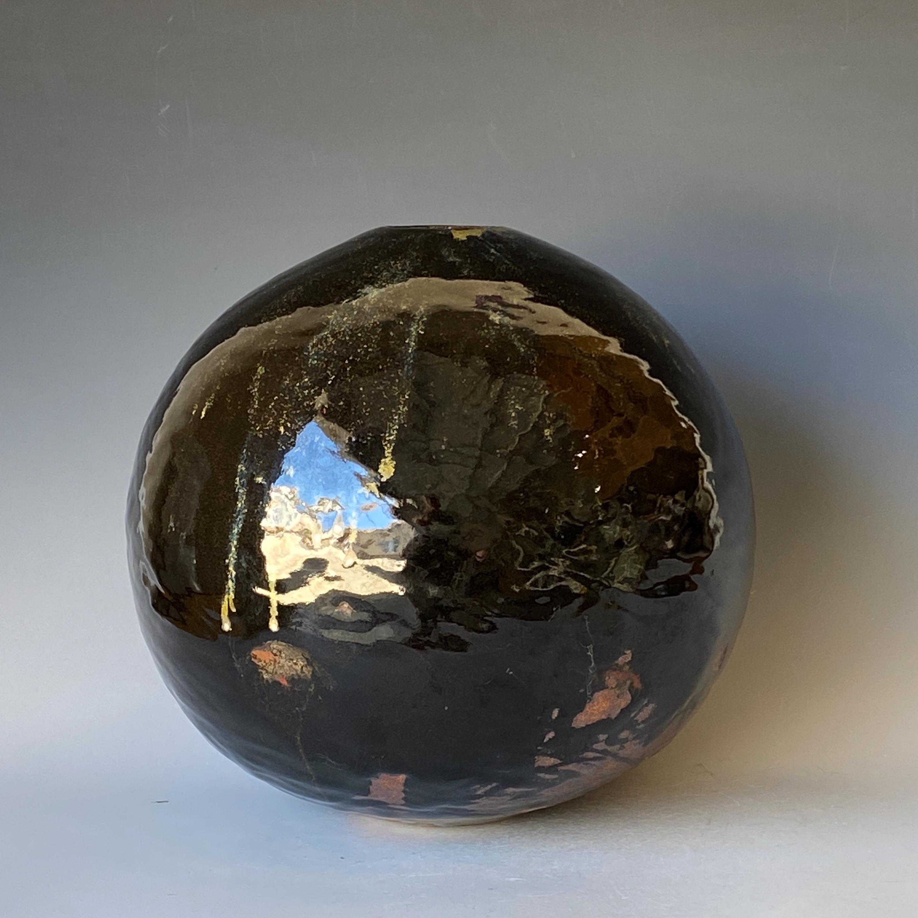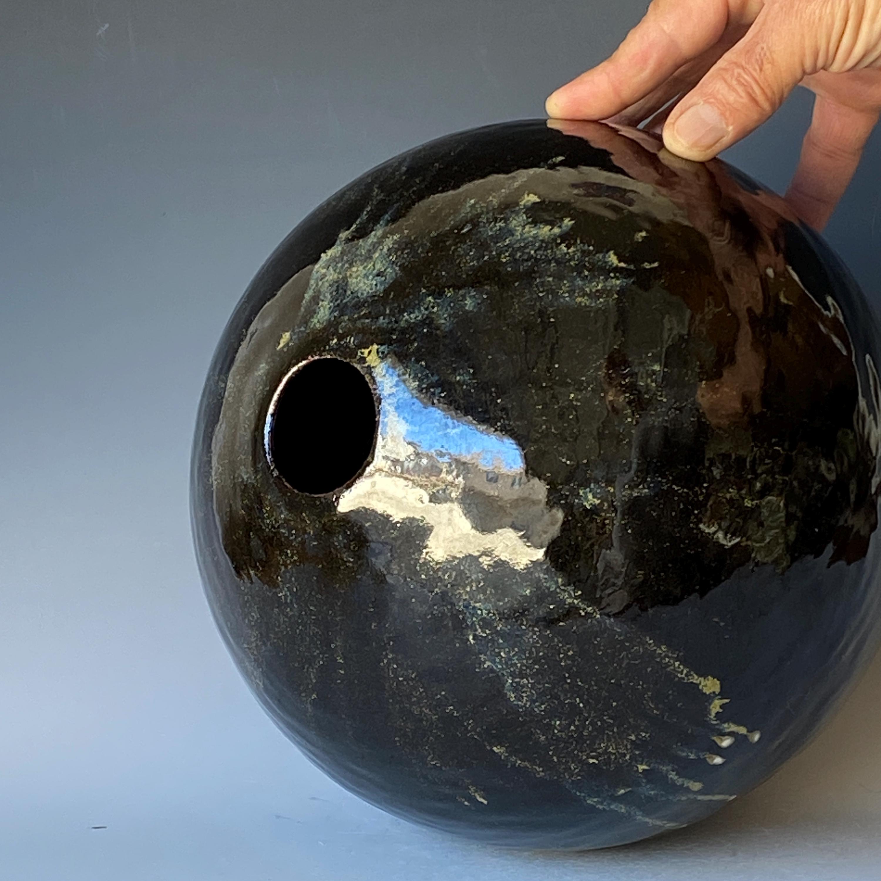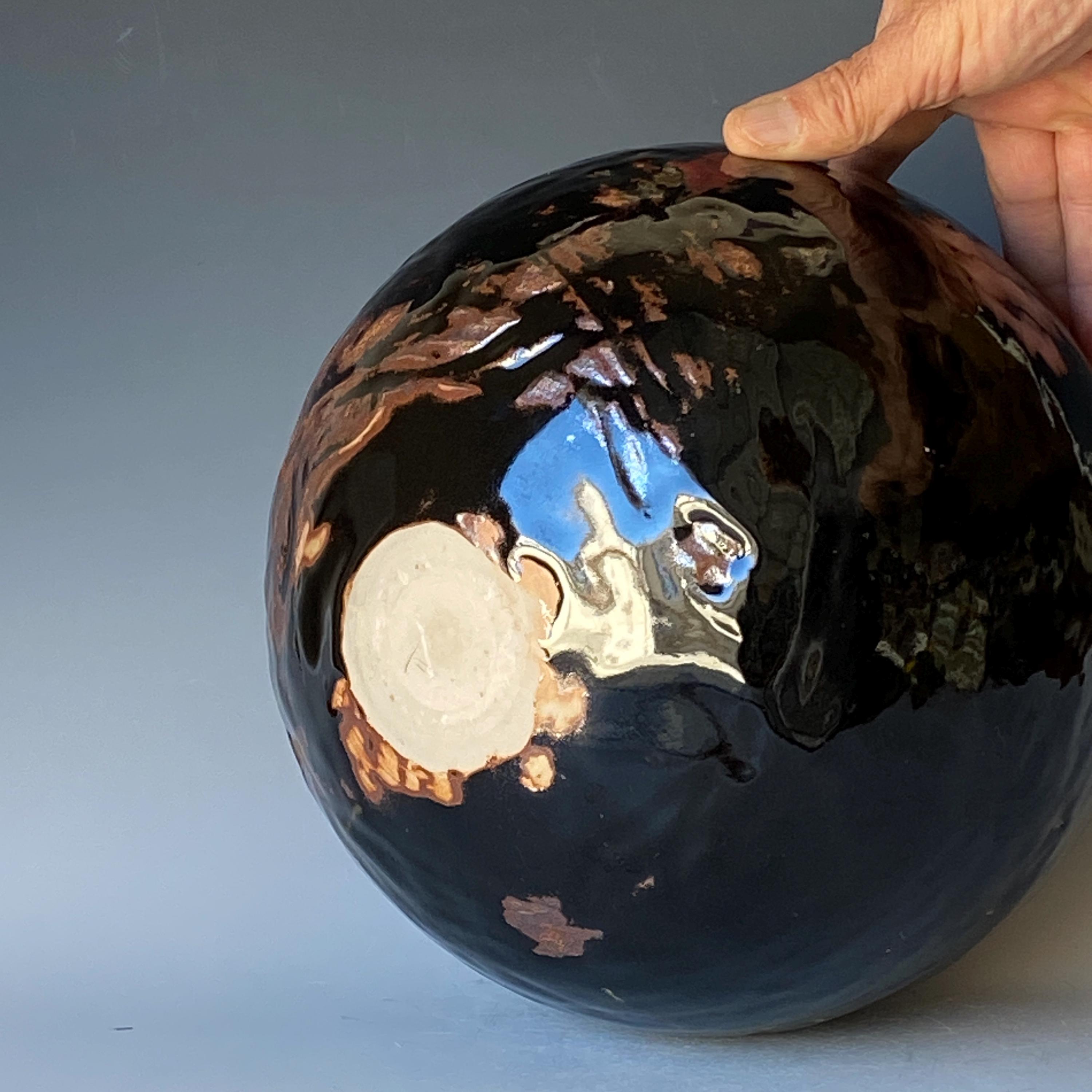 Wheel thrown ceramic Sphere. It measures height 9.5" * width 9.5" * rim 1.7".