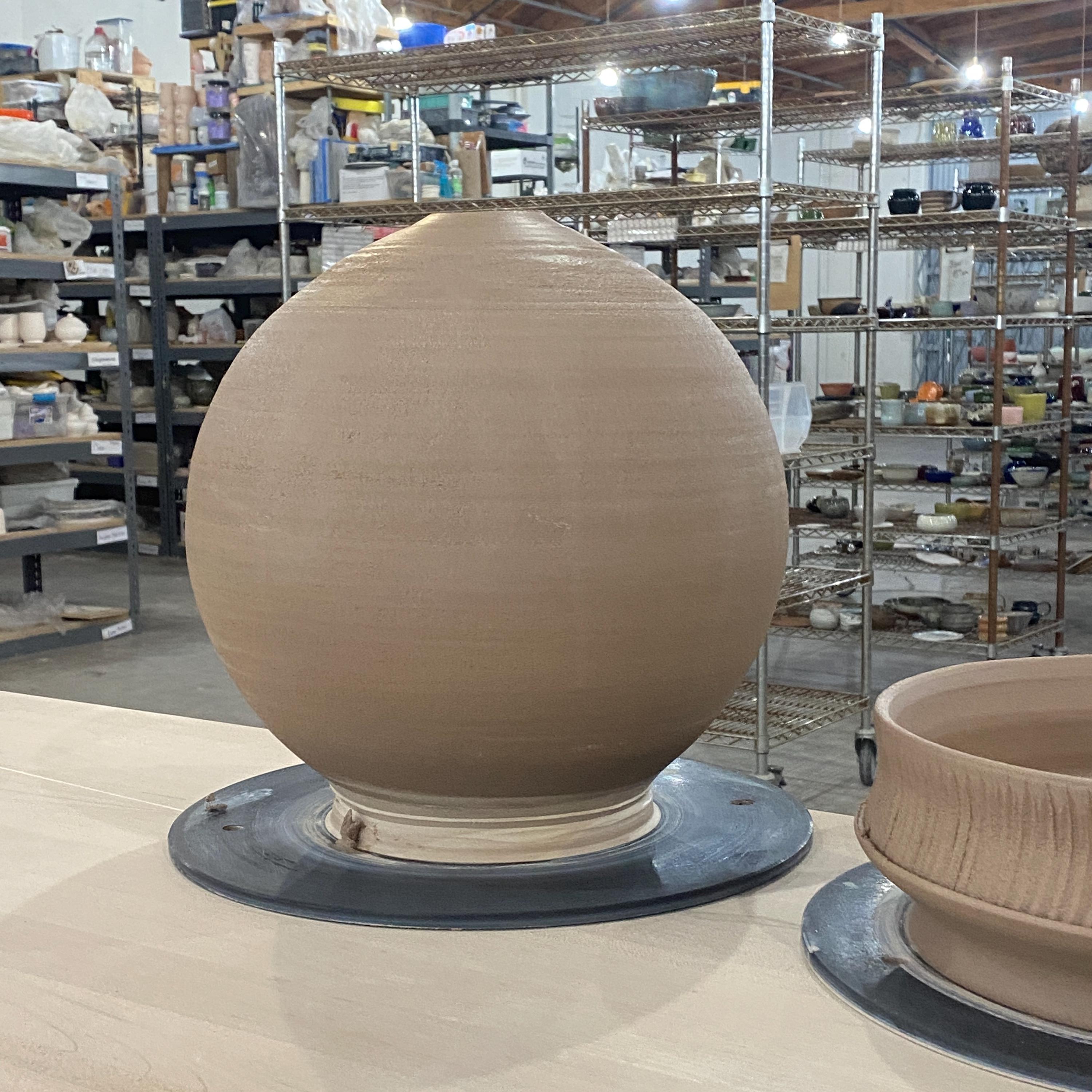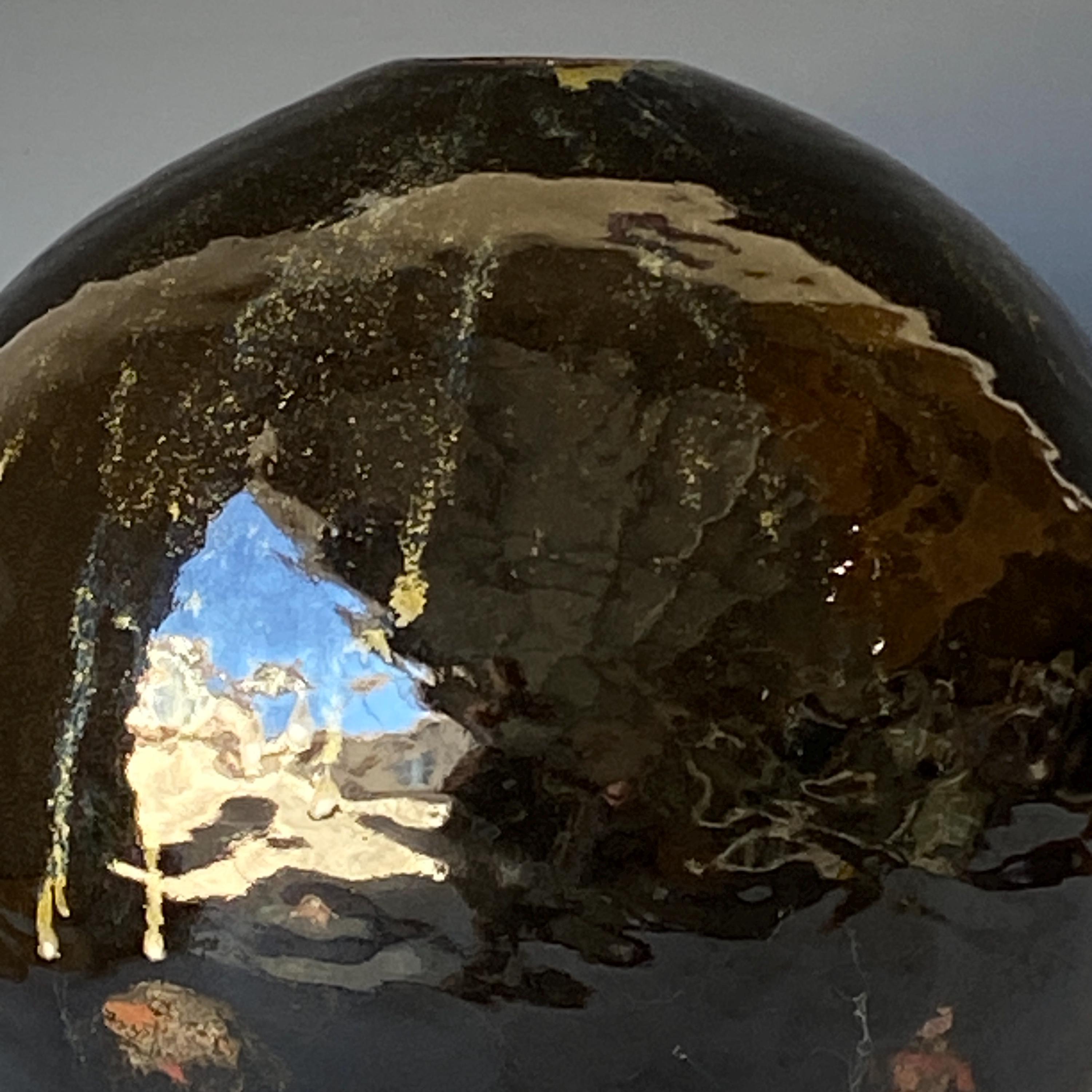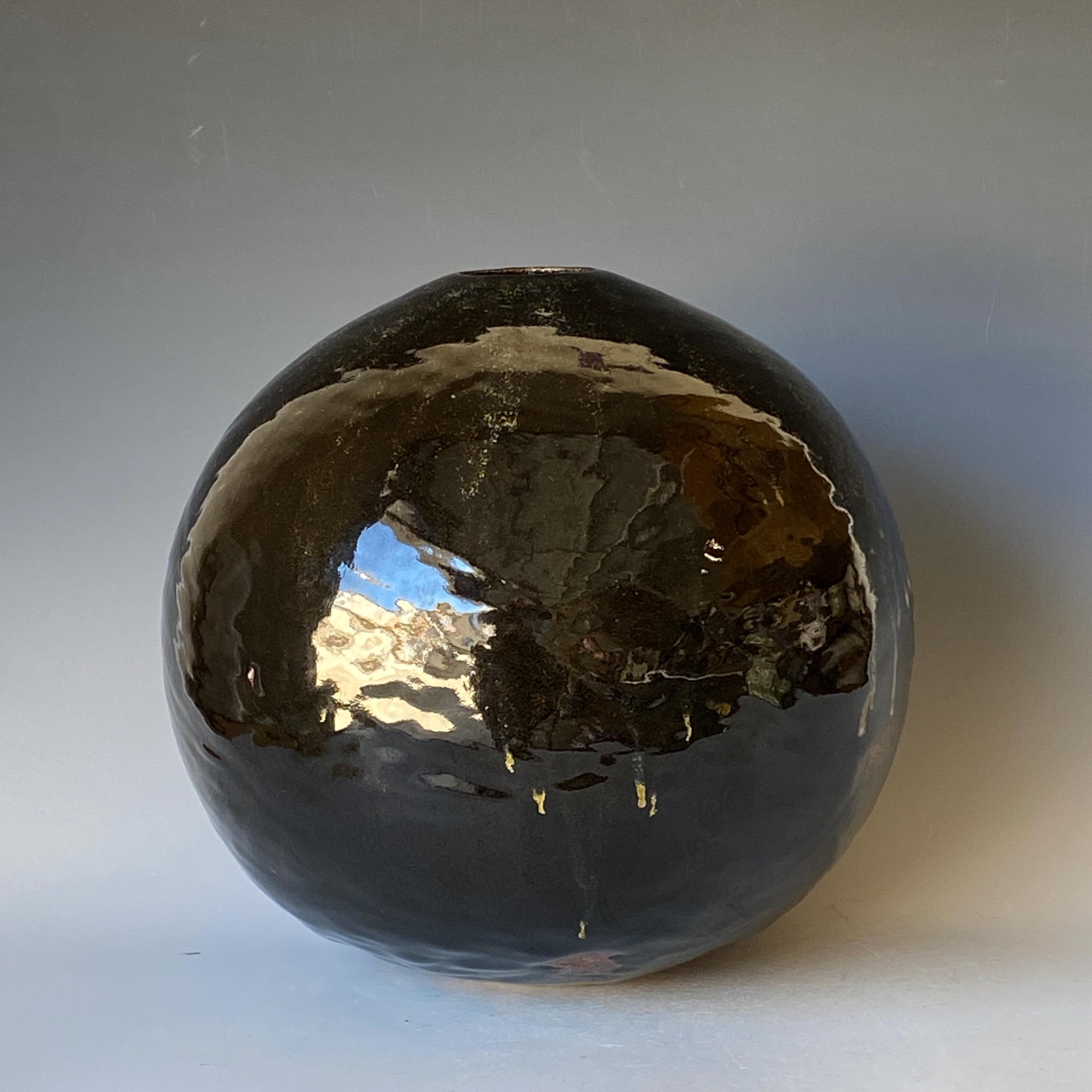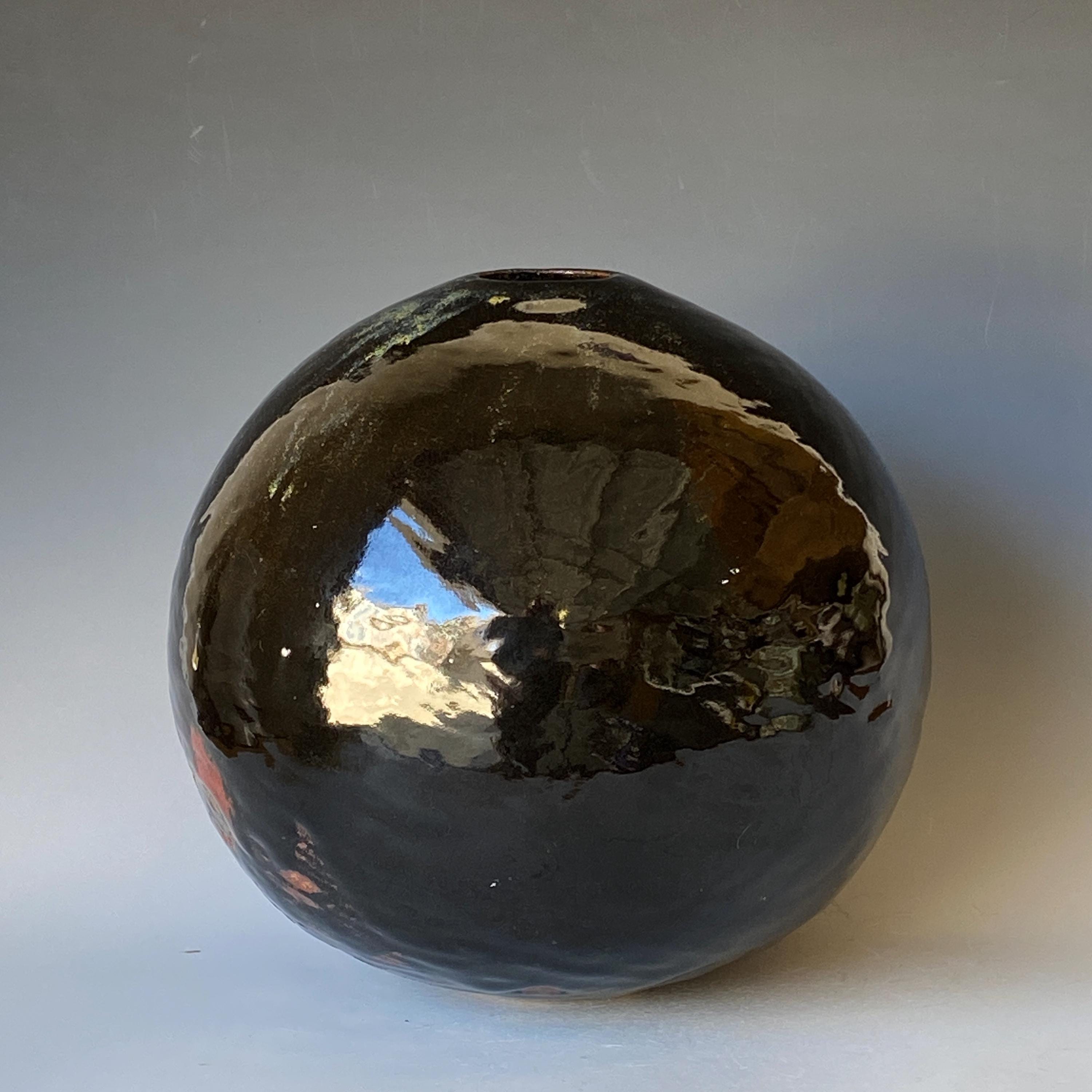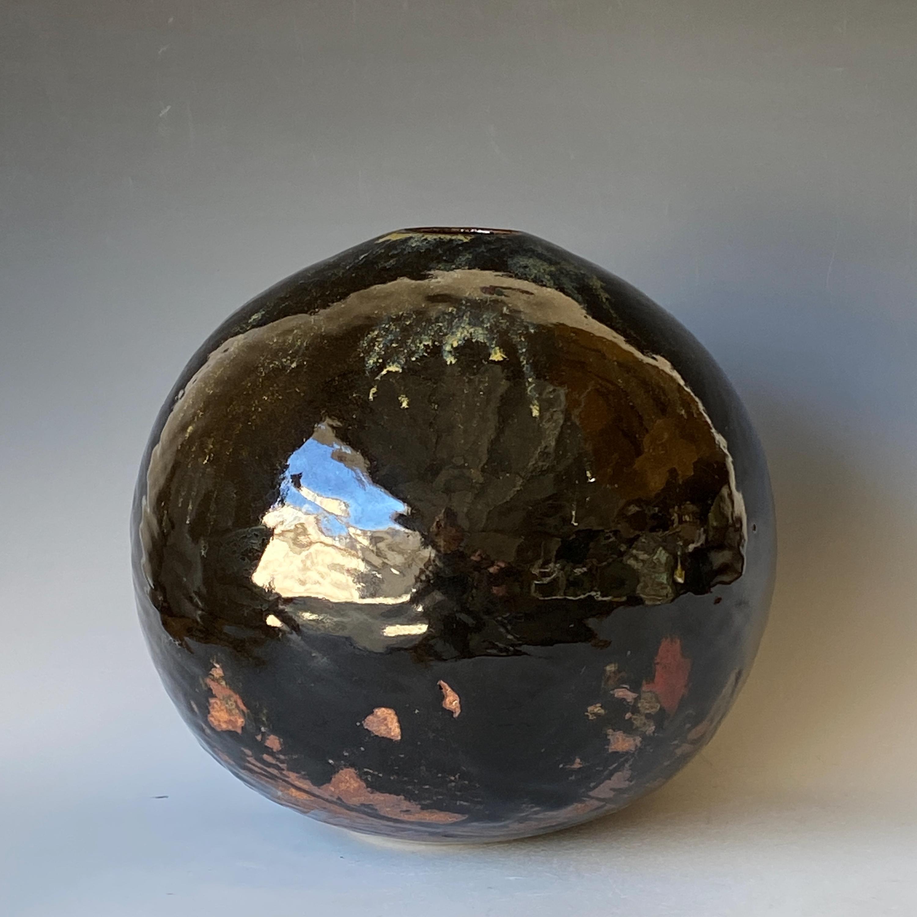 Wheel thrown ceramic Sphere. It measures height 9.5" * width 9.5" * rim 1.7".