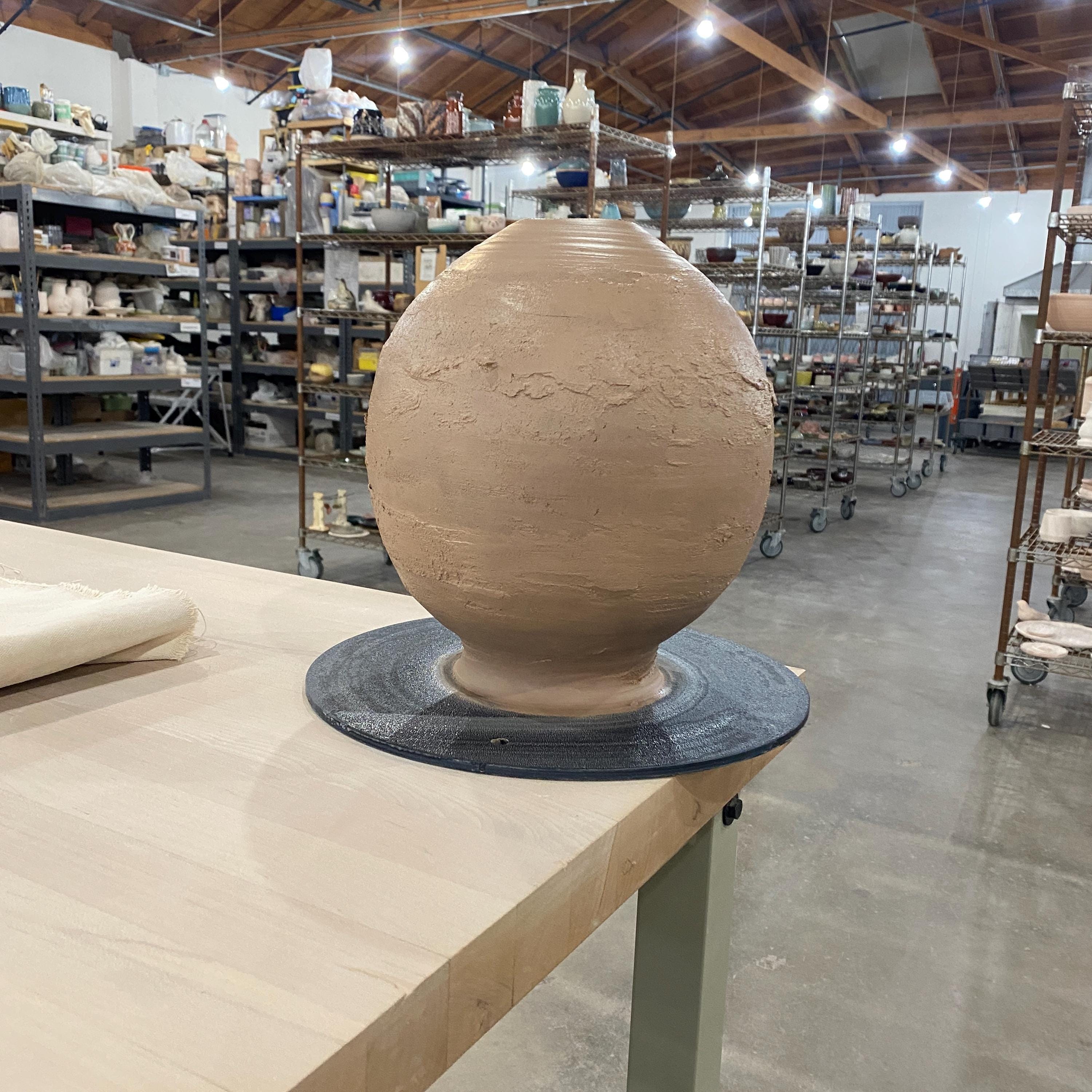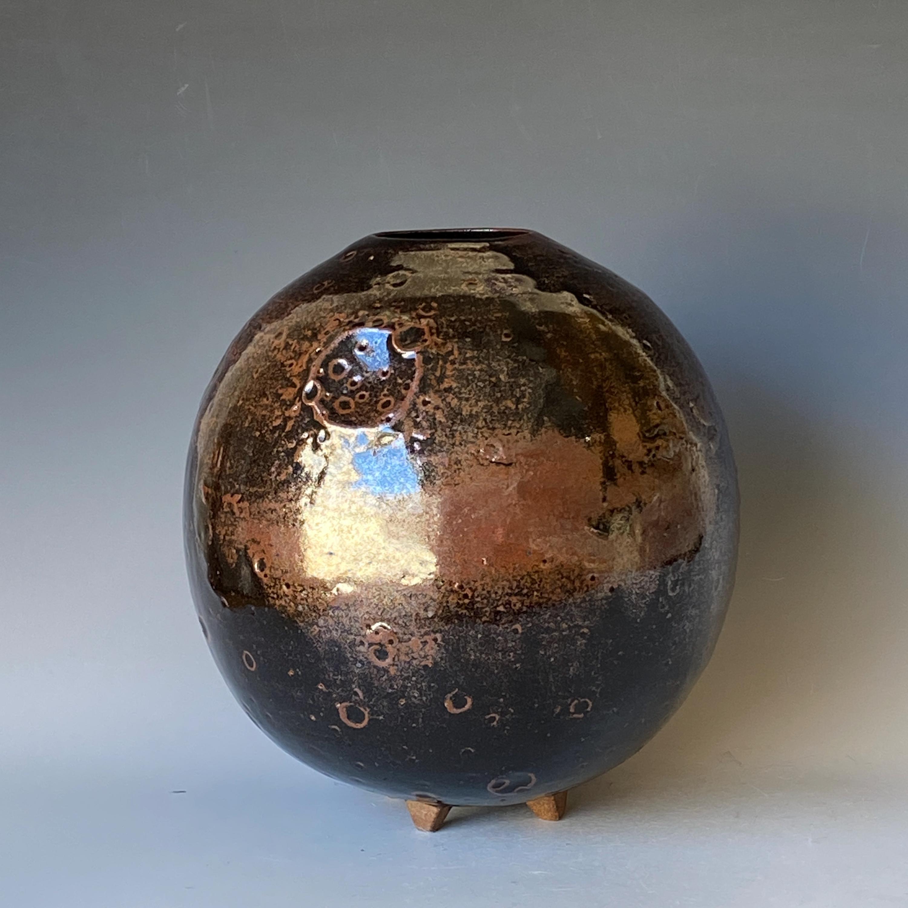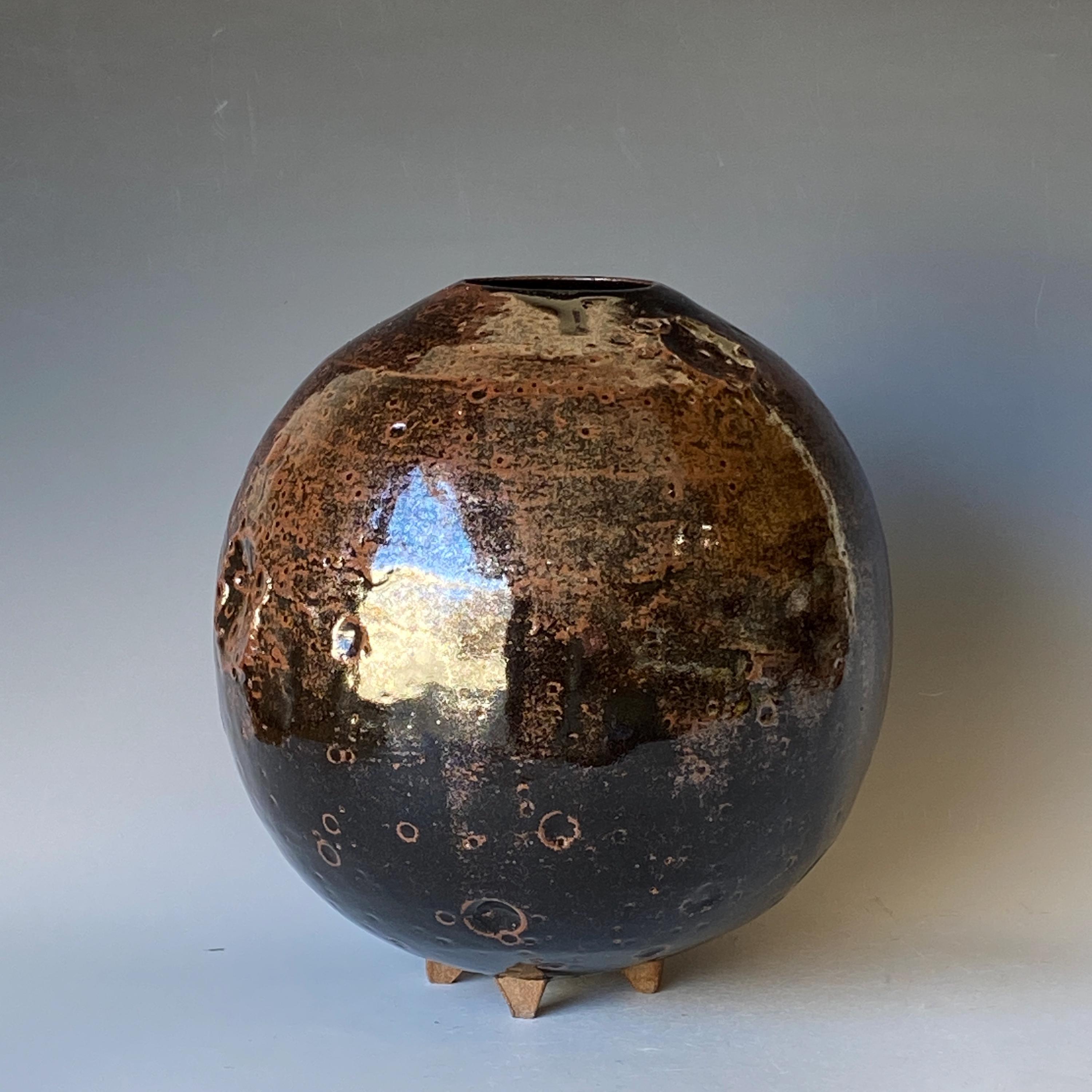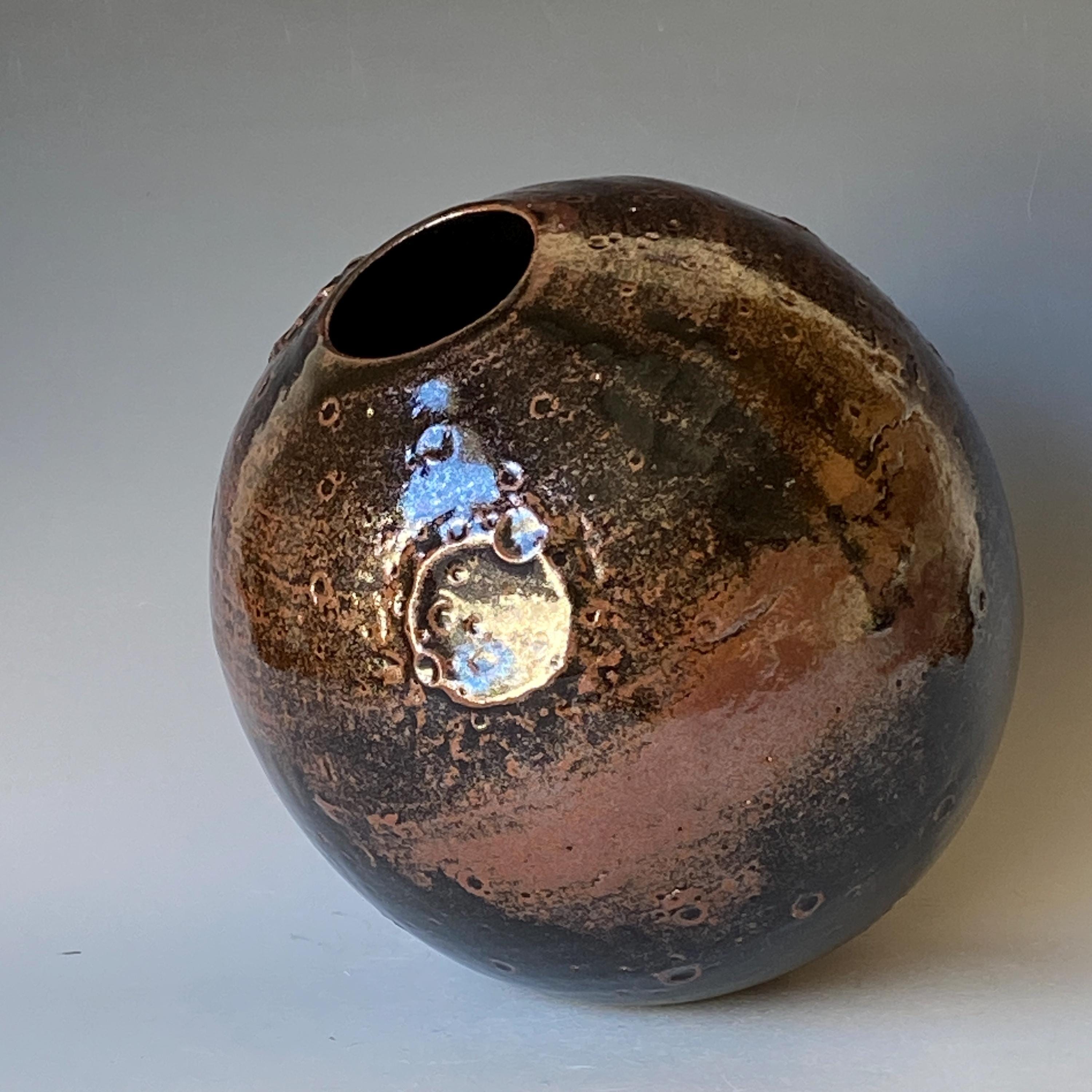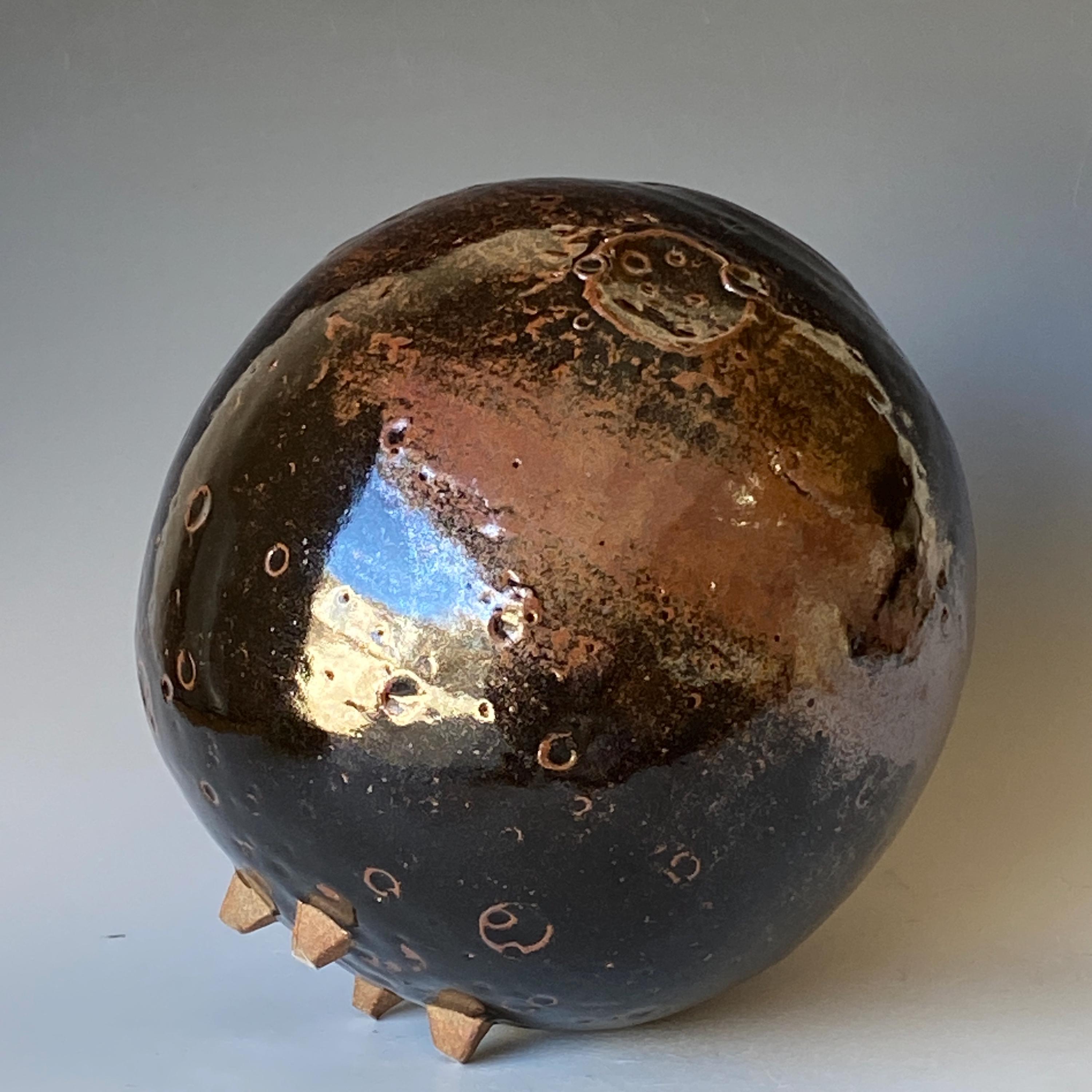 Wheel thrown ceramic Sphere. It measures height 9" * width 8.5" * rim 2.4".