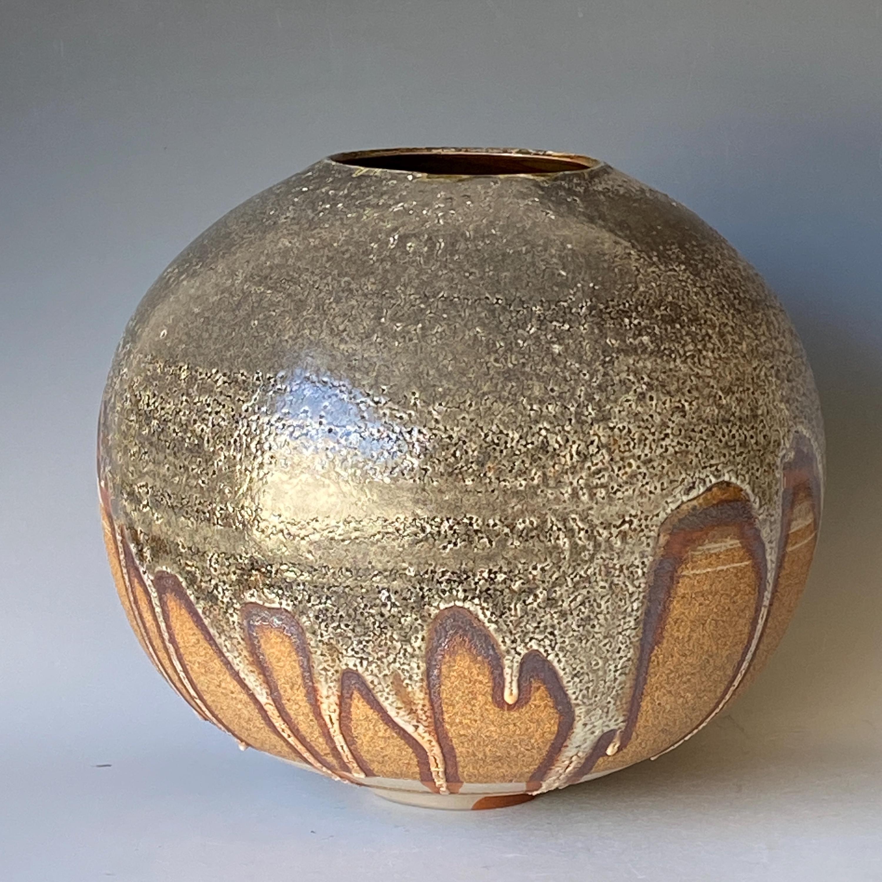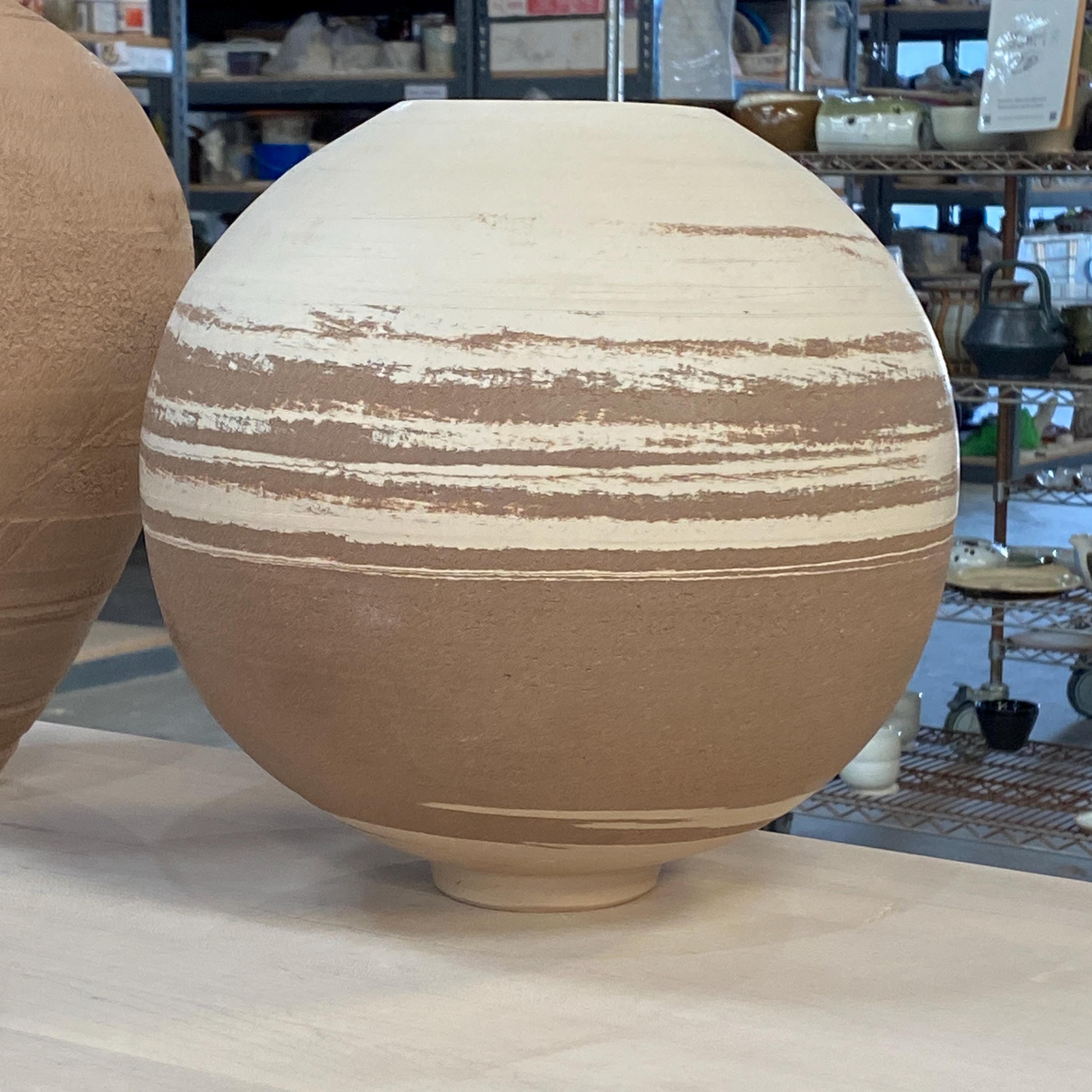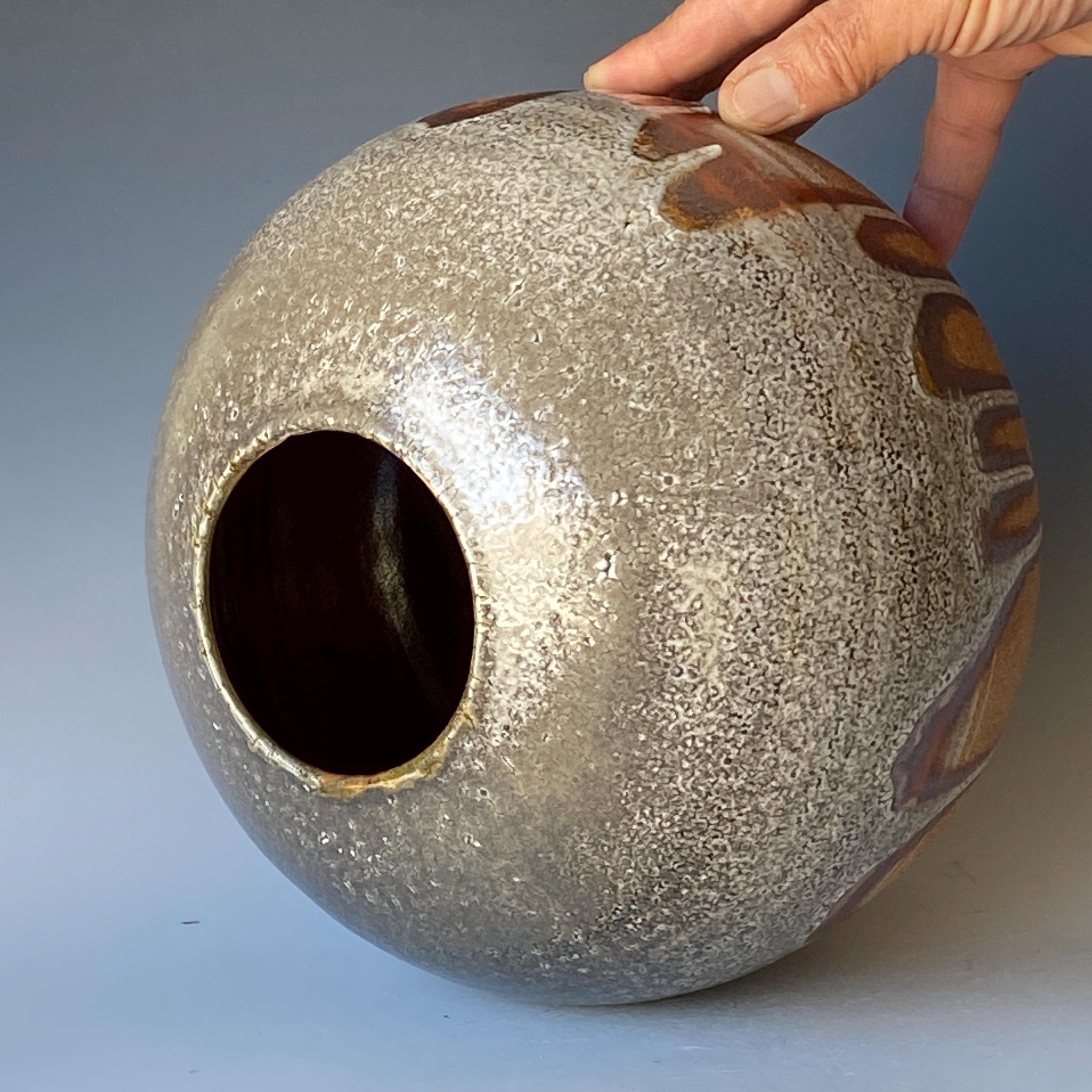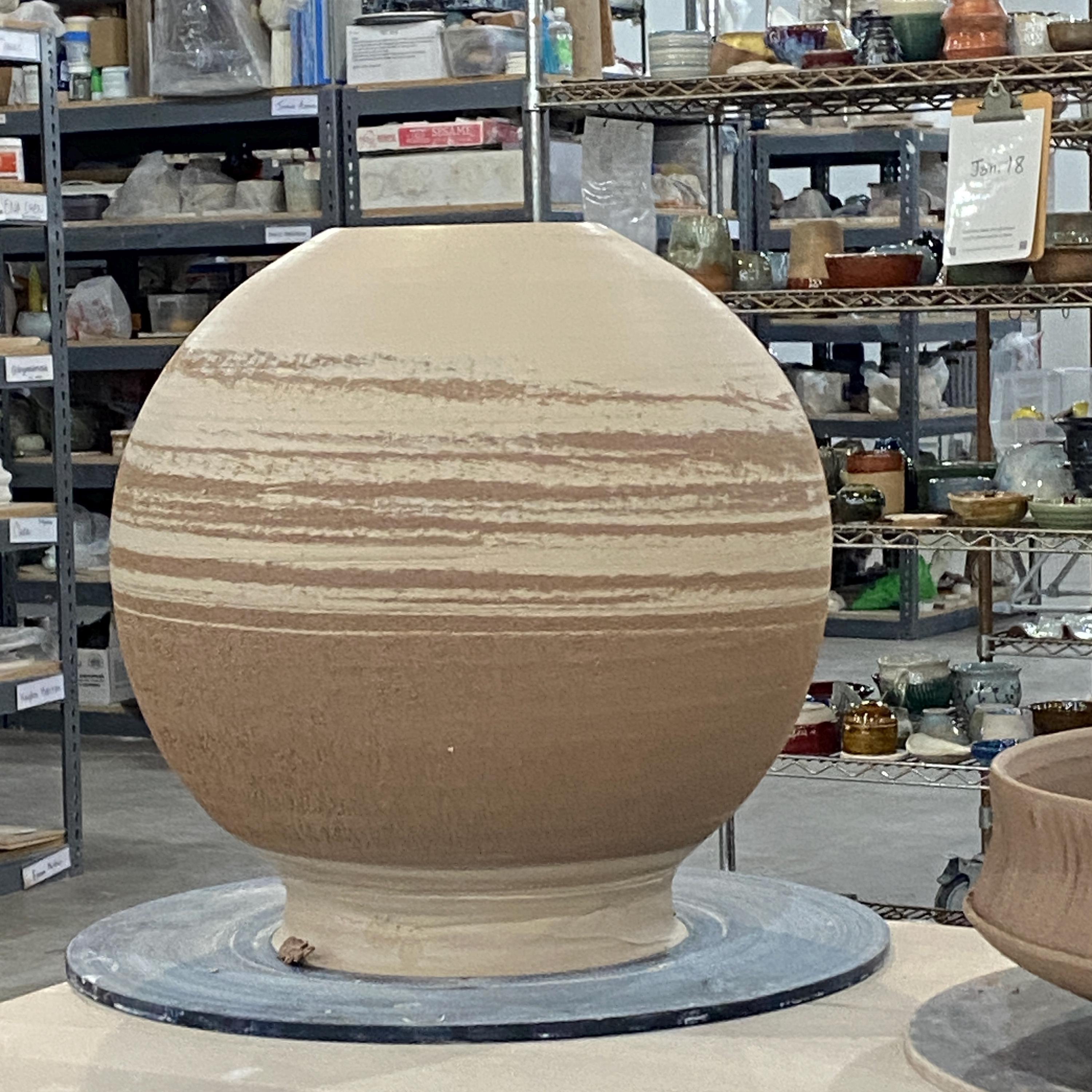 Wheel thrown ceramic Sphere. It measures height 8.5" * width 9.5" * rim 3.5".