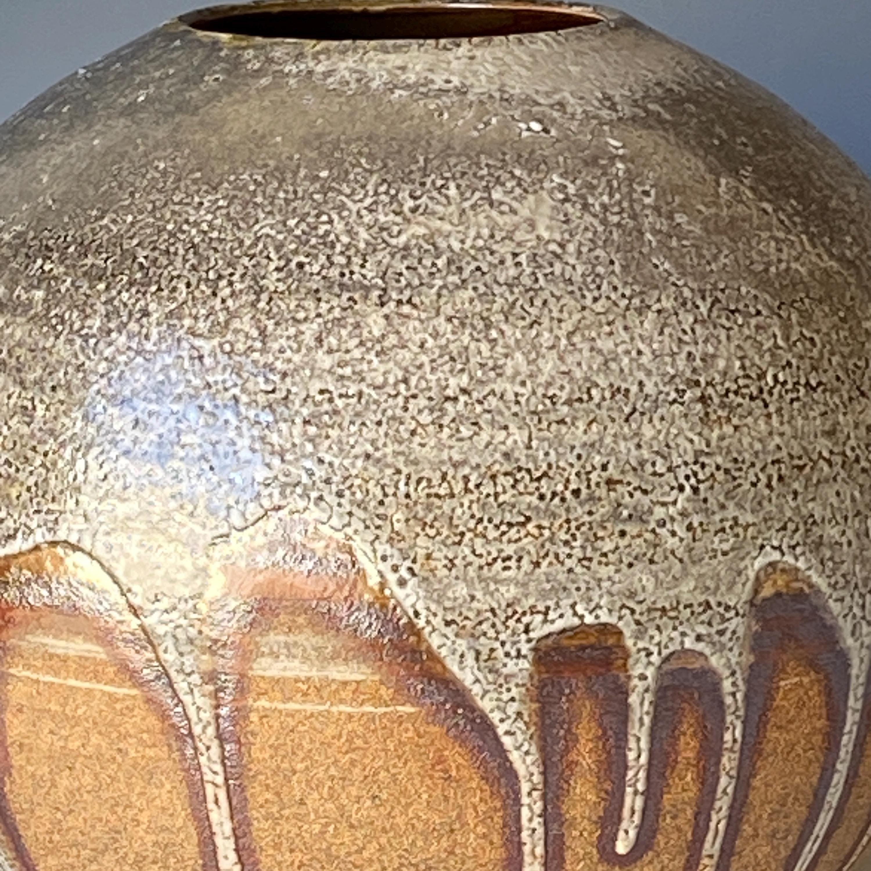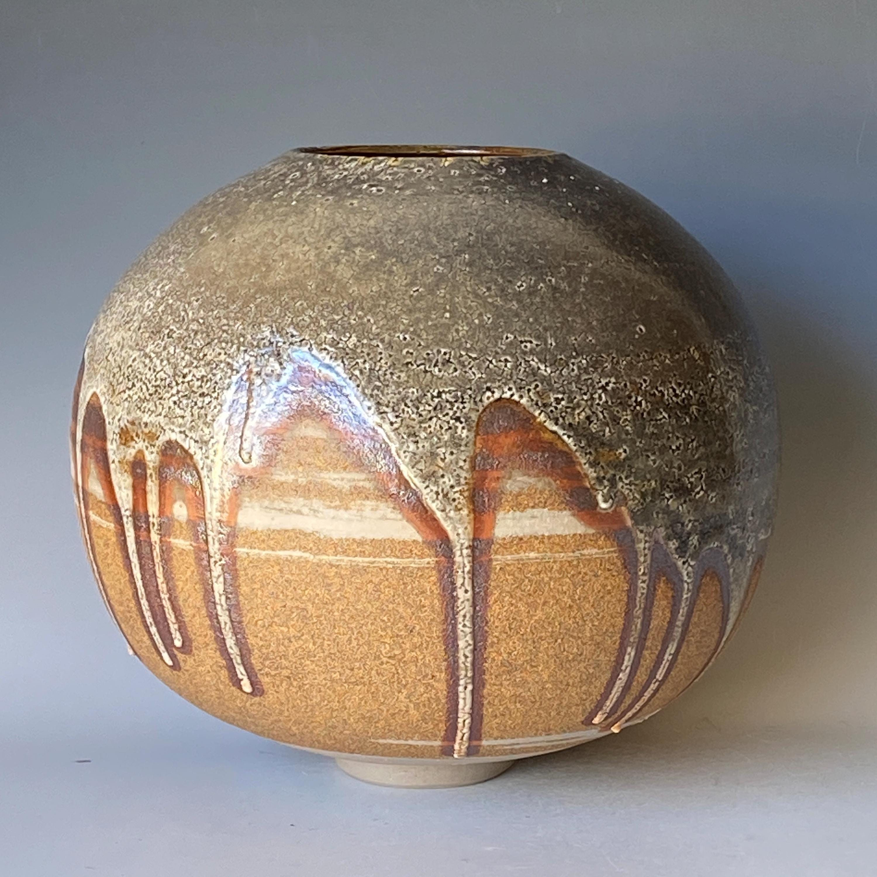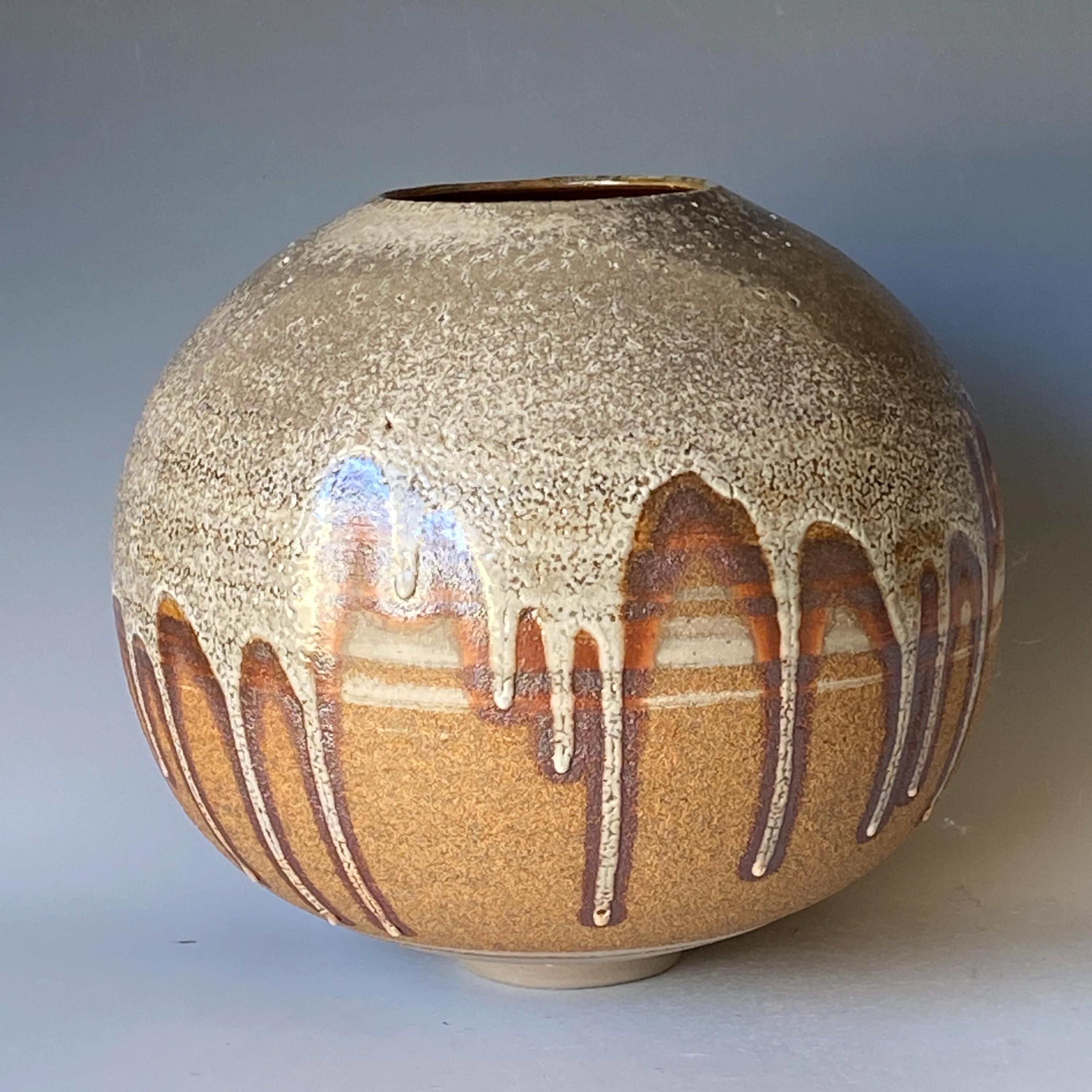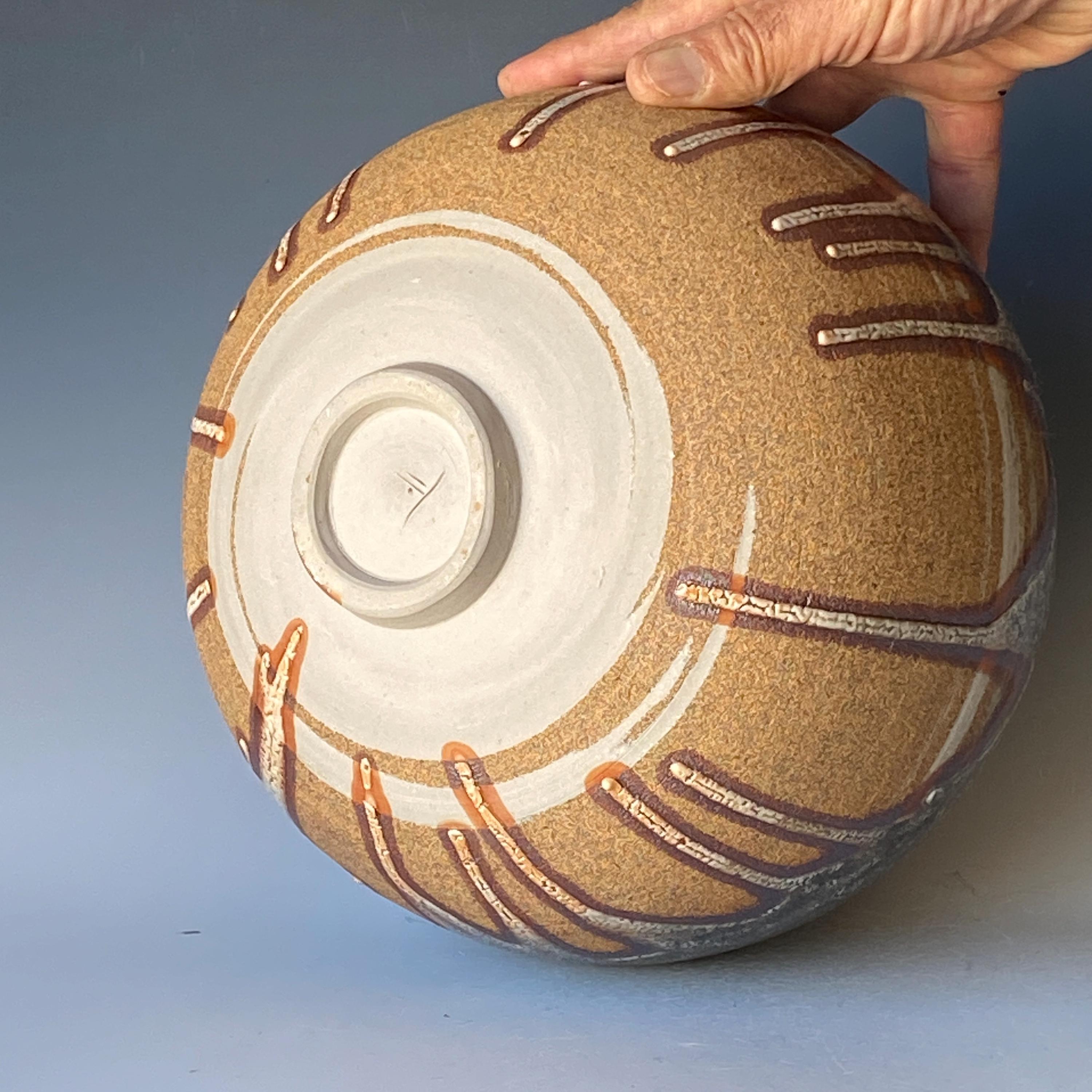 Wheel thrown ceramic Sphere. It measures height 8.5" * width 9.5" * rim 3.5".