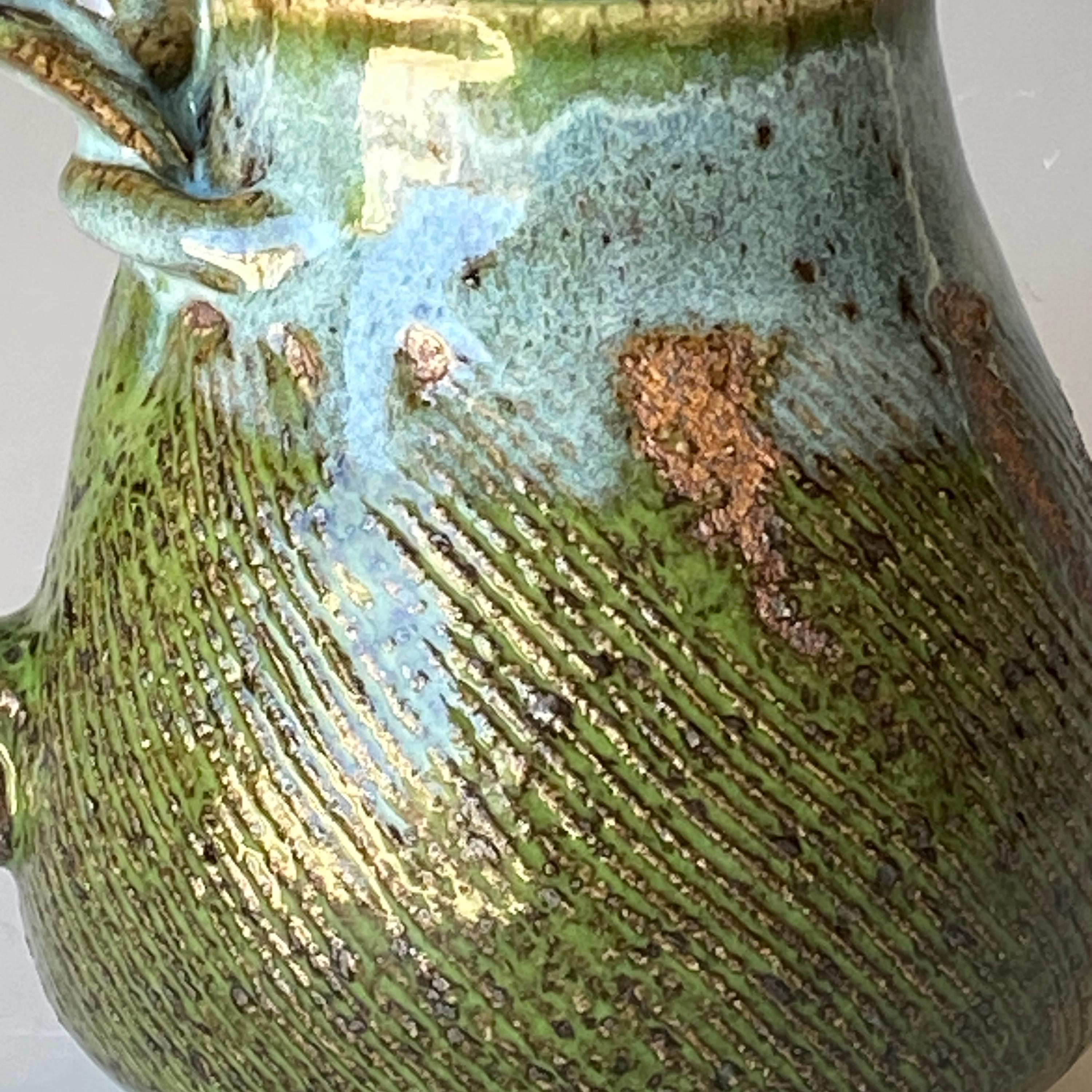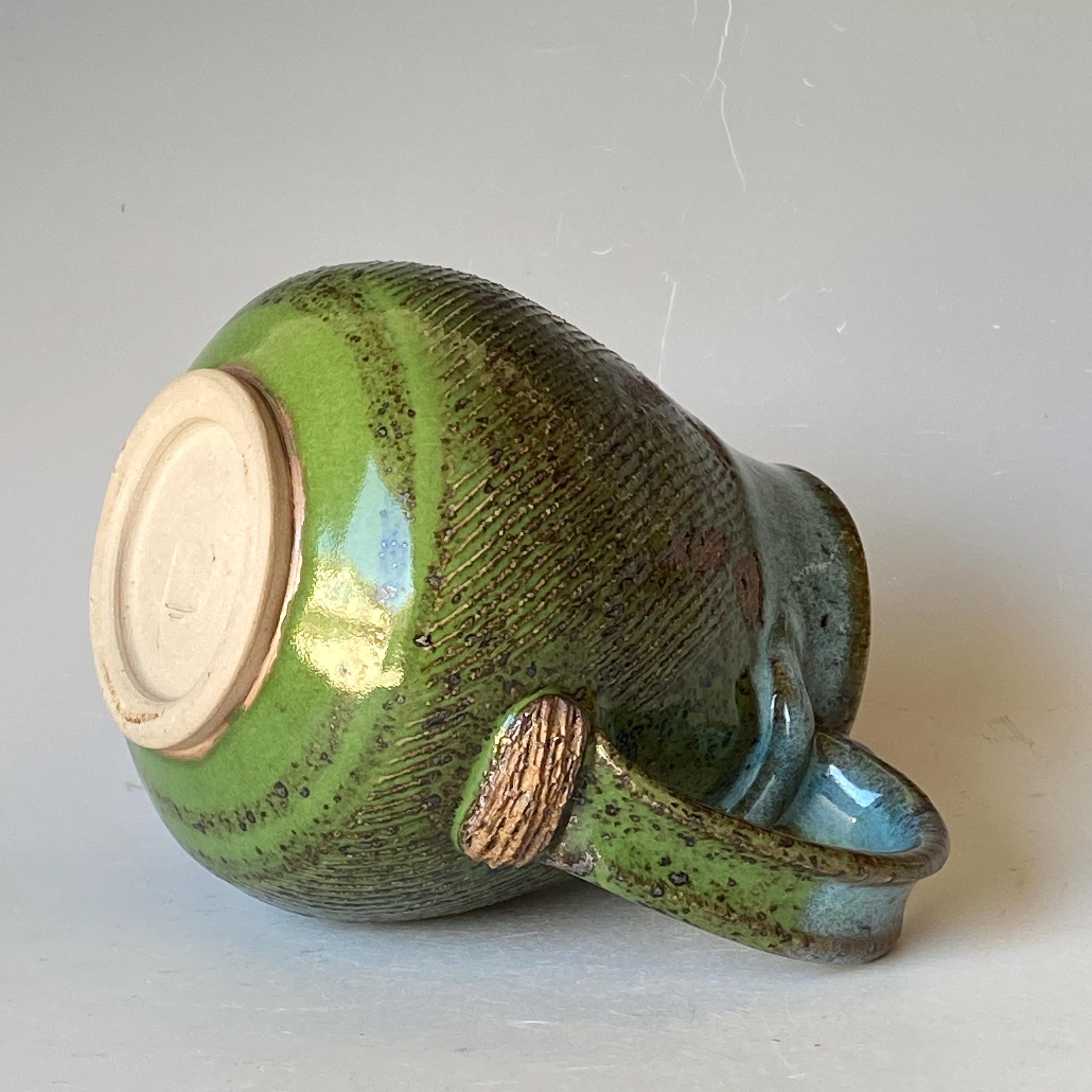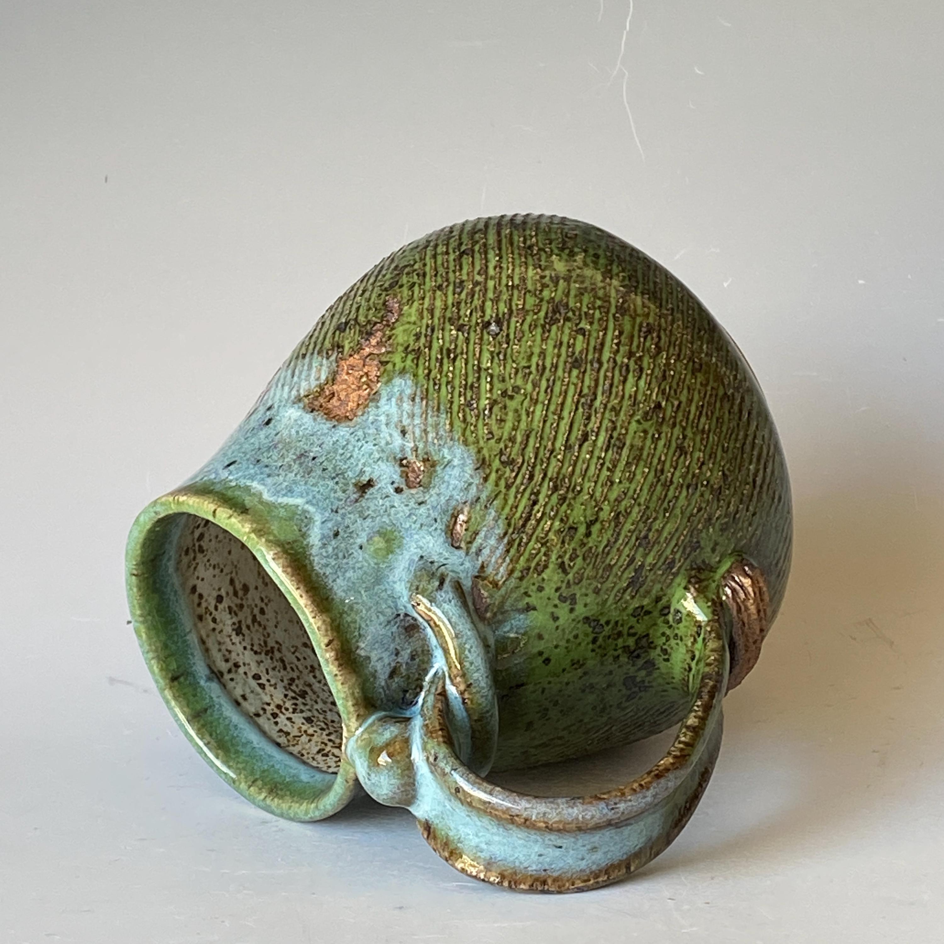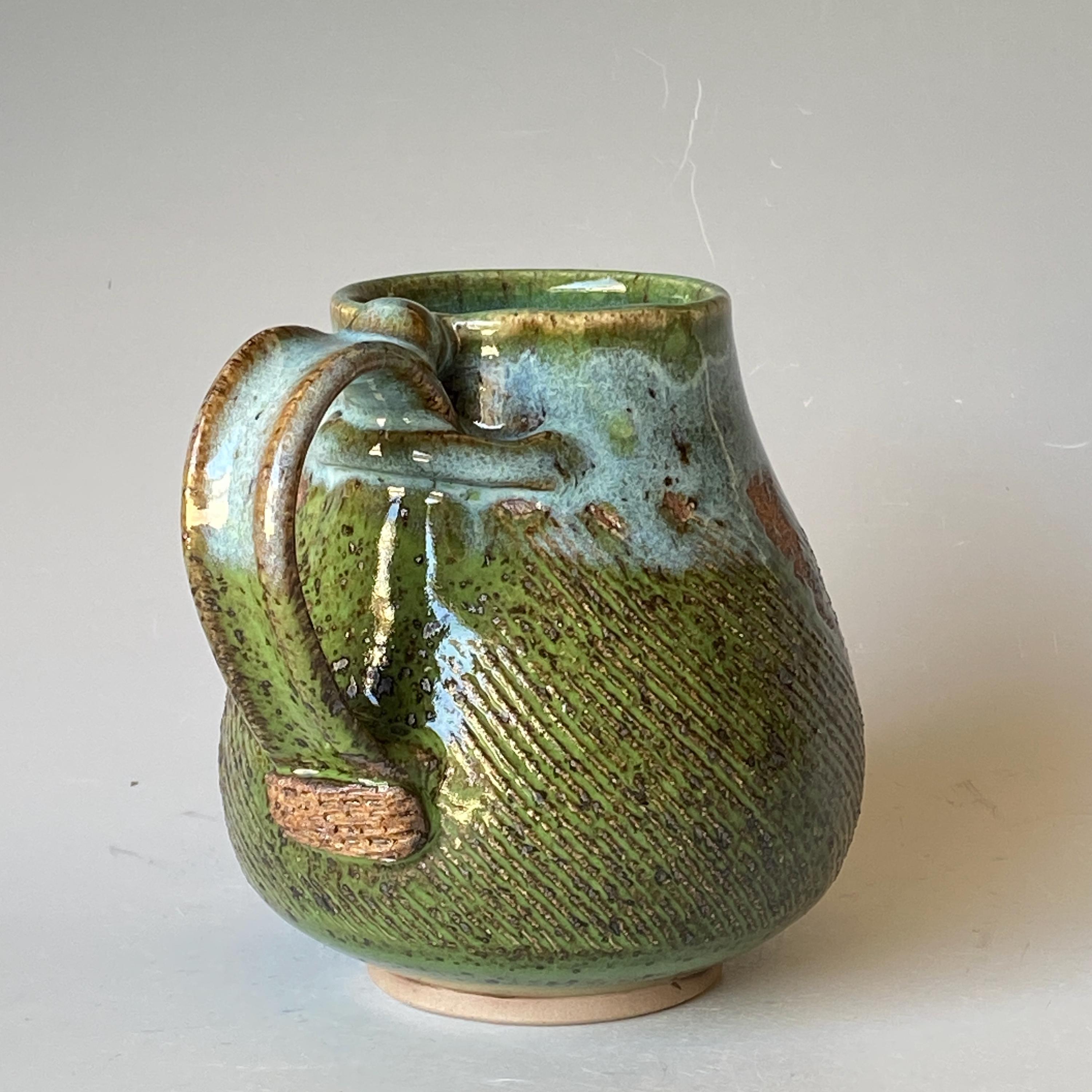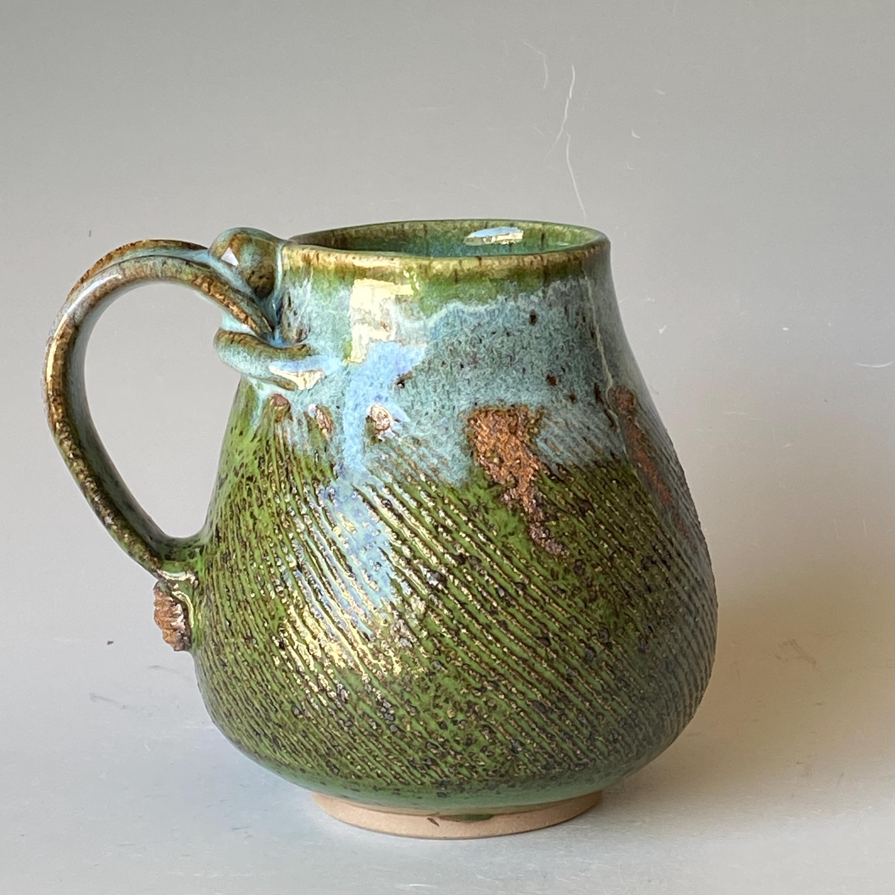 ATTENTION: This Mug is throw from a type of clay with good amount of sand in it, which creates a rough surface on areas that left un-glazed.